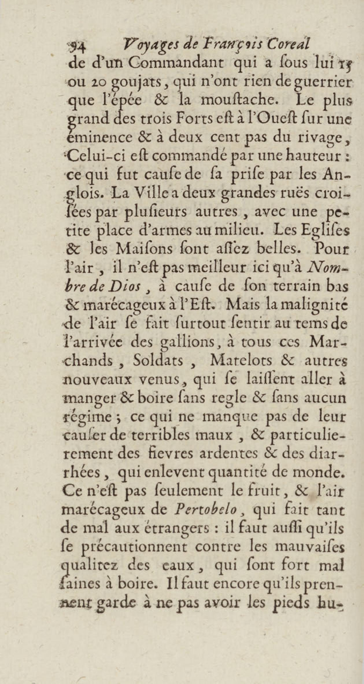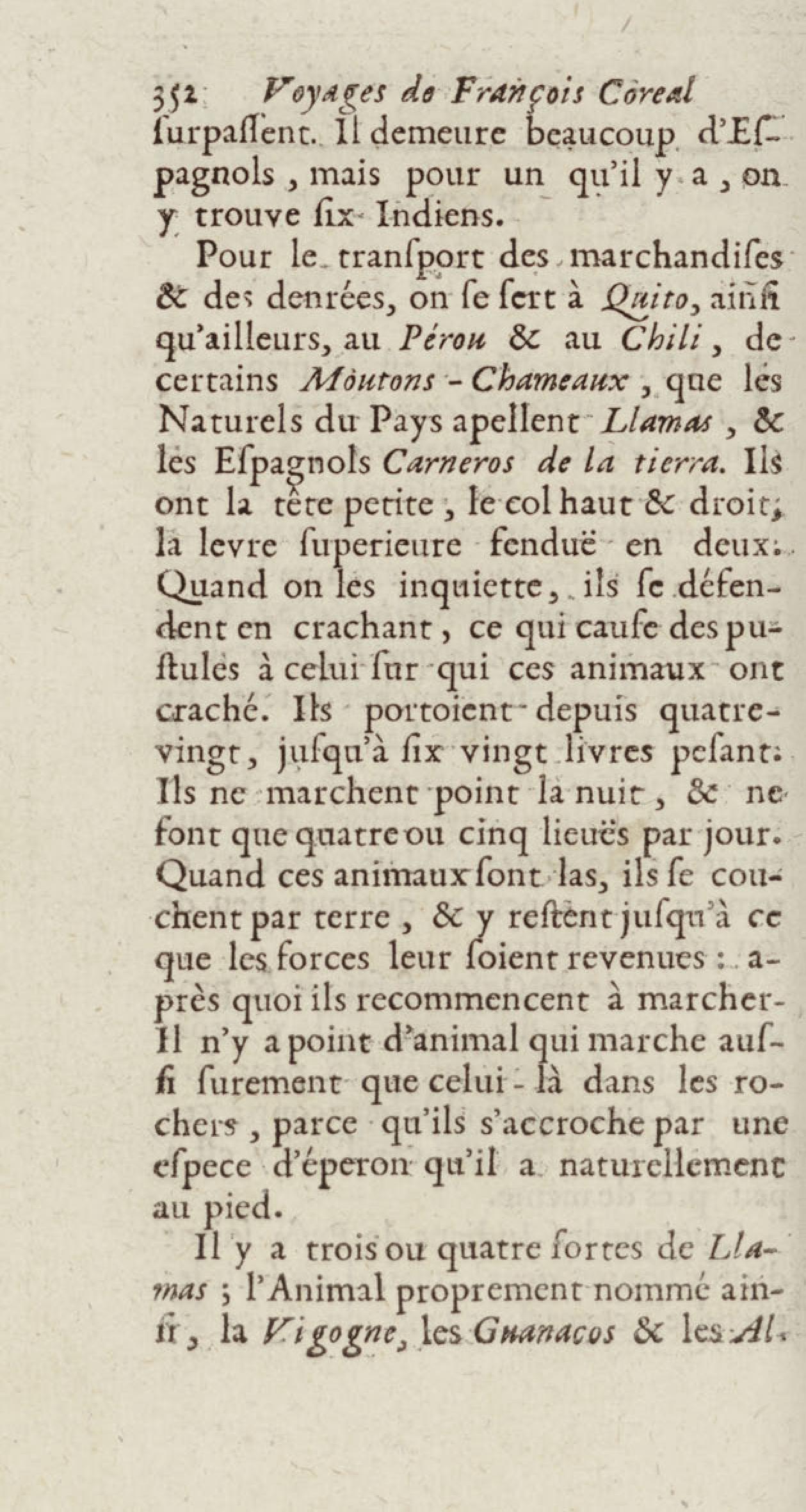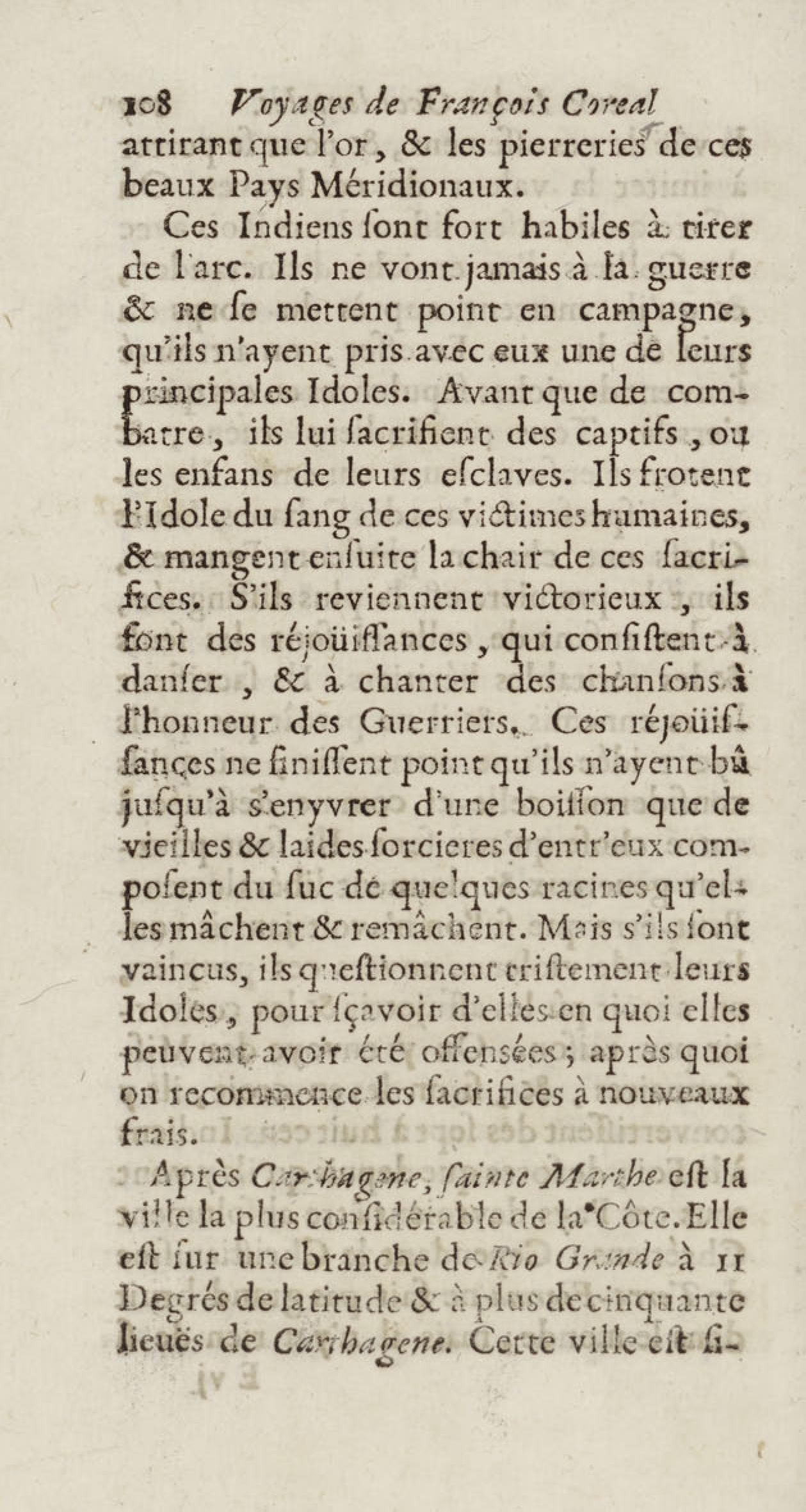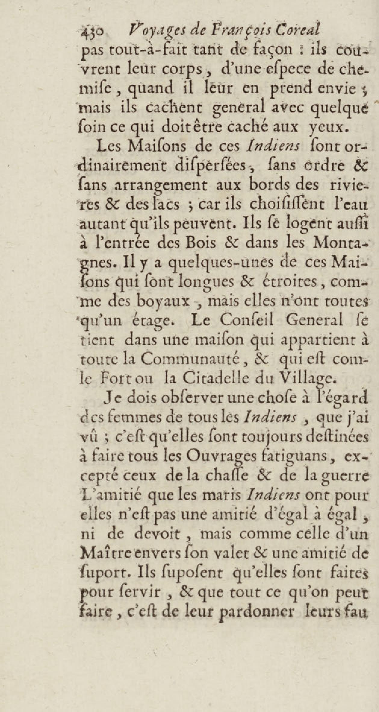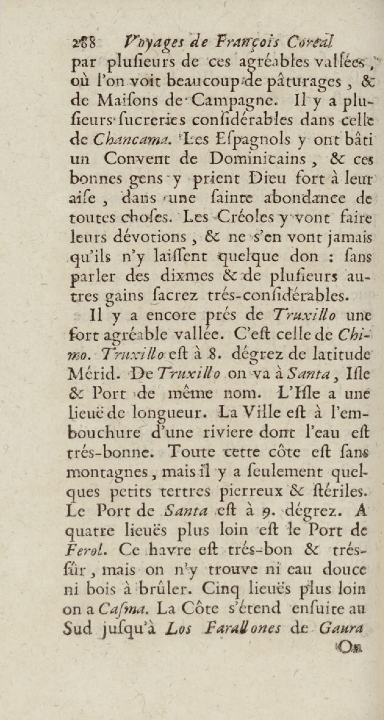 - Voyages de François Coreal aux Indes occidentales, contenant ce qu'il y a vû de plus remarquable pendant son séjour depuis 1666 jusqu'en 1697 : traduits de l'espagnol : avec une relation de la Guiane de Walter Raleigh, & le voyage de Narbrough à la mer du sud par le détroit de Magellan, &c. : nouvelle édition revûë, corrigée, & augmentée d'une nouvelle Découverte des Indes méridionales & des terres australes, enrichie de figures. Tome premier