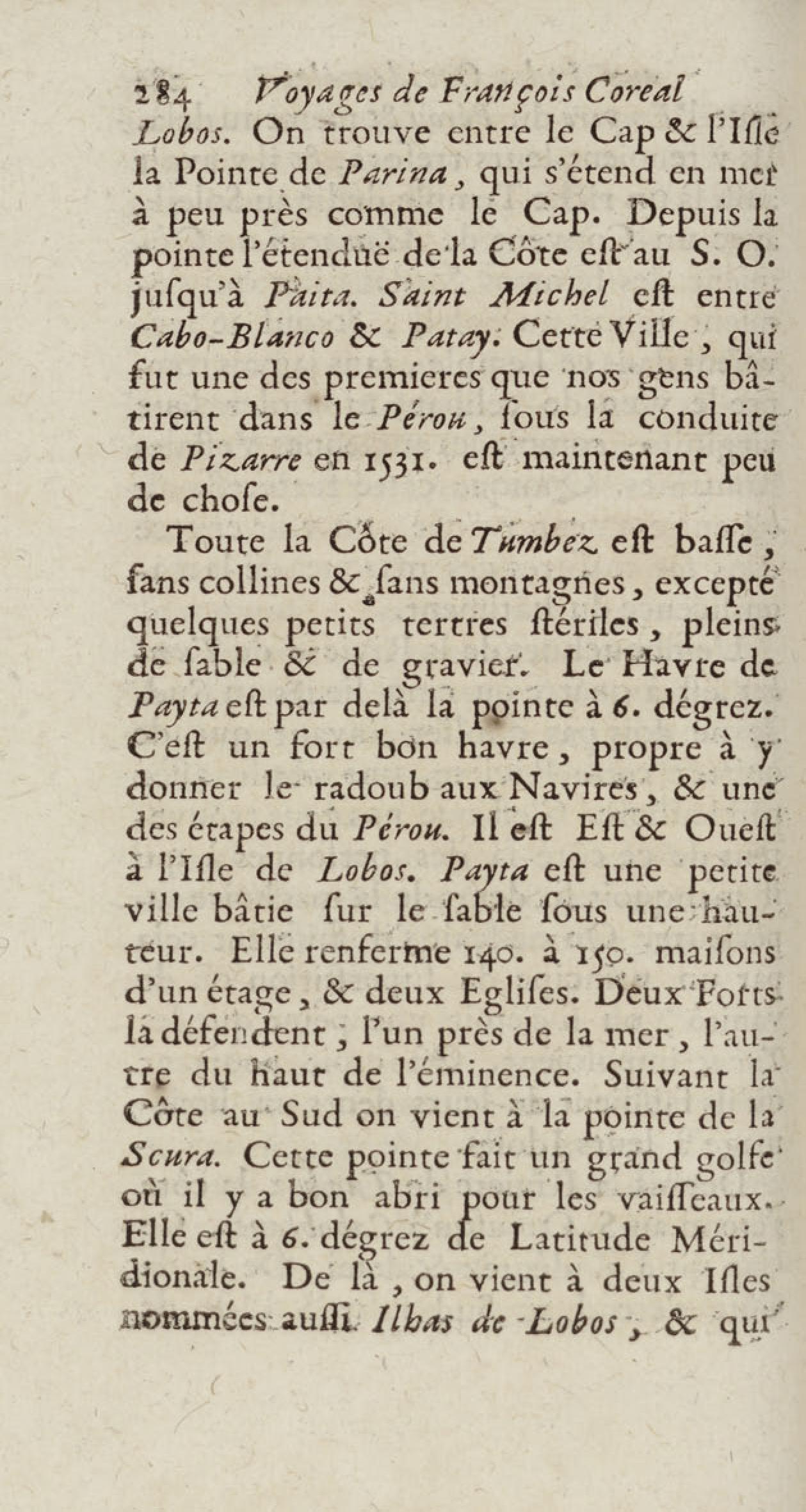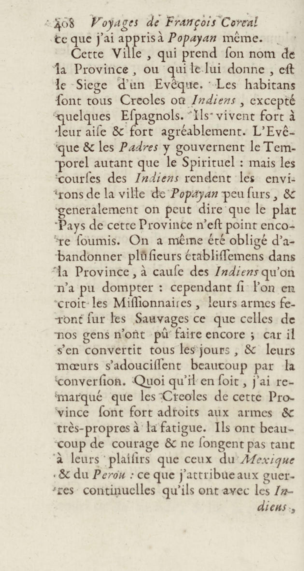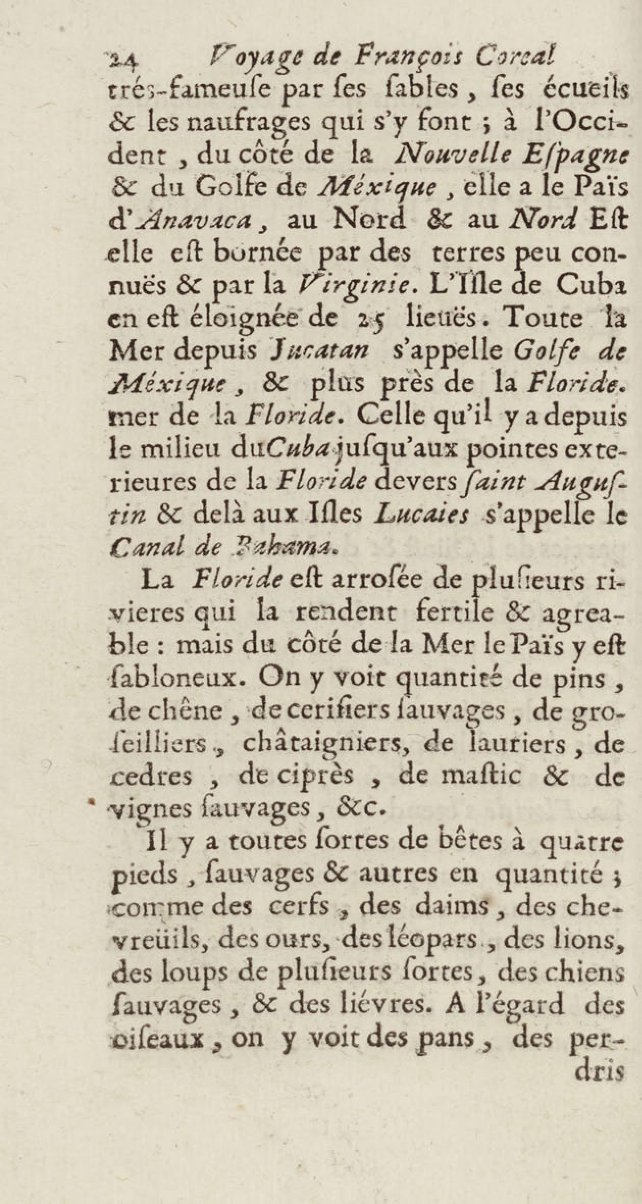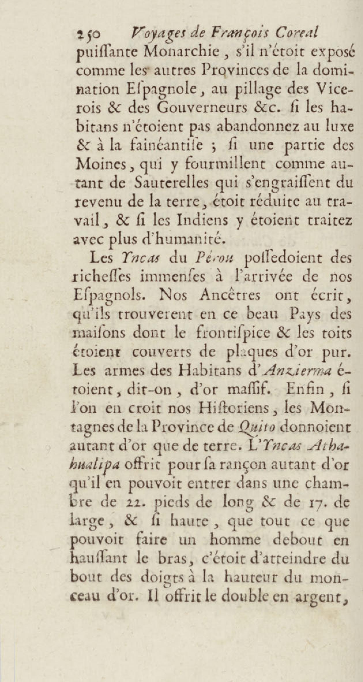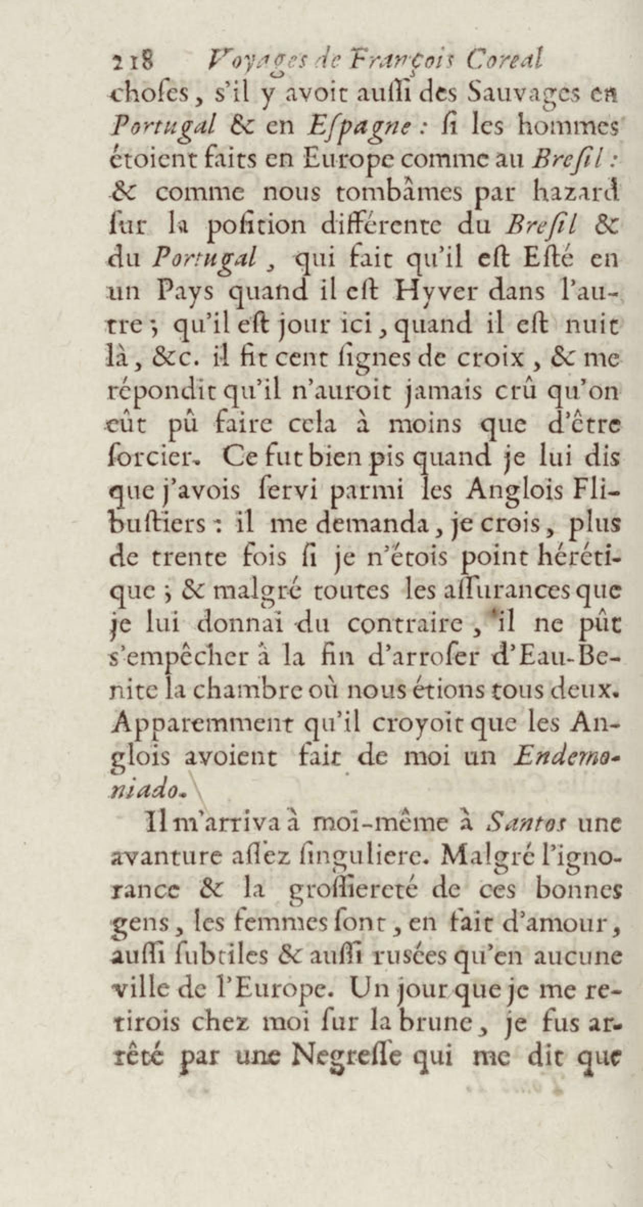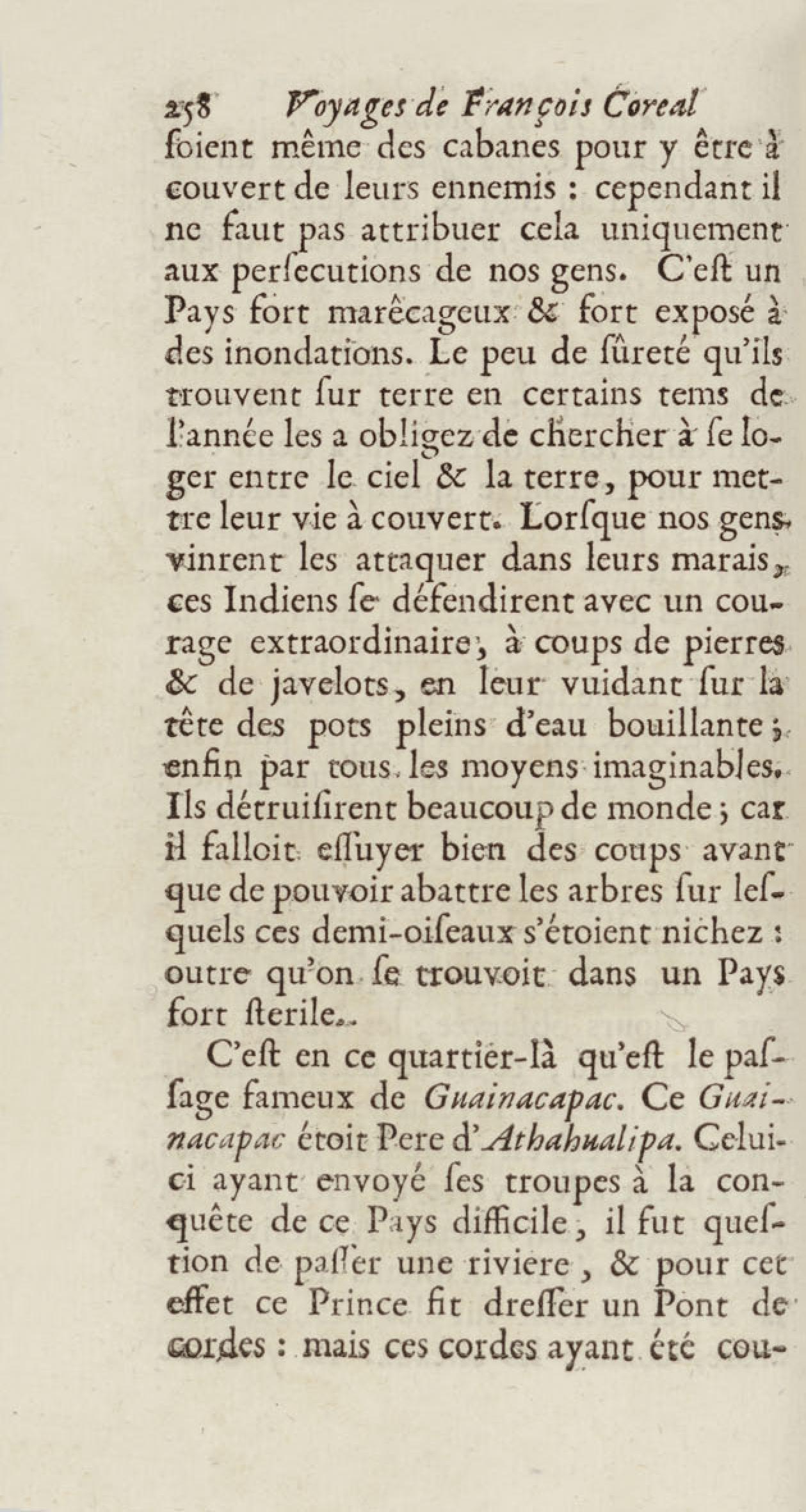 - Voyages de François Coreal aux Indes occidentales, contenant ce qu'il y a vû de plus remarquable pendant son séjour depuis 1666 jusqu'en 1697 : traduits de l'espagnol : avec une relation de la Guiane de Walter Raleigh, & le voyage de Narbrough à la mer du sud par le détroit de Magellan, &c. : nouvelle édition revûë, corrigée, & augmentée d'une nouvelle Découverte des Indes méridionales & des terres australes, enrichie de figures. Tome premier