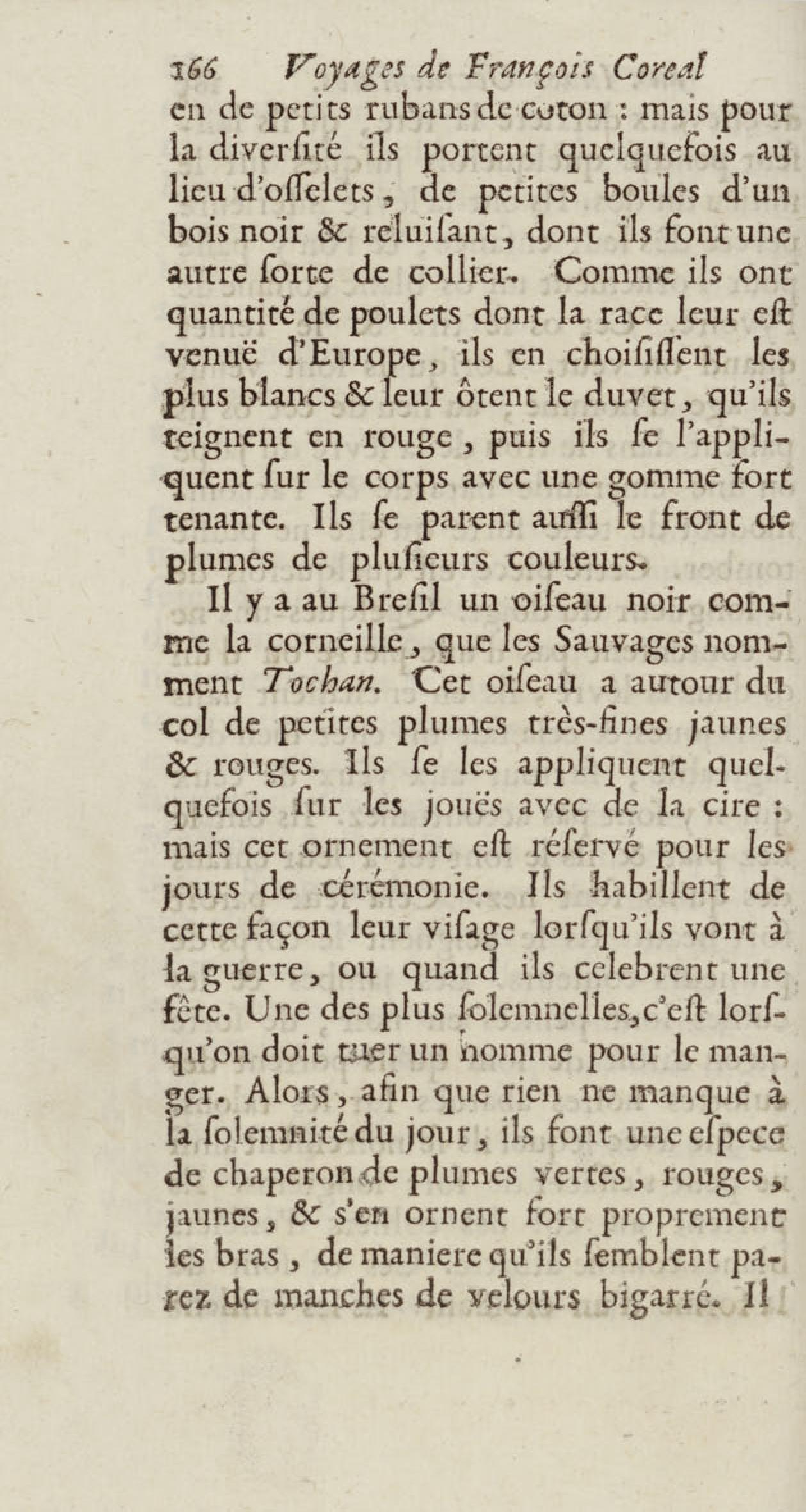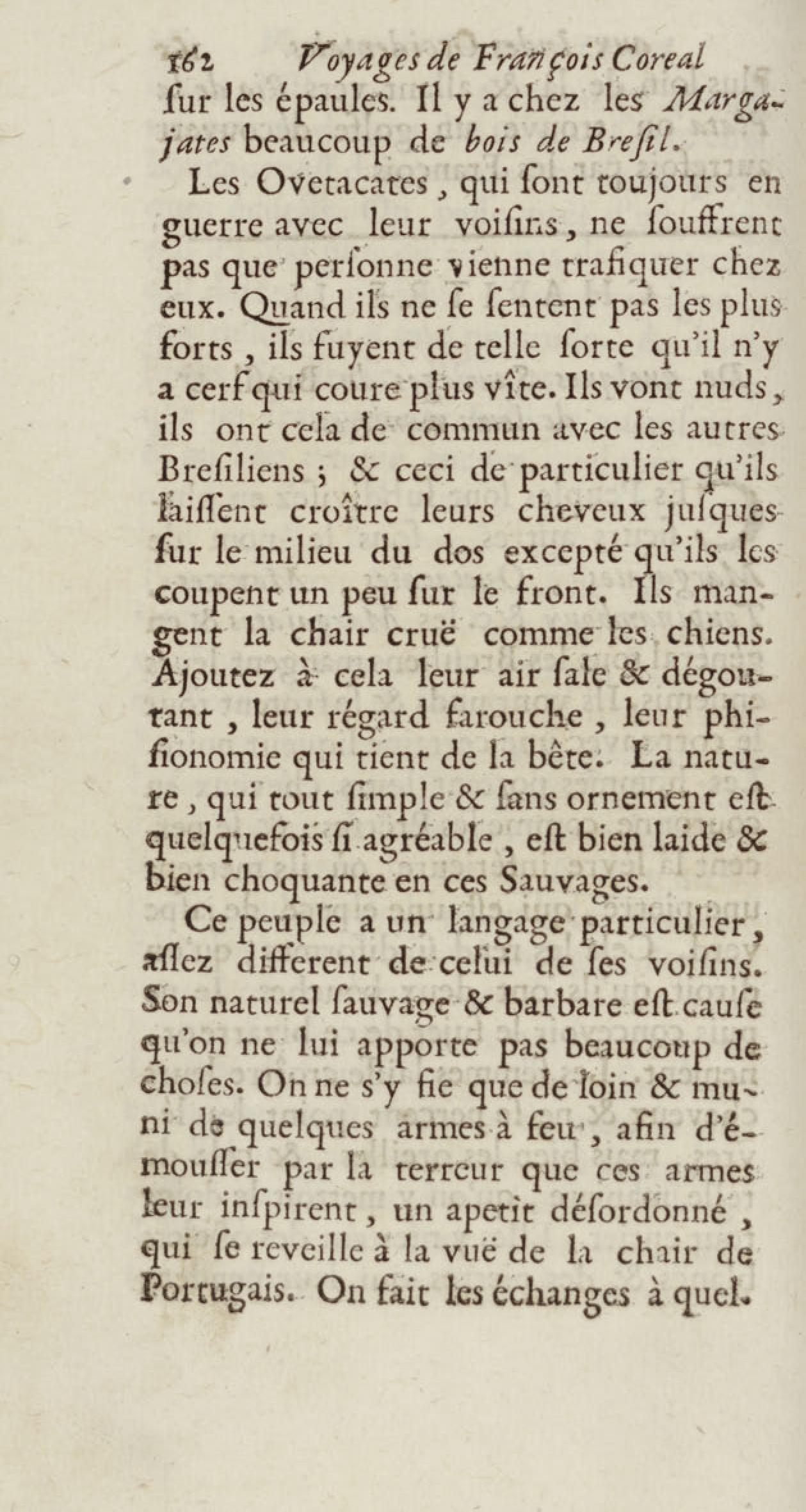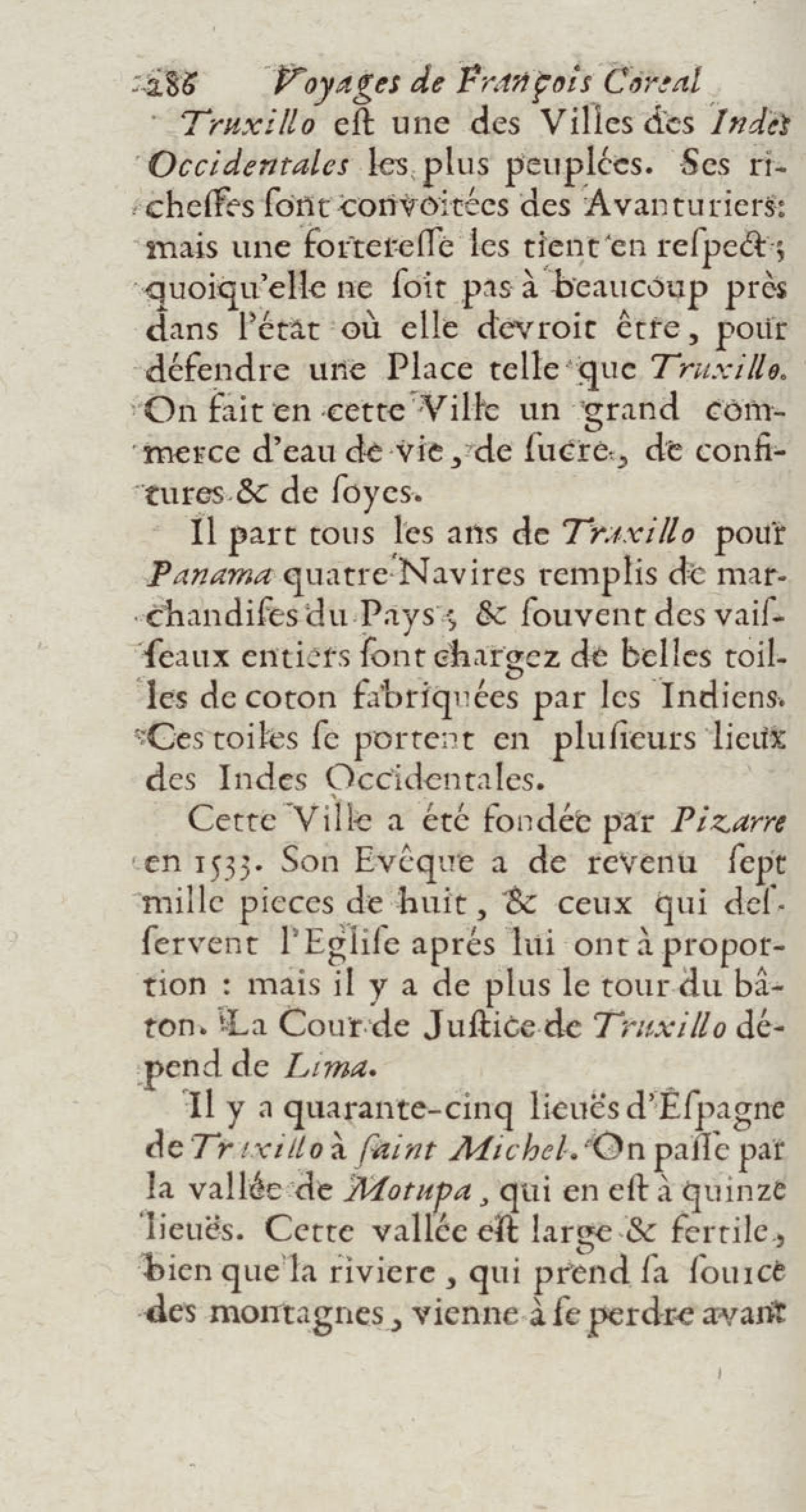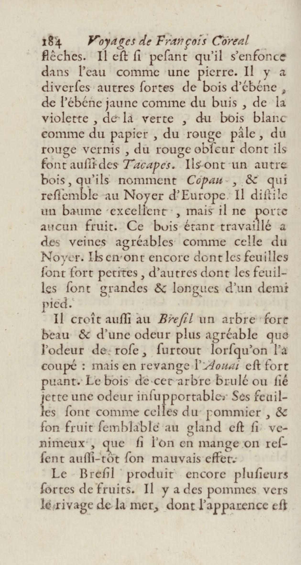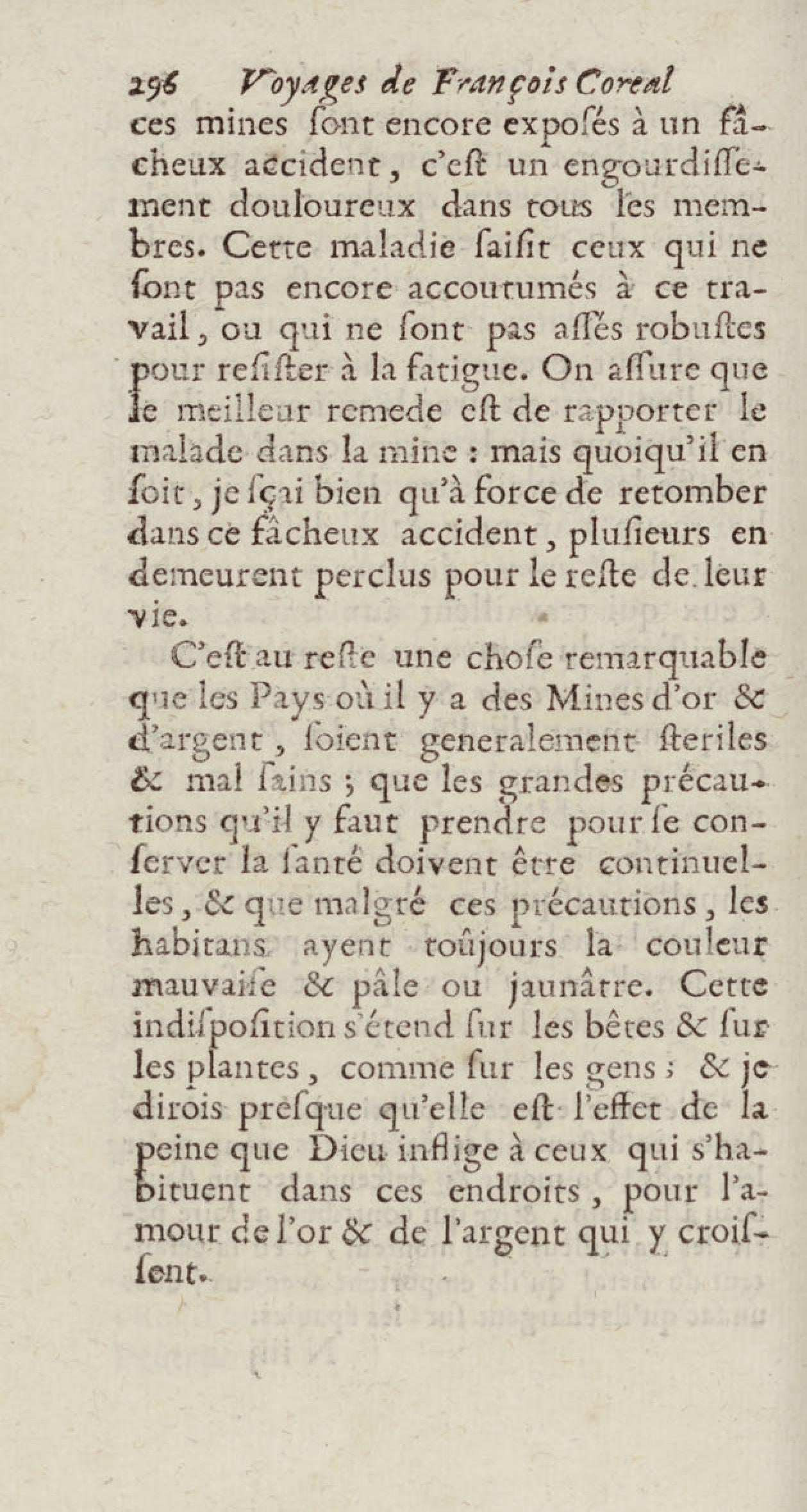 - Voyages de François Coreal aux Indes occidentales, contenant ce qu'il y a vû de plus remarquable pendant son séjour depuis 1666 jusqu'en 1697 : traduits de l'espagnol : avec une relation de la Guiane de Walter Raleigh, & le voyage de Narbrough à la mer du sud par le détroit de Magellan, &c. : nouvelle édition revûë, corrigée, & augmentée d'une nouvelle Découverte des Indes méridionales & des terres australes, enrichie de figures. Tome premier