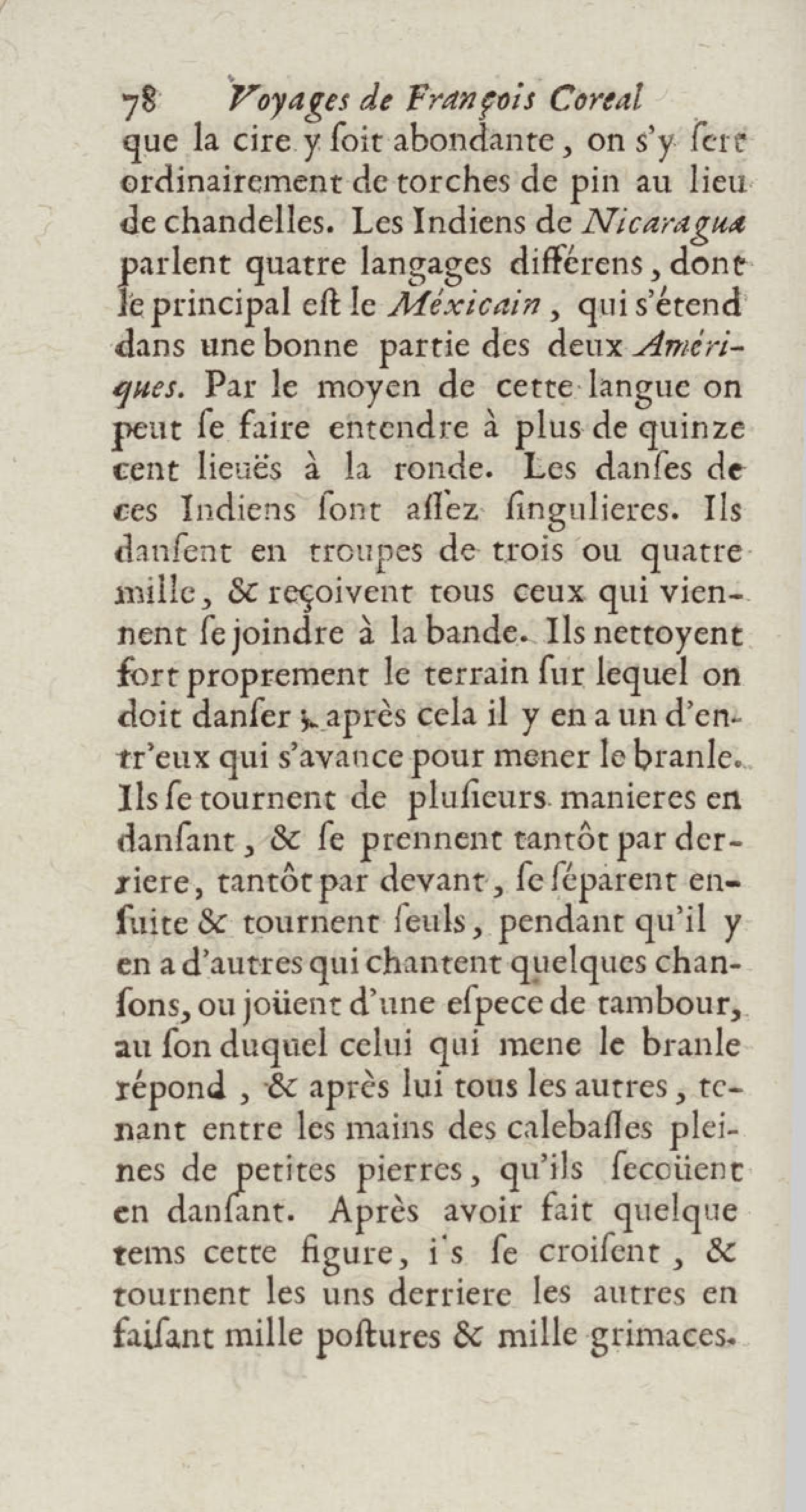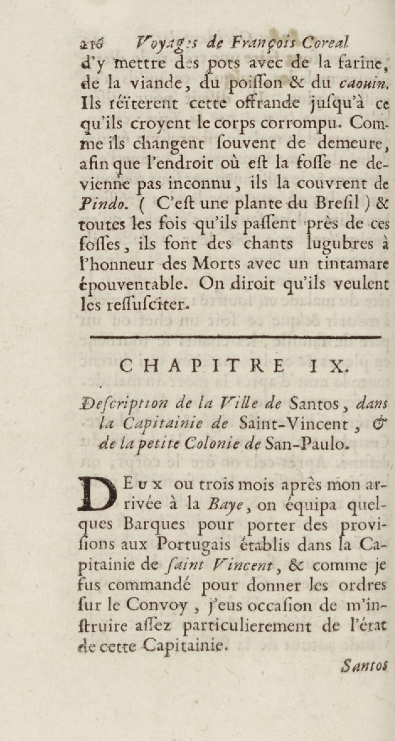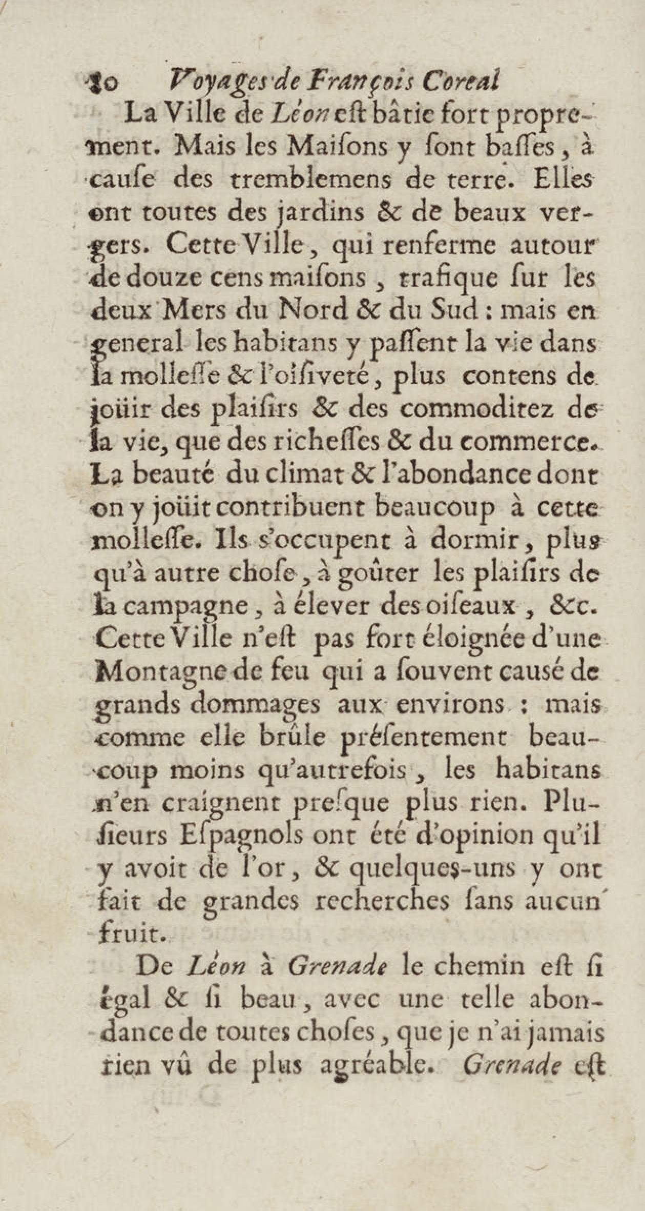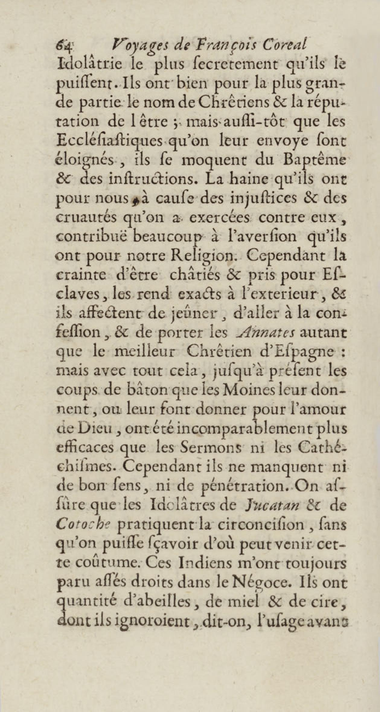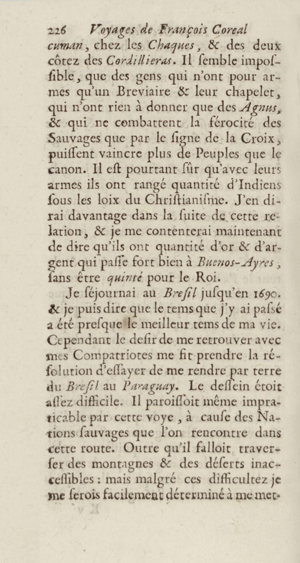 - Voyages de François Coreal aux Indes occidentales, contenant ce qu'il y a vû de plus remarquable pendant son séjour depuis 1666 jusqu'en 1697 : traduits de l'espagnol : avec une relation de la Guiane de Walter Raleigh, & le voyage de Narbrough à la mer du sud par le détroit de Magellan, &c. : nouvelle édition revûë, corrigée, & augmentée d'une nouvelle Découverte des Indes méridionales & des terres australes, enrichie de figures. Tome premier