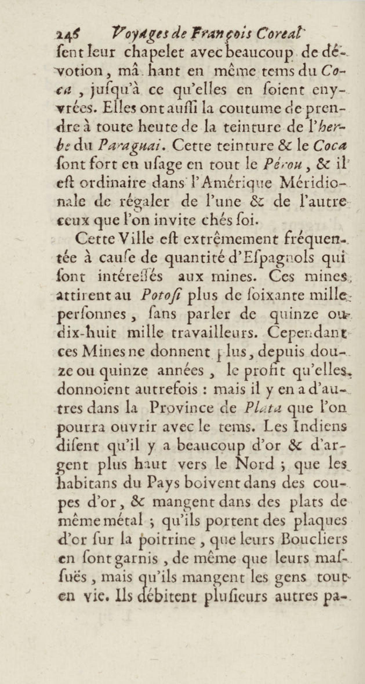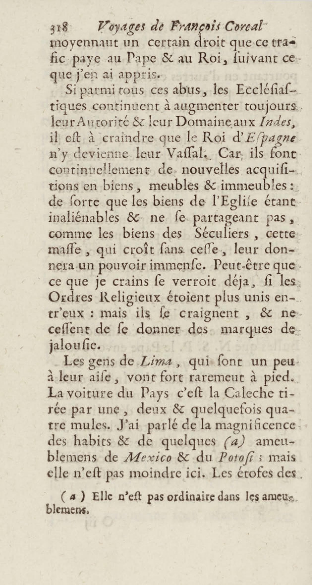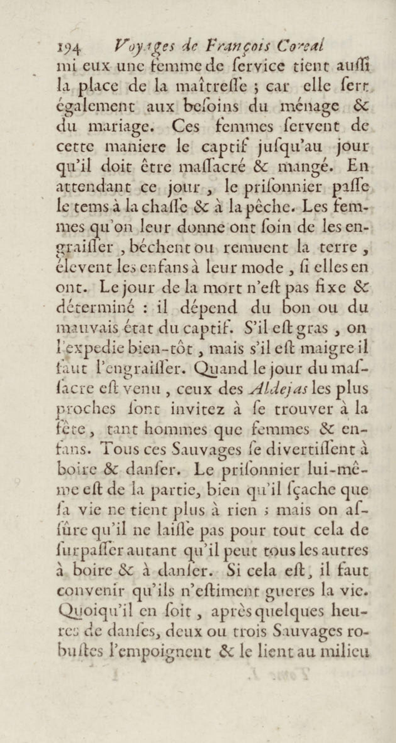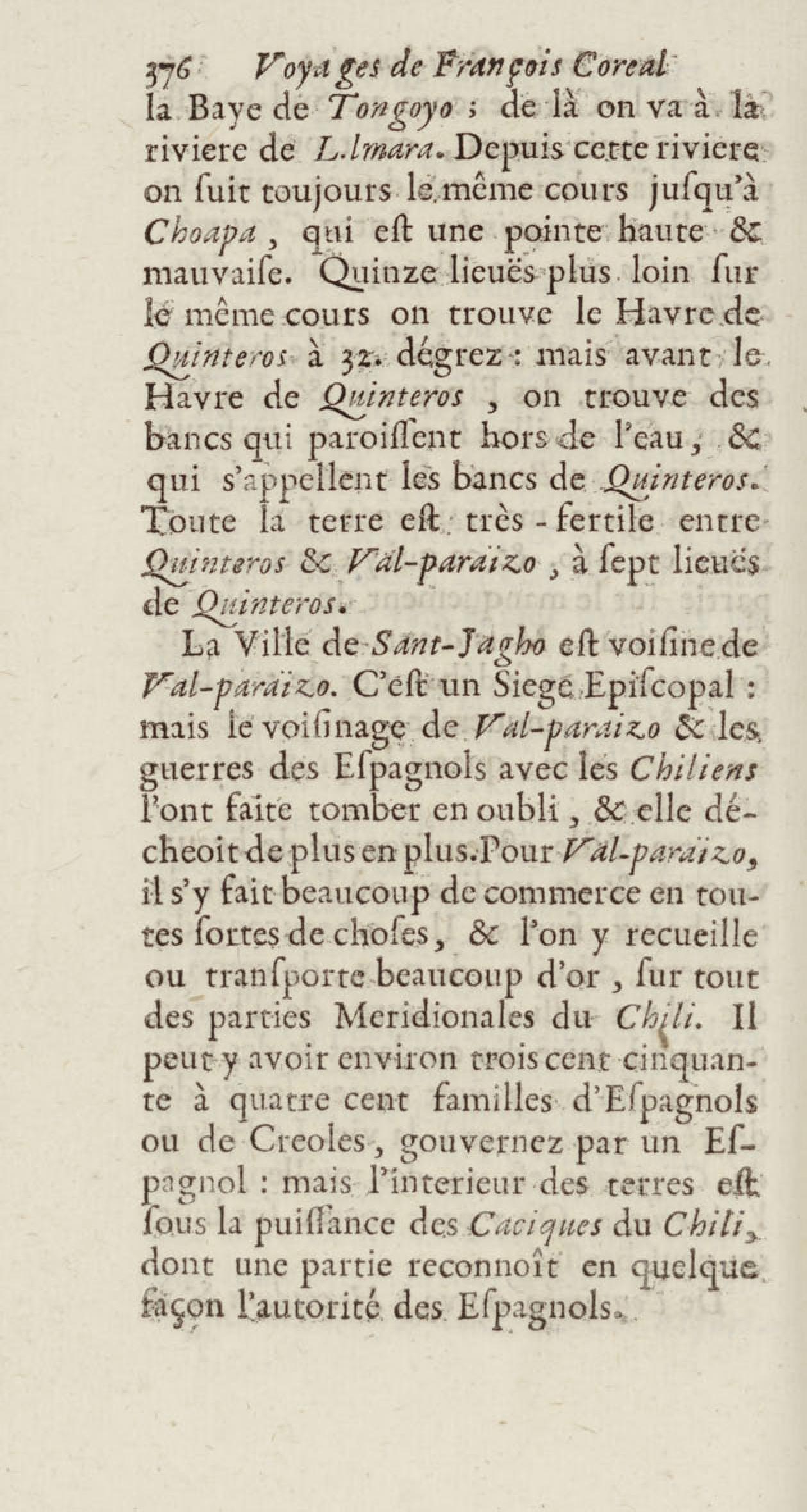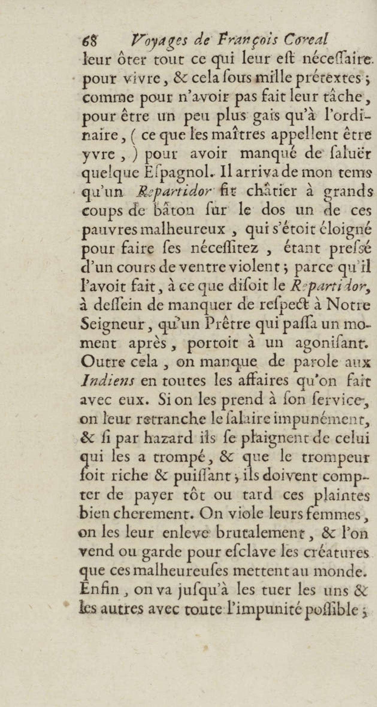 - Voyages de François Coreal aux Indes occidentales, contenant ce qu'il y a vû de plus remarquable pendant son séjour depuis 1666 jusqu'en 1697 : traduits de l'espagnol : avec une relation de la Guiane de Walter Raleigh, & le voyage de Narbrough à la mer du sud par le détroit de Magellan, &c. : nouvelle édition revûë, corrigée, & augmentée d'une nouvelle Découverte des Indes méridionales & des terres australes, enrichie de figures. Tome premier