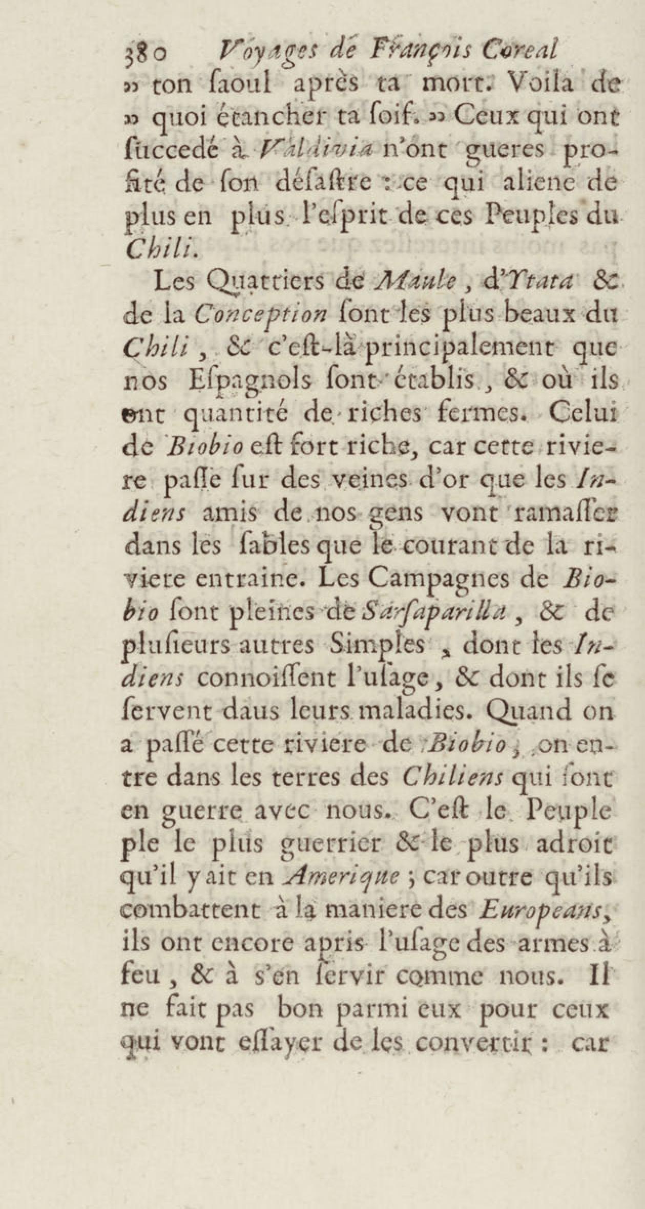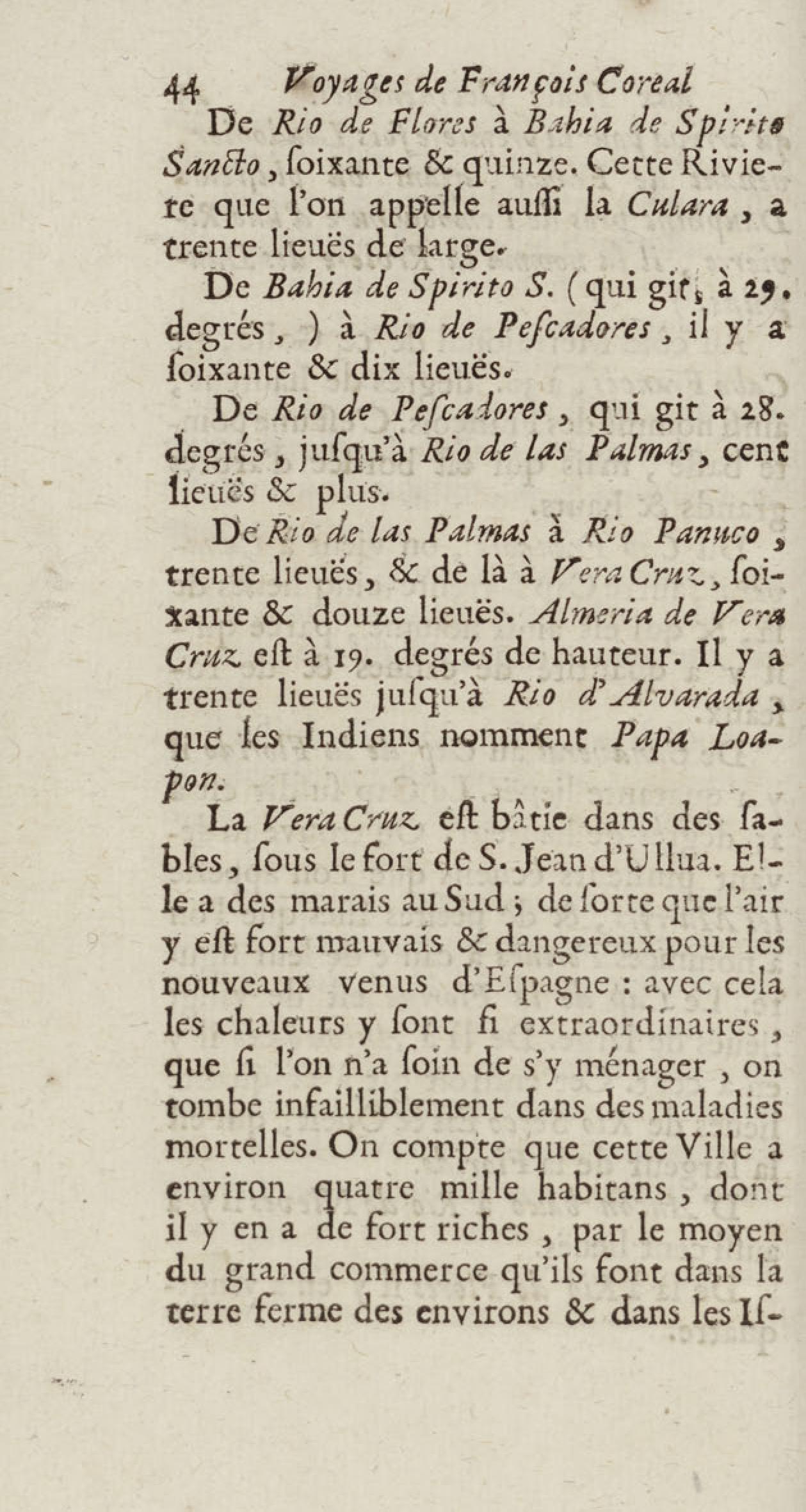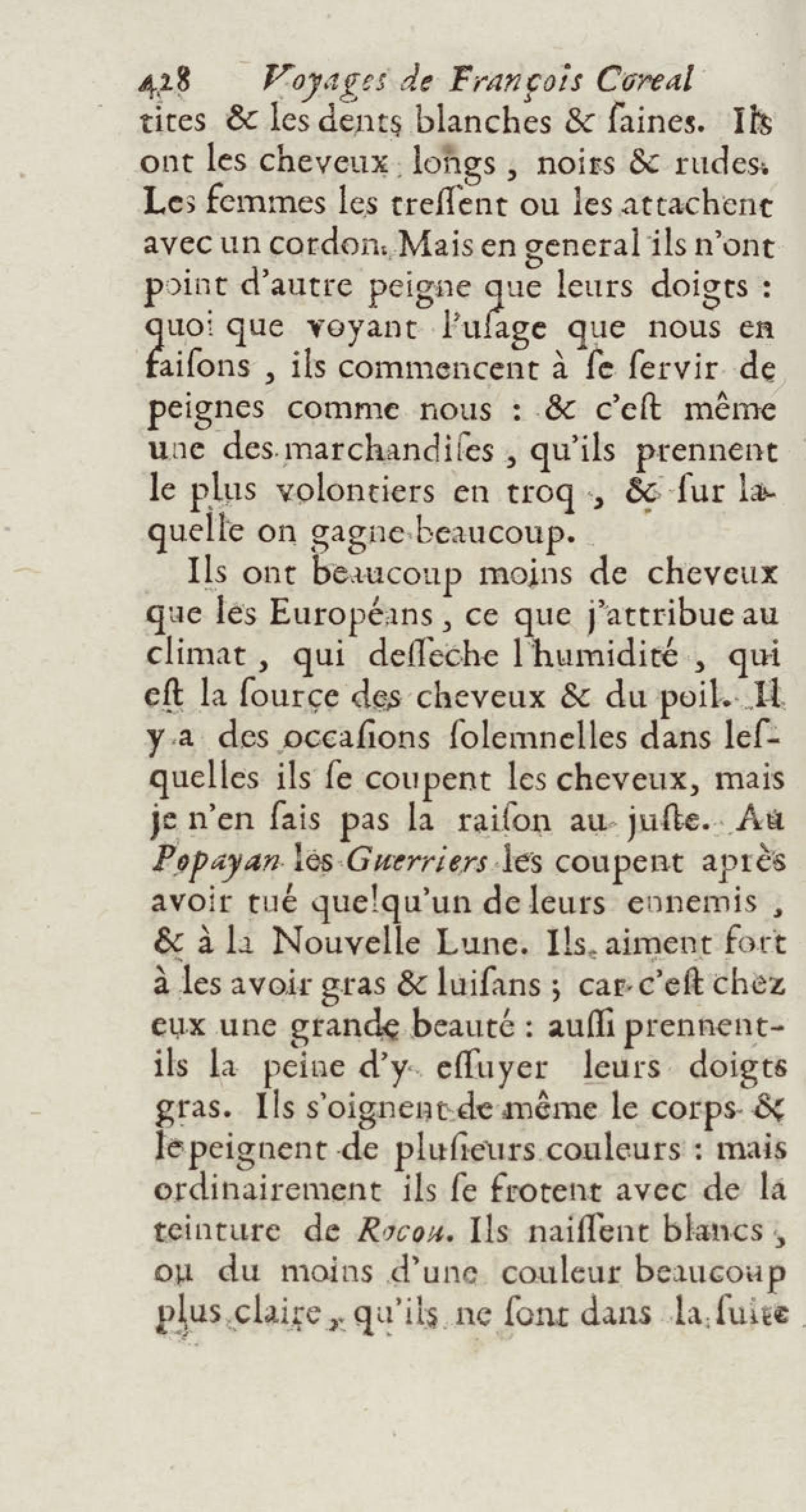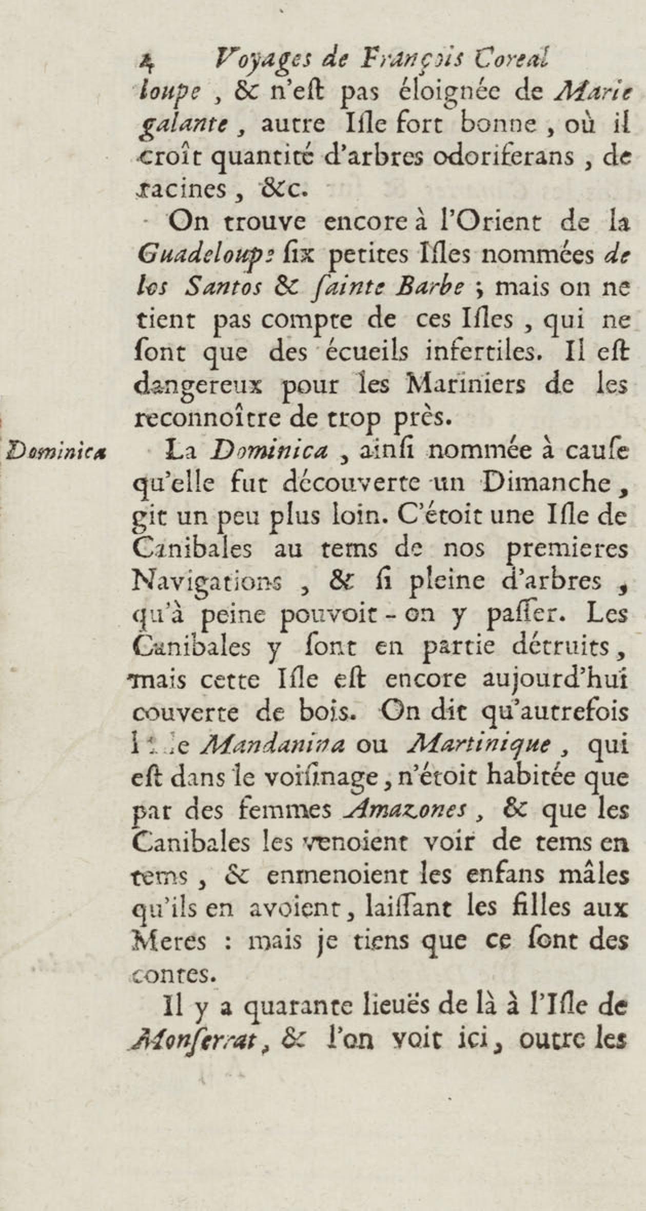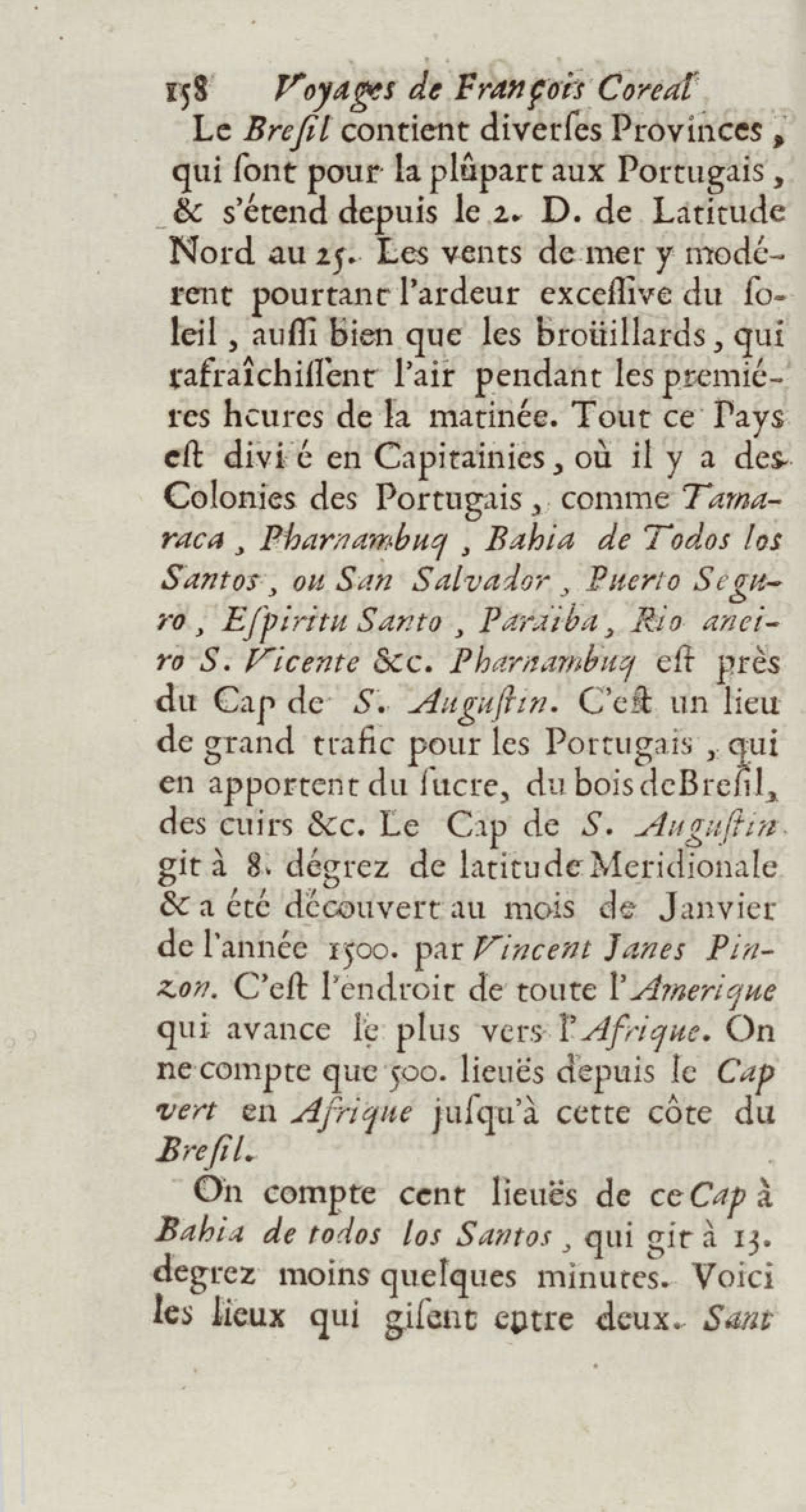 - Voyages de François Coreal aux Indes occidentales, contenant ce qu'il y a vû de plus remarquable pendant son séjour depuis 1666 jusqu'en 1697 : traduits de l'espagnol : avec une relation de la Guiane de Walter Raleigh, & le voyage de Narbrough à la mer du sud par le détroit de Magellan, &c. : nouvelle édition revûë, corrigée, & augmentée d'une nouvelle Découverte des Indes méridionales & des terres australes, enrichie de figures. Tome premier