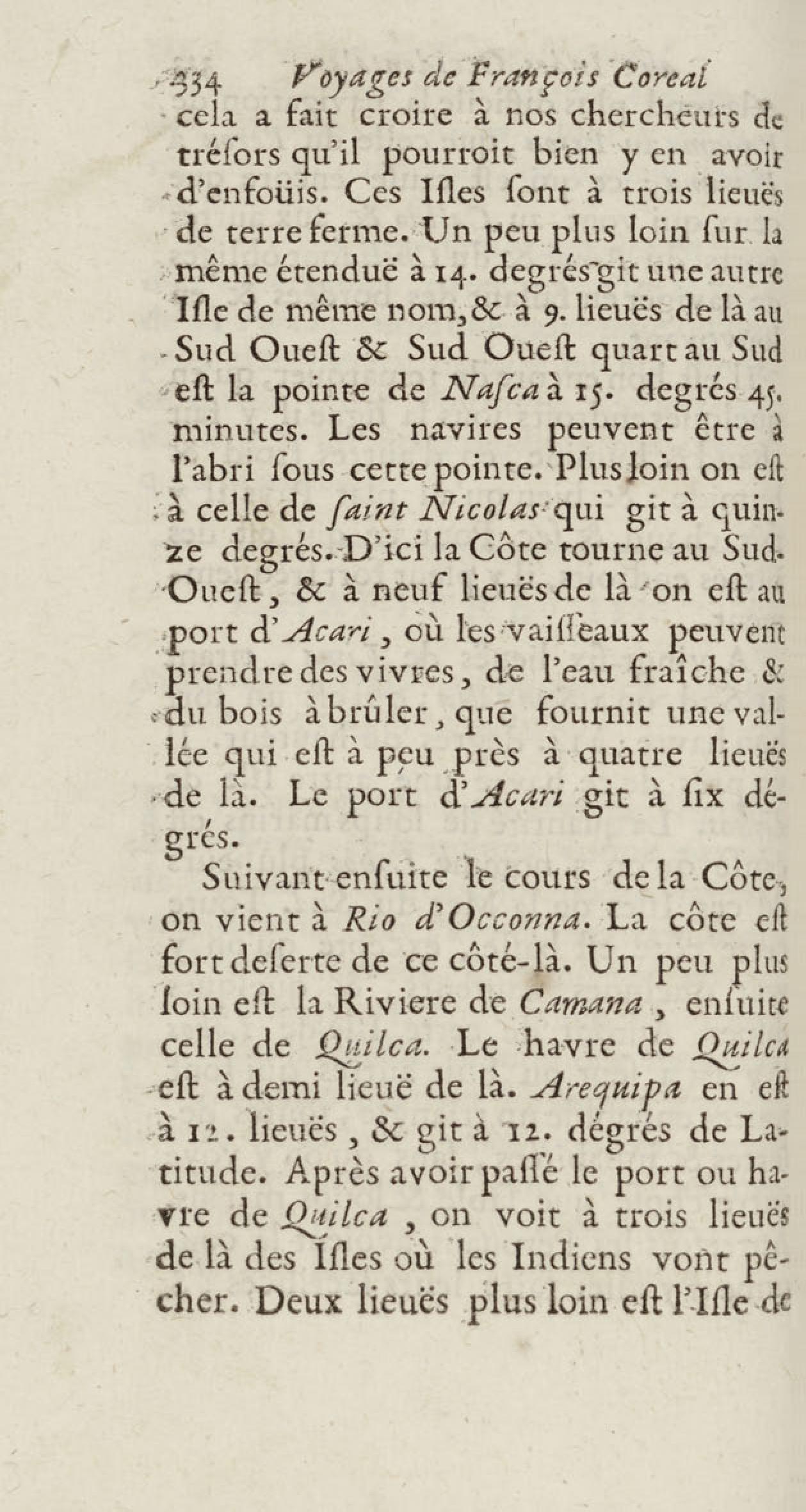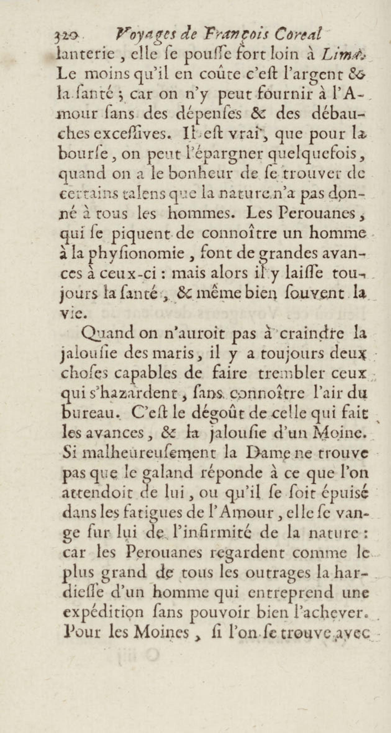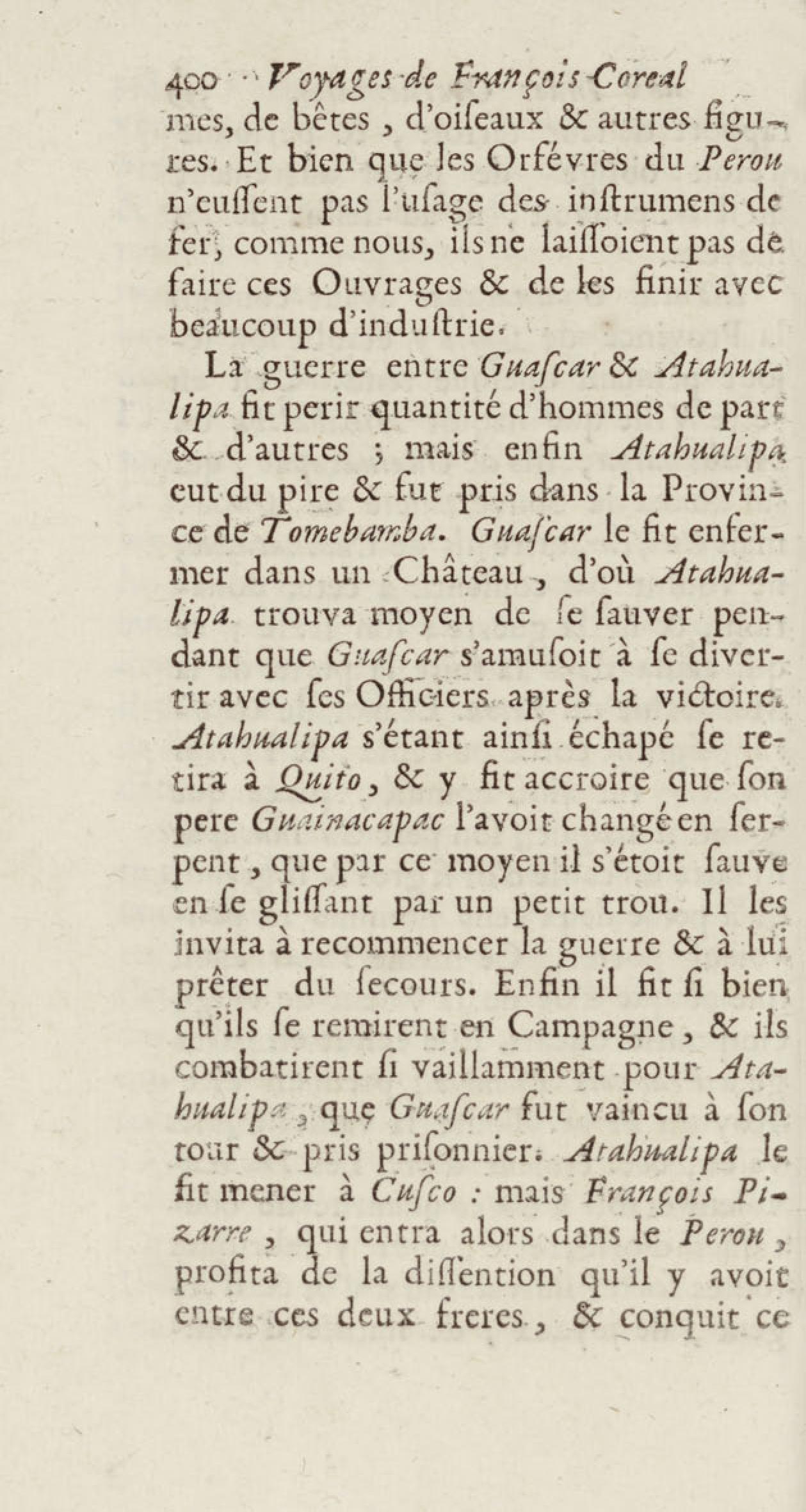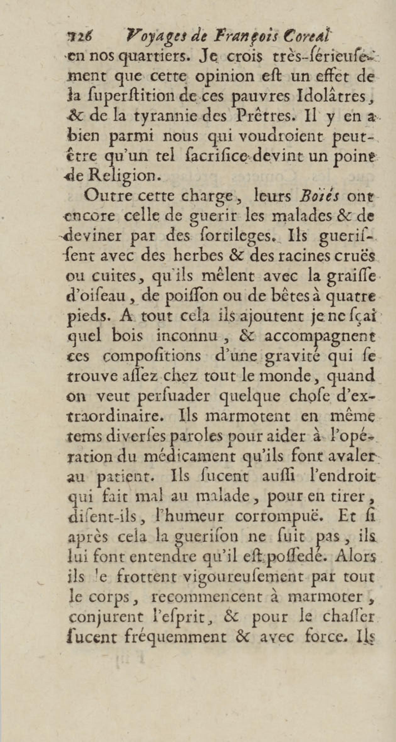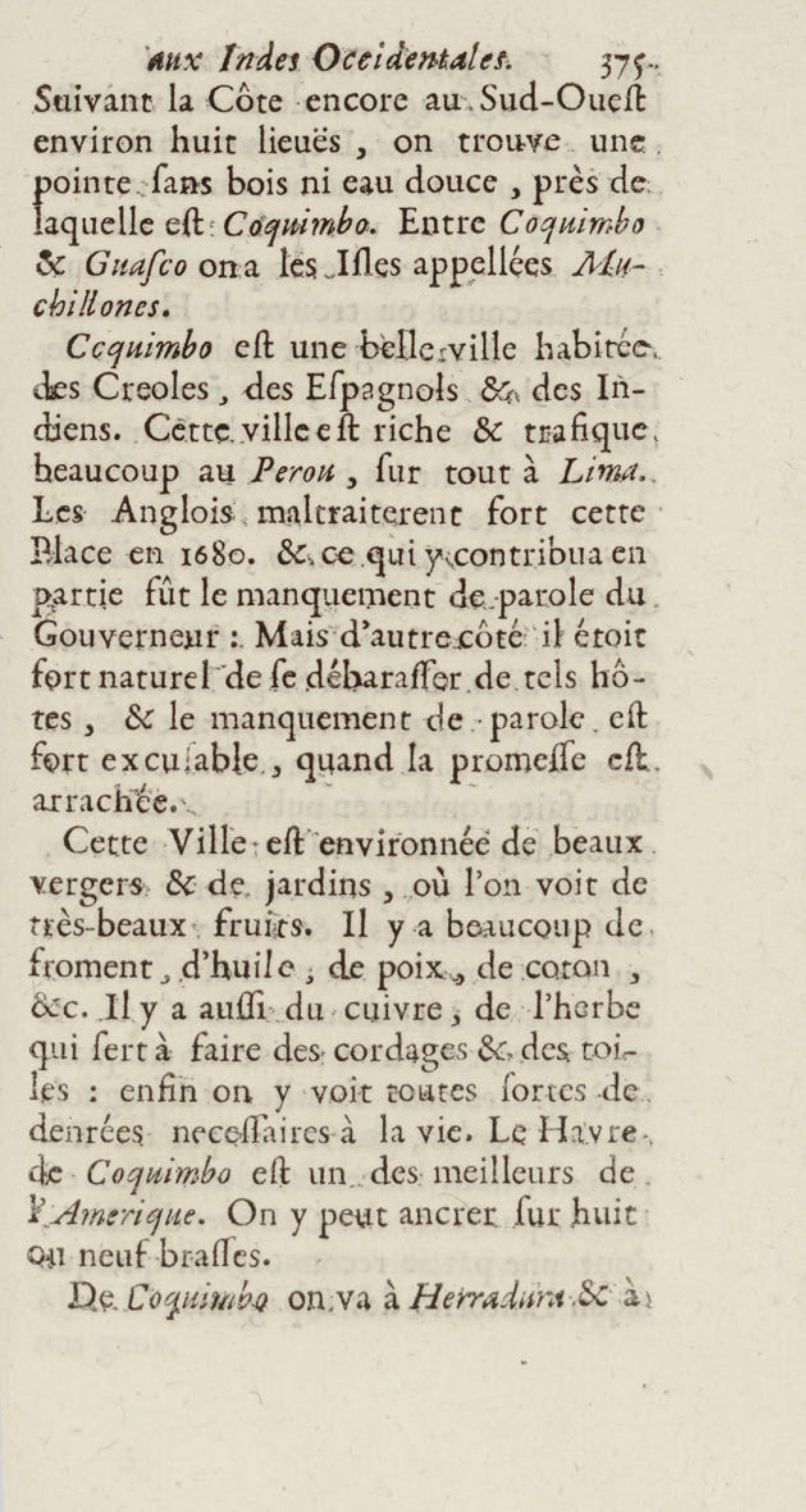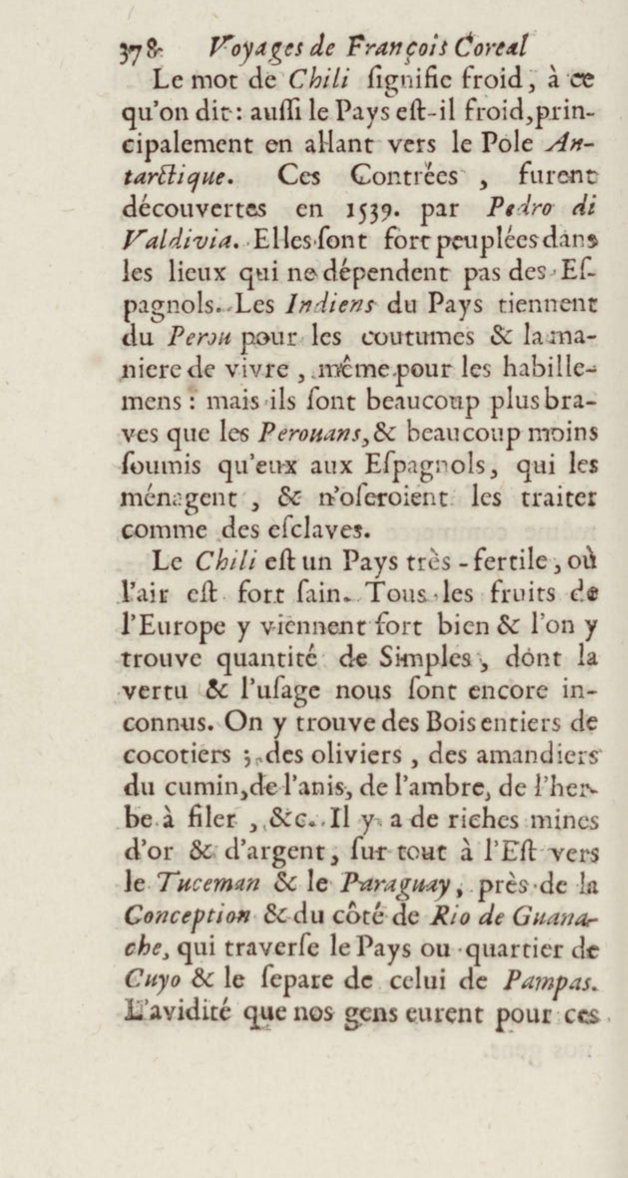 - Voyages de François Coreal aux Indes occidentales, contenant ce qu'il y a vû de plus remarquable pendant son séjour depuis 1666 jusqu'en 1697 : traduits de l'espagnol : avec une relation de la Guiane de Walter Raleigh, & le voyage de Narbrough à la mer du sud par le détroit de Magellan, &c. : nouvelle édition revûë, corrigée, & augmentée d'une nouvelle Découverte des Indes méridionales & des terres australes, enrichie de figures. Tome premier