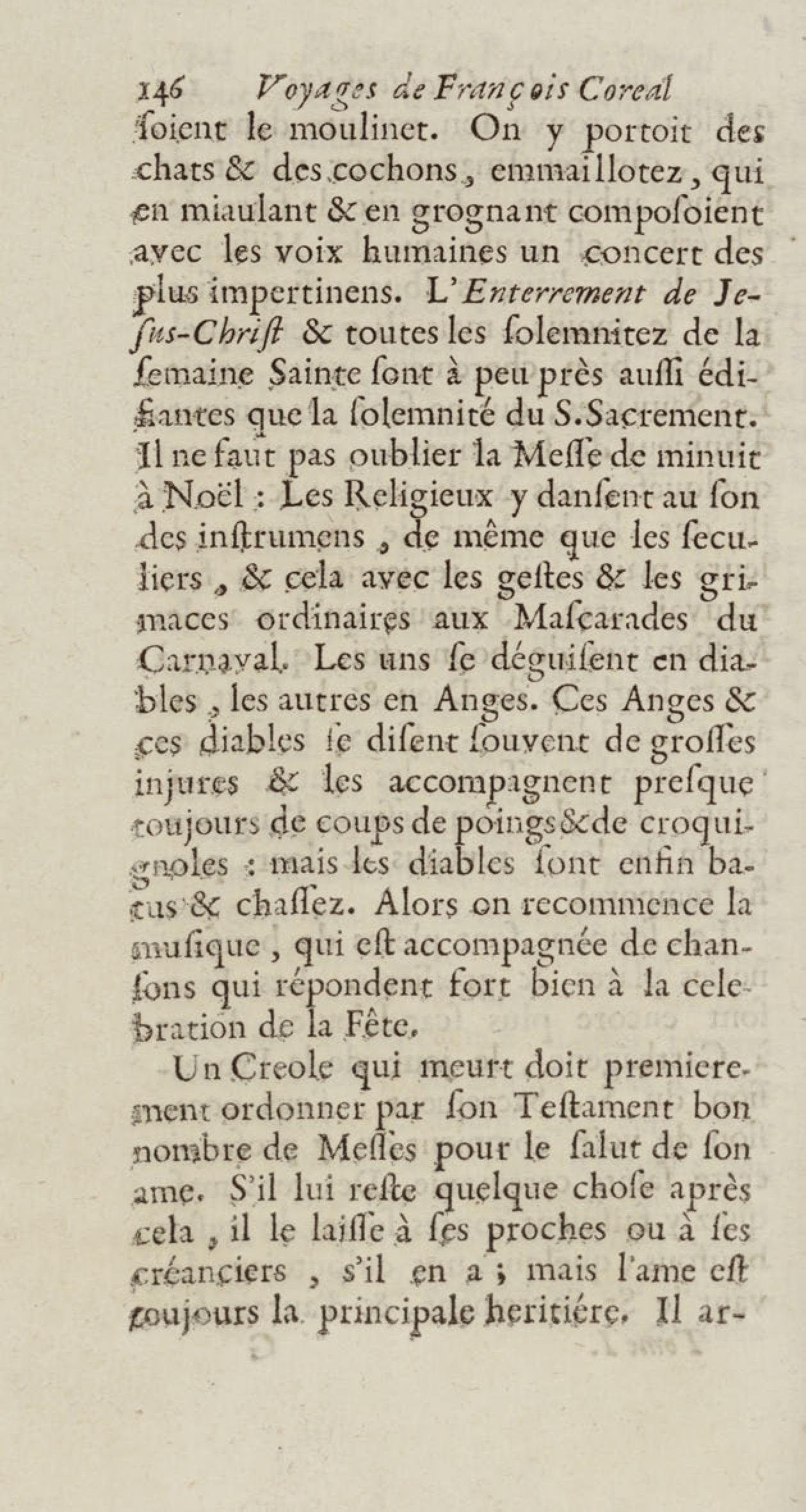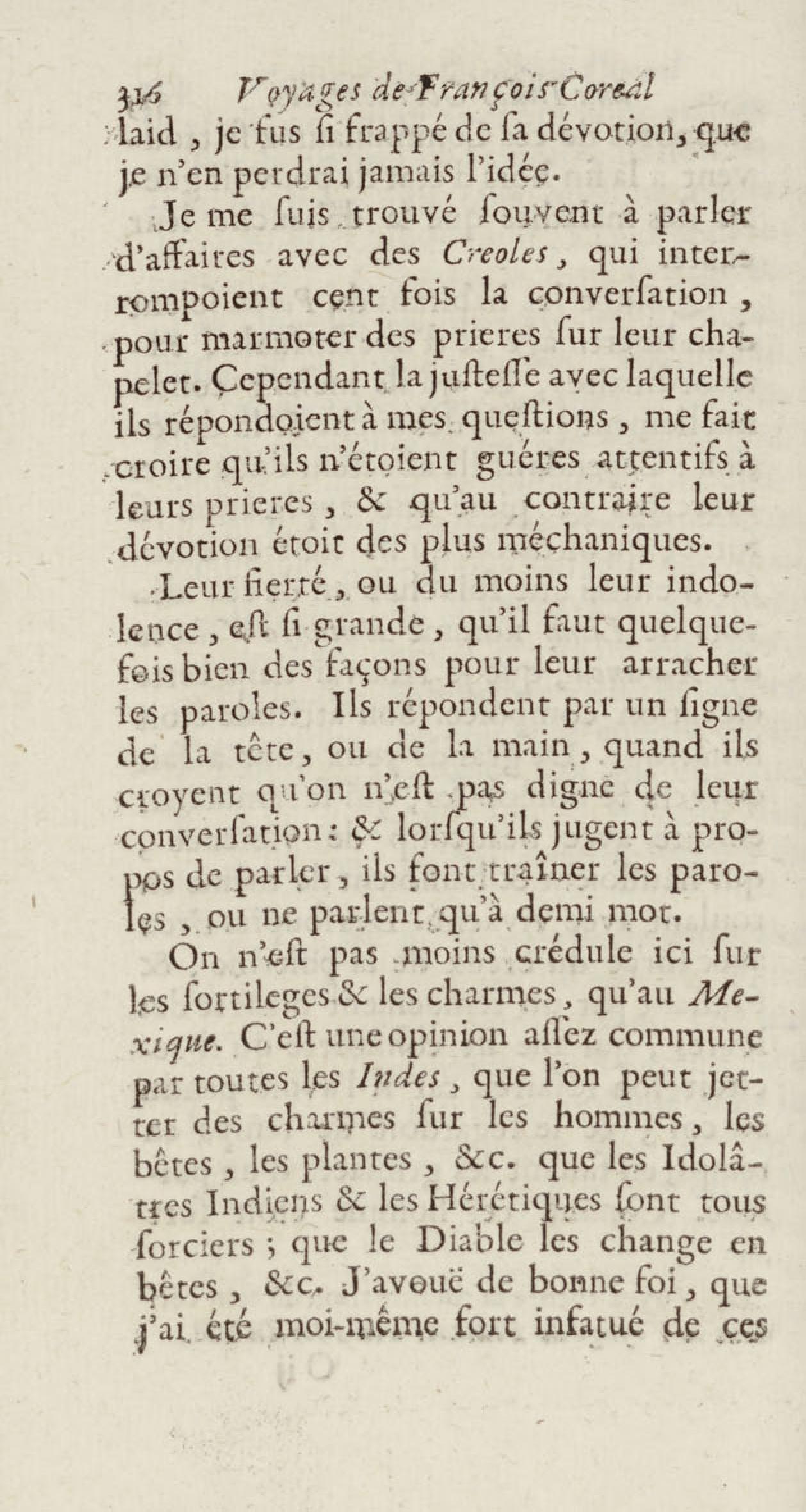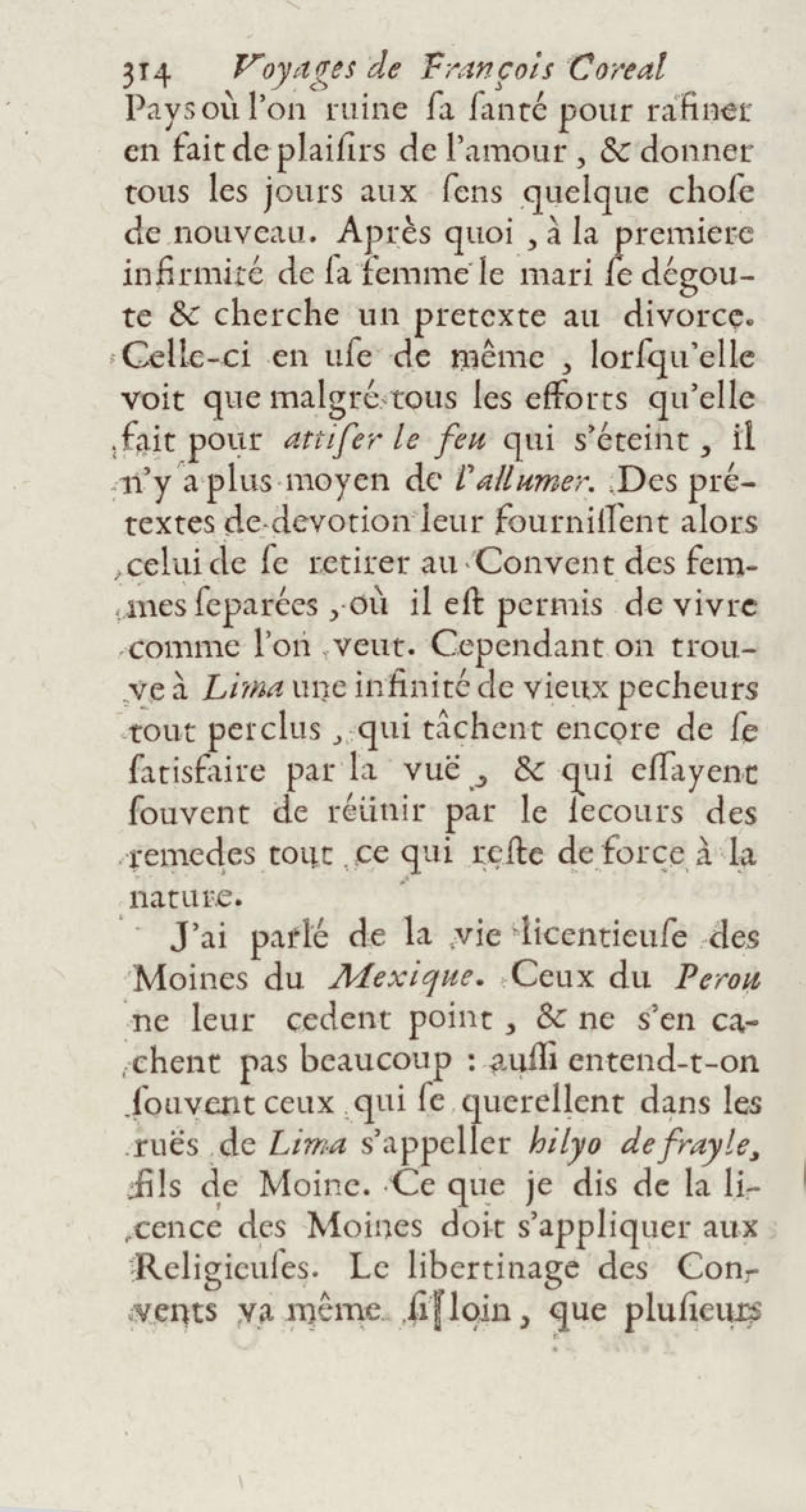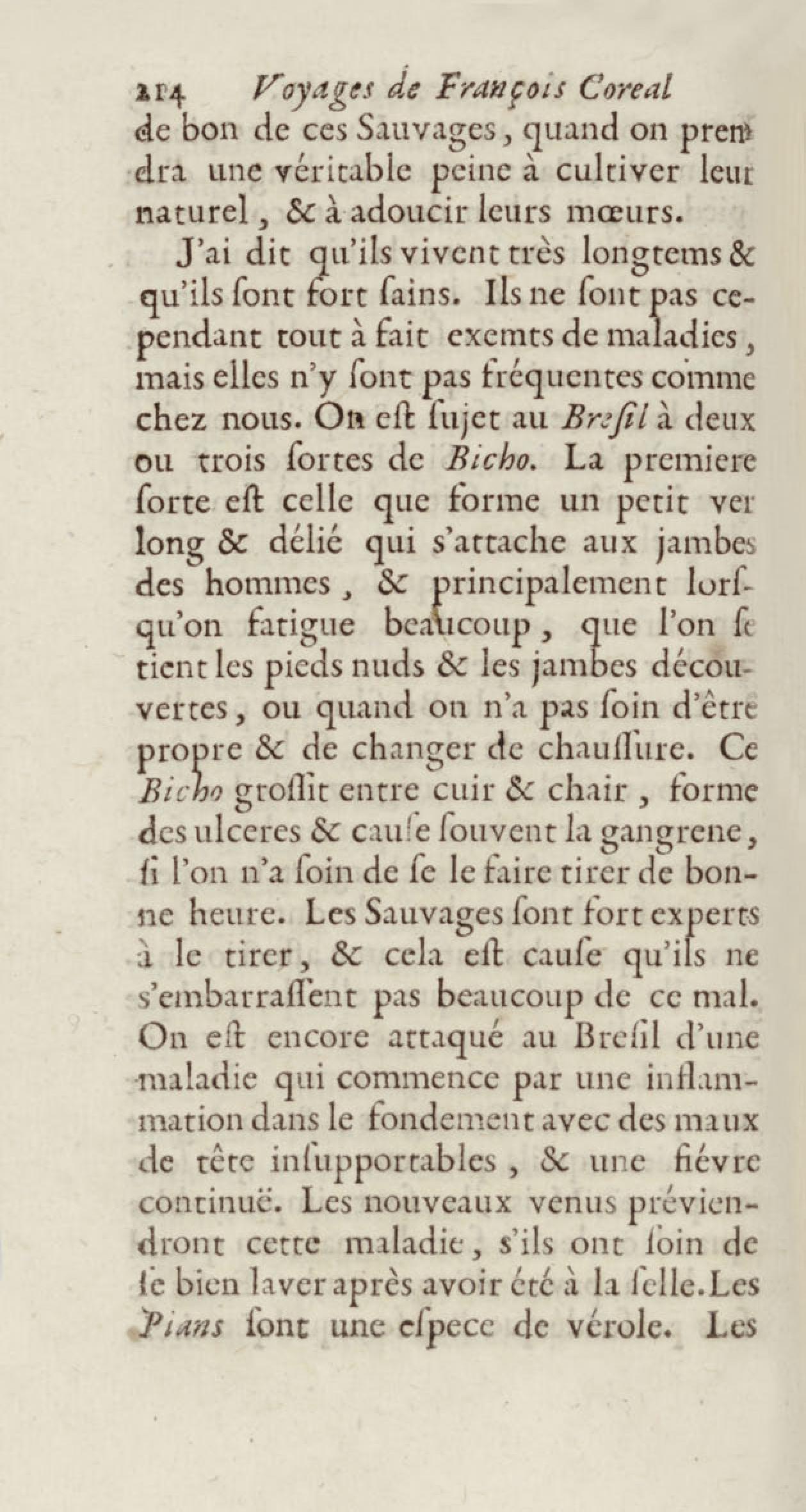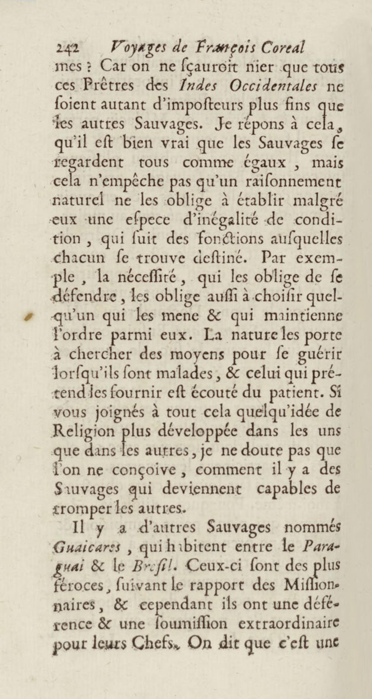 - Voyages de François Coreal aux Indes occidentales, contenant ce qu'il y a vû de plus remarquable pendant son séjour depuis 1666 jusqu'en 1697 : traduits de l'espagnol : avec une relation de la Guiane de Walter Raleigh, & le voyage de Narbrough à la mer du sud par le détroit de Magellan, &c. : nouvelle édition revûë, corrigée, & augmentée d'une nouvelle Découverte des Indes méridionales & des terres australes, enrichie de figures. Tome premier
