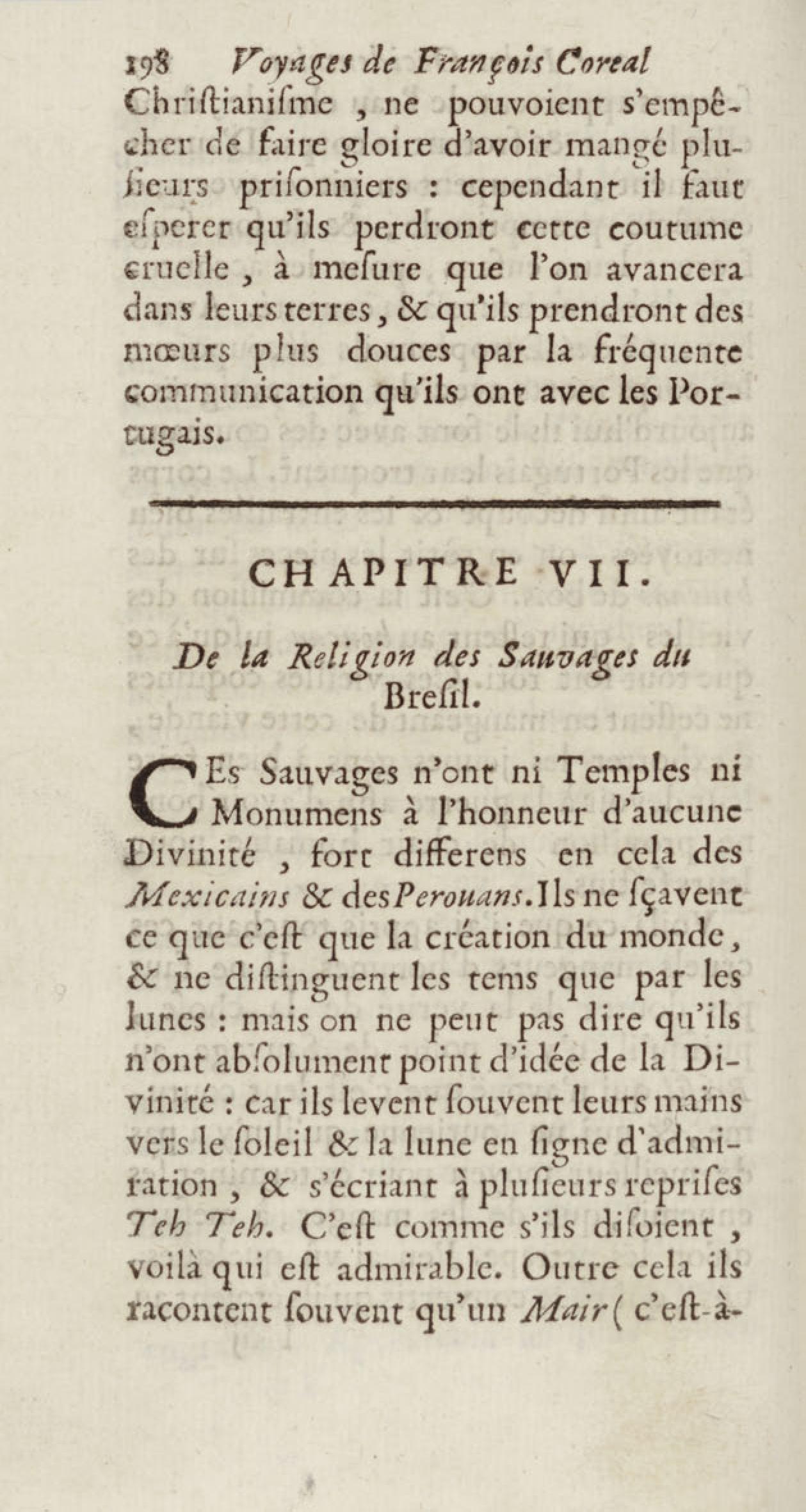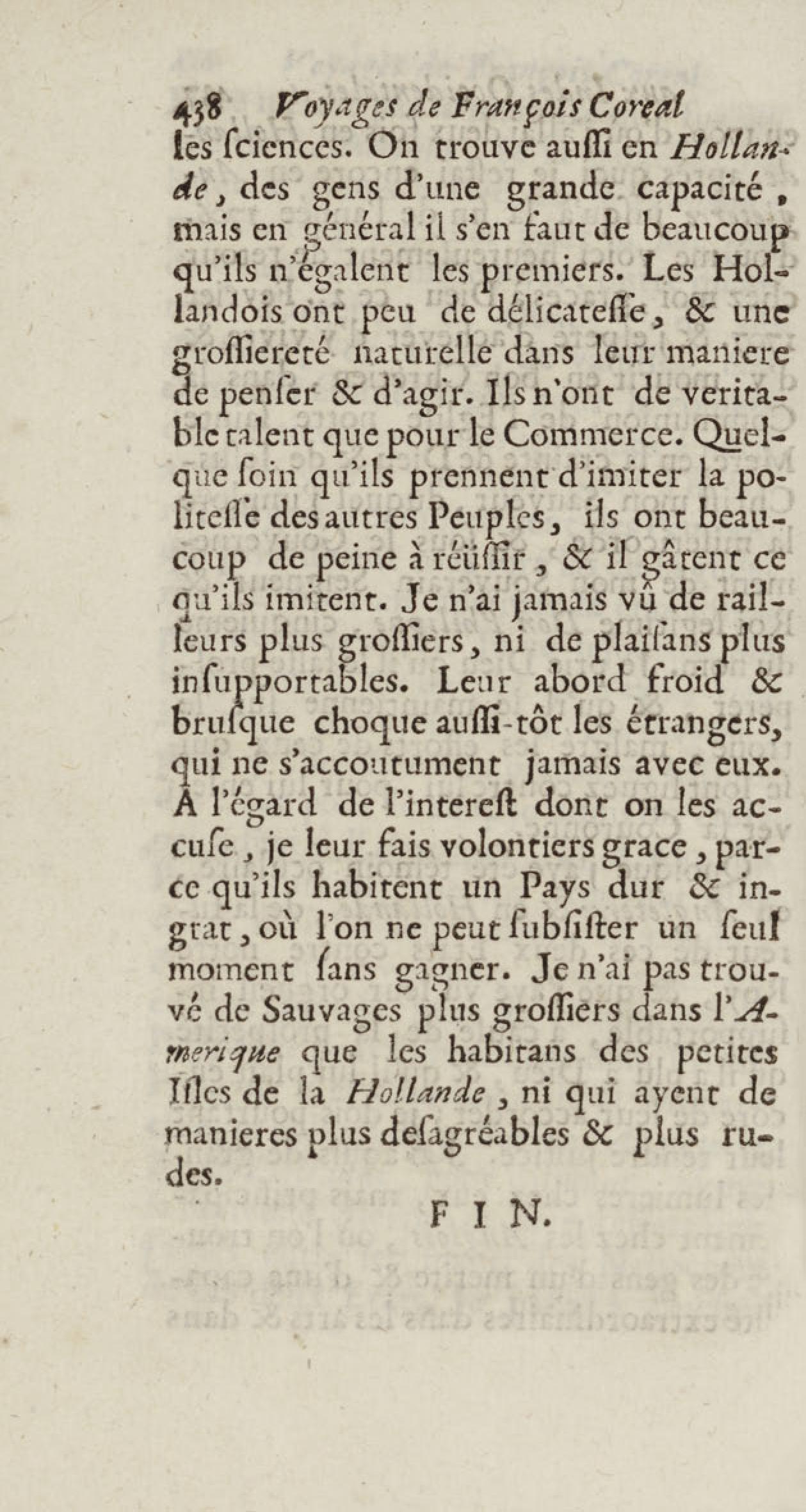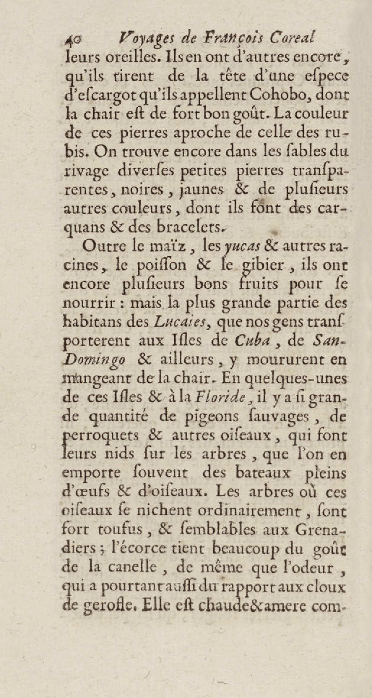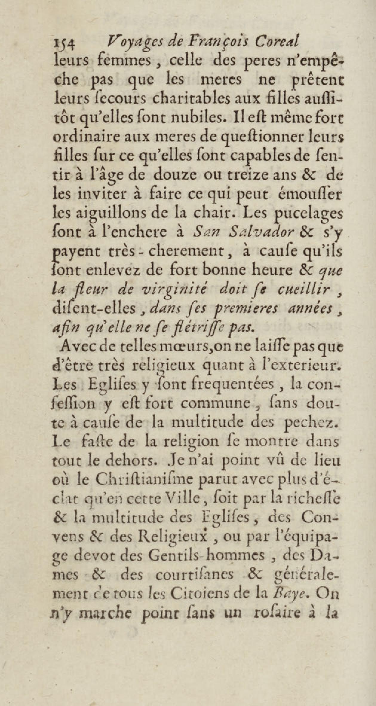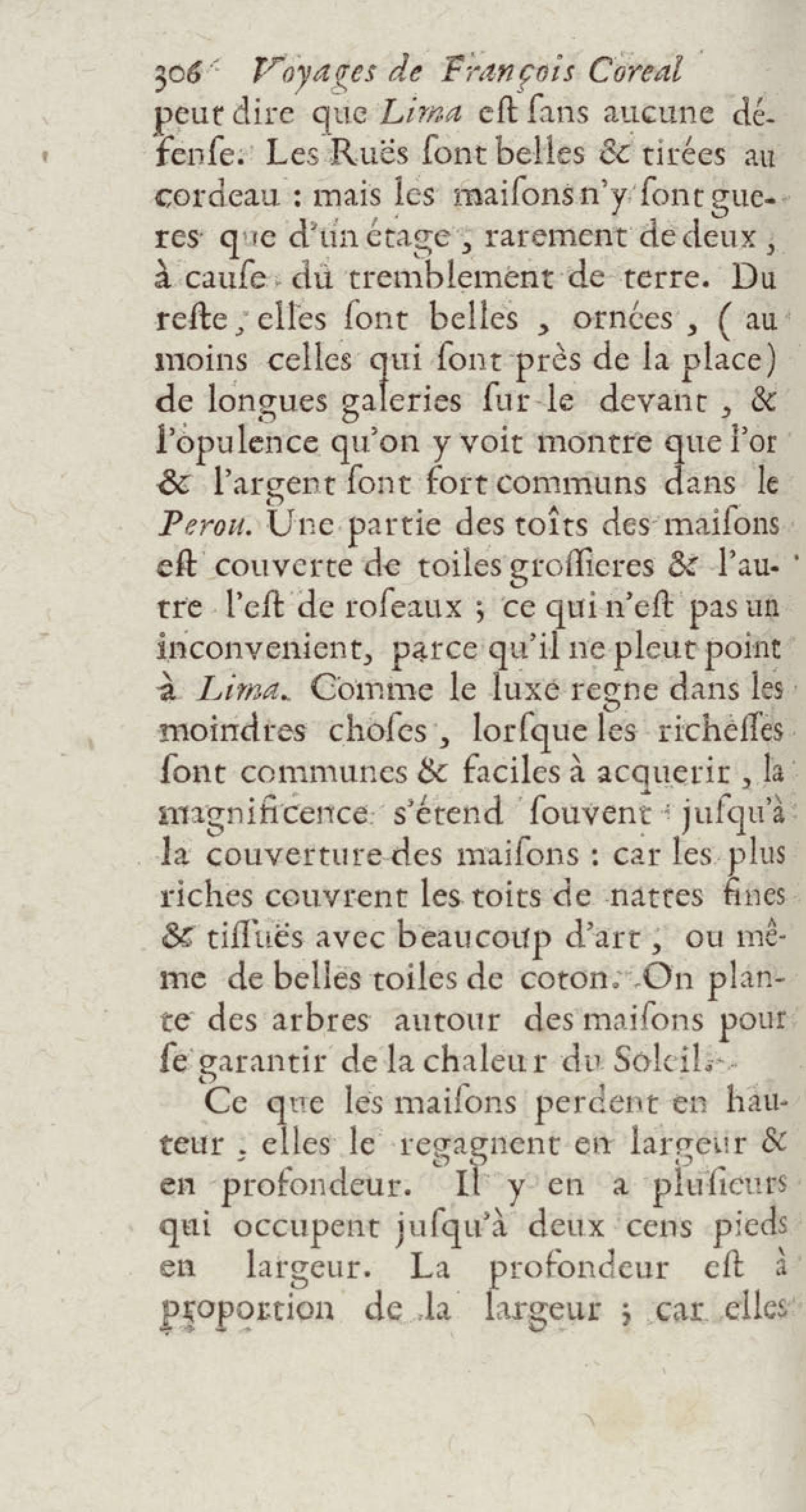- Voyages de François Coreal aux Indes occidentales, contenant ce qu'il y a vû de plus remarquable pendant son séjour depuis 1666 jusqu'en 1697 : traduits de l'espagnol : avec une relation de la Guiane de Walter Raleigh, & le voyage de Narbrough à la mer du sud par le détroit de Magellan, &c. : nouvelle édition revûë, corrigée, & augmentée d'une nouvelle Découverte des Indes méridionales & des terres australes, enrichie de figures. Tome premier