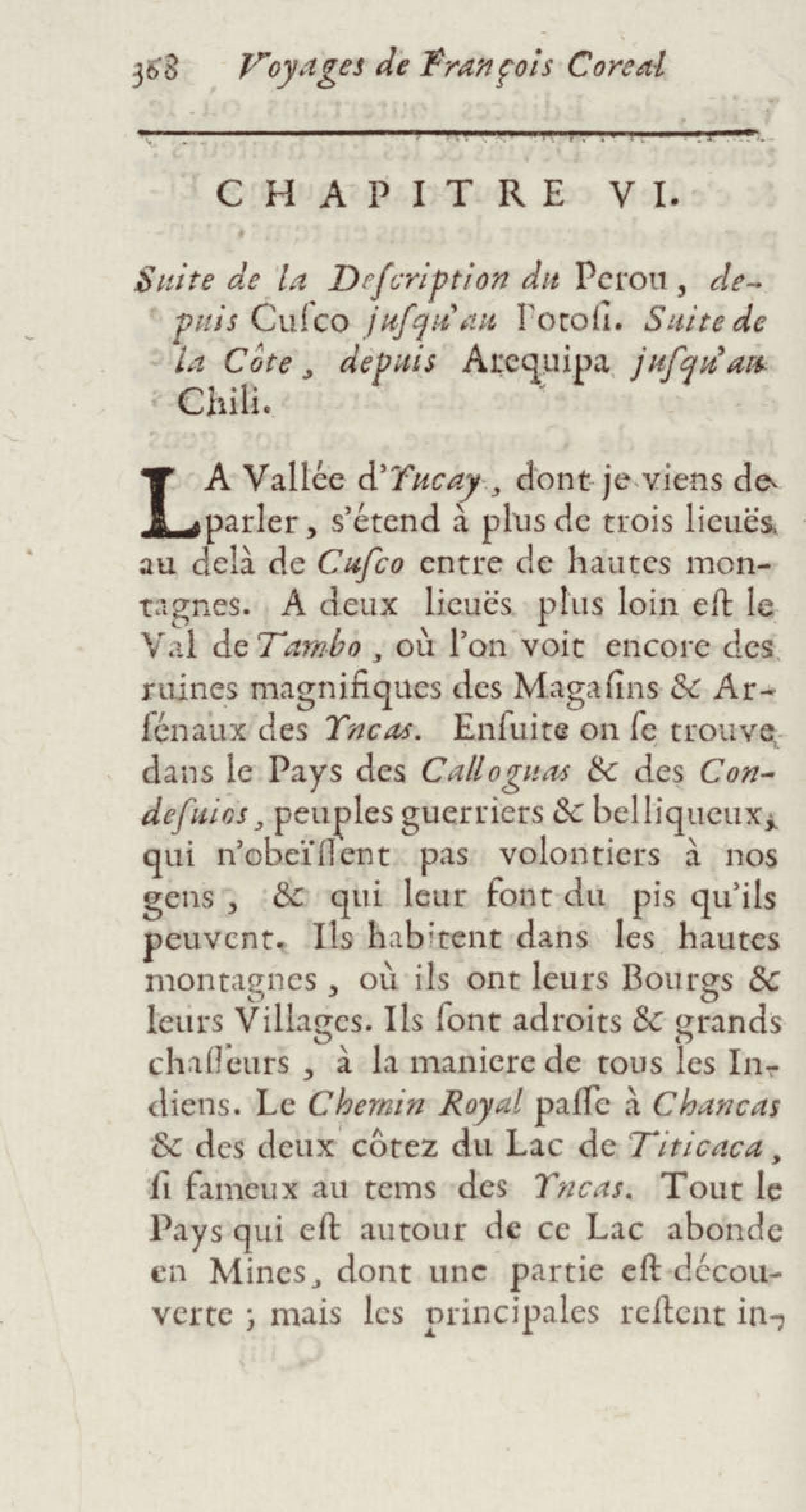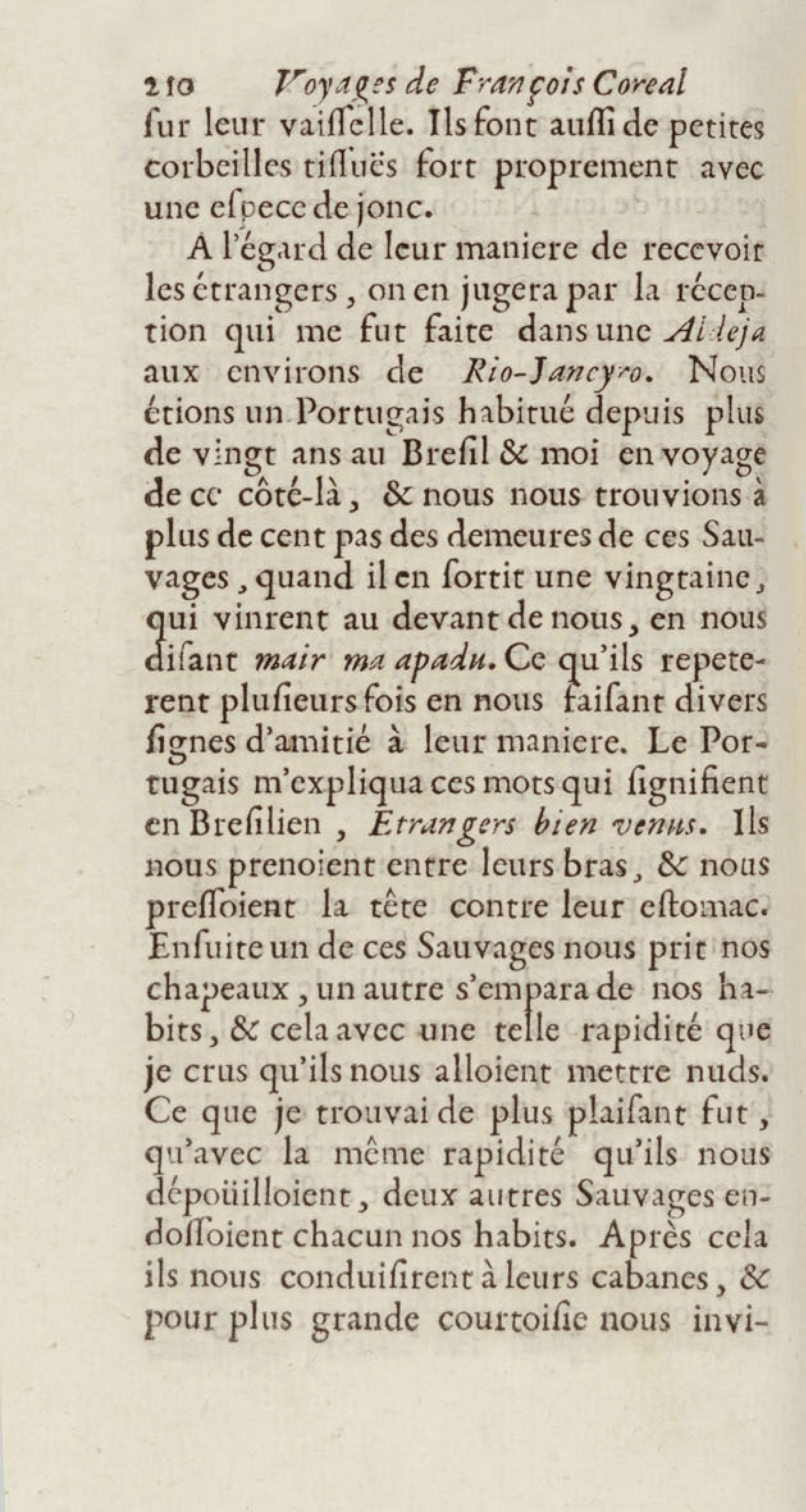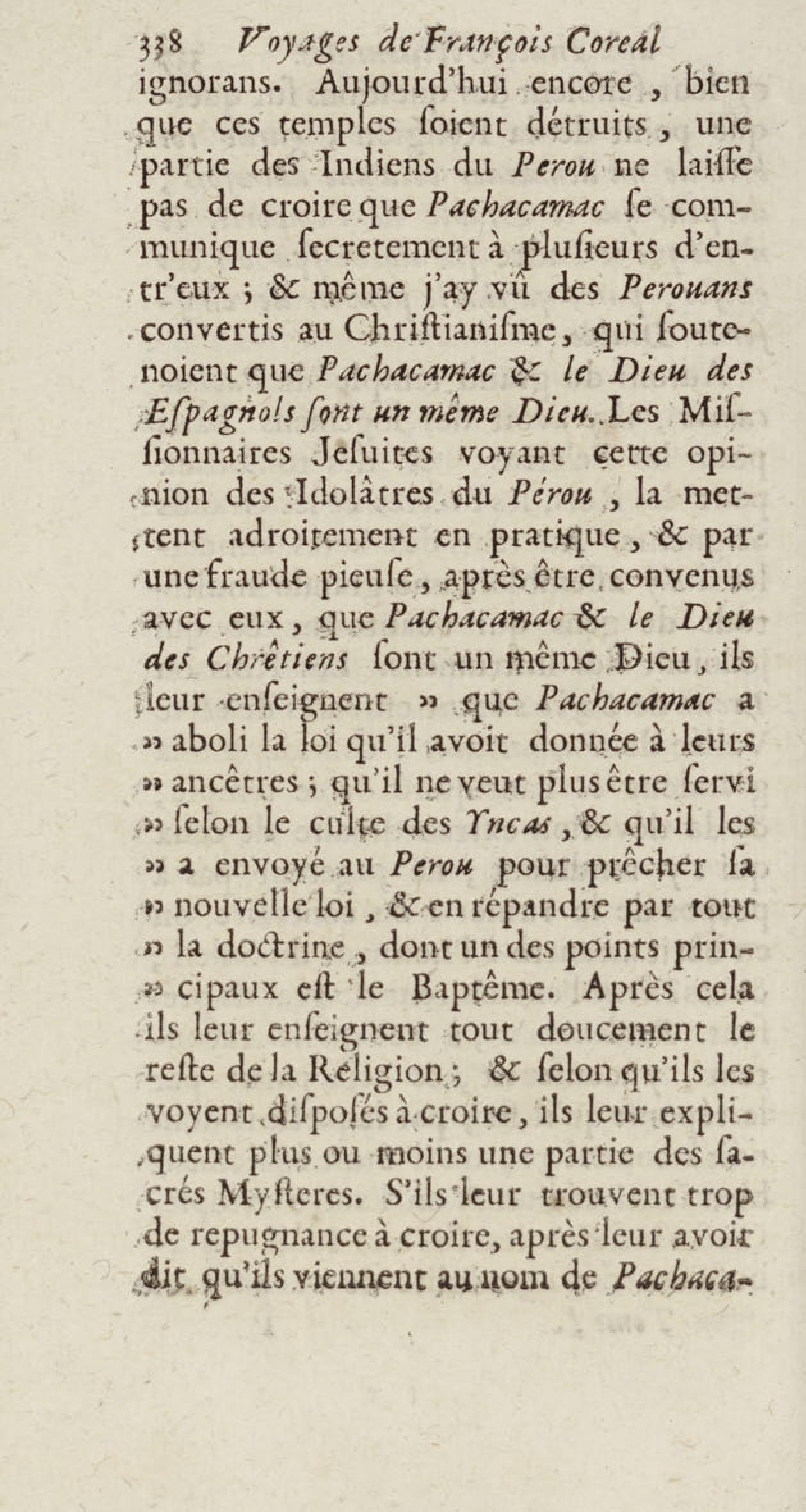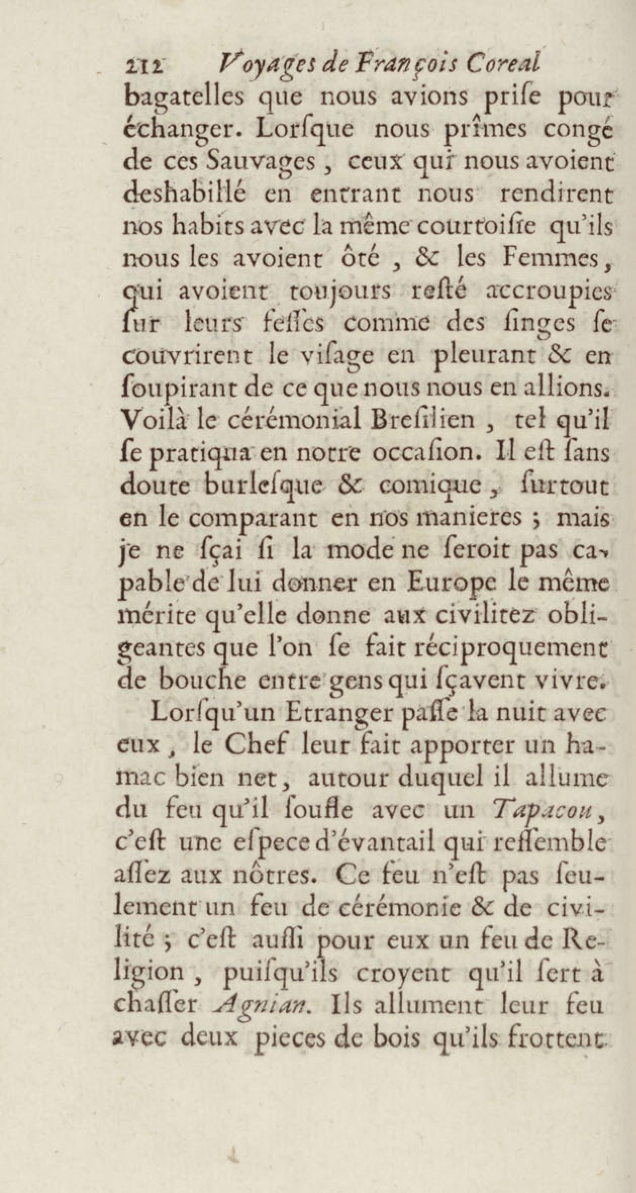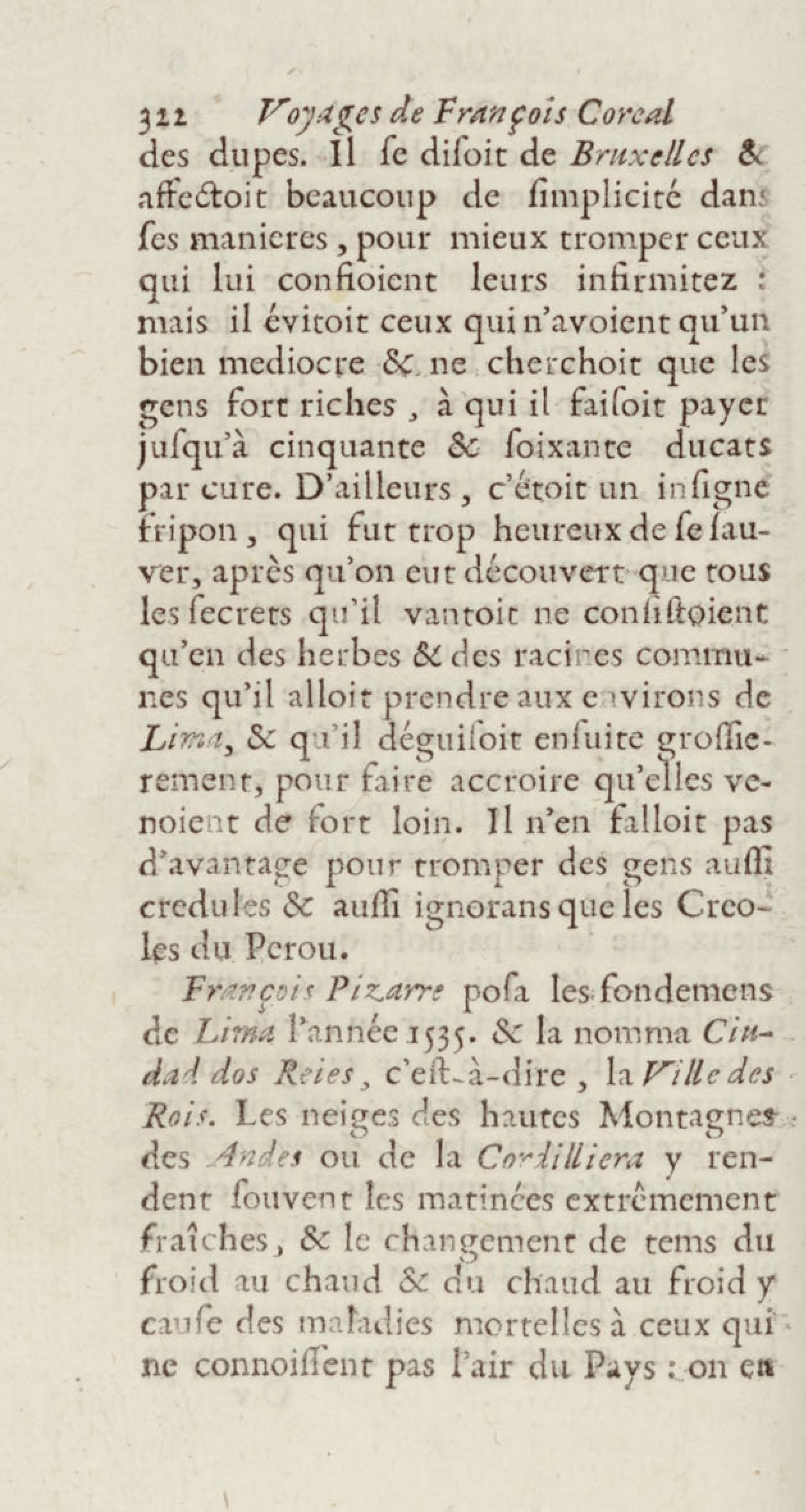 - Voyages de François Coreal aux Indes occidentales, contenant ce qu'il y a vû de plus remarquable pendant son séjour depuis 1666 jusqu'en 1697 : traduits de l'espagnol : avec une relation de la Guiane de Walter Raleigh, & le voyage de Narbrough à la mer du sud par le détroit de Magellan, &c. : nouvelle édition revûë, corrigée, & augmentée d'une nouvelle Découverte des Indes méridionales & des terres australes, enrichie de figures. Tome premier