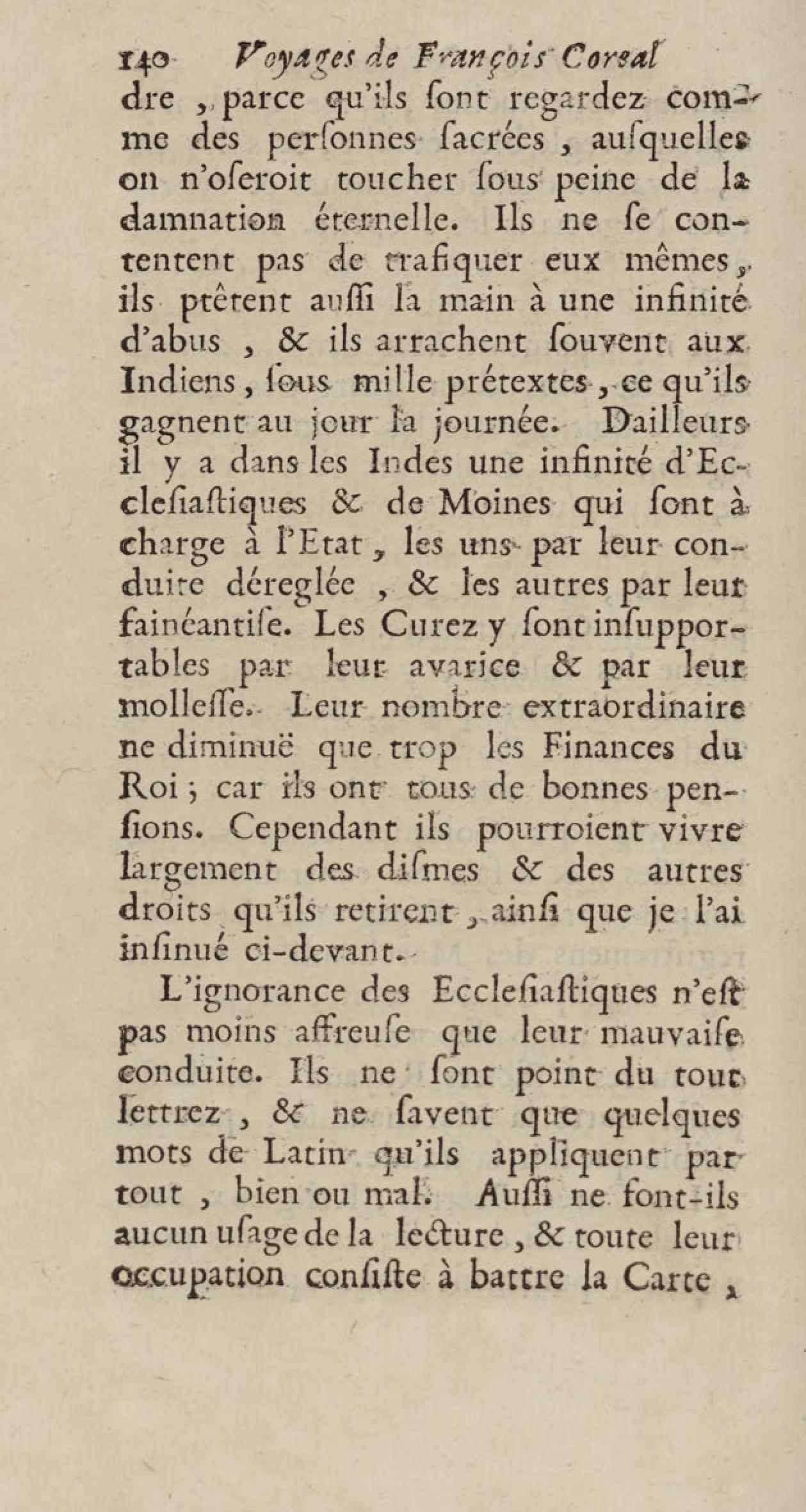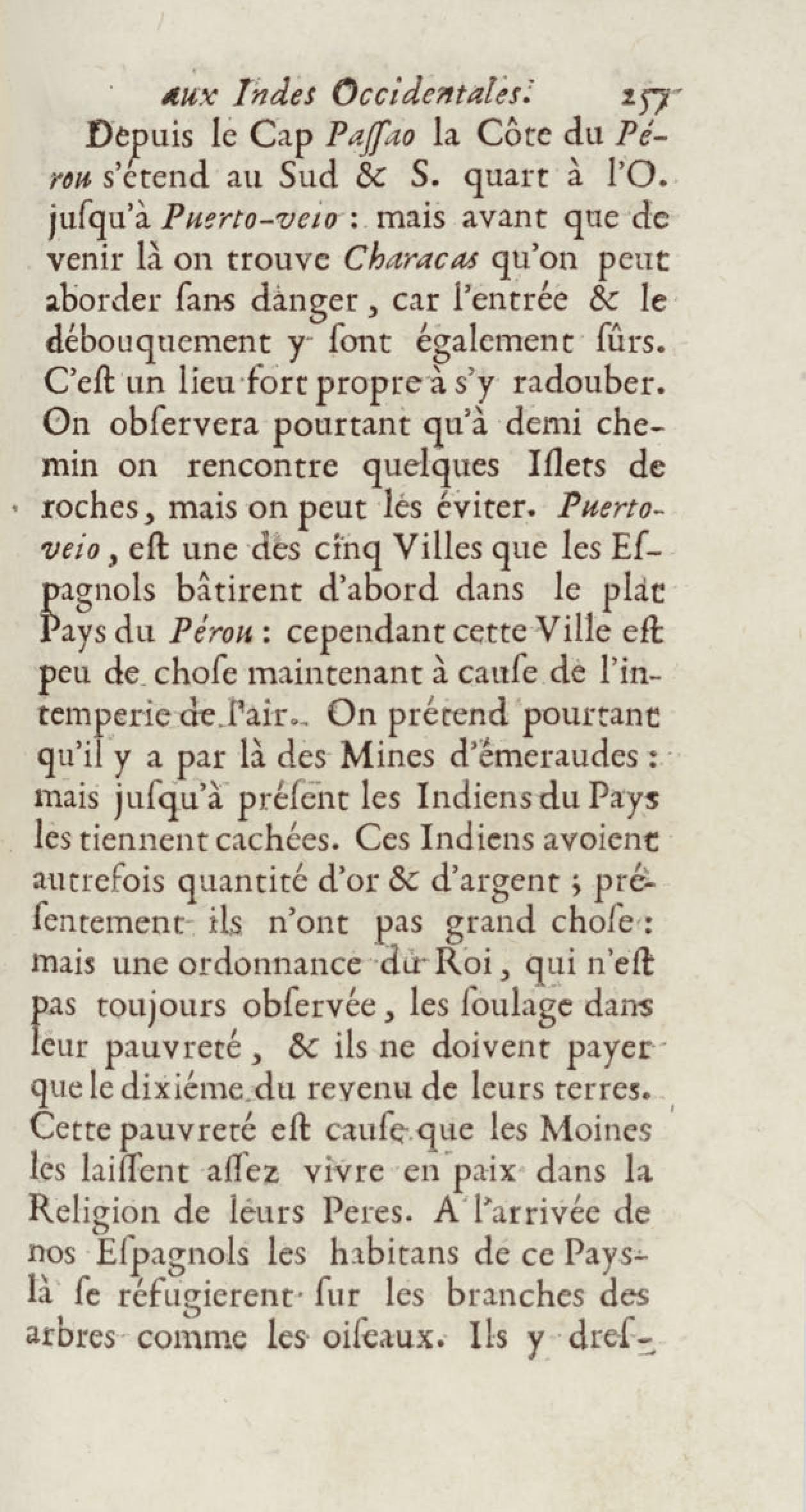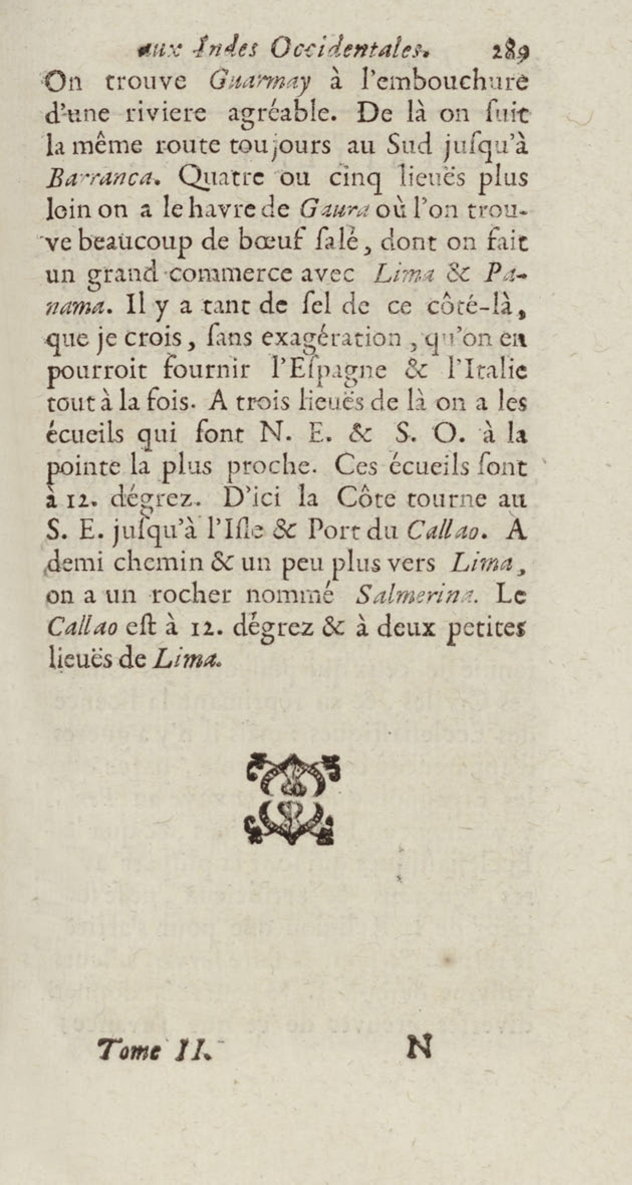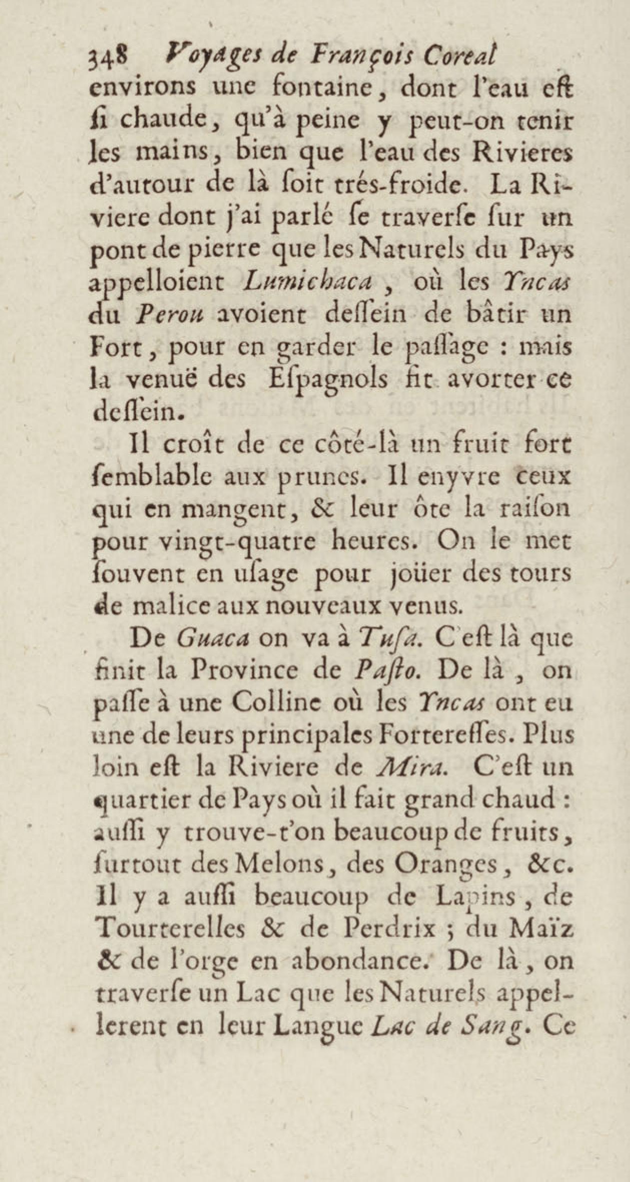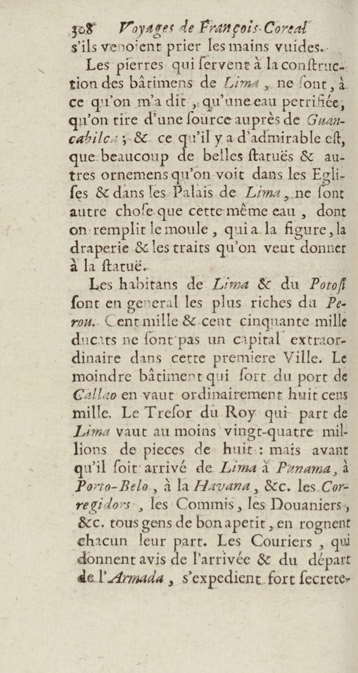 - Voyages de François Coreal aux Indes occidentales, contenant ce qu'il y a vû de plus remarquable pendant son séjour depuis 1666 jusqu'en 1697 : traduits de l'espagnol : avec une relation de la Guiane de Walter Raleigh, & le voyage de Narbrough à la mer du sud par le détroit de Magellan, &c. : nouvelle édition revûë, corrigée, & augmentée d'une nouvelle Découverte des Indes méridionales & des terres australes, enrichie de figures. Tome premier