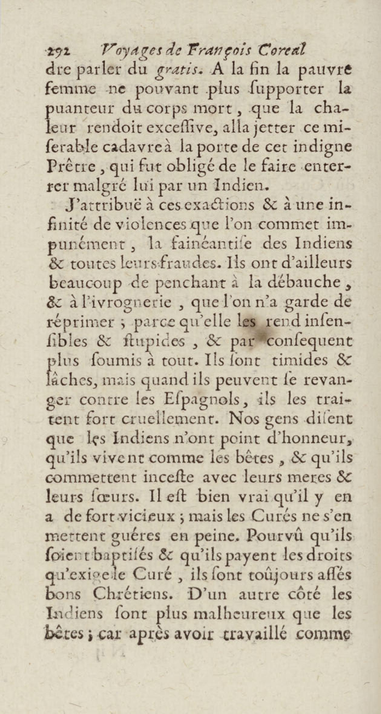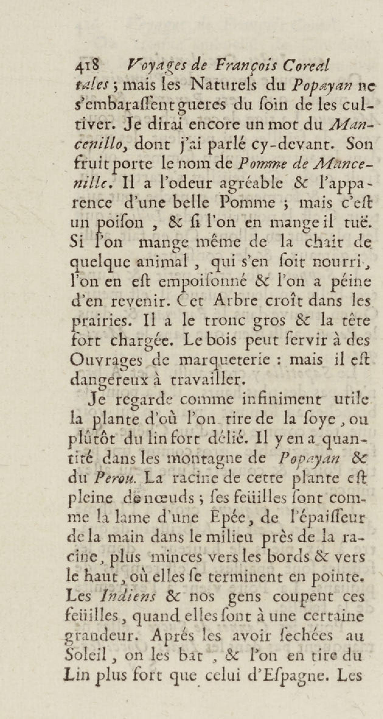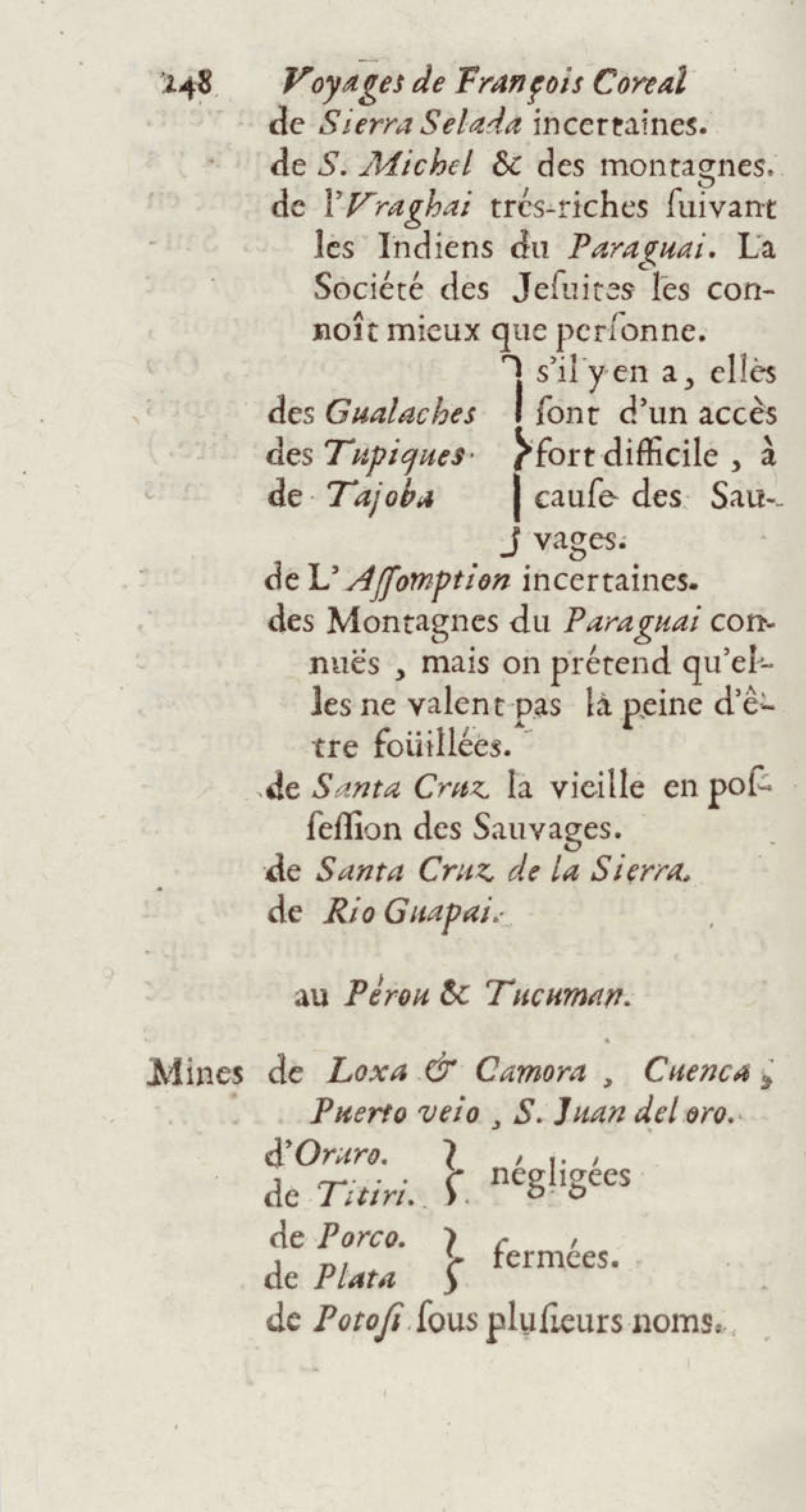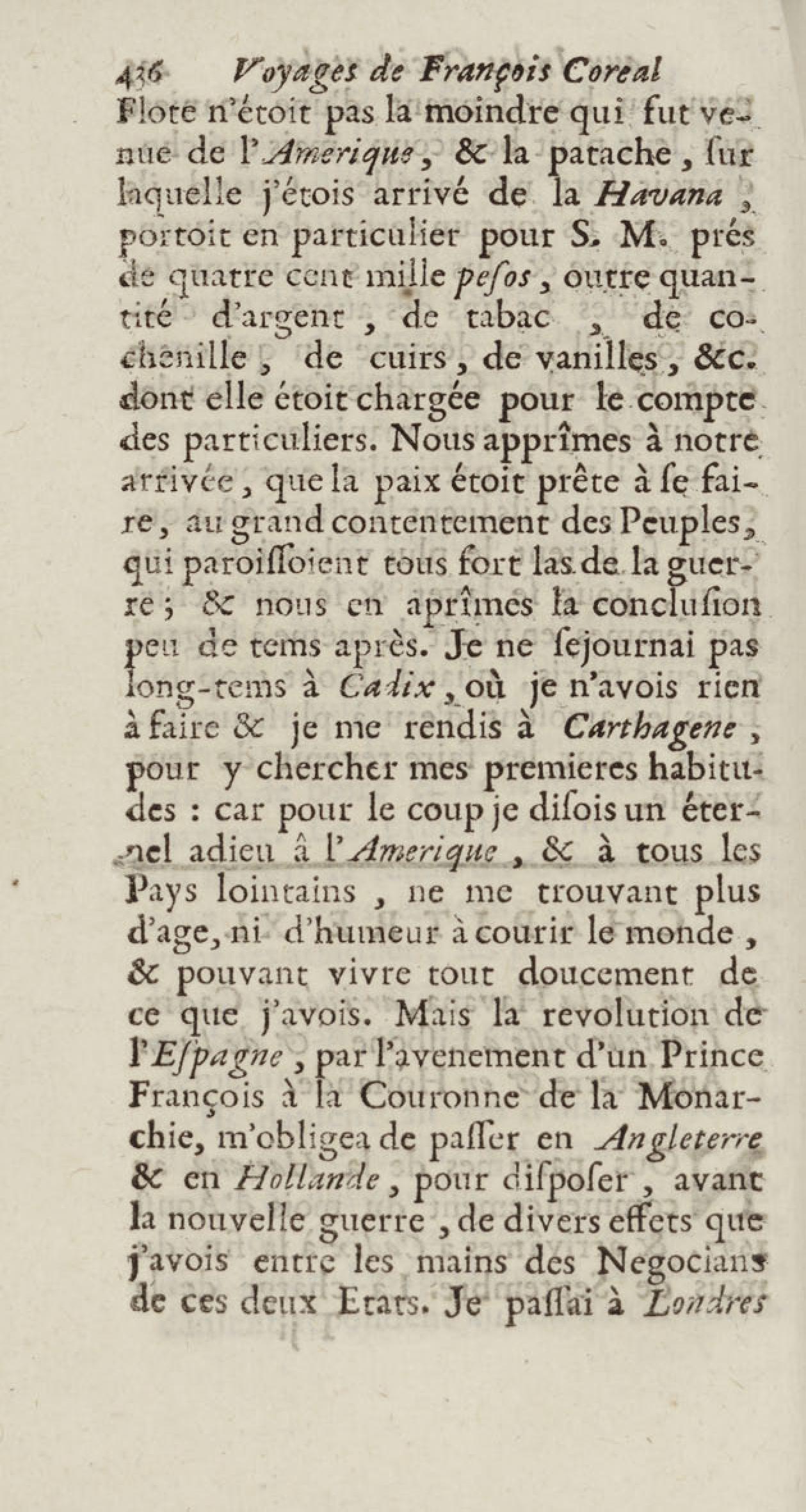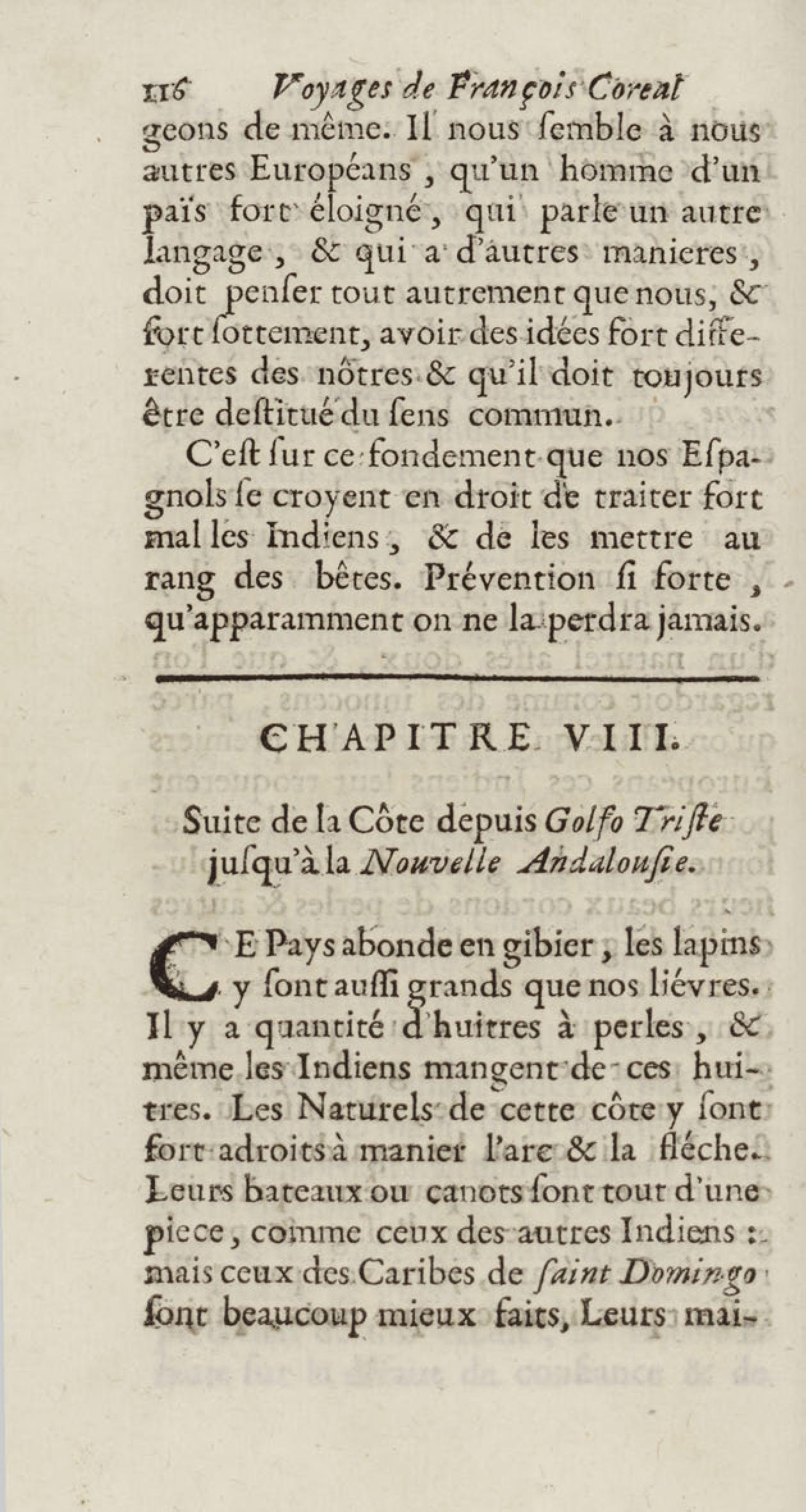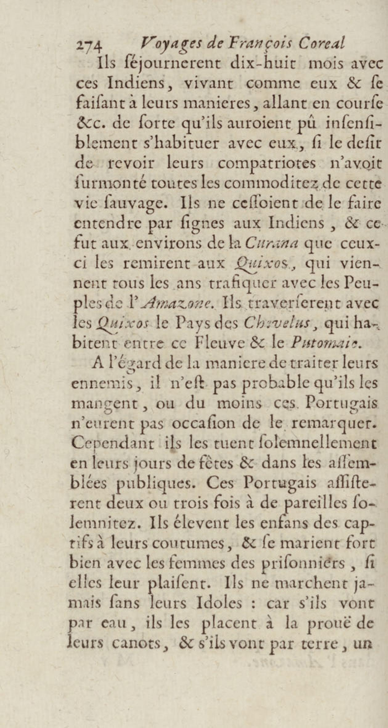 - Voyages de François Coreal aux Indes occidentales, contenant ce qu'il y a vû de plus remarquable pendant son séjour depuis 1666 jusqu'en 1697 : traduits de l'espagnol : avec une relation de la Guiane de Walter Raleigh, & le voyage de Narbrough à la mer du sud par le détroit de Magellan, &c. : nouvelle édition revûë, corrigée, & augmentée d'une nouvelle Découverte des Indes méridionales & des terres australes, enrichie de figures. Tome premier