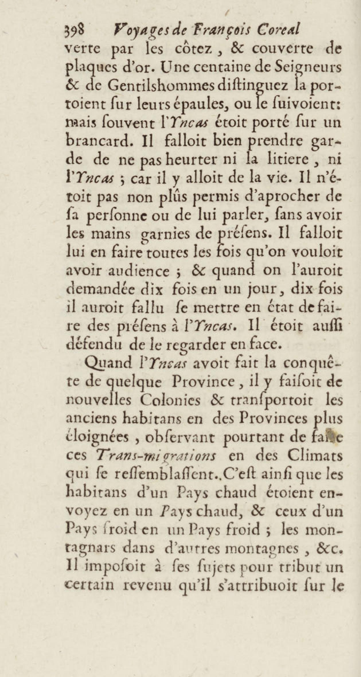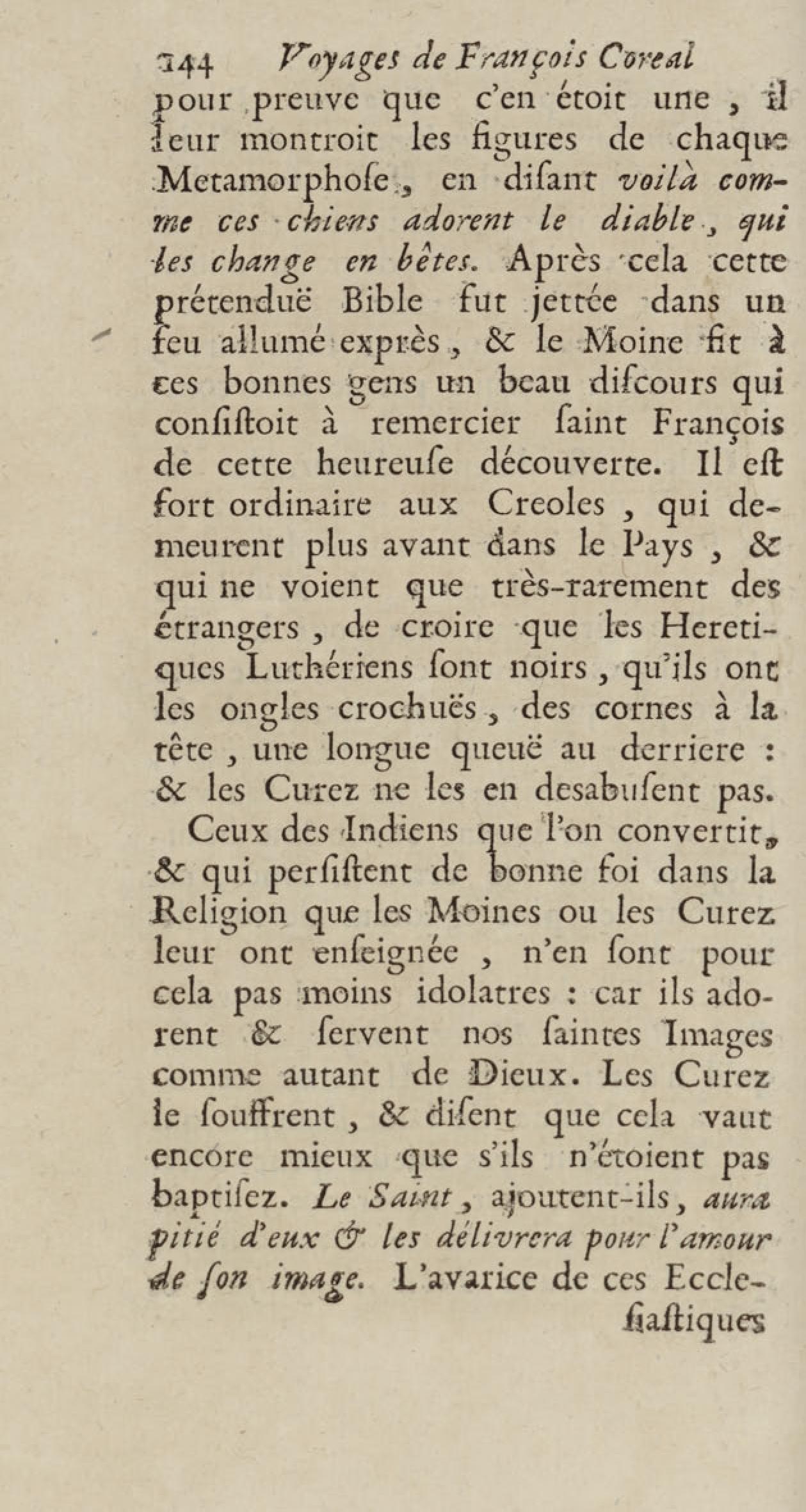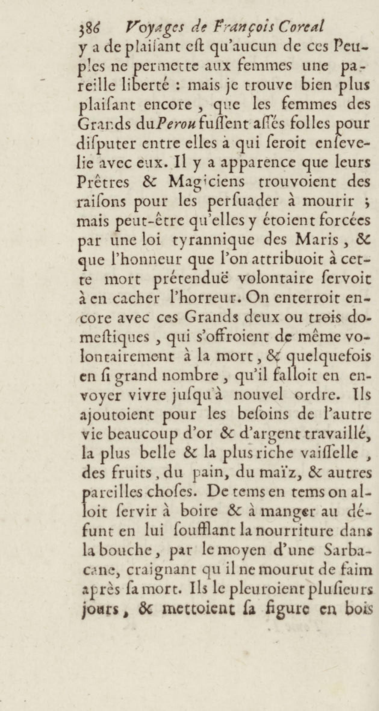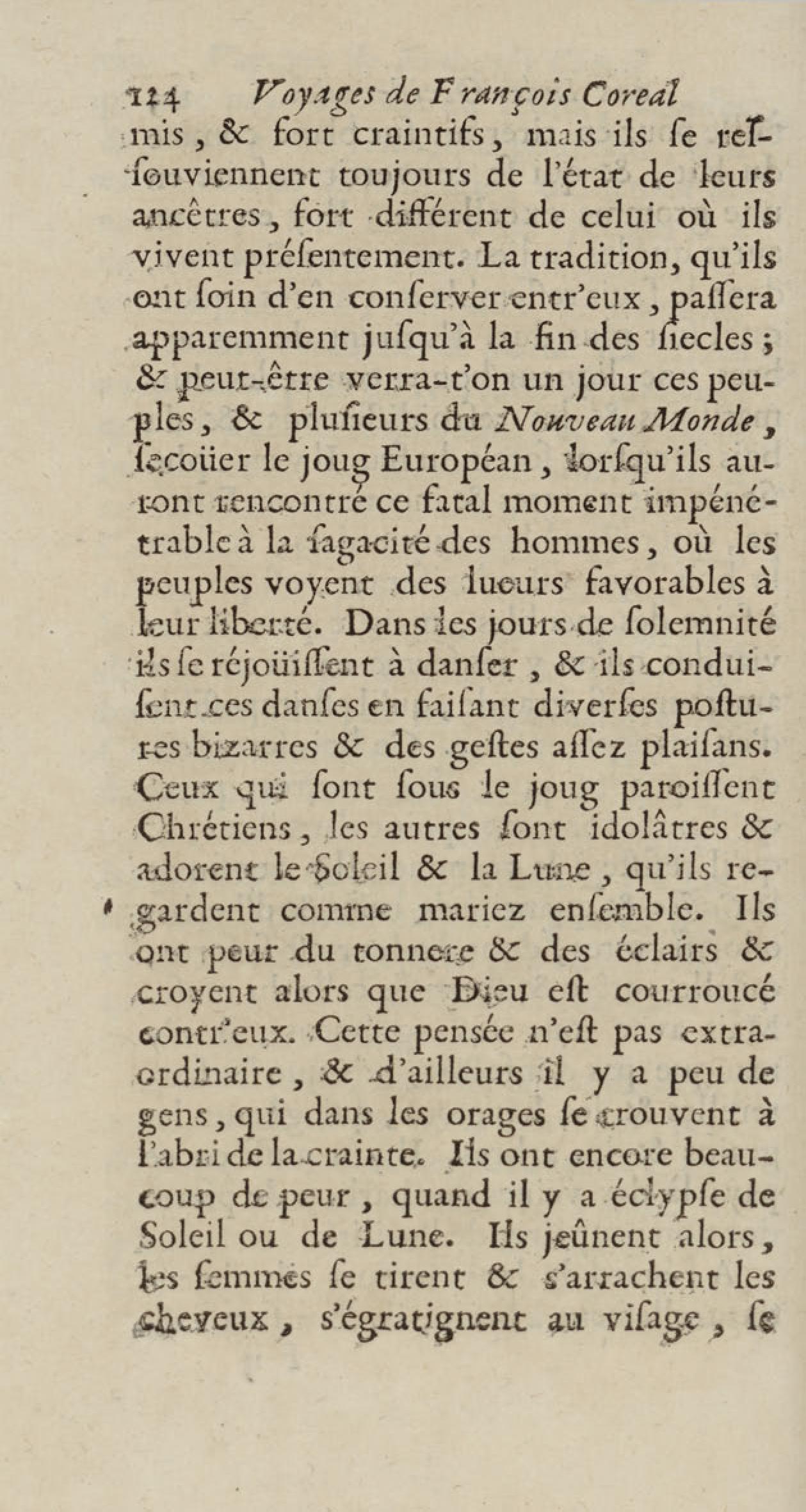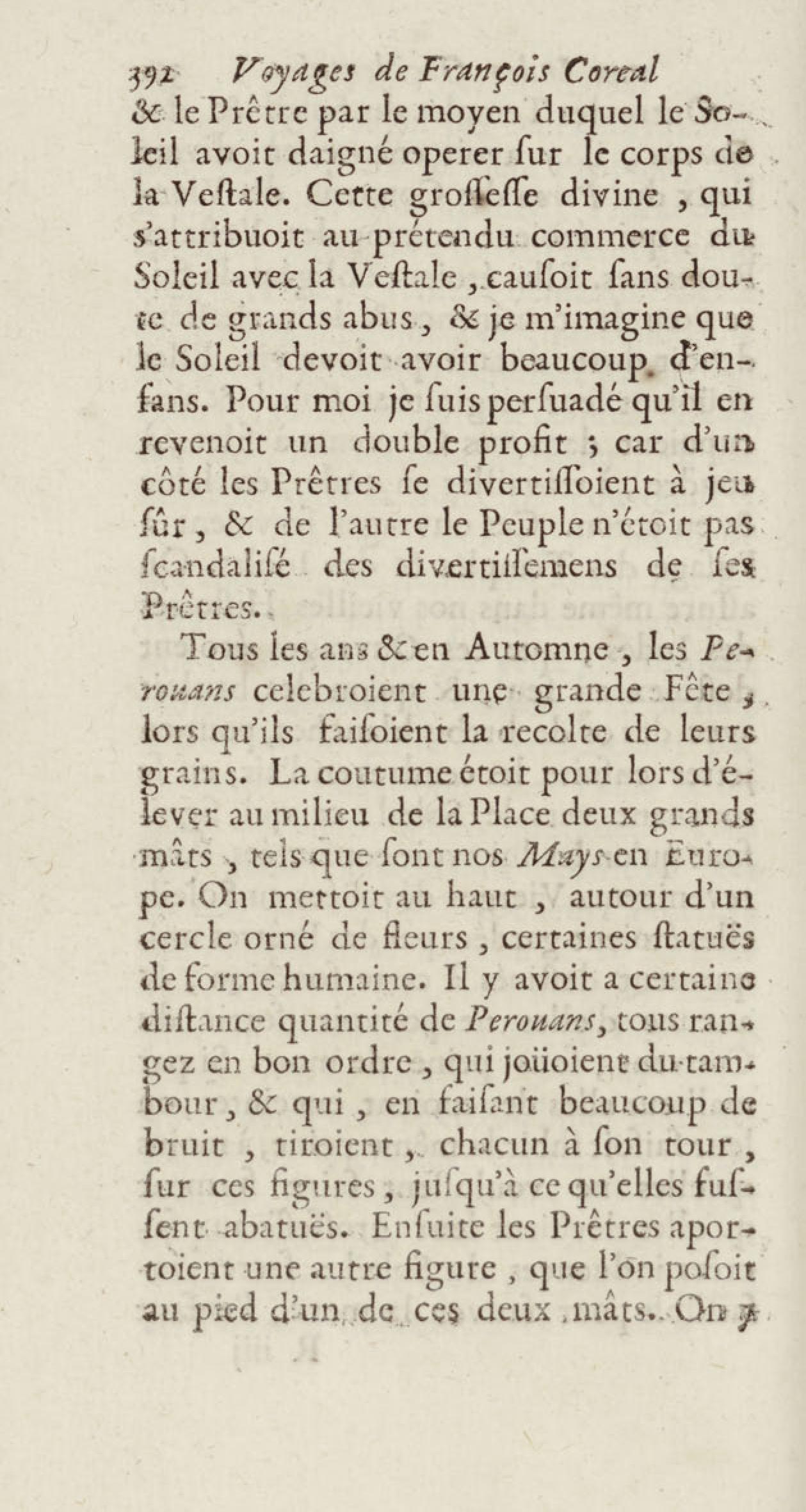 - Voyages de François Coreal aux Indes occidentales, contenant ce qu'il y a vû de plus remarquable pendant son séjour depuis 1666 jusqu'en 1697 : traduits de l'espagnol : avec une relation de la Guiane de Walter Raleigh, & le voyage de Narbrough à la mer du sud par le détroit de Magellan, &c. : nouvelle édition revûë, corrigée, & augmentée d'une nouvelle Découverte des Indes méridionales & des terres australes, enrichie de figures. Tome premier