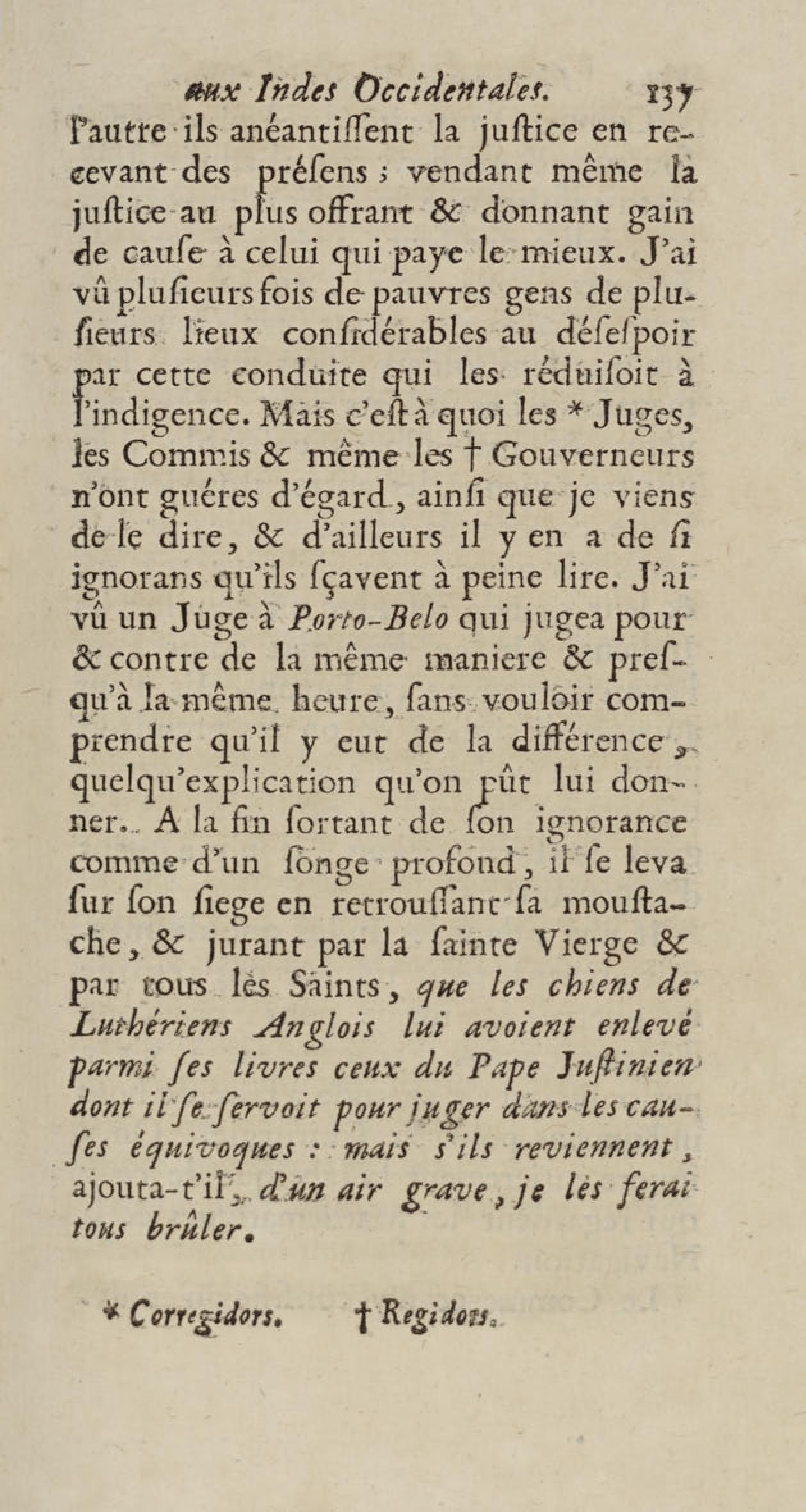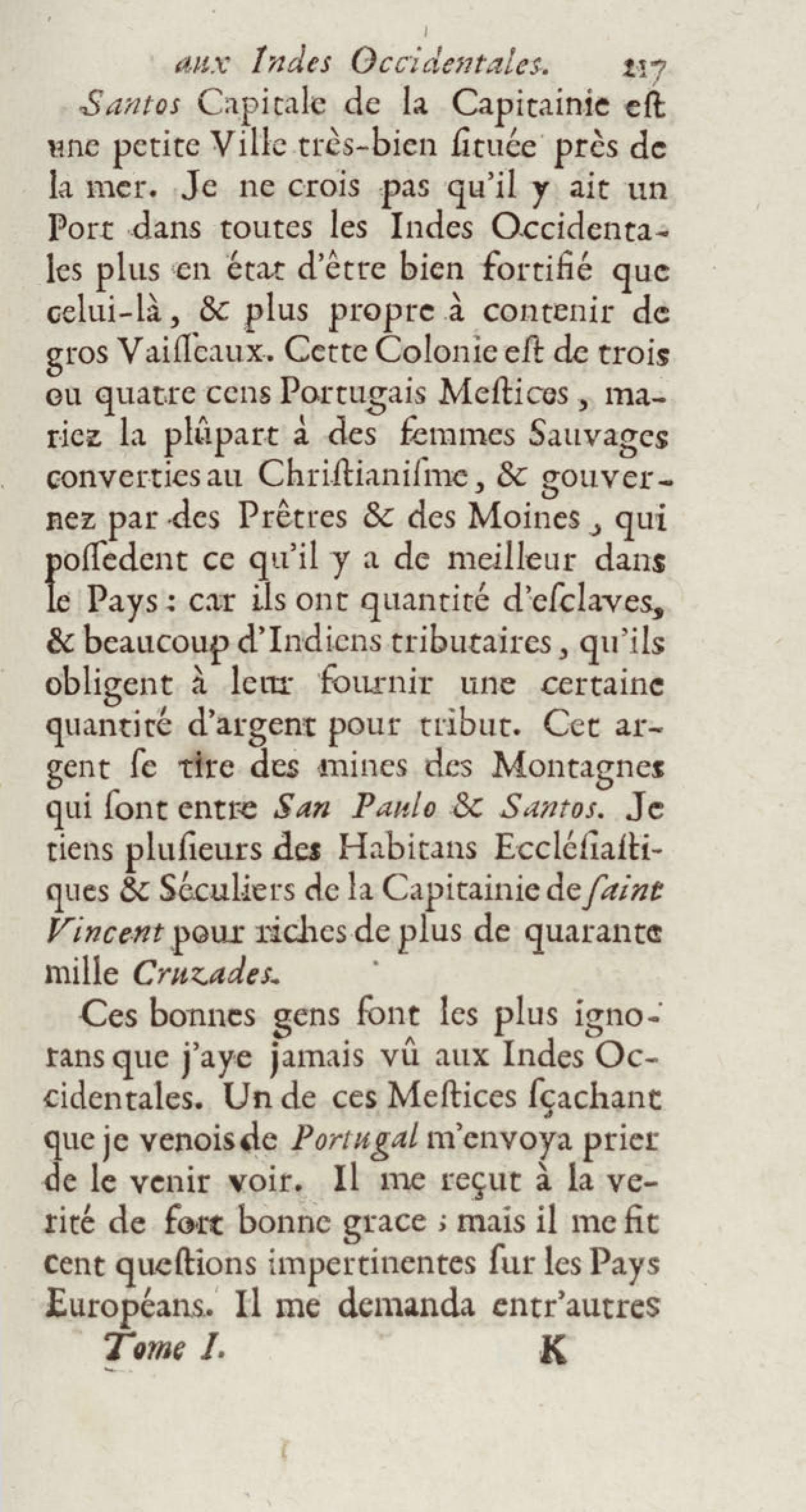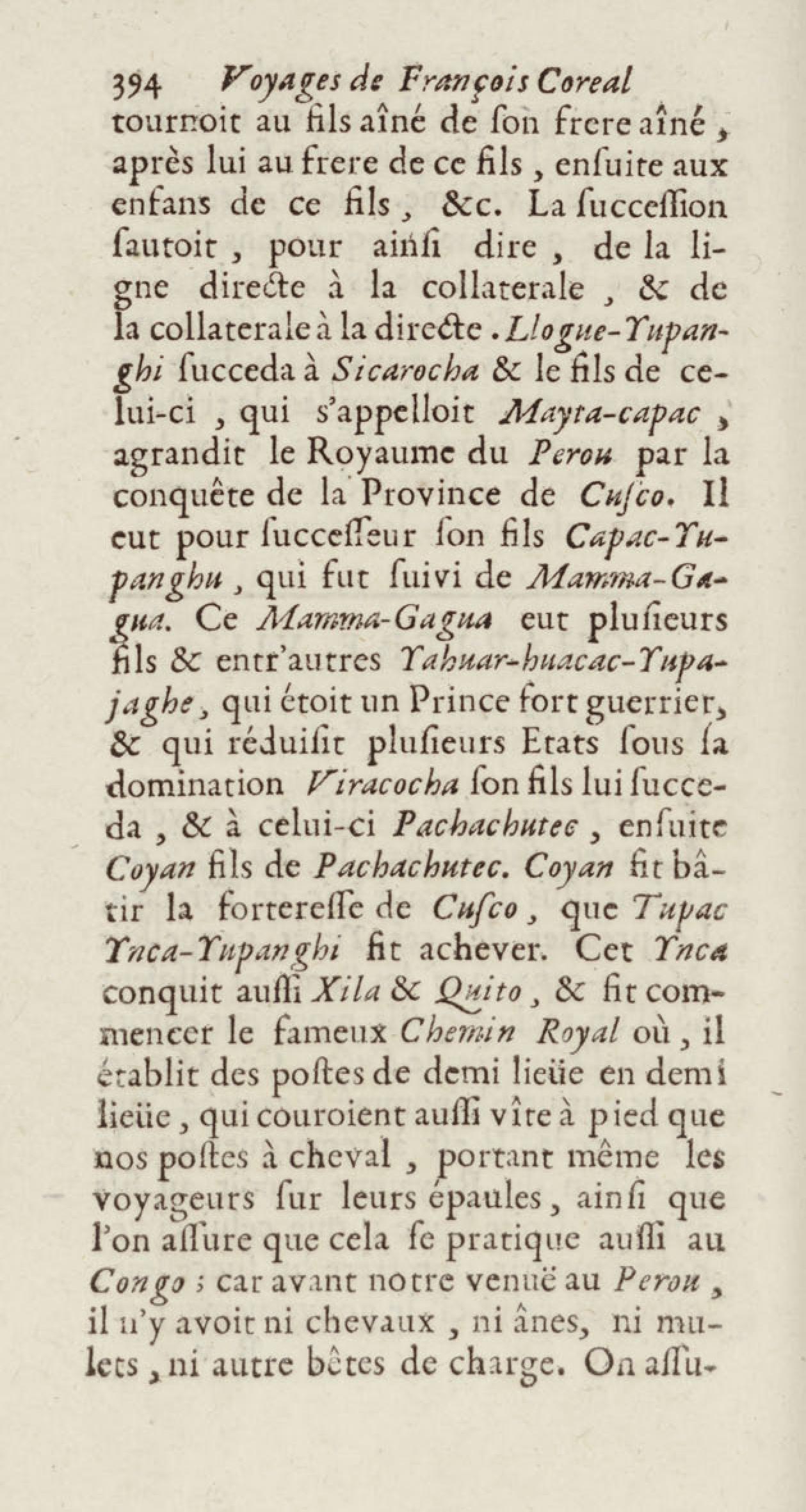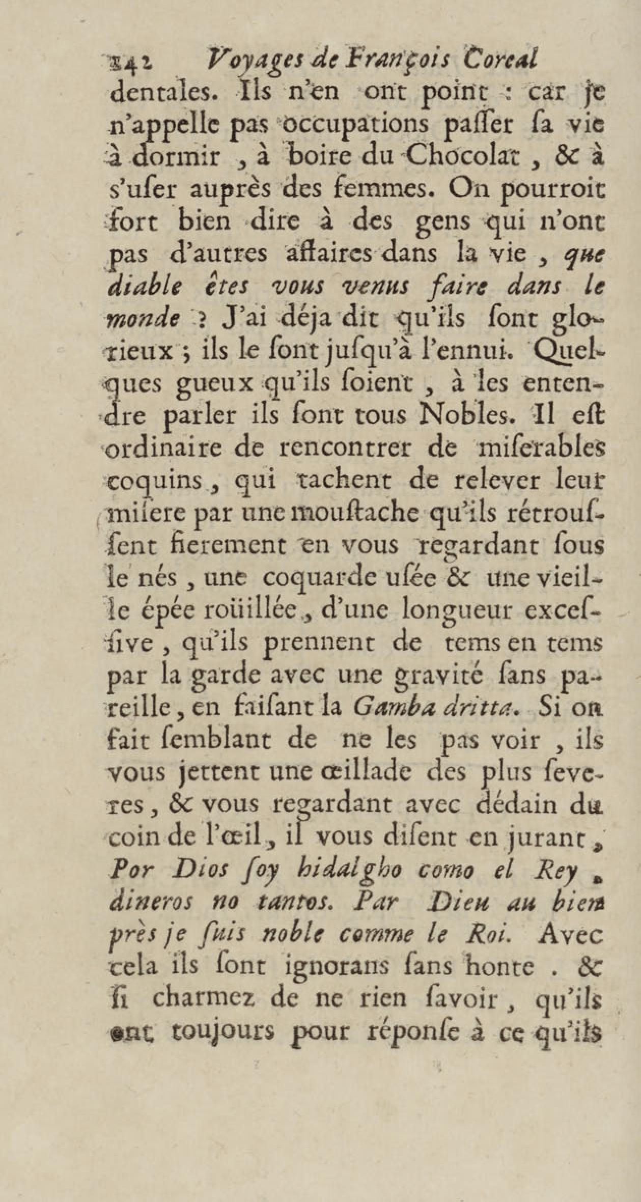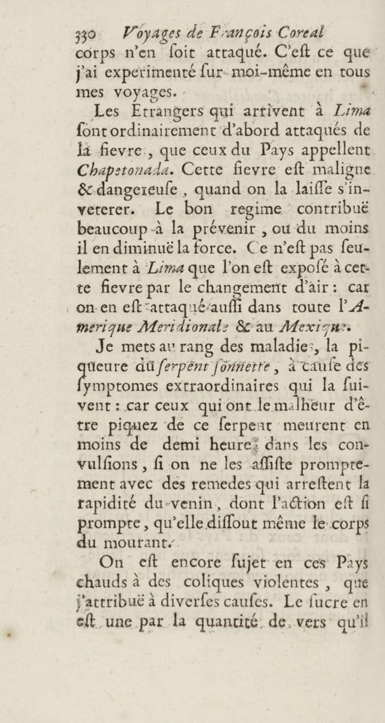 - Voyages de François Coreal aux Indes occidentales, contenant ce qu'il y a vû de plus remarquable pendant son séjour depuis 1666 jusqu'en 1697 : traduits de l'espagnol : avec une relation de la Guiane de Walter Raleigh, & le voyage de Narbrough à la mer du sud par le détroit de Magellan, &c. : nouvelle édition revûë, corrigée, & augmentée d'une nouvelle Découverte des Indes méridionales & des terres australes, enrichie de figures. Tome premier