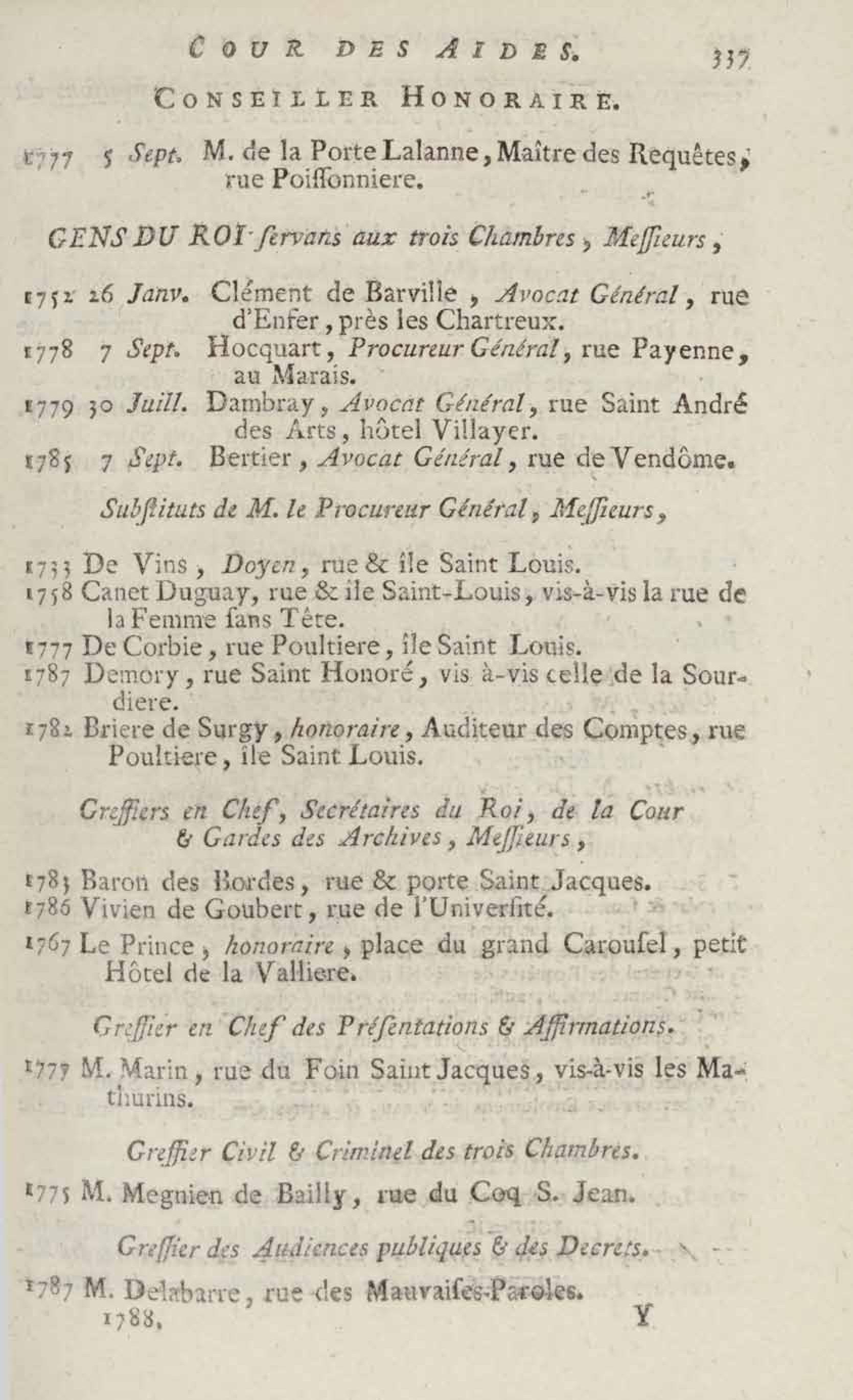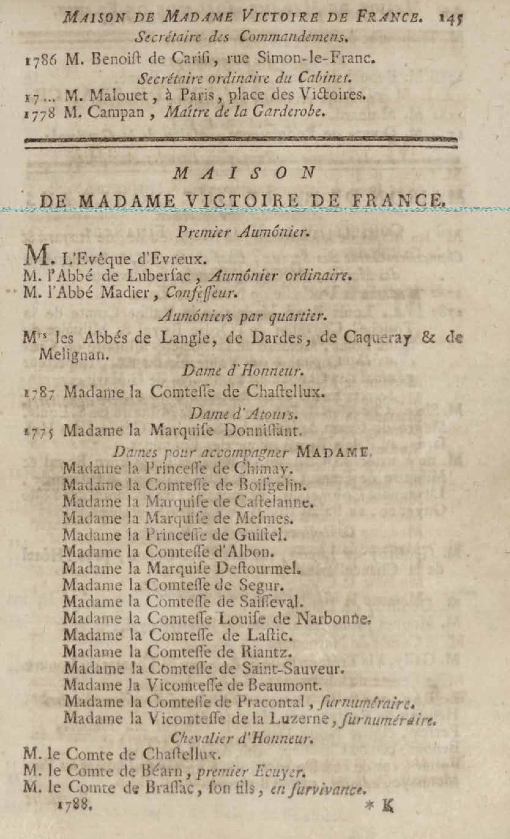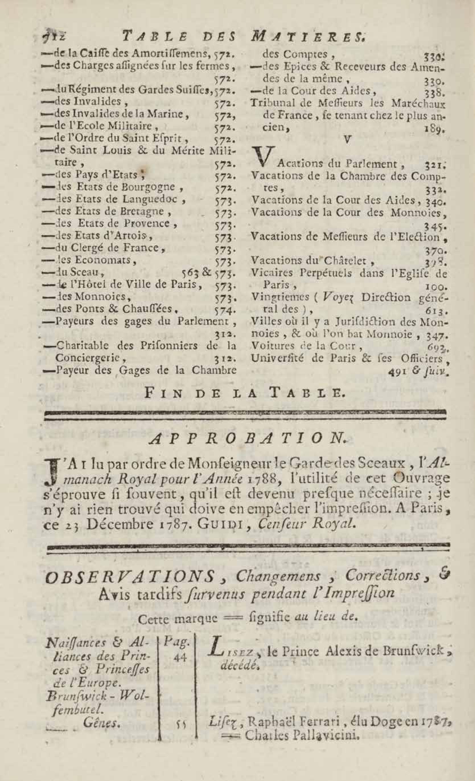- Almanach royal, année bissextile M.DCC.LXXXVIII présenté à sa majesté pour la première fois en 1699