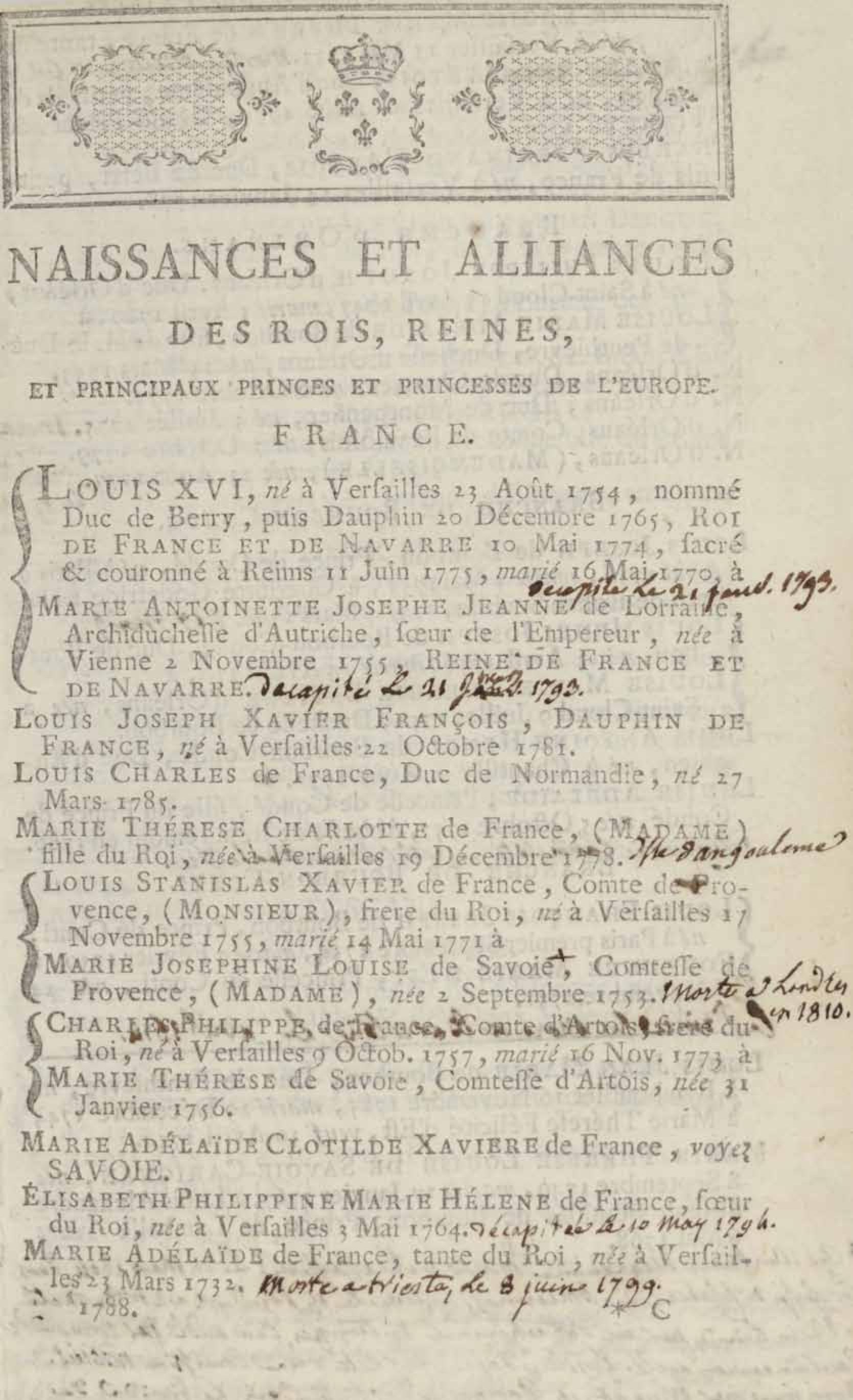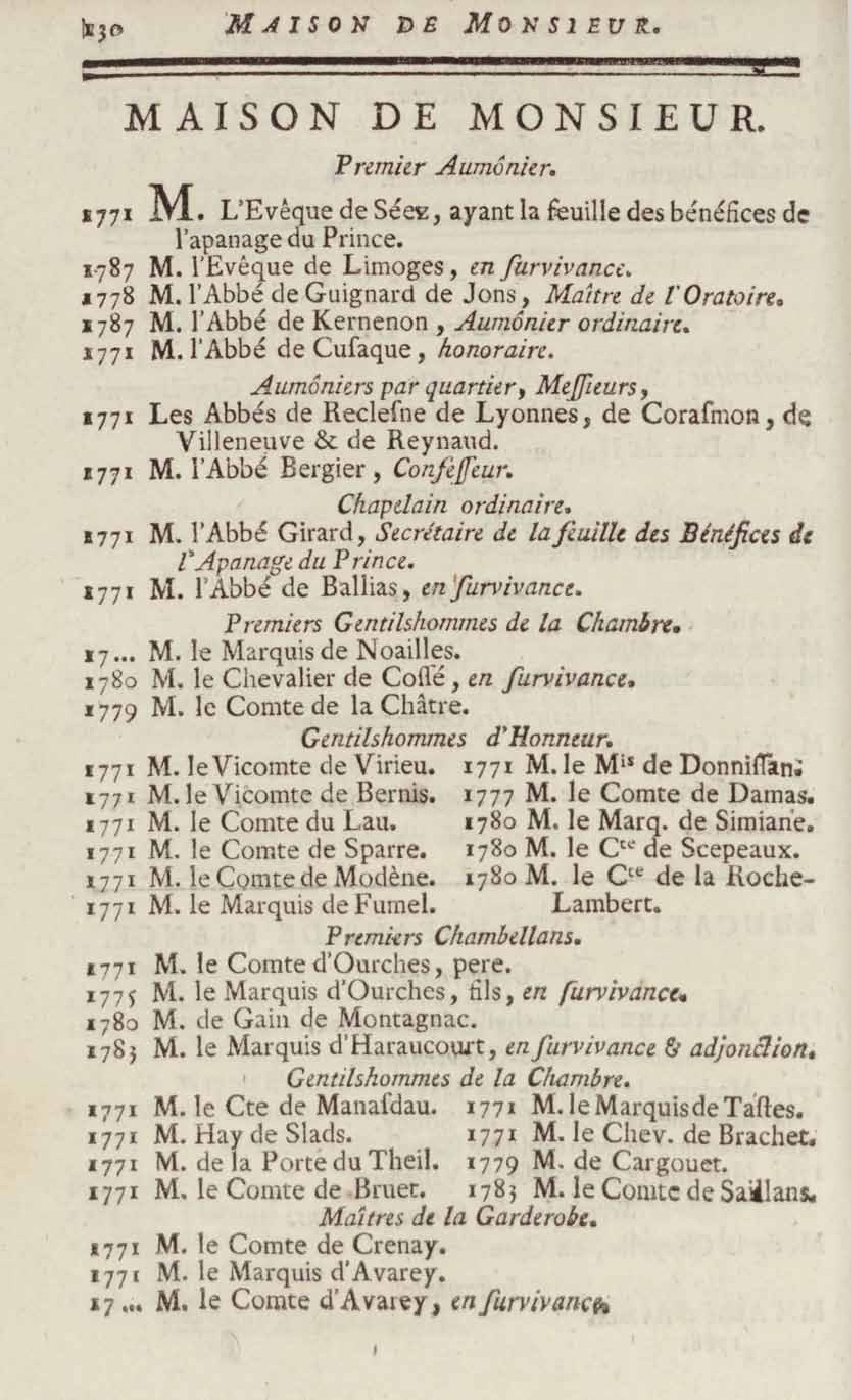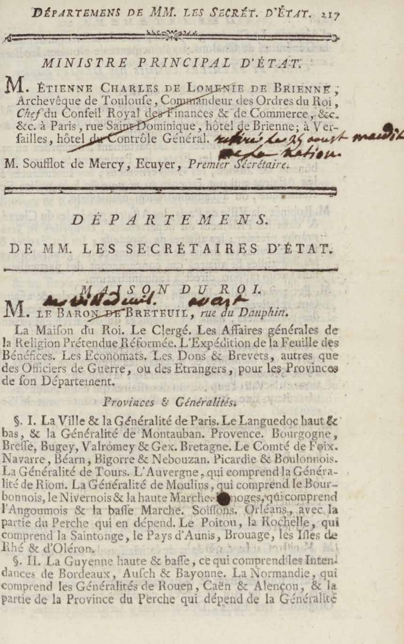 - Almanach royal, année bissextile M.DCC.LXXXVIII présenté à sa majesté pour la première fois en 1699