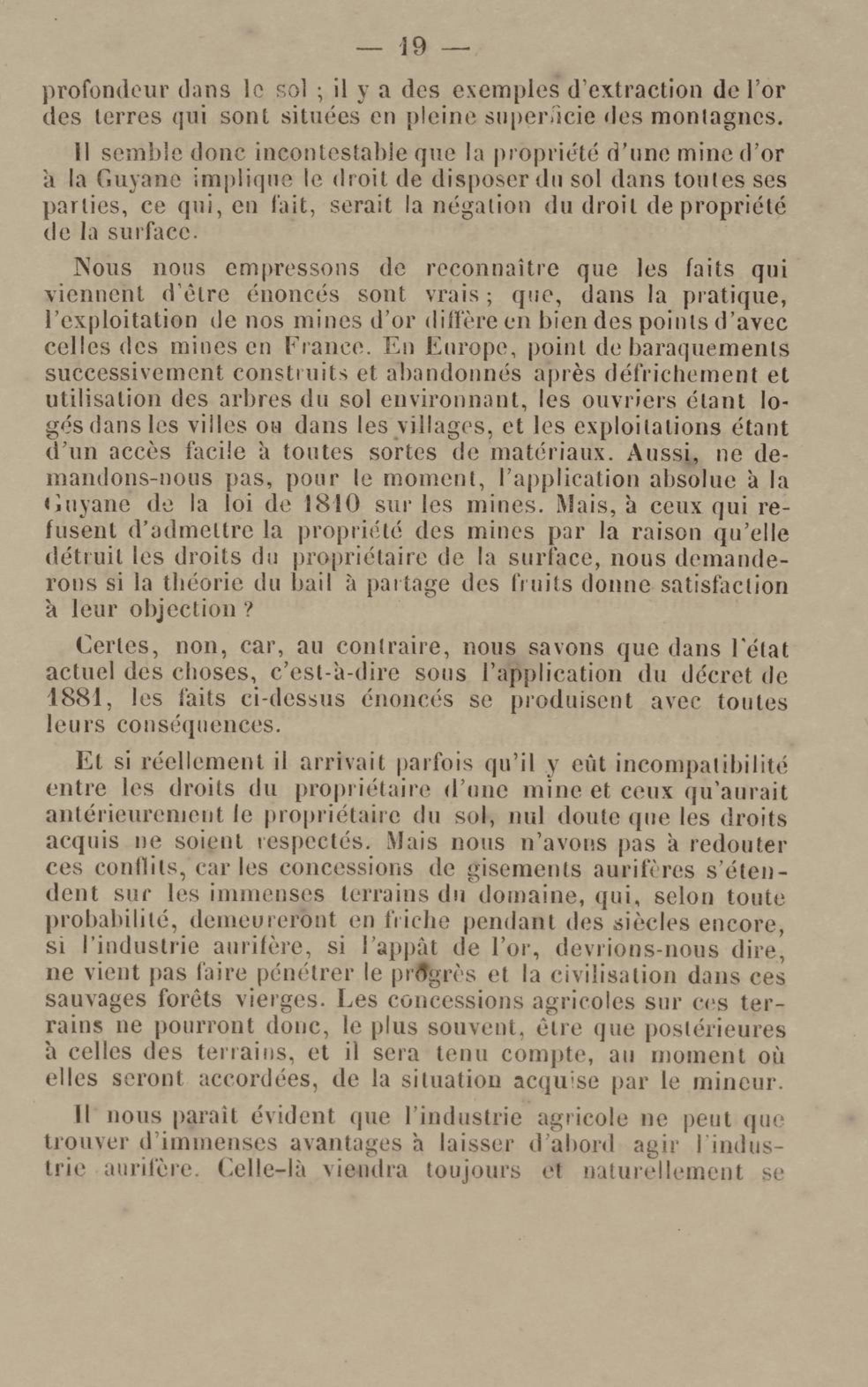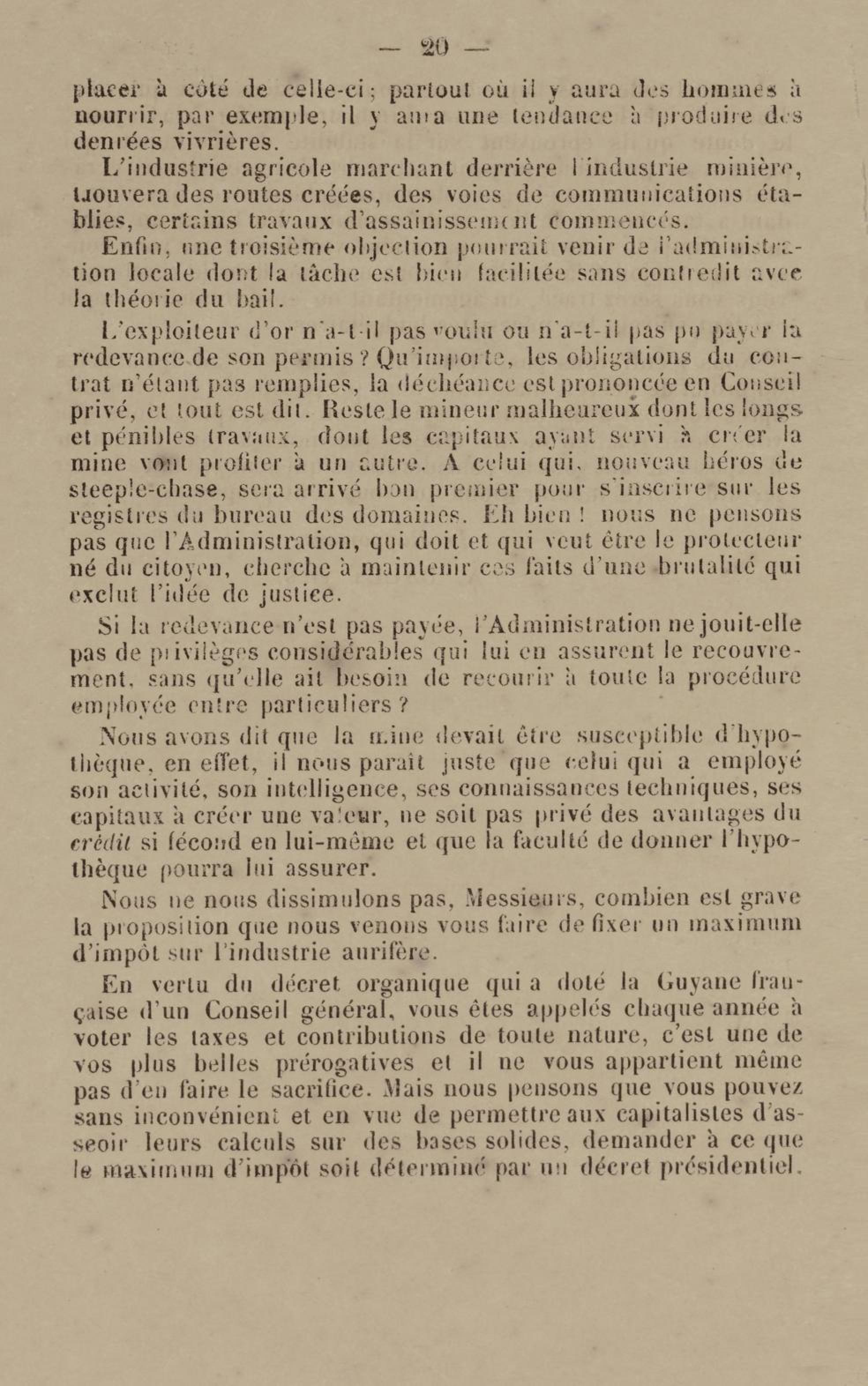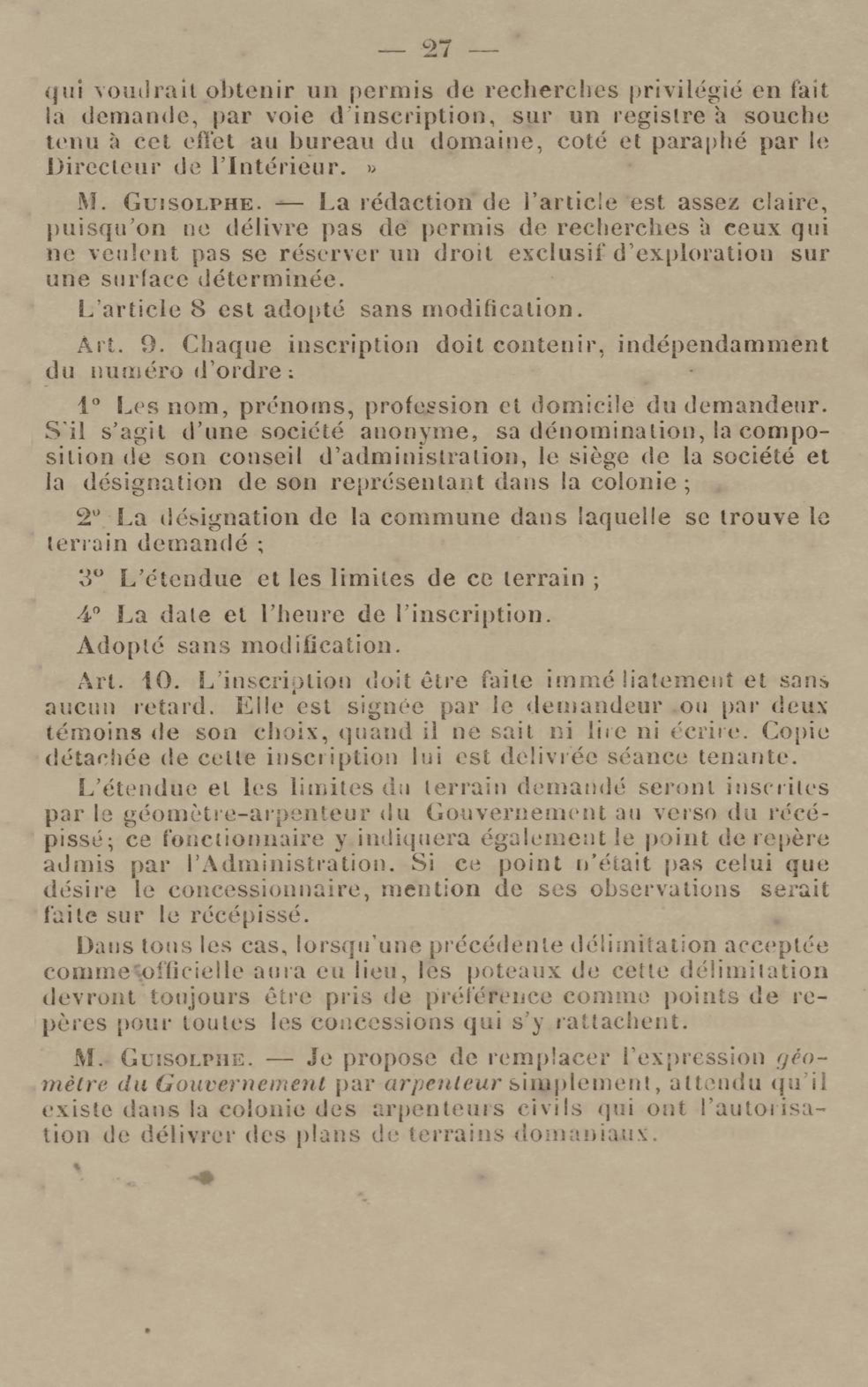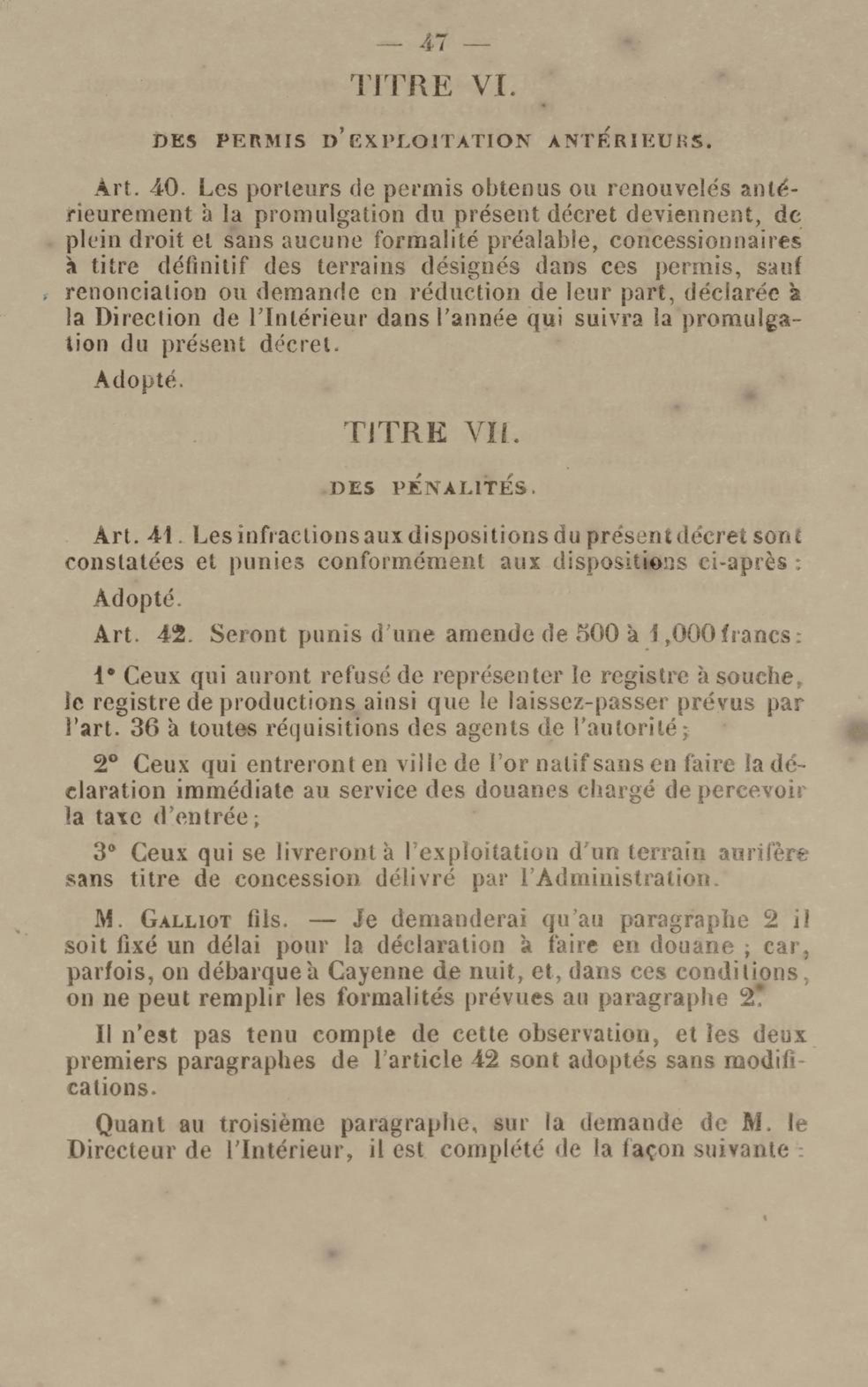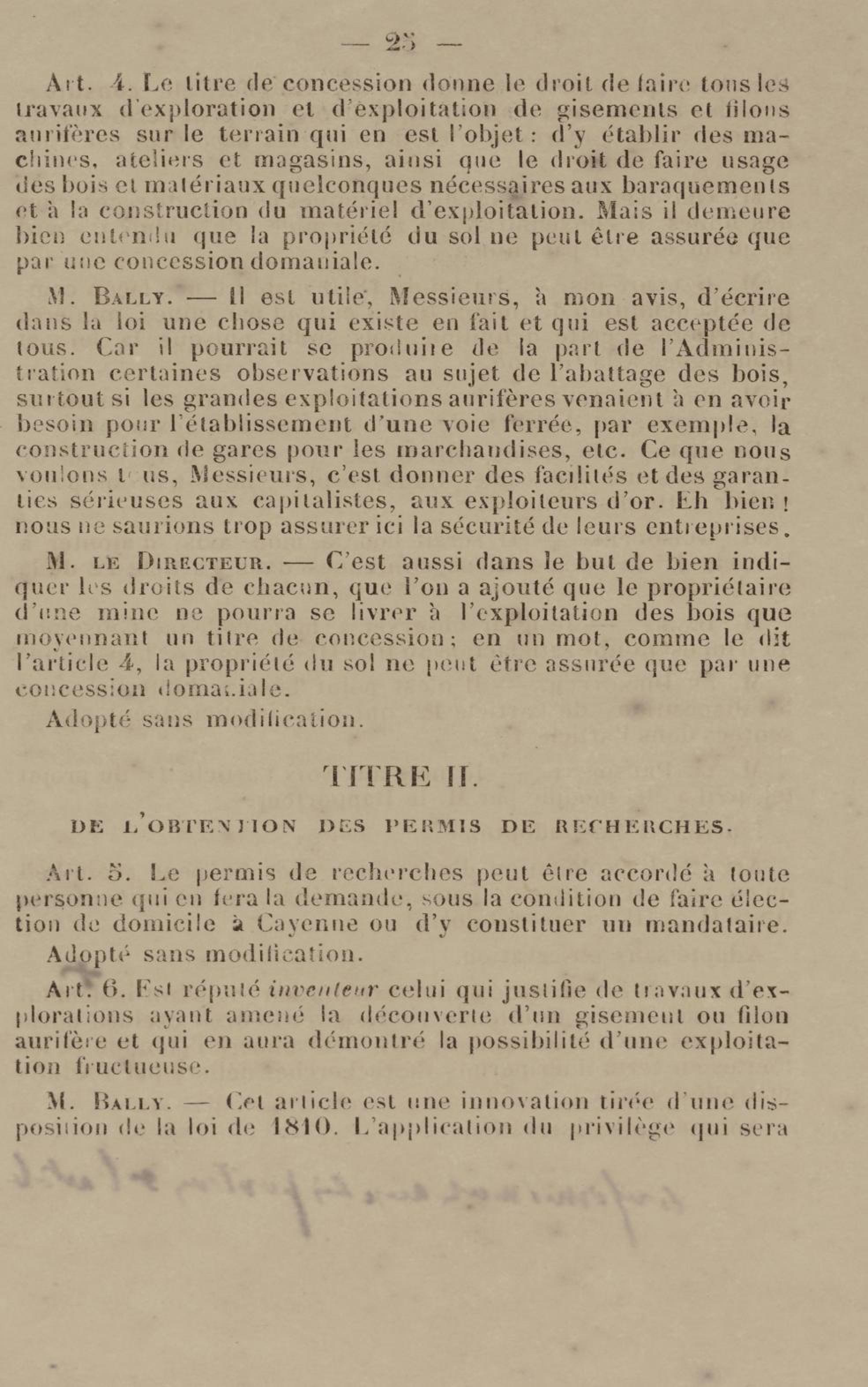 - Projet de décret sur la recherche et l'exploitation des gisements et filons aurifères à la Guyane française : voté par le Conseil général dans sa session extraordinaire de 1884