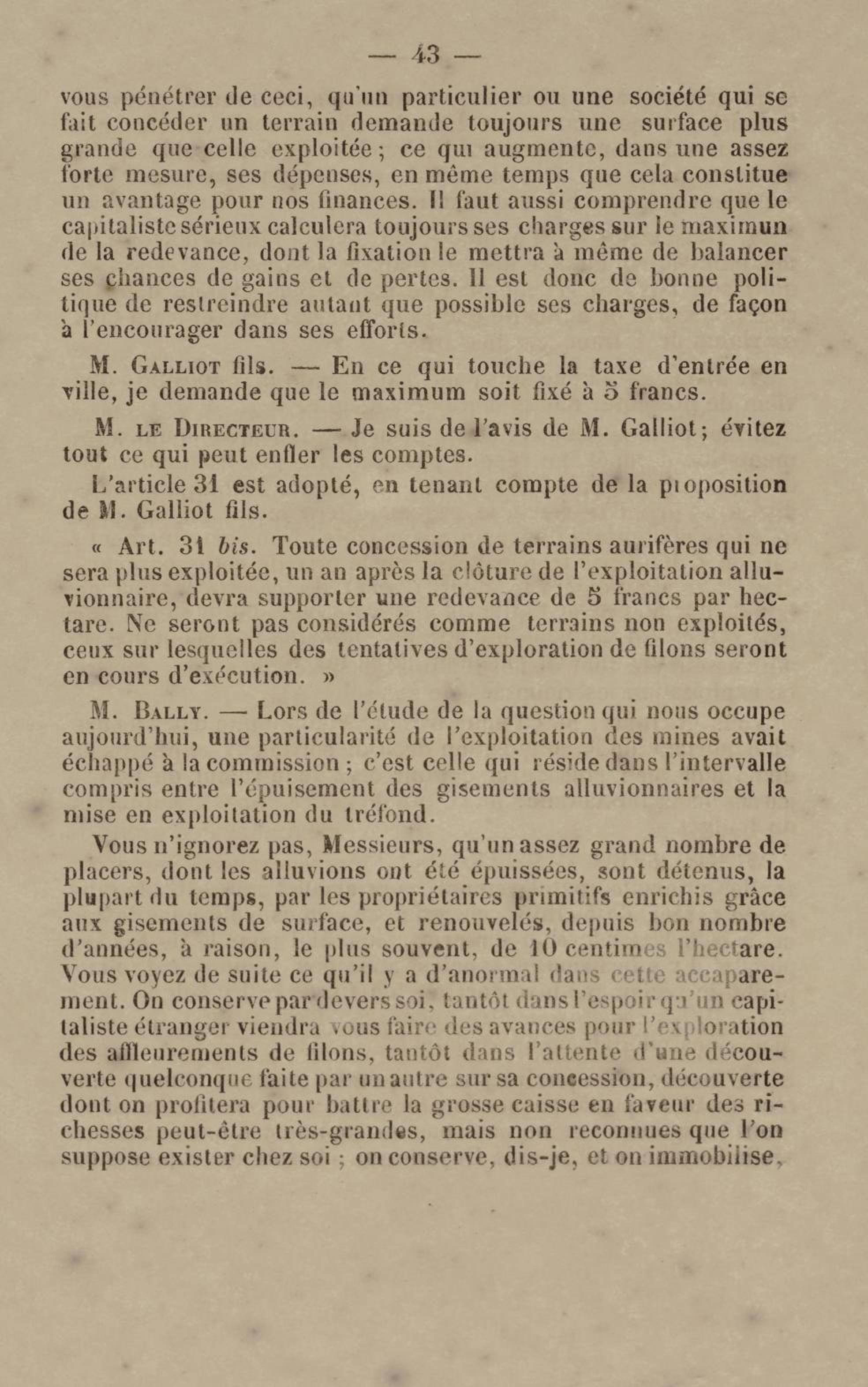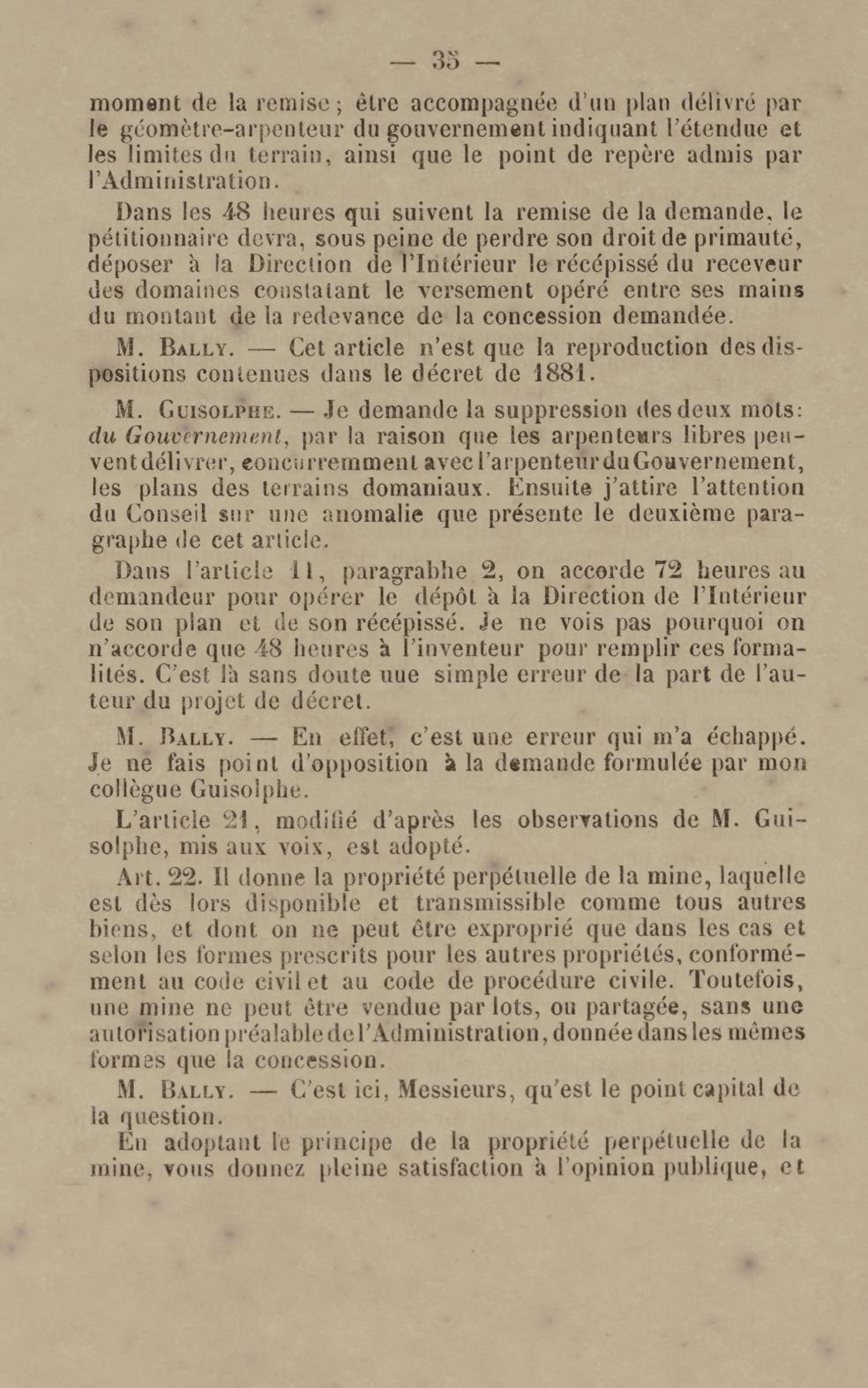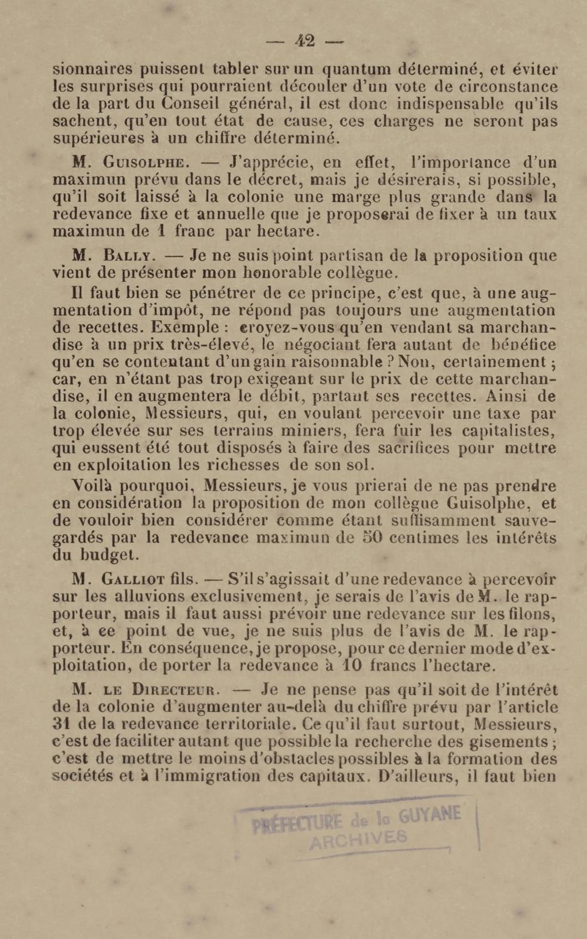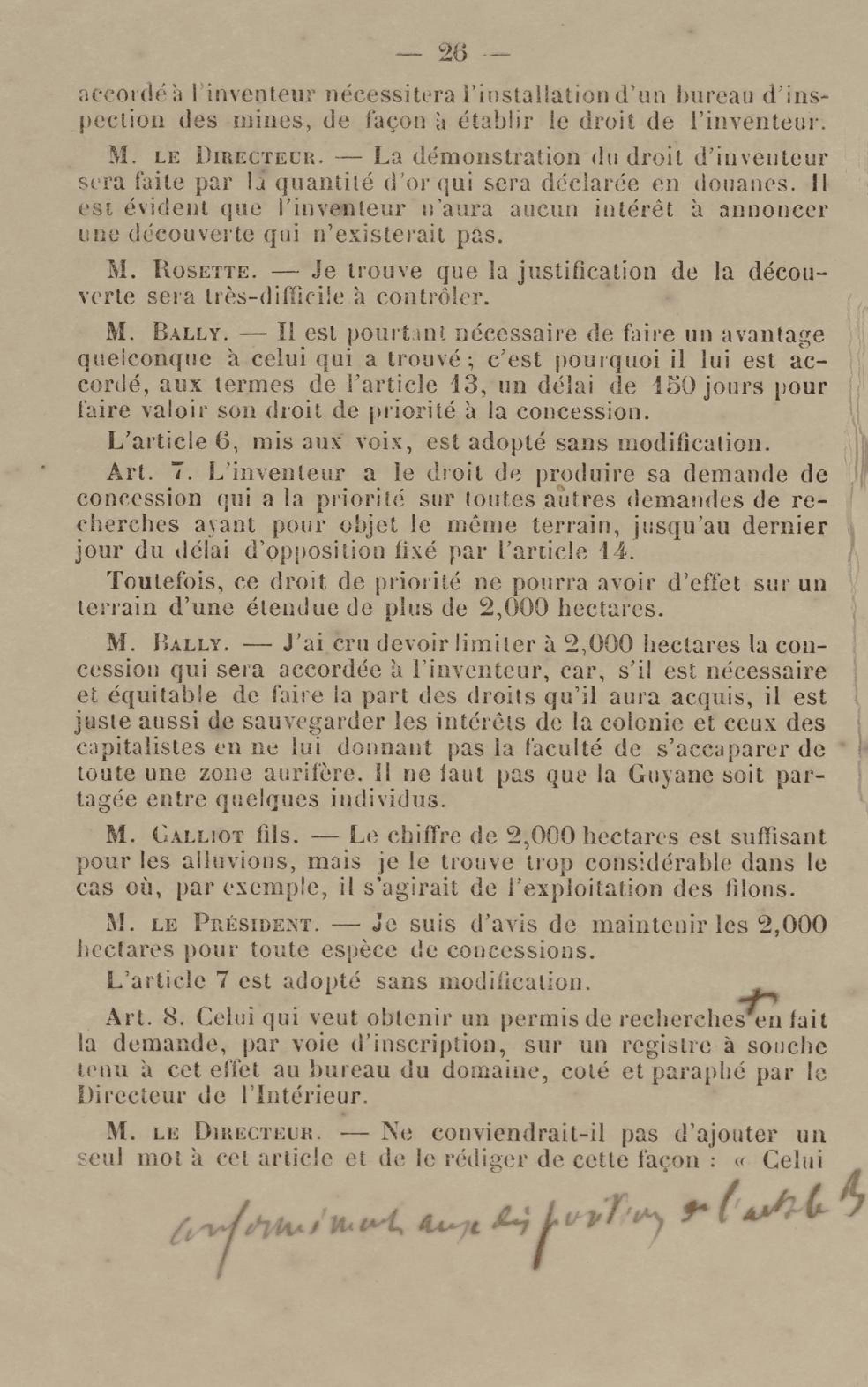 - Projet de décret sur la recherche et l'exploitation des gisements et filons aurifères à la Guyane française : voté par le Conseil général dans sa session extraordinaire de 1884