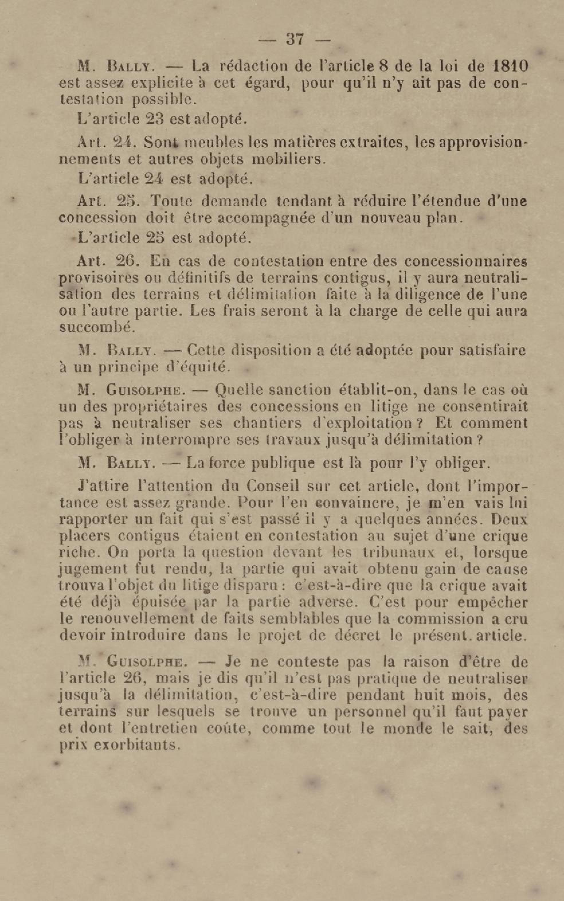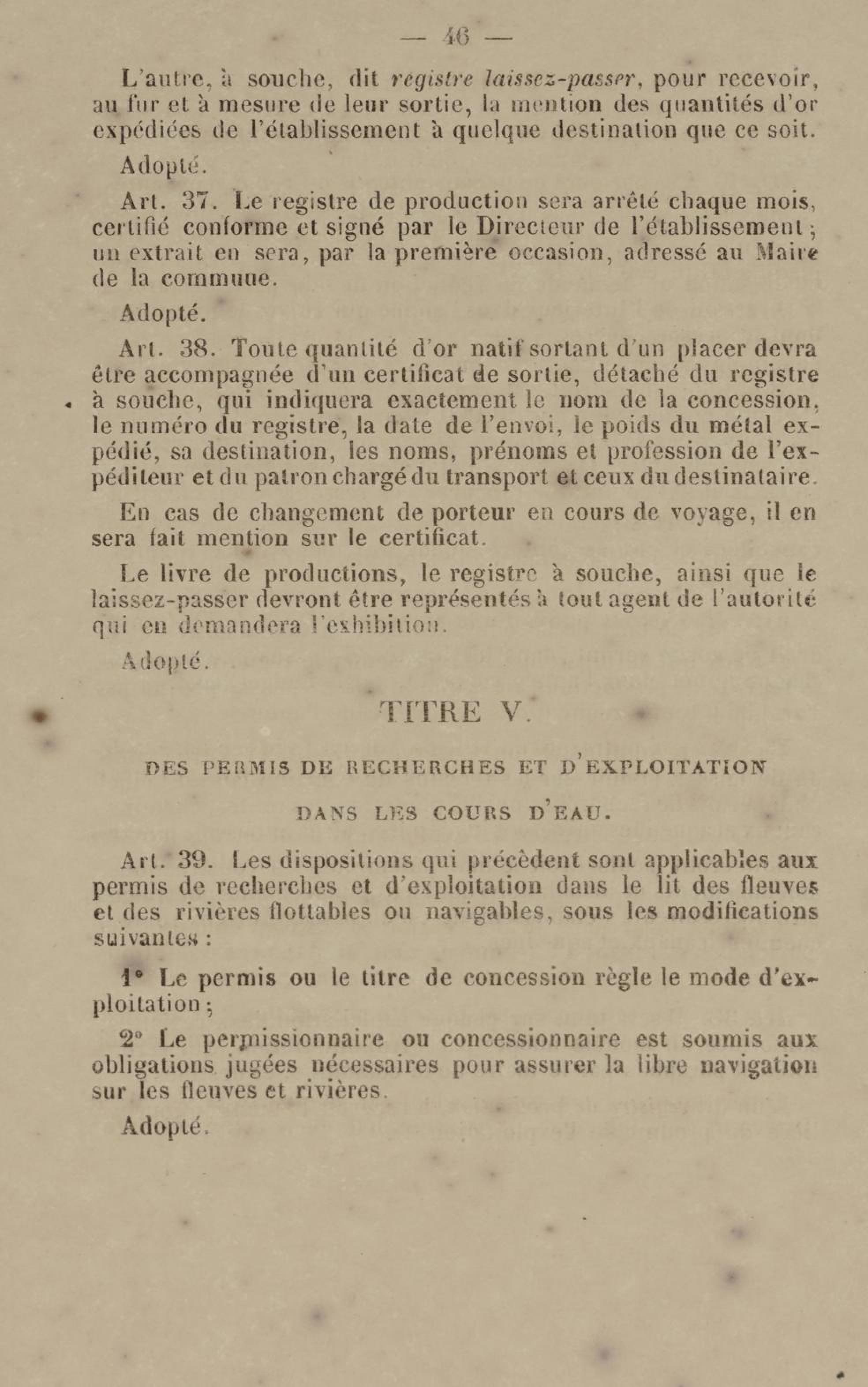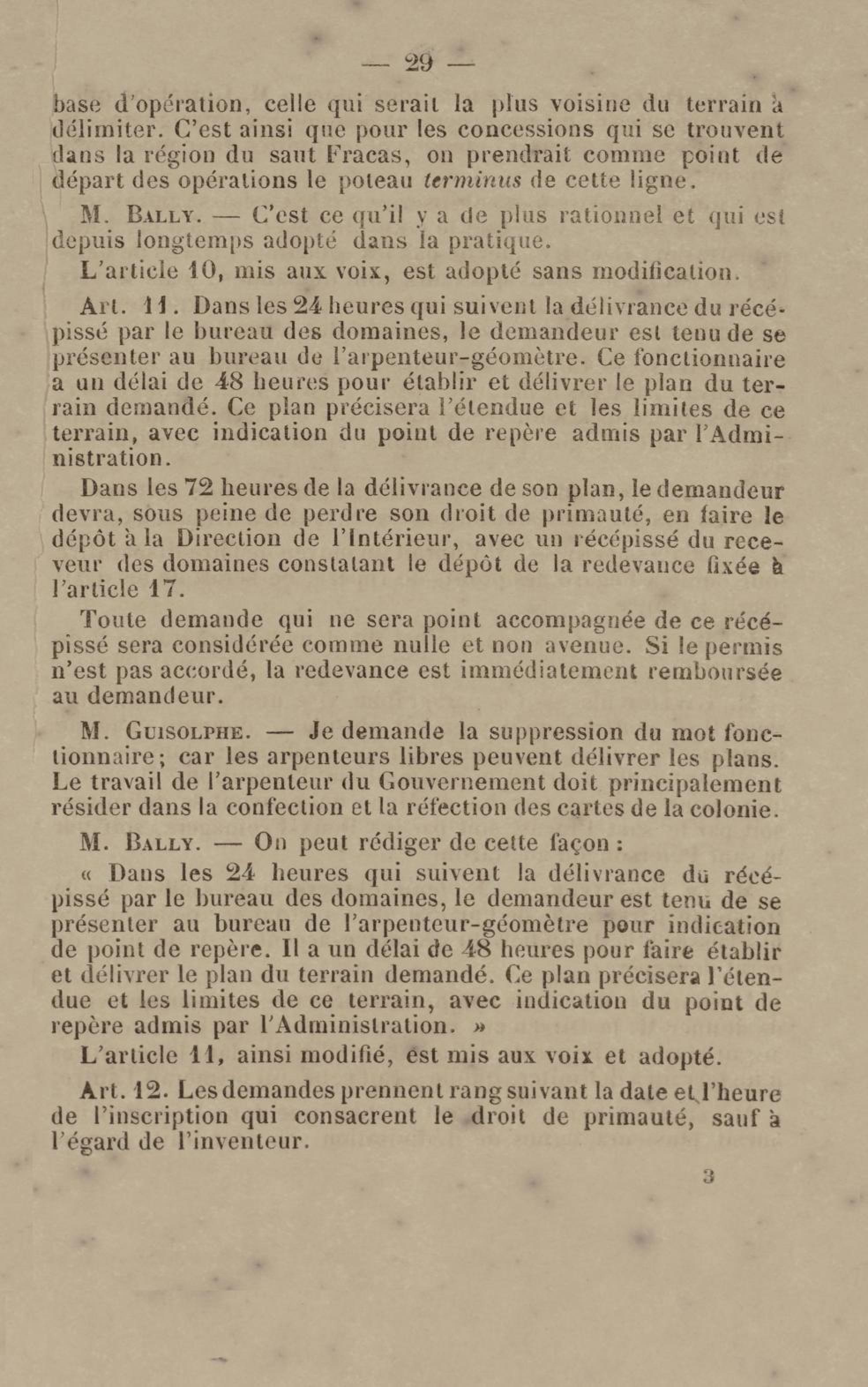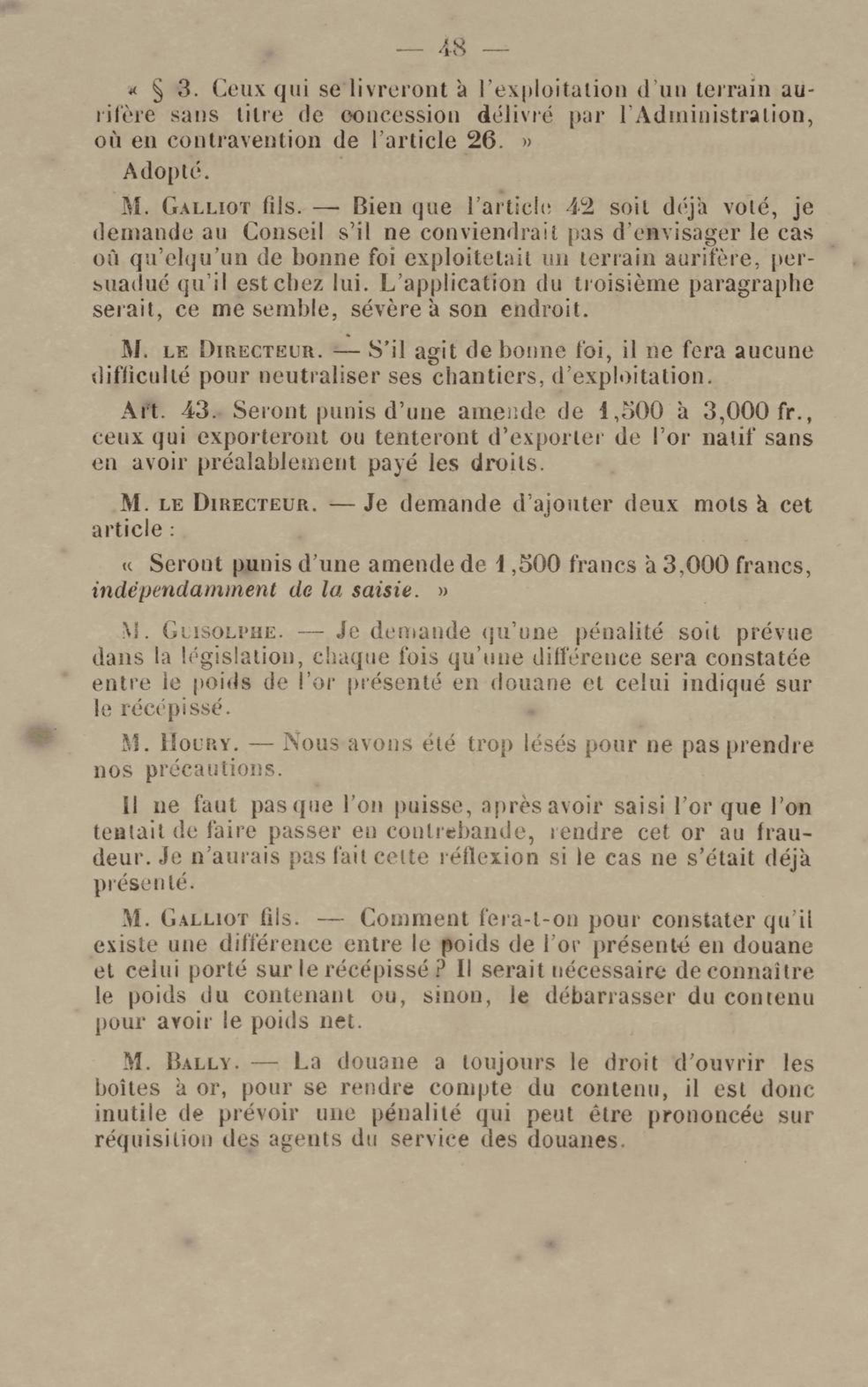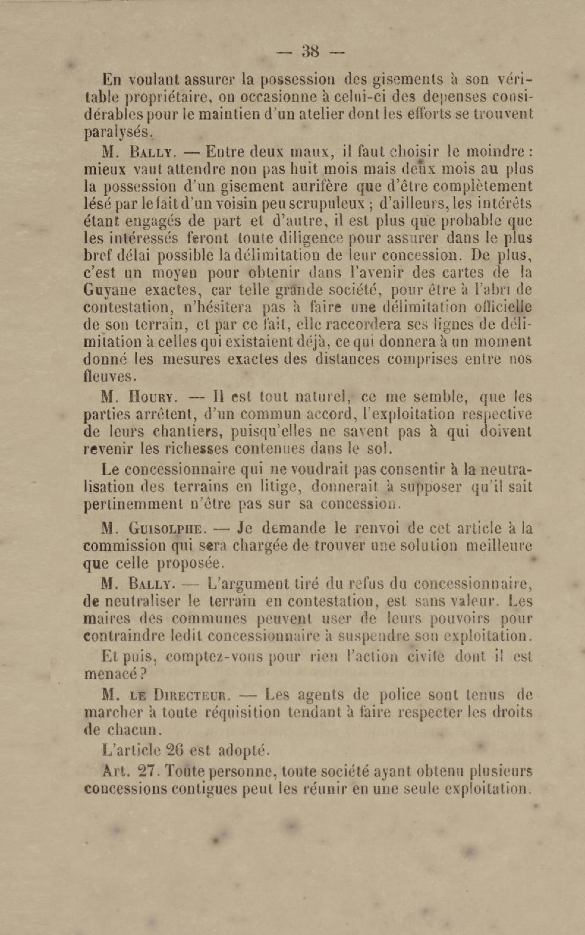 - Projet de décret sur la recherche et l'exploitation des gisements et filons aurifères à la Guyane française : voté par le Conseil général dans sa session extraordinaire de 1884