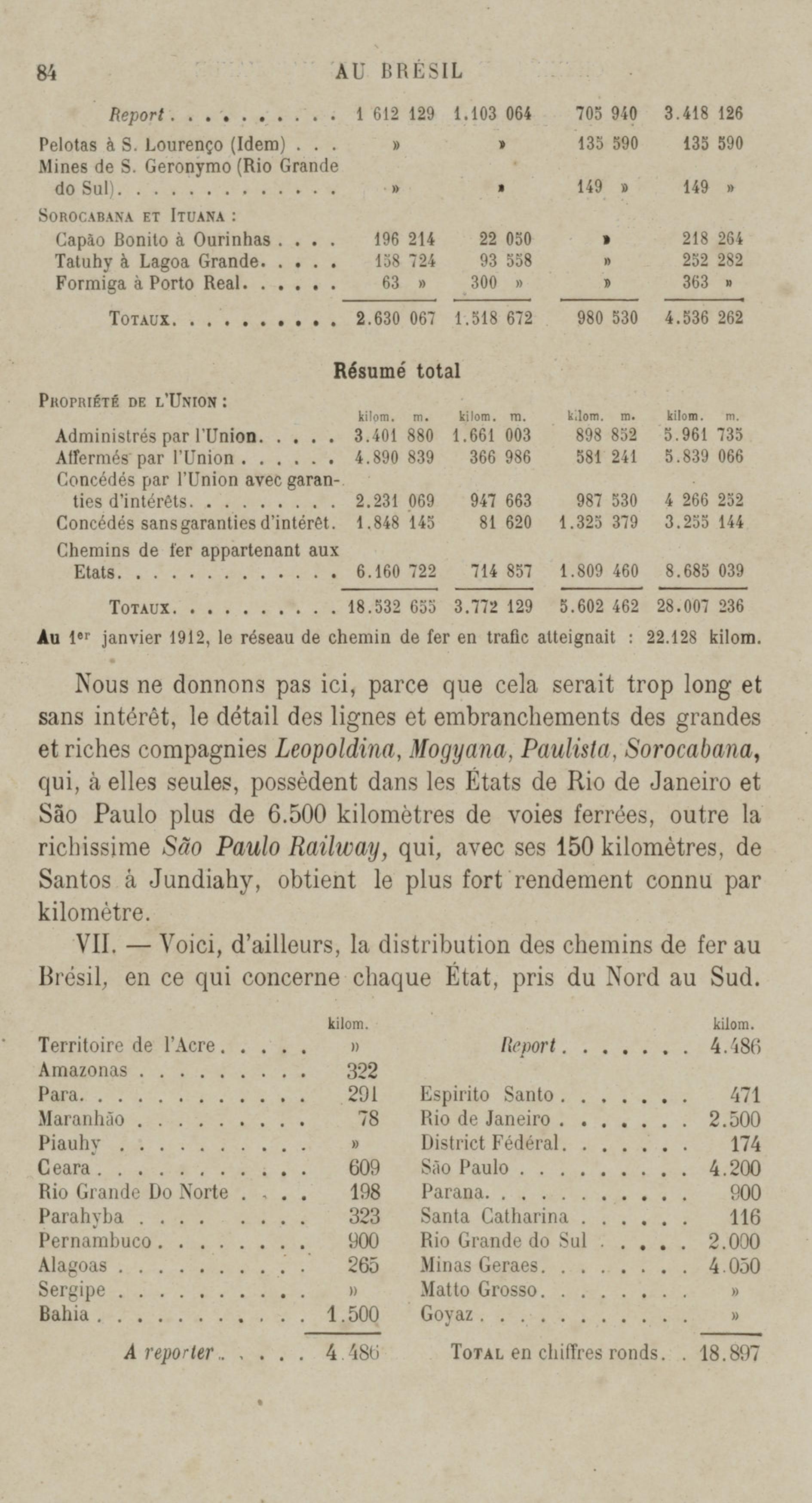 - Au Brésil. Aperçu général : Rio de Janeiro, finances, industries, chemins de fer, marine marchande, etc.