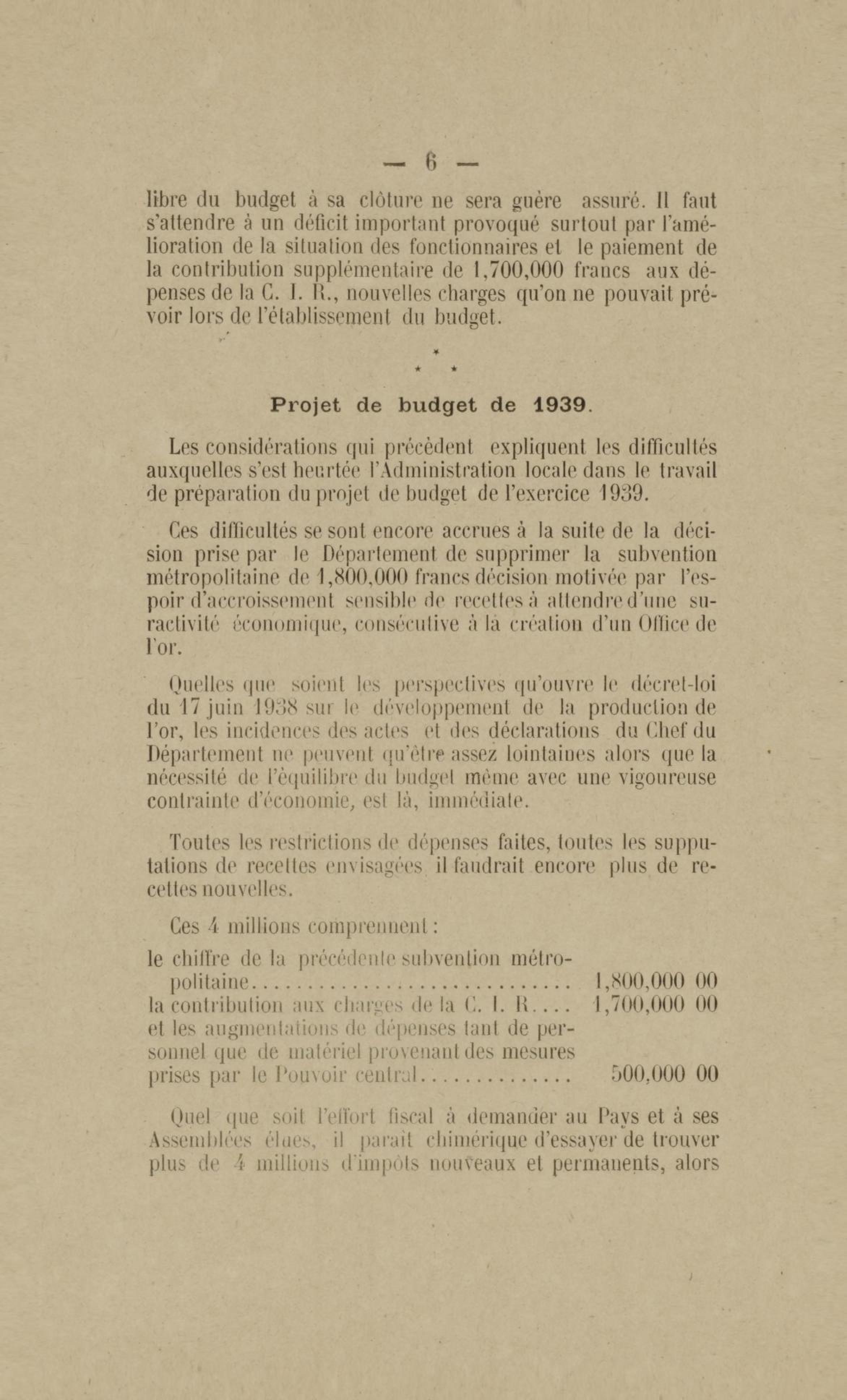 Discours prononcé par M. Robert Chot, gouverneur p. i. [par interim] de la Guyane française, à l'ouverture de la session ordinaire du conseil général, 5 décembre 1938