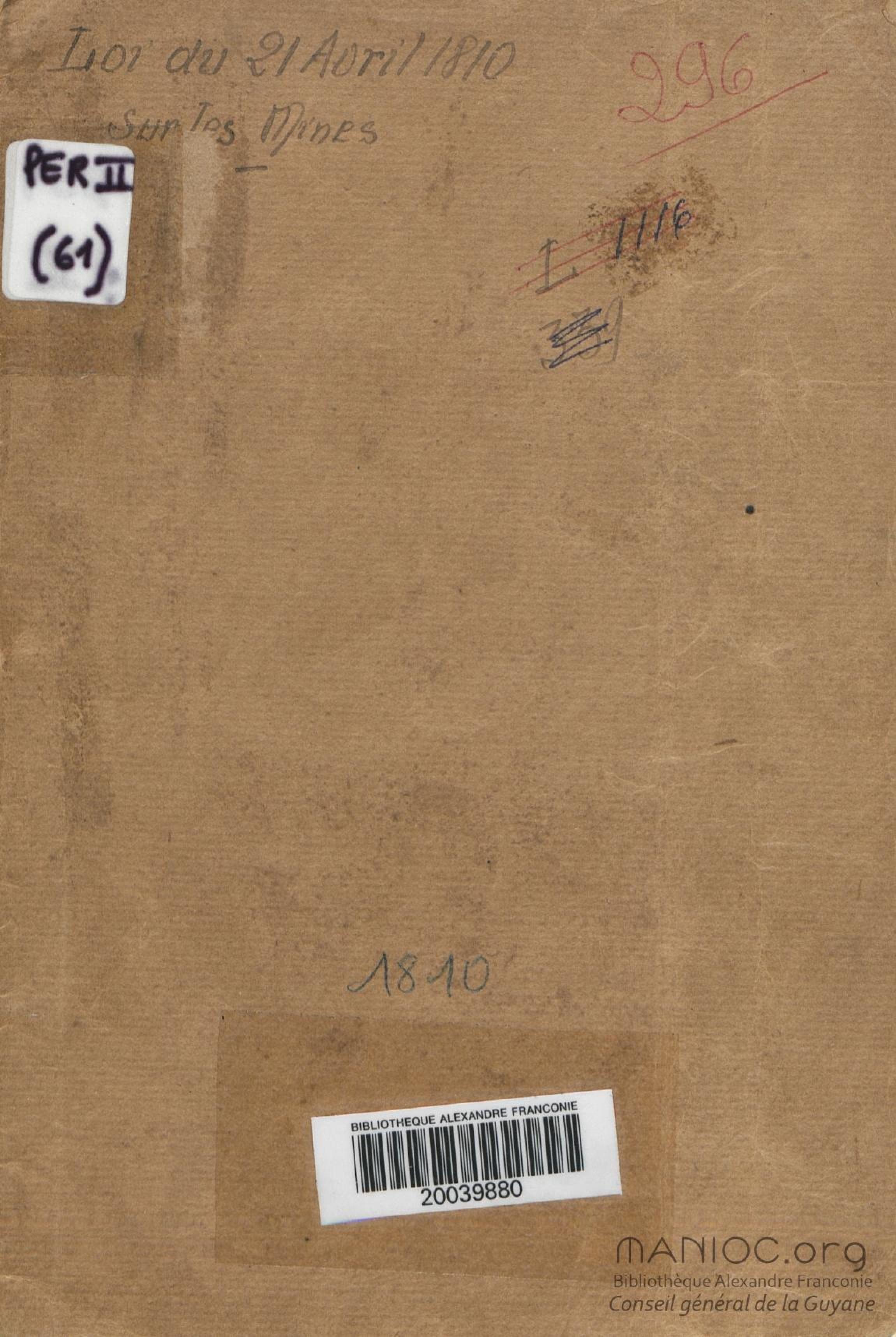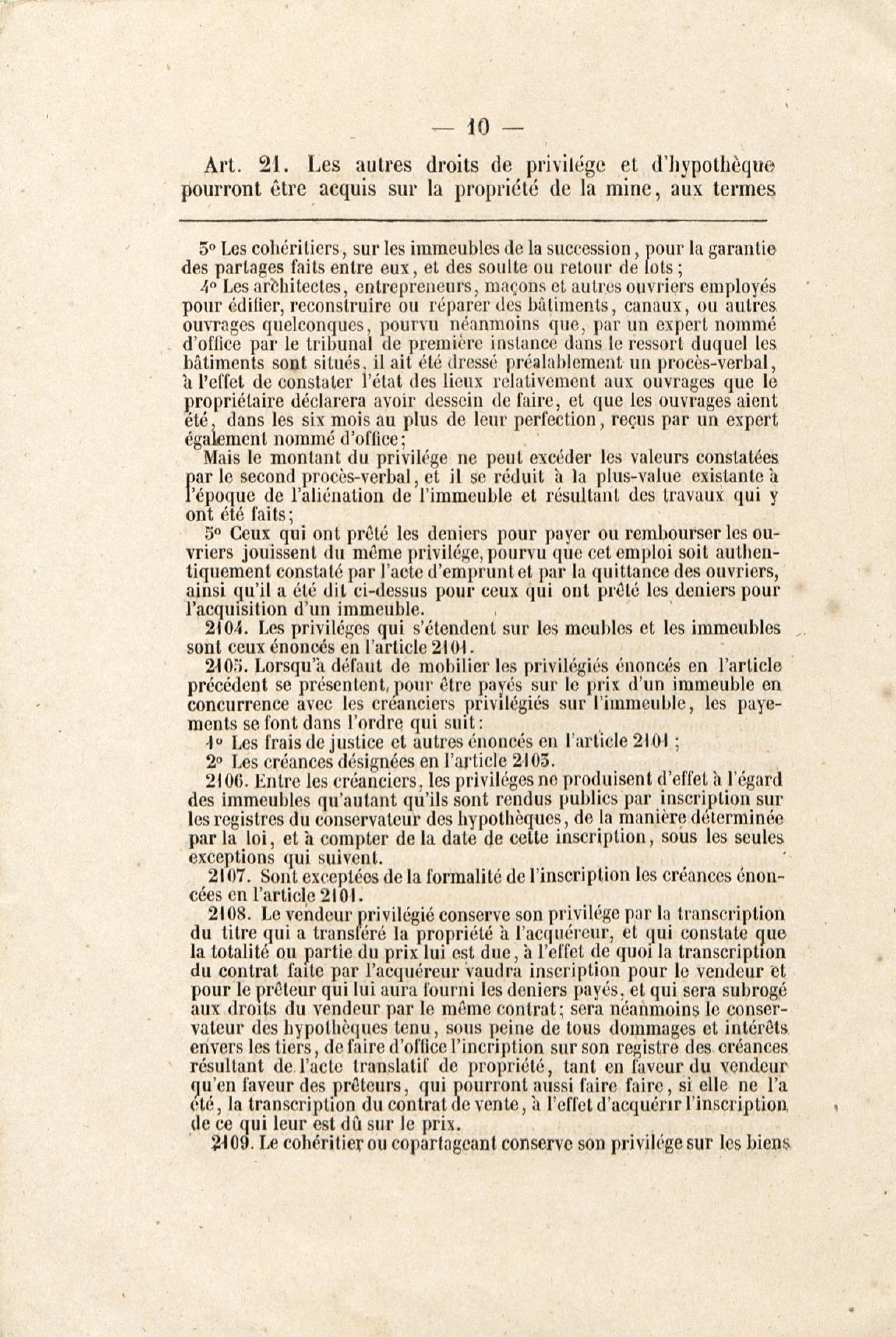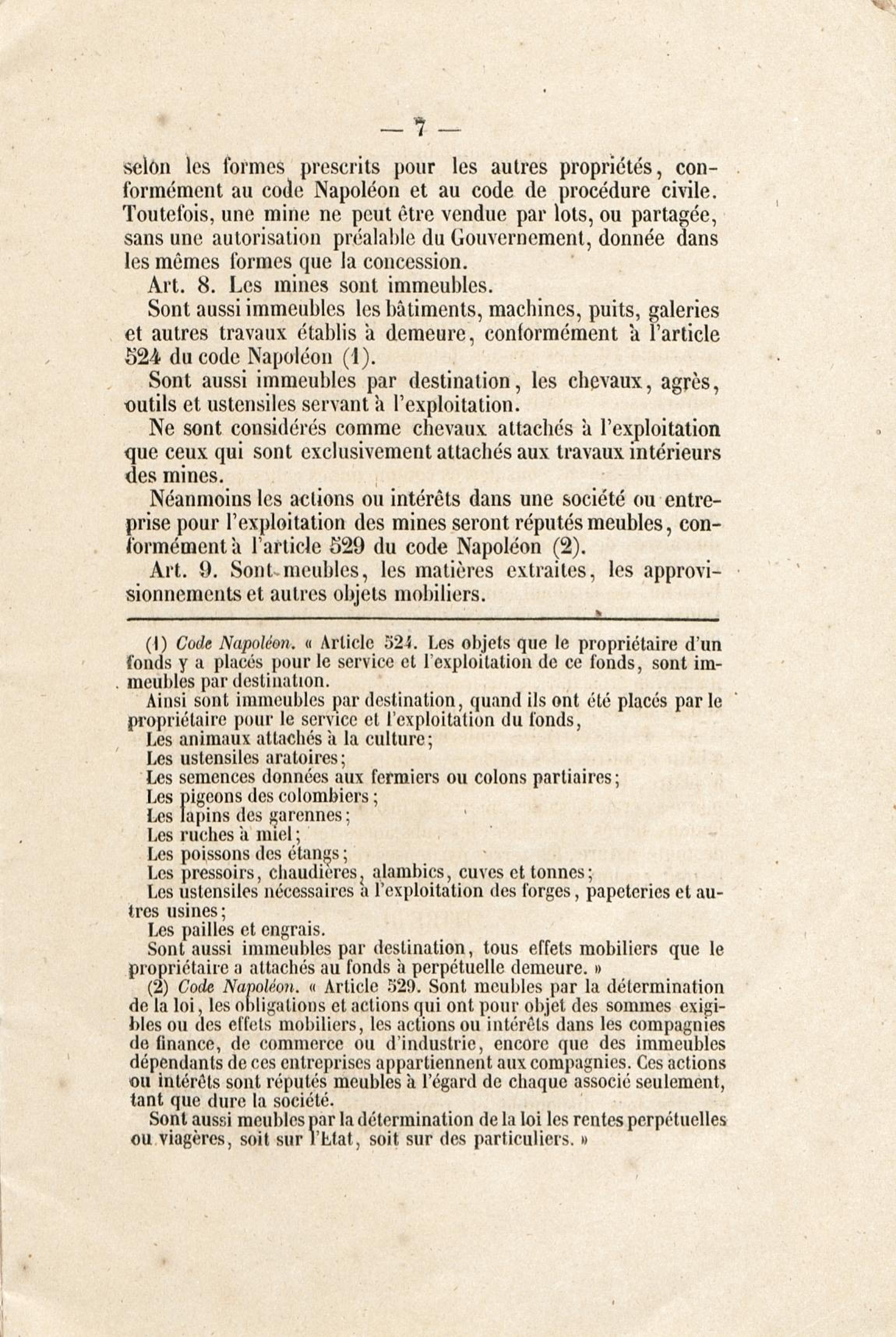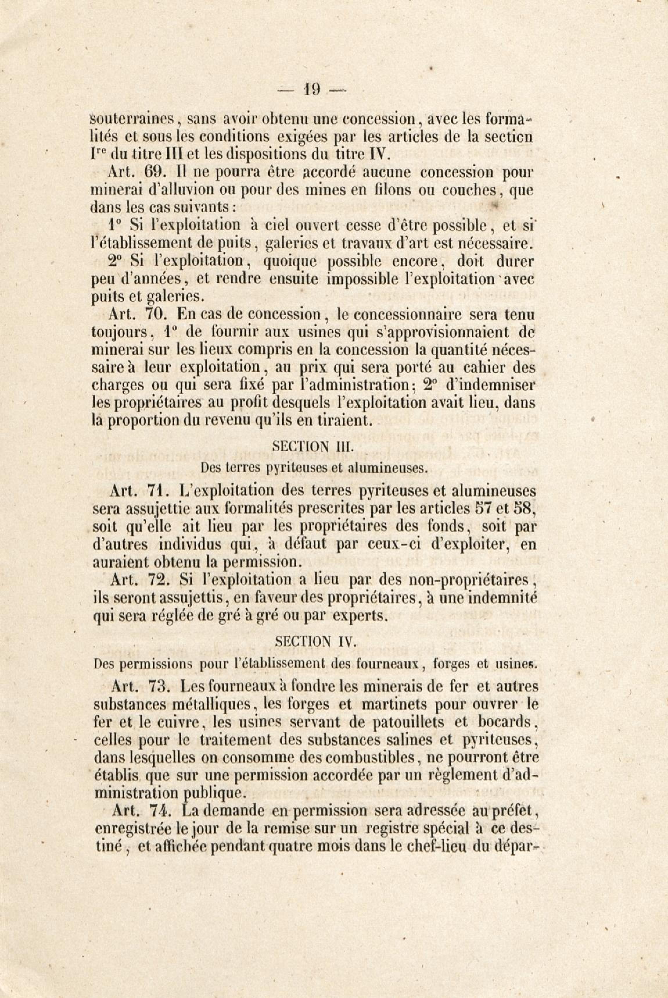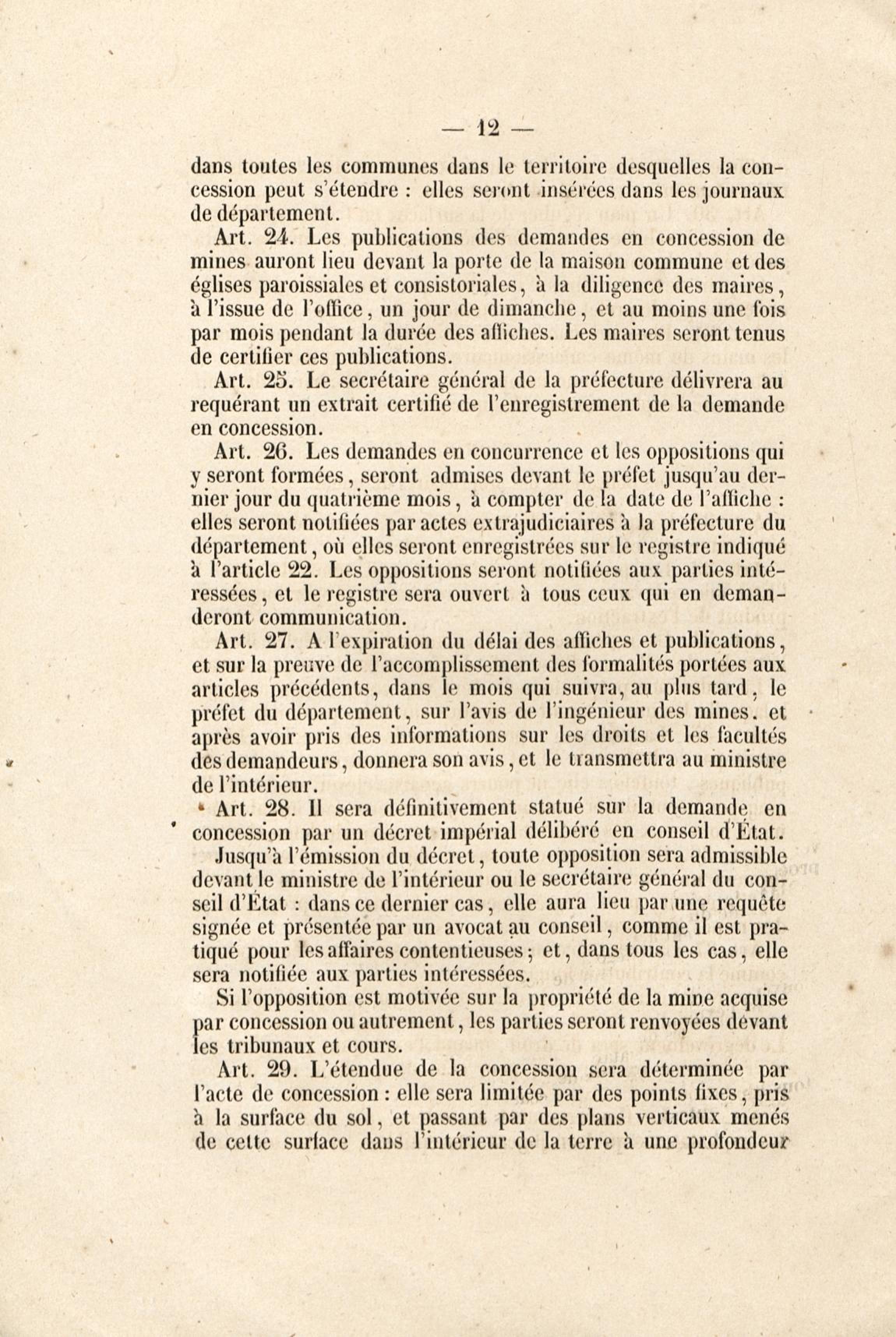 Loi du 21 avril 1810 sur les mines, minières et carrières, l'arrêté de promulgation et le décret modificatif [du 1er avril 1858]