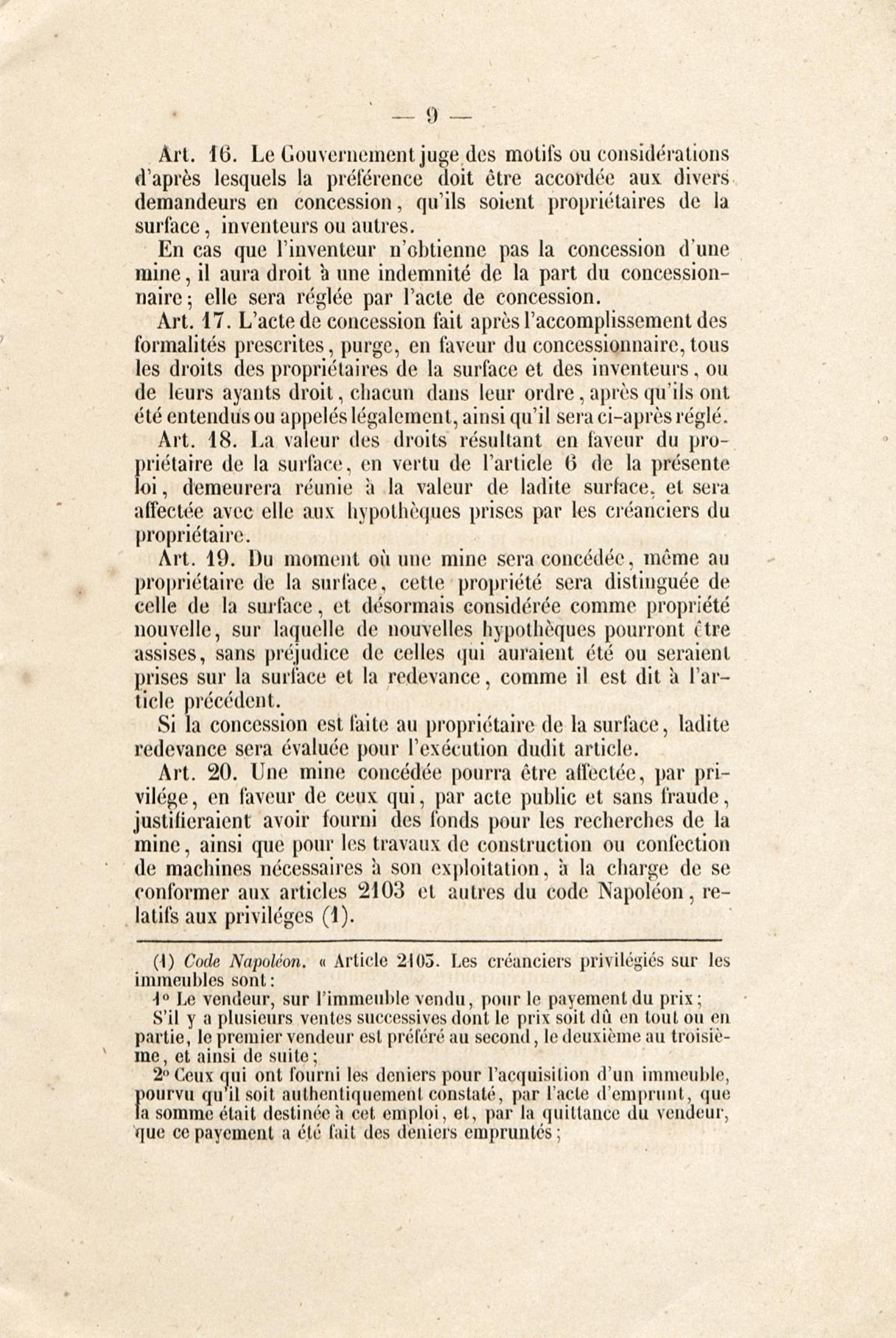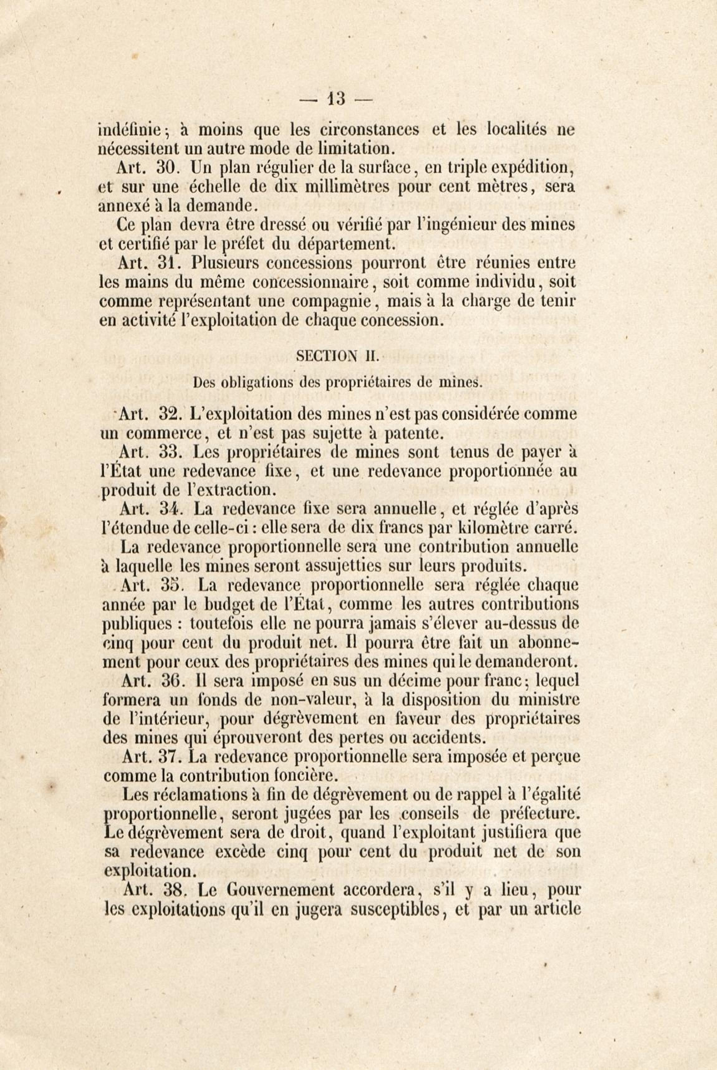 Contenus avec " Est auteur de : Loi du 21 avril 1810 sur les mines, minières et carrières, l'arrêté de promulgation et le décret modificatif [du 1er avril 1858] "