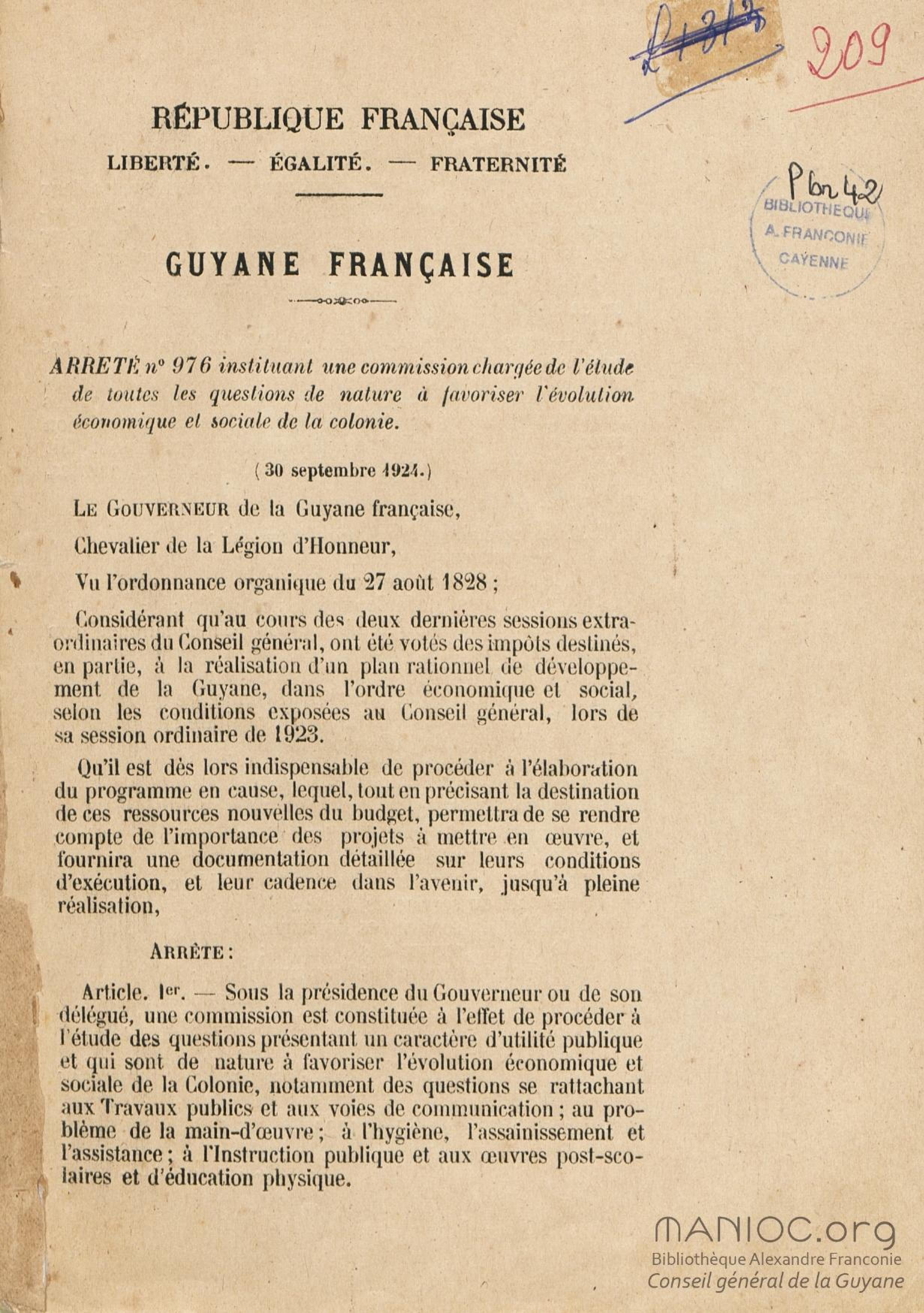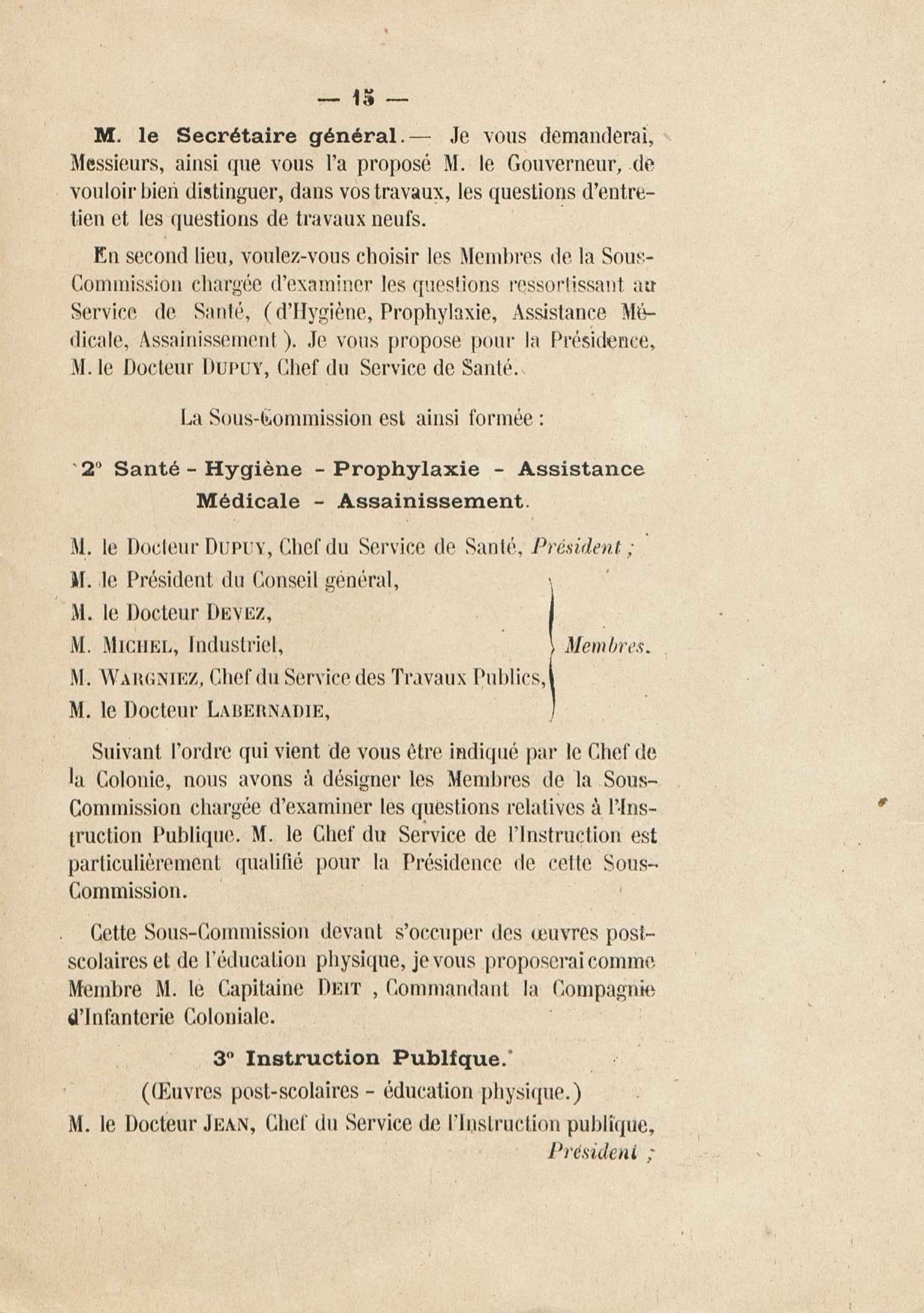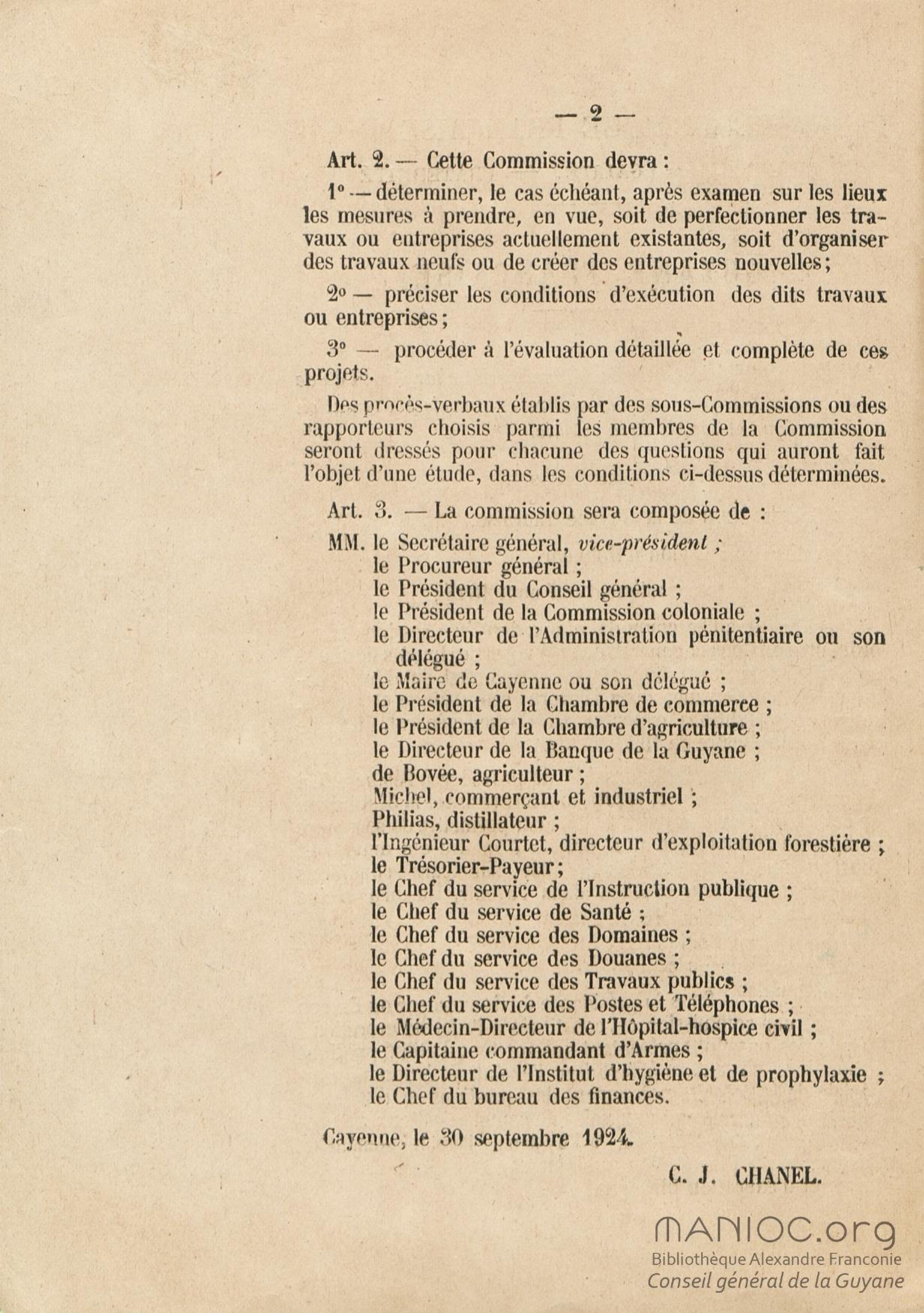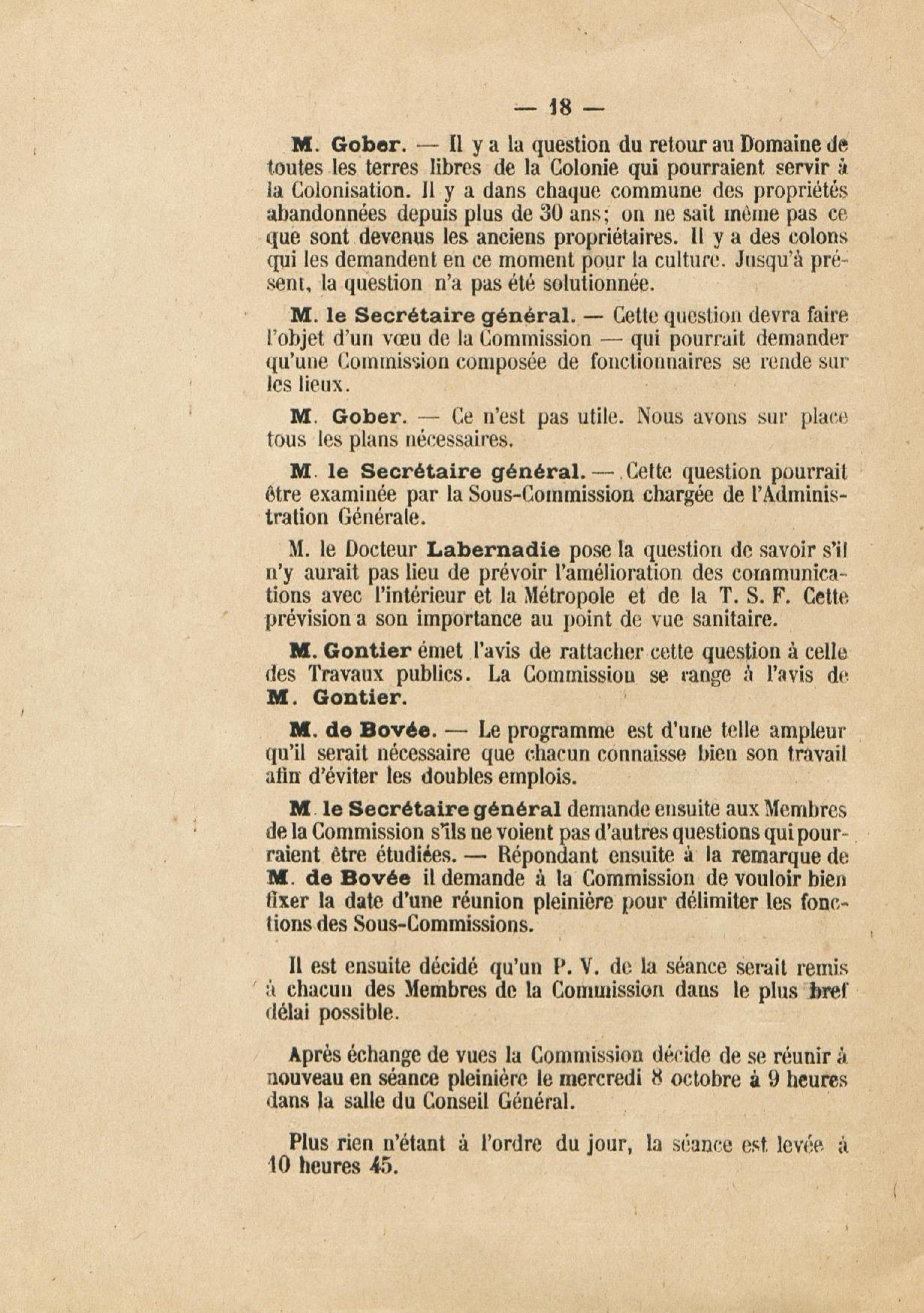 Procès verbal de la première réunion de la Commission chargée par M. Ch. J. Chanel,... de procéder à l'étude de toutes les questions de nature à favoriser l'évolution économique et sociale de la colonie : [commission instituée par l']arrêté du 30 septembre 1924