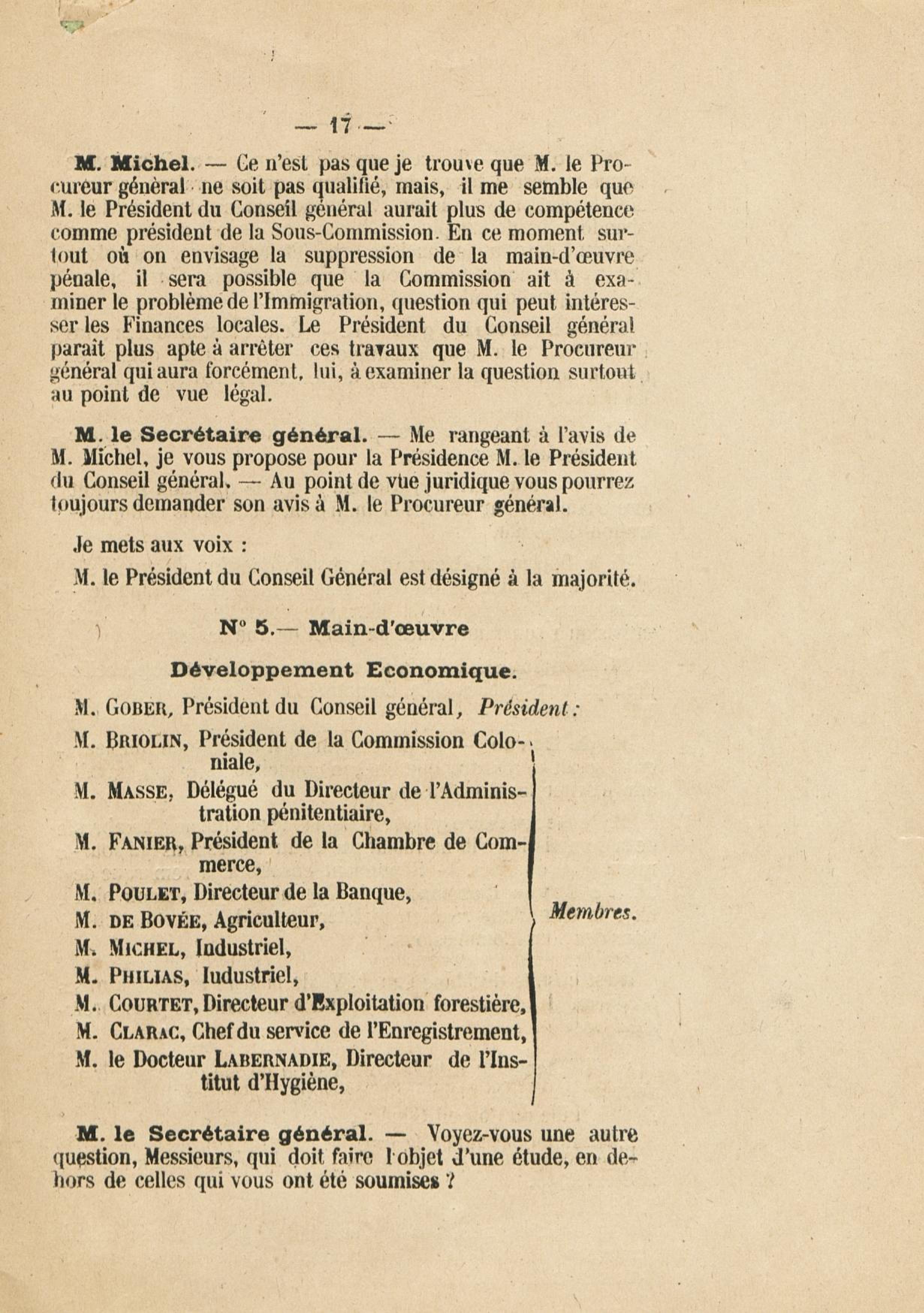 Contenus avec " Est auteur de : Procès verbal de la première réunion de la Commission chargée par M. Ch. J. Chanel,... de procéder à l'étude de toutes les questions de nature à favoriser l'évolution économique et sociale de la colonie : [commission instituée par l']arrêté du 30 septembre 1924 "