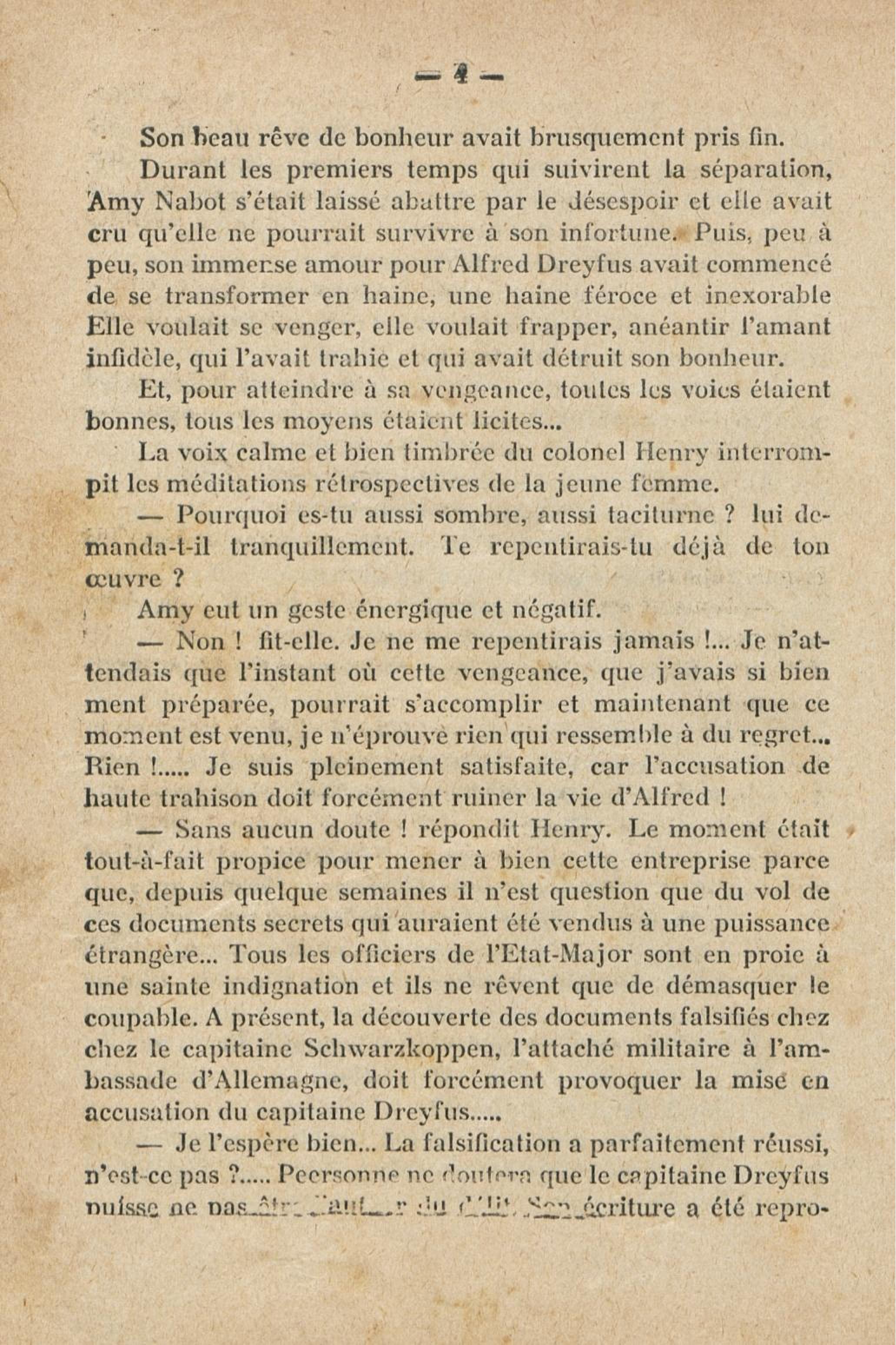 - Roman feuilleton relatant l'affaire Dreyfus, publié de 1931 à 1933, en fascicule hebdomaire (162 n° de 32 pages, soit 5184 pages)