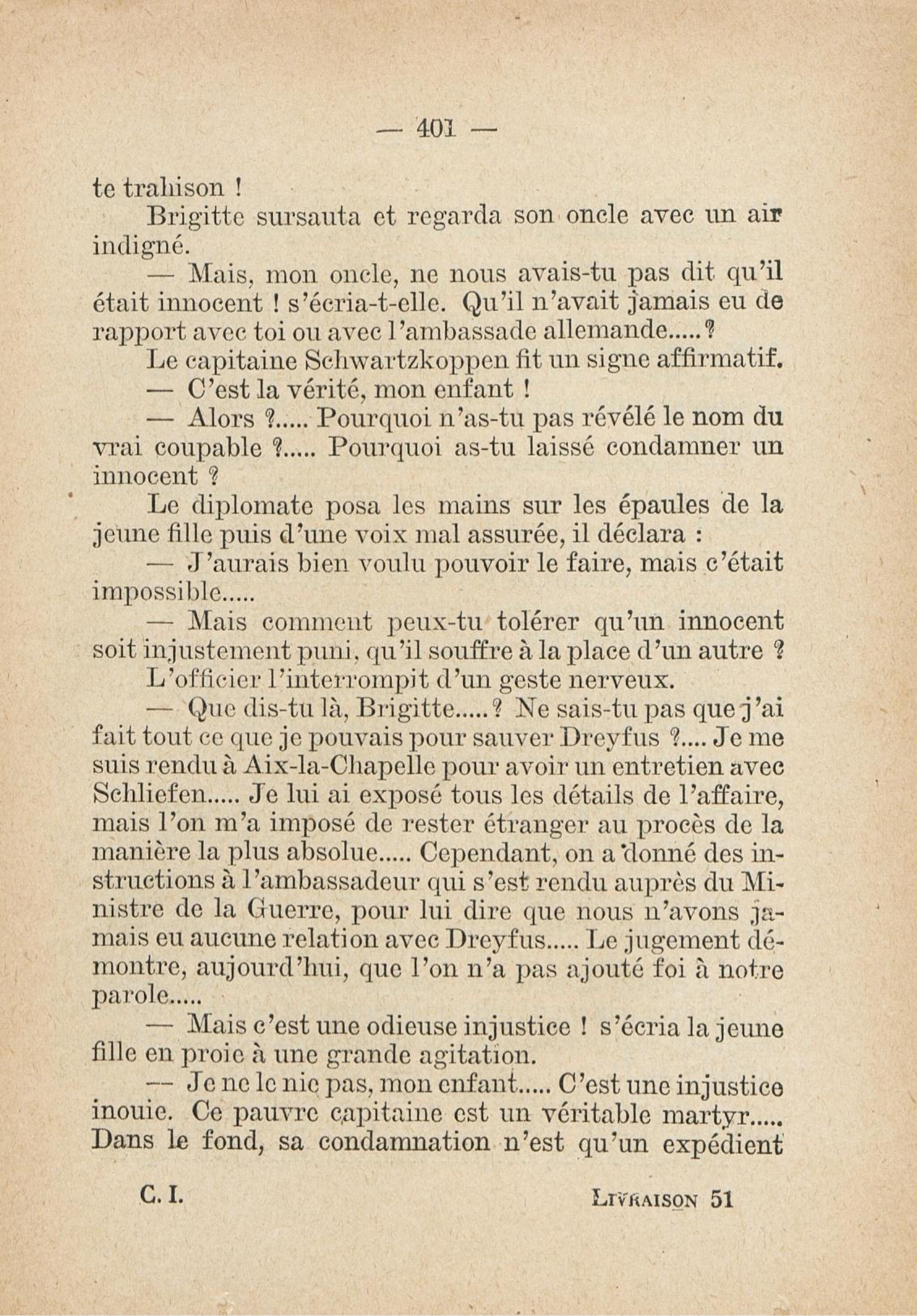 - Roman feuilleton relatant l'affaire Dreyfus, publié de 1931 à 1933, en fascicule hebdomaire (162 n° de 32 pages, soit 5184 pages)