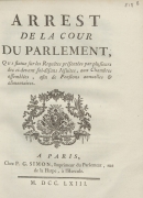Arrest de la cour de parlement, qui condamne un Imprimé ayant pour titre : Lettre d’un Religieux Bénédiction de la Congrégation de Saint Maur, à un Magistrat, sur la Triennalité des Supérieurs de cette même Congrégation, à être lacéré & brûlé par l’Exécuteur de la haute-Justice Texte