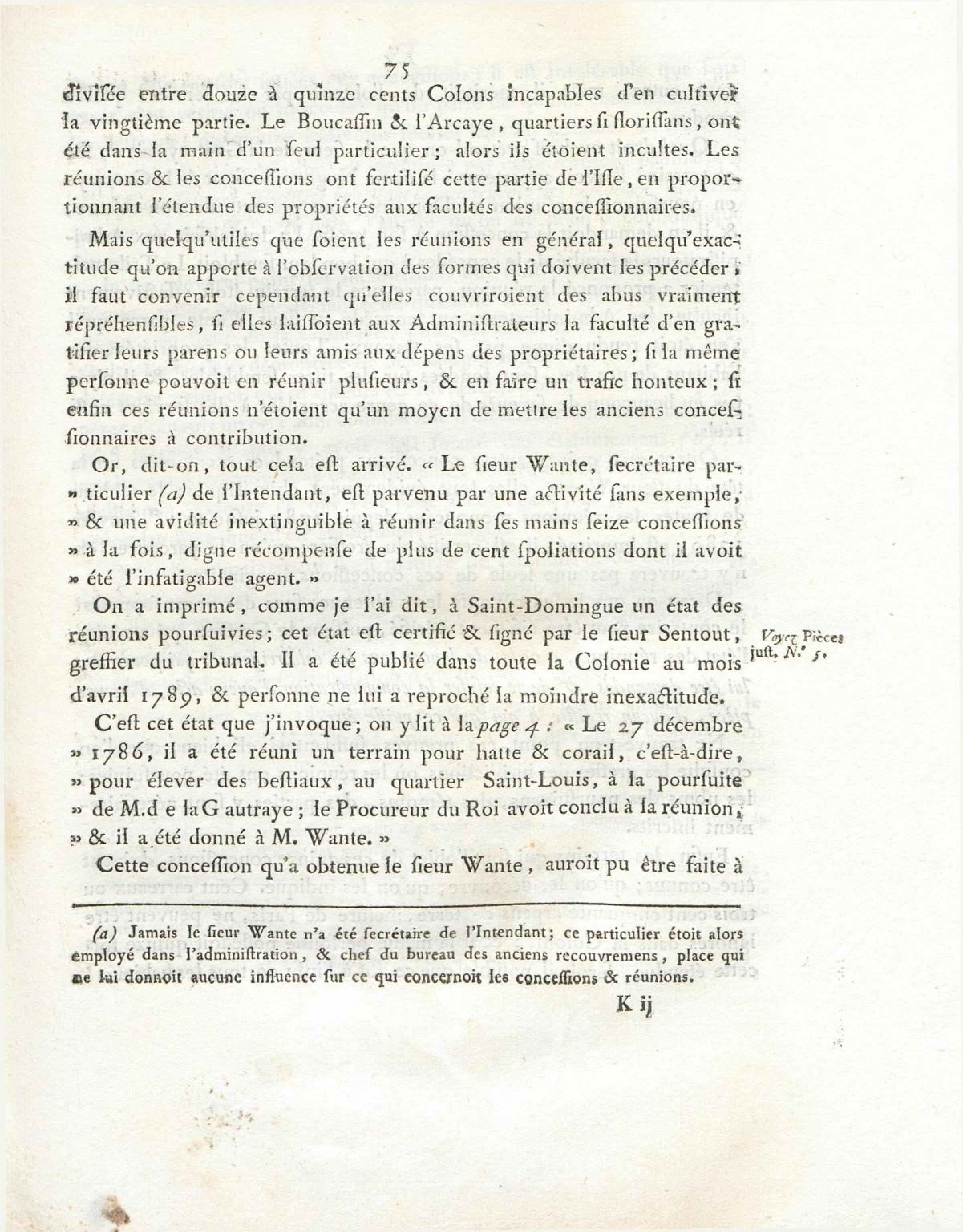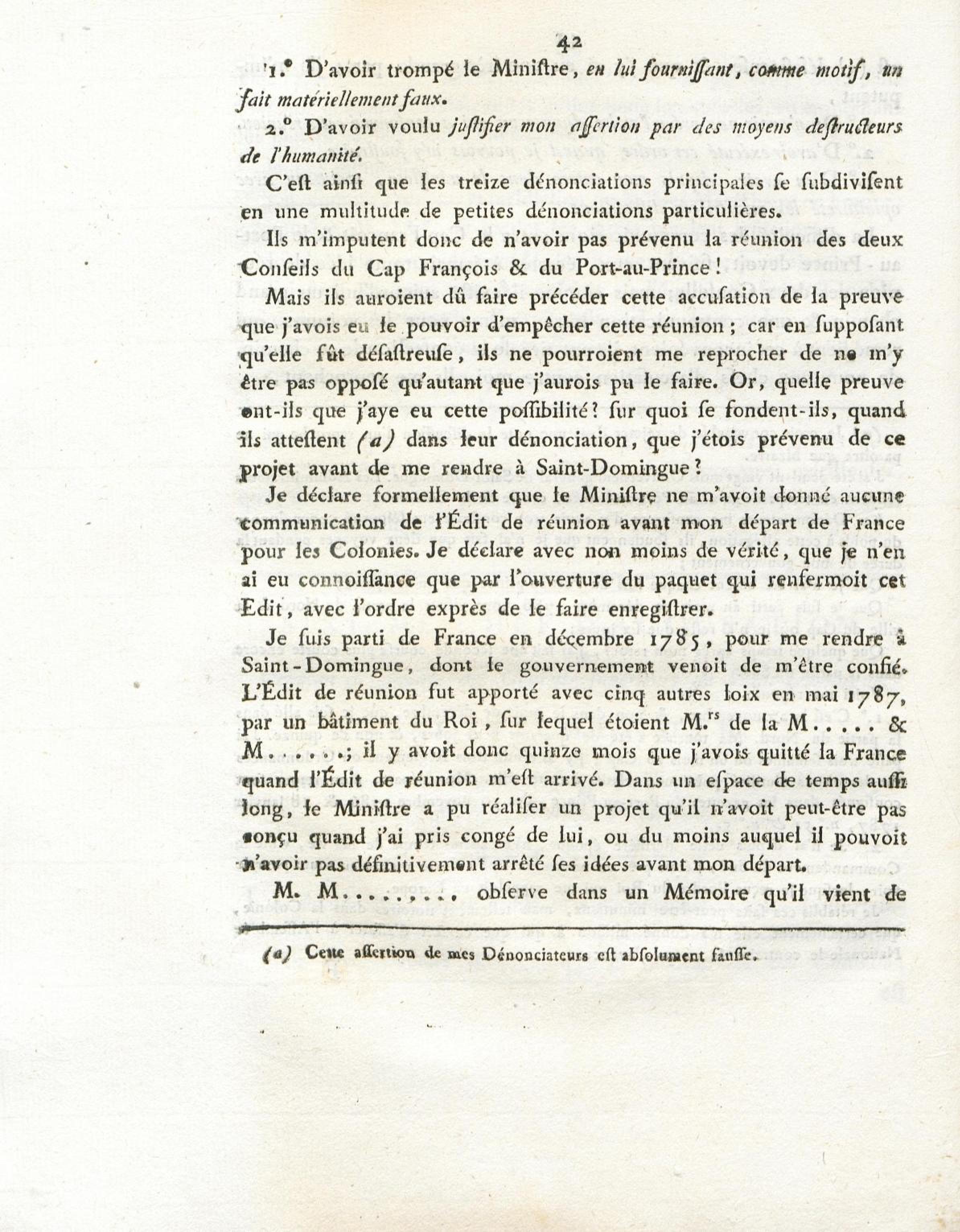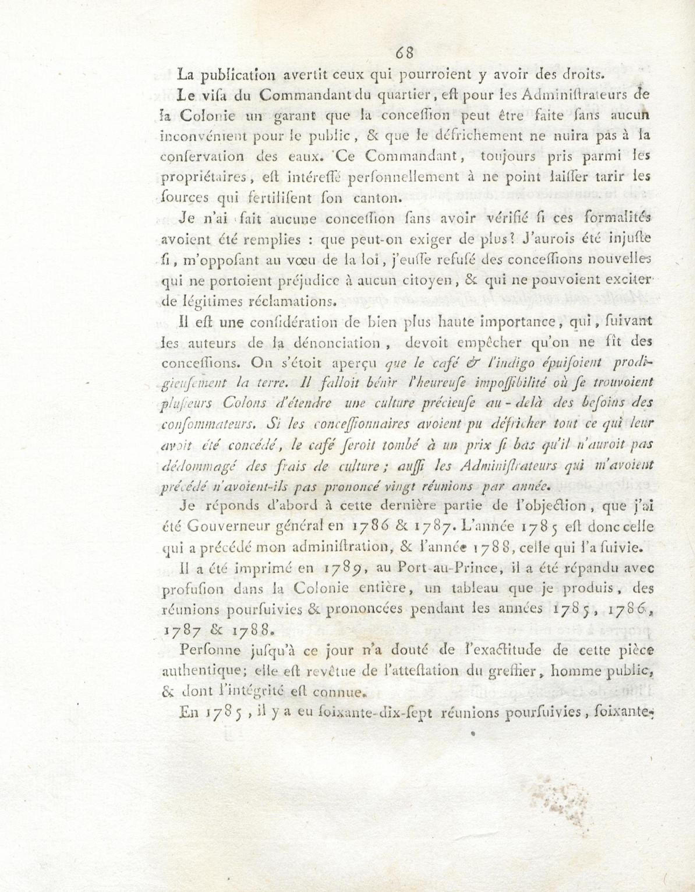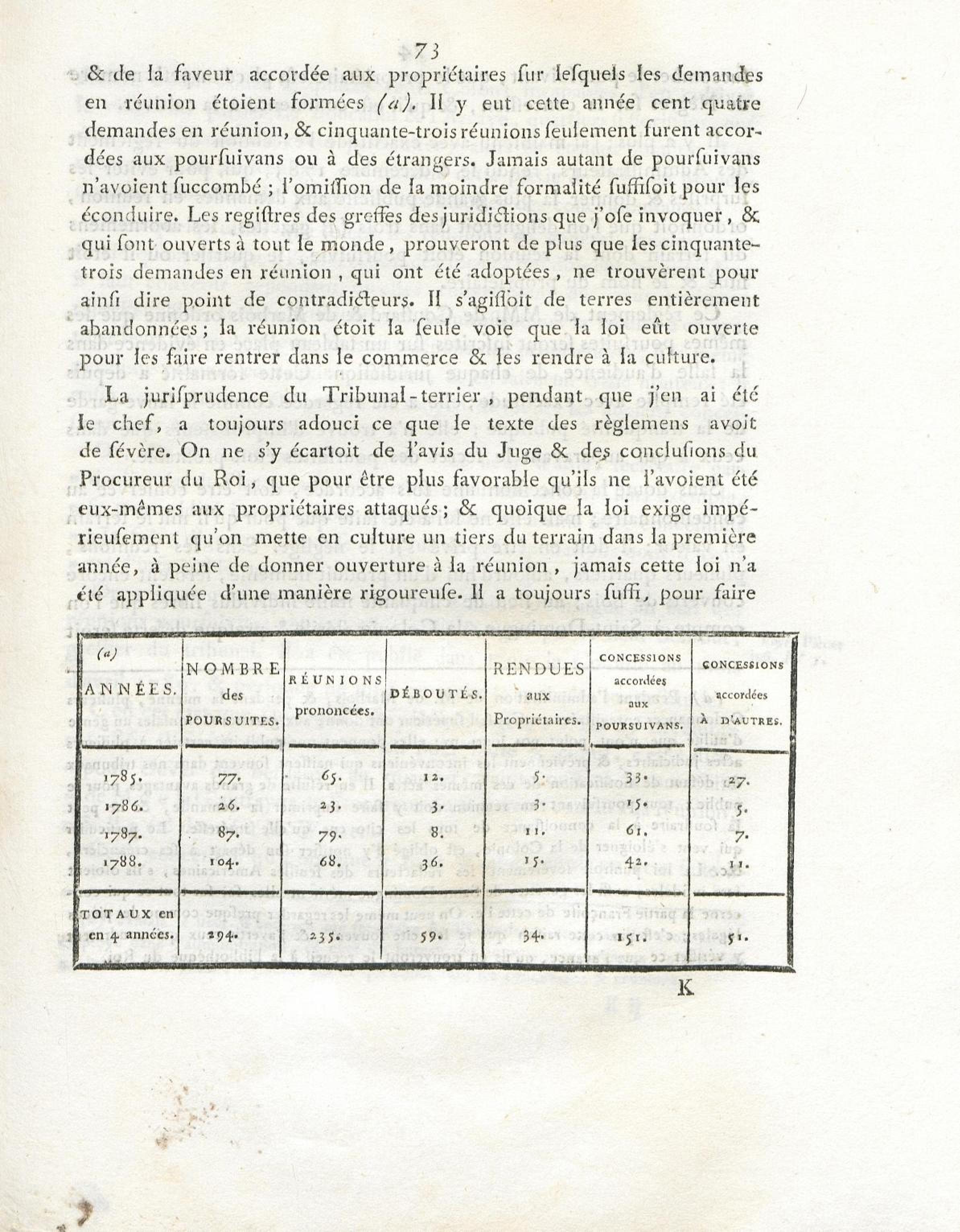 Etat des réunions poursuivies à Saint-Domingue, et sur lesquelles est intervenu jugement pendant les années 1785, 1786, 1787 et 1788. Année 1785.