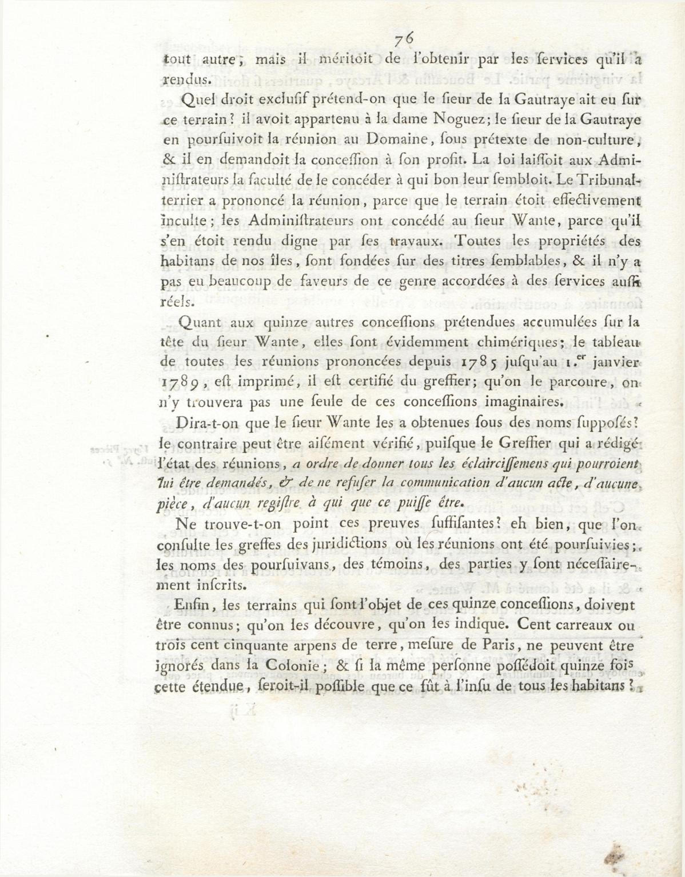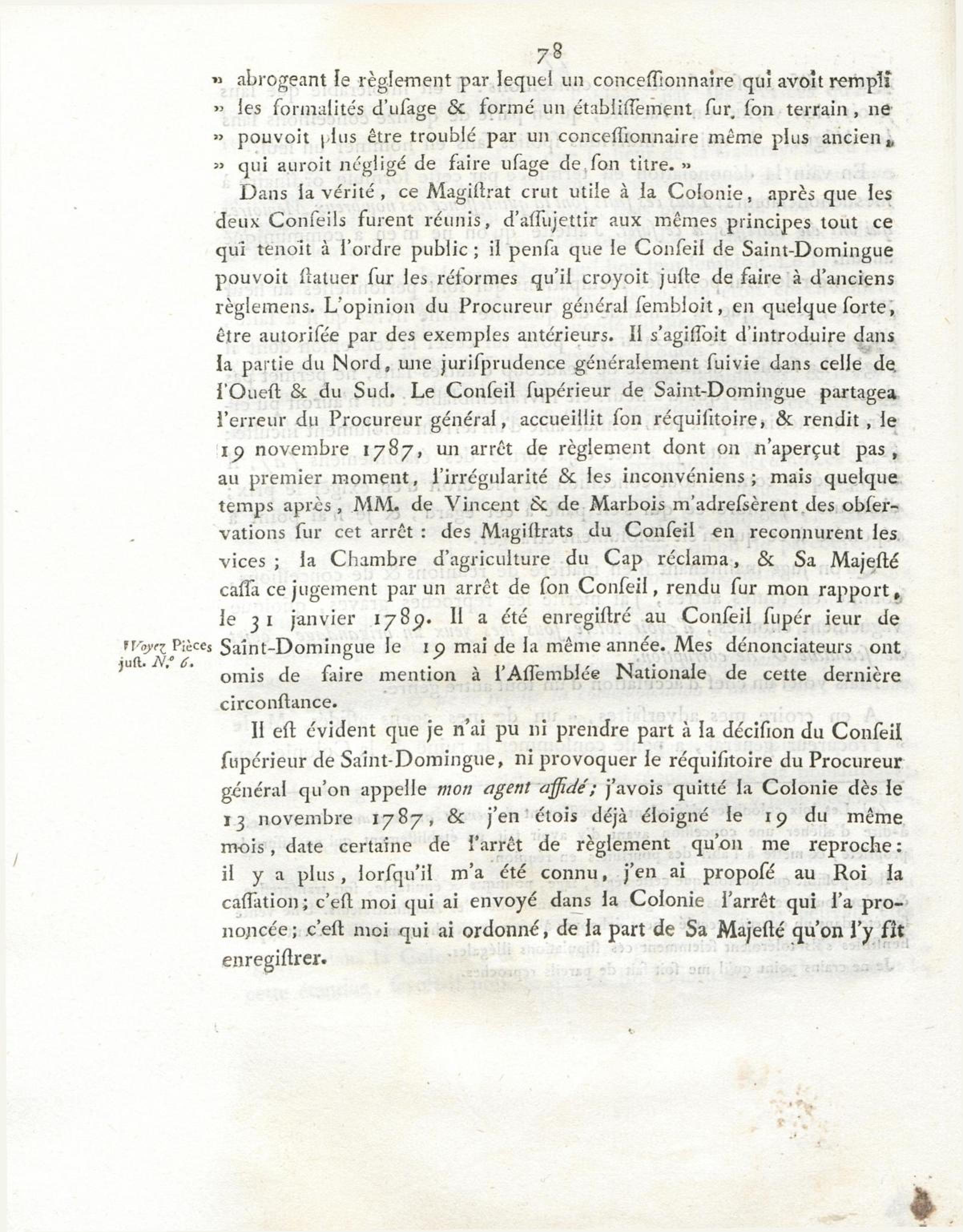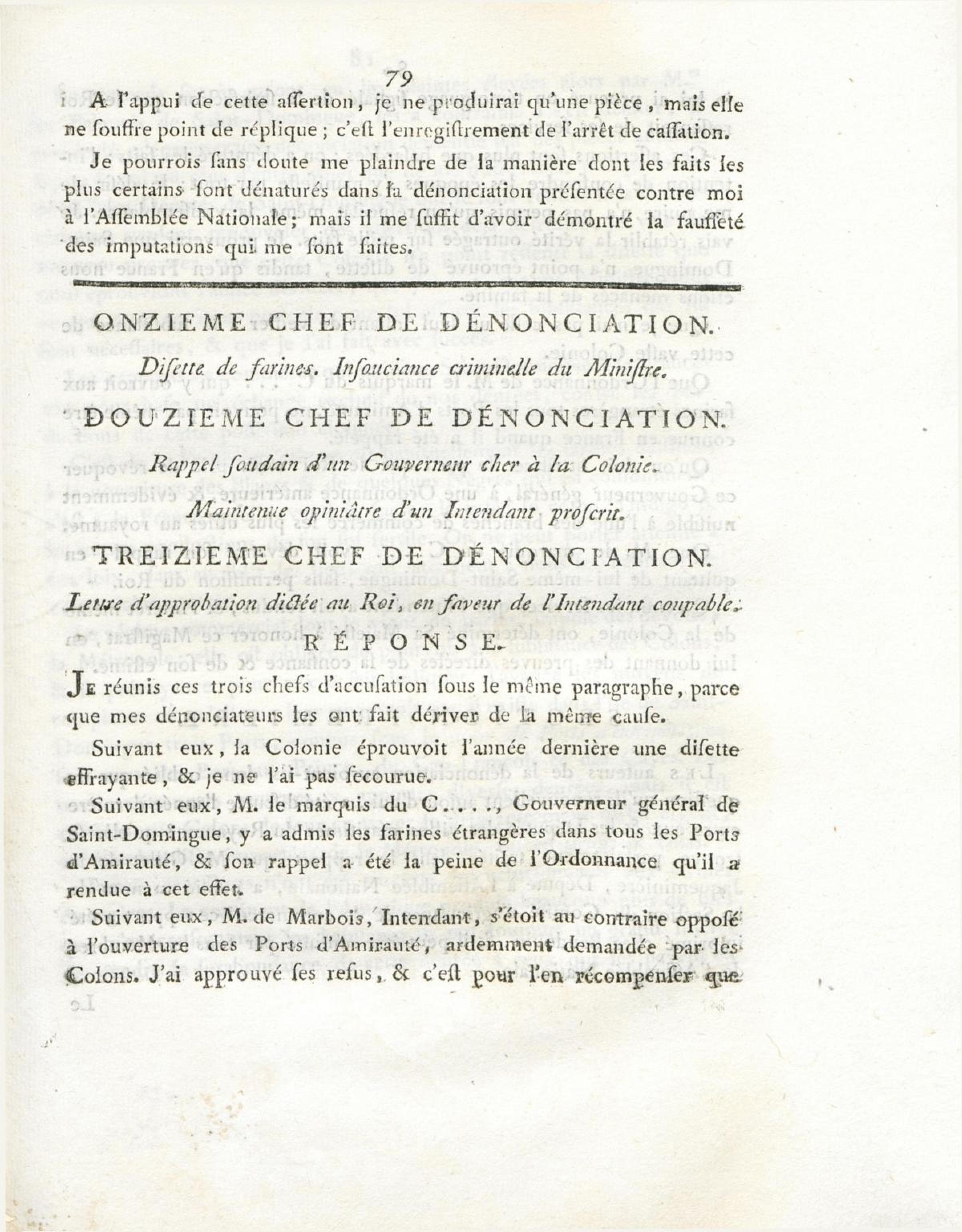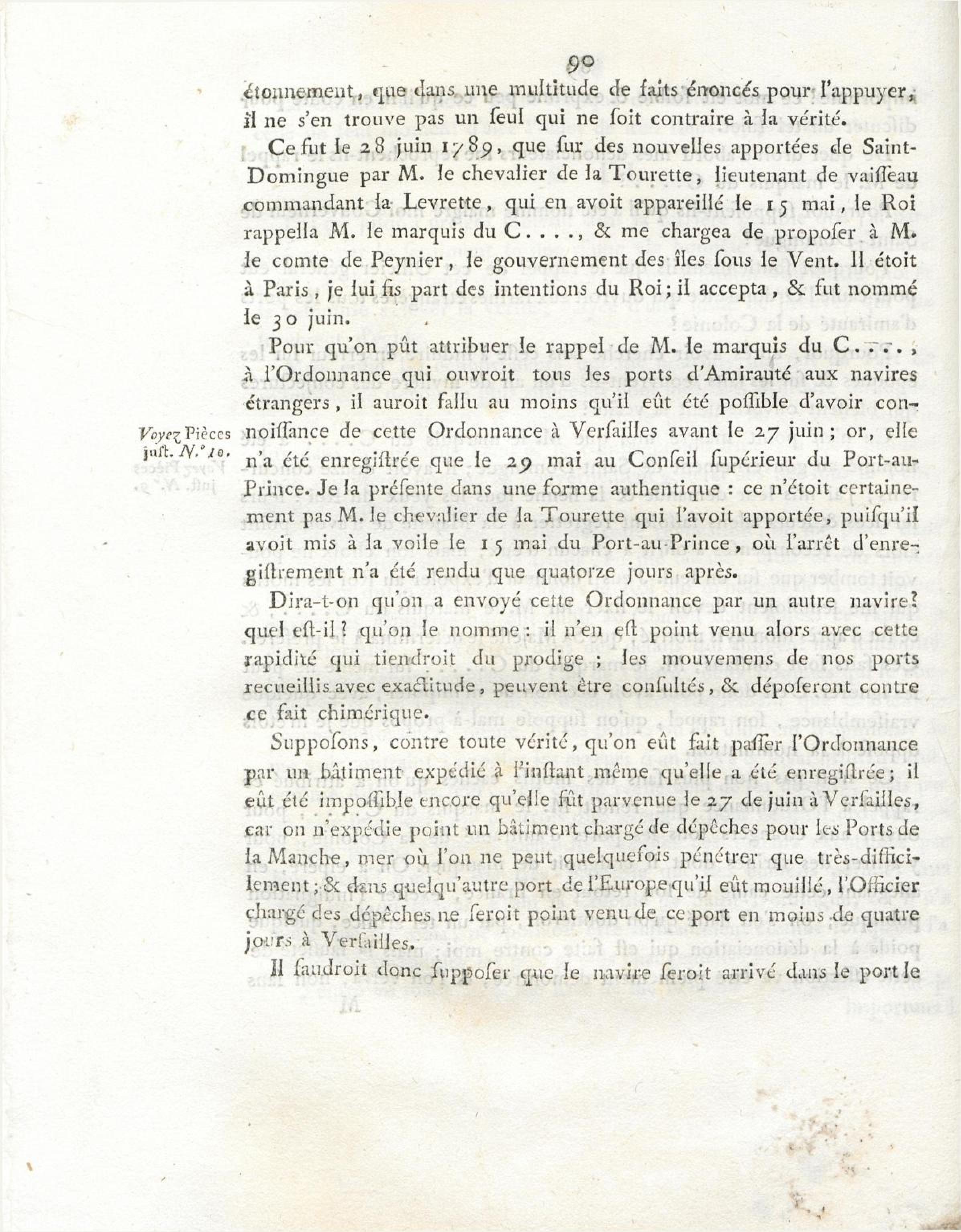 - Mémoire envoyé le 18 juin 1790, au Comité des rapports de l'Assemblée nationale