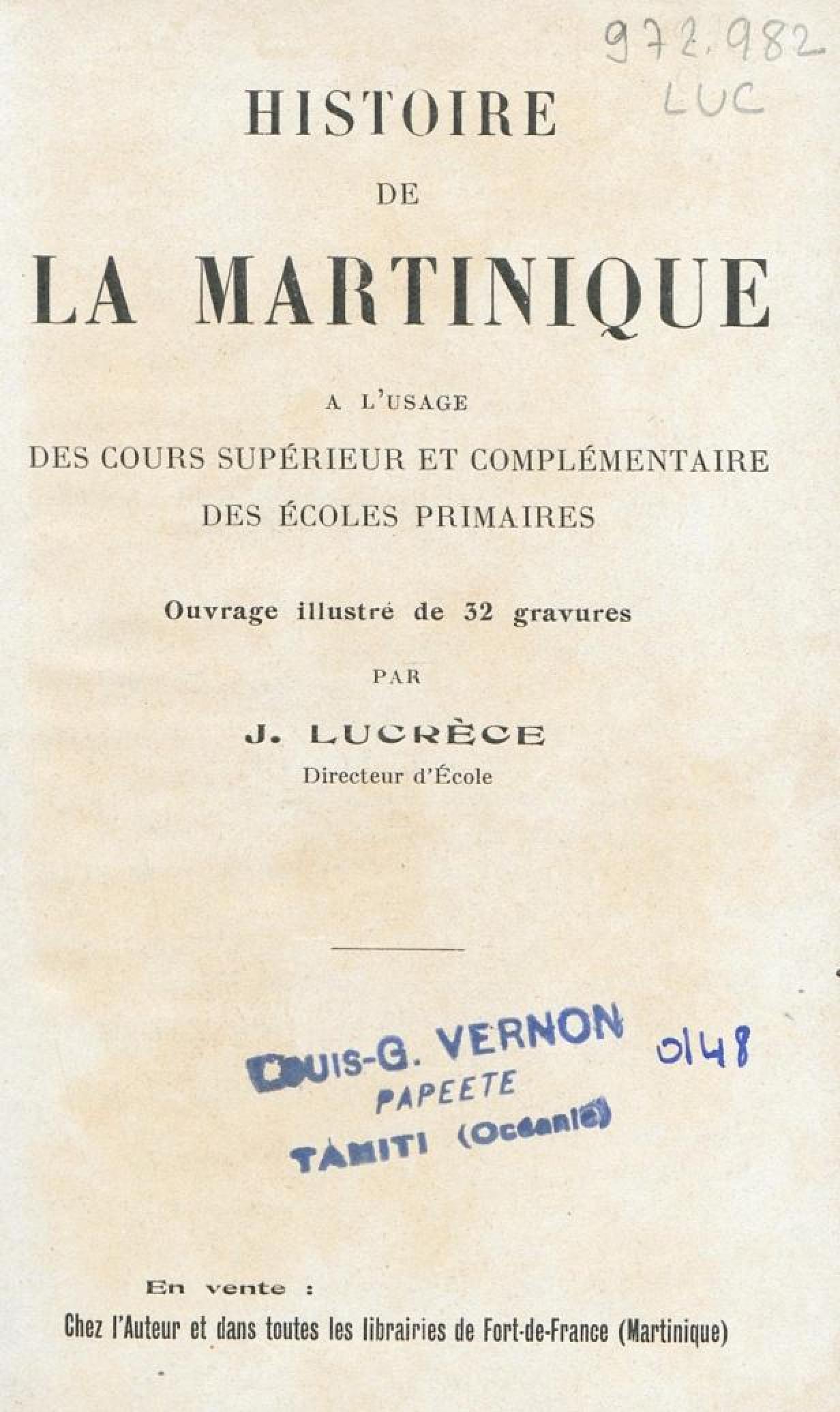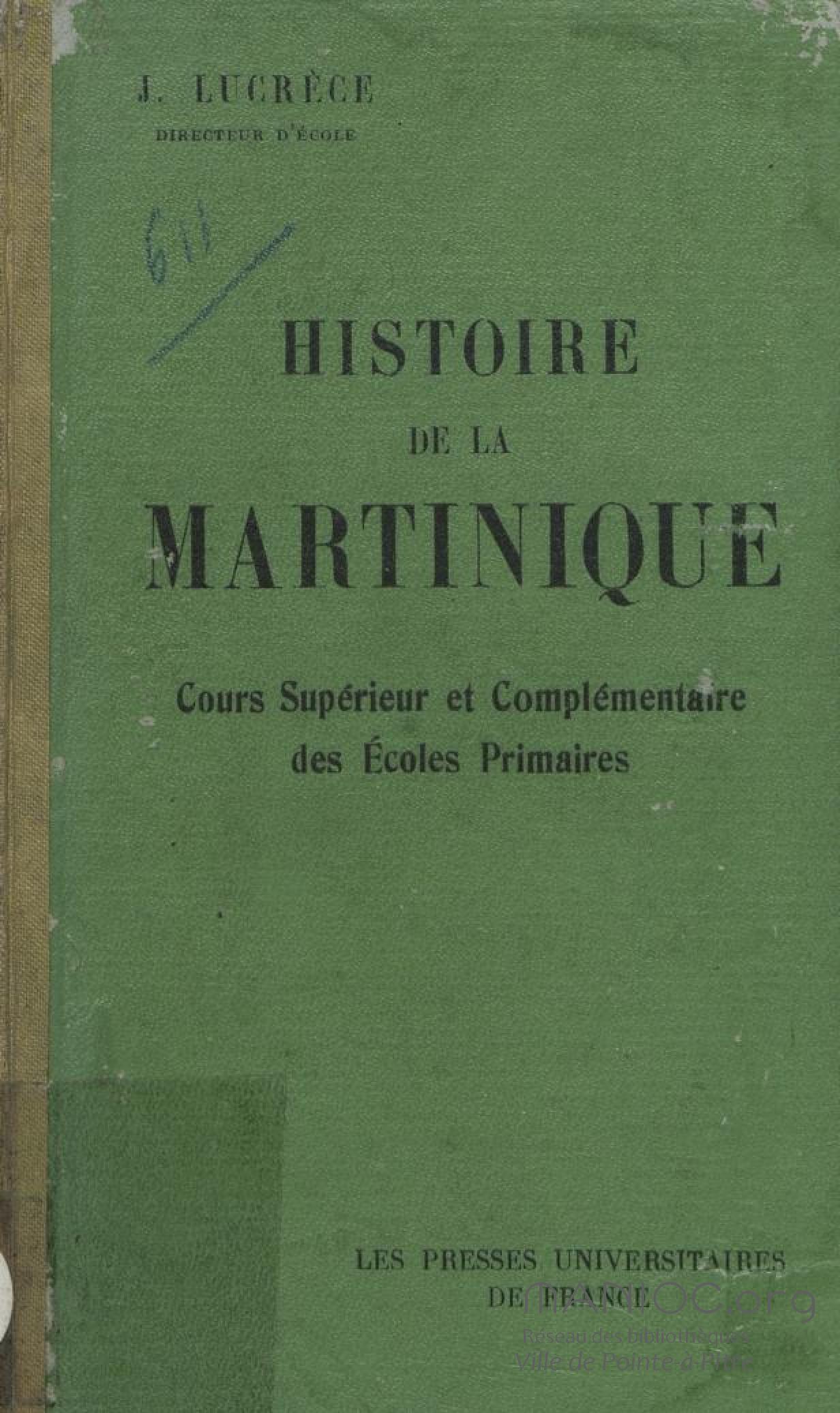 Histoire de la Martinique : à l'usage des cours supérieur et complémentaire des écoles primaires