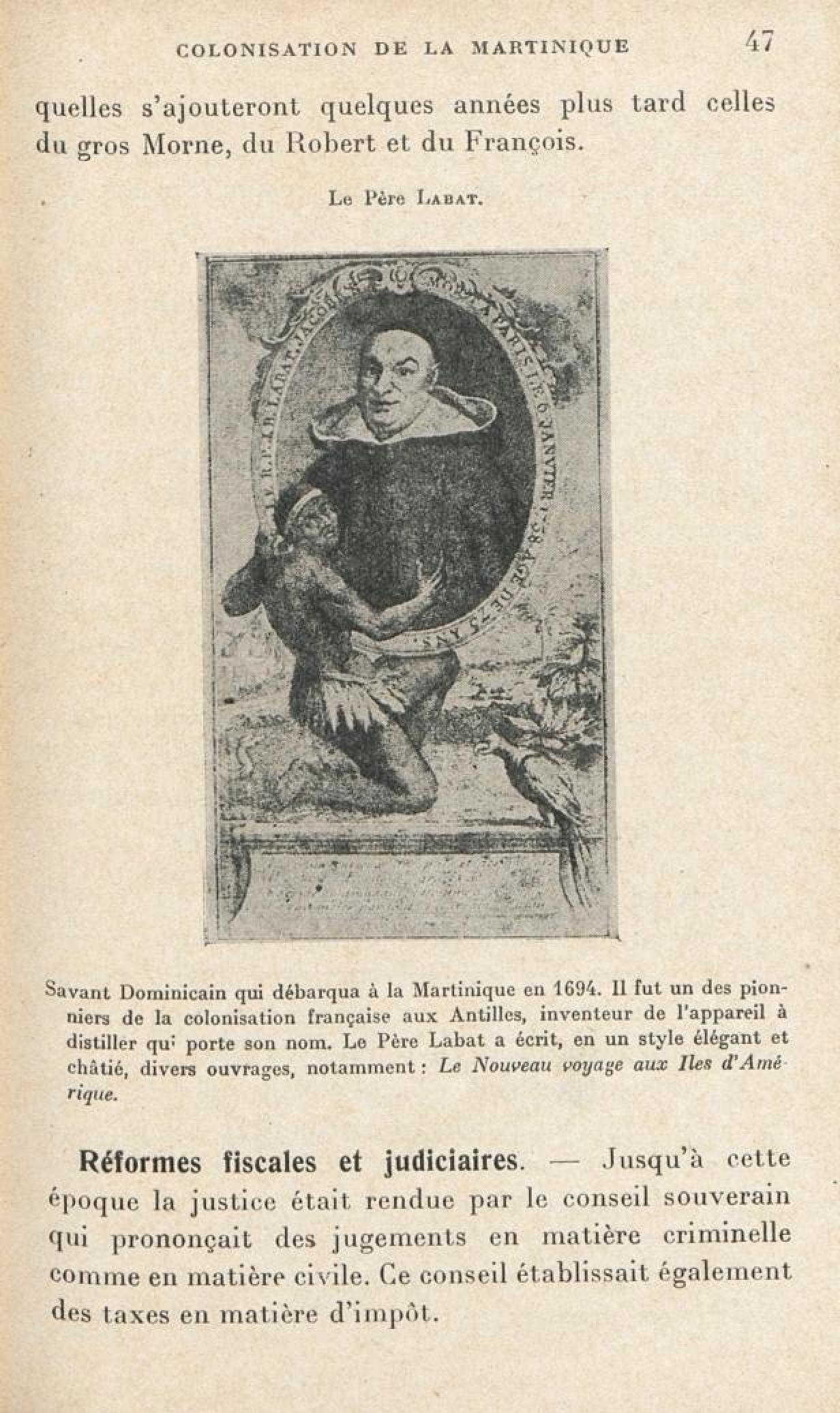 [Savant Dominicain qui débarqua à la Martinique en 1694. Il fut un des pionniers de la colonisation française aux Antilles, inventeur de l'appareil à distiller qui porte son nom. Le Père Labat a écrit, en un style élégant et châtié, divers ouvrages, notamment : Le Nouveau voyage aux Iles d'Amérique]