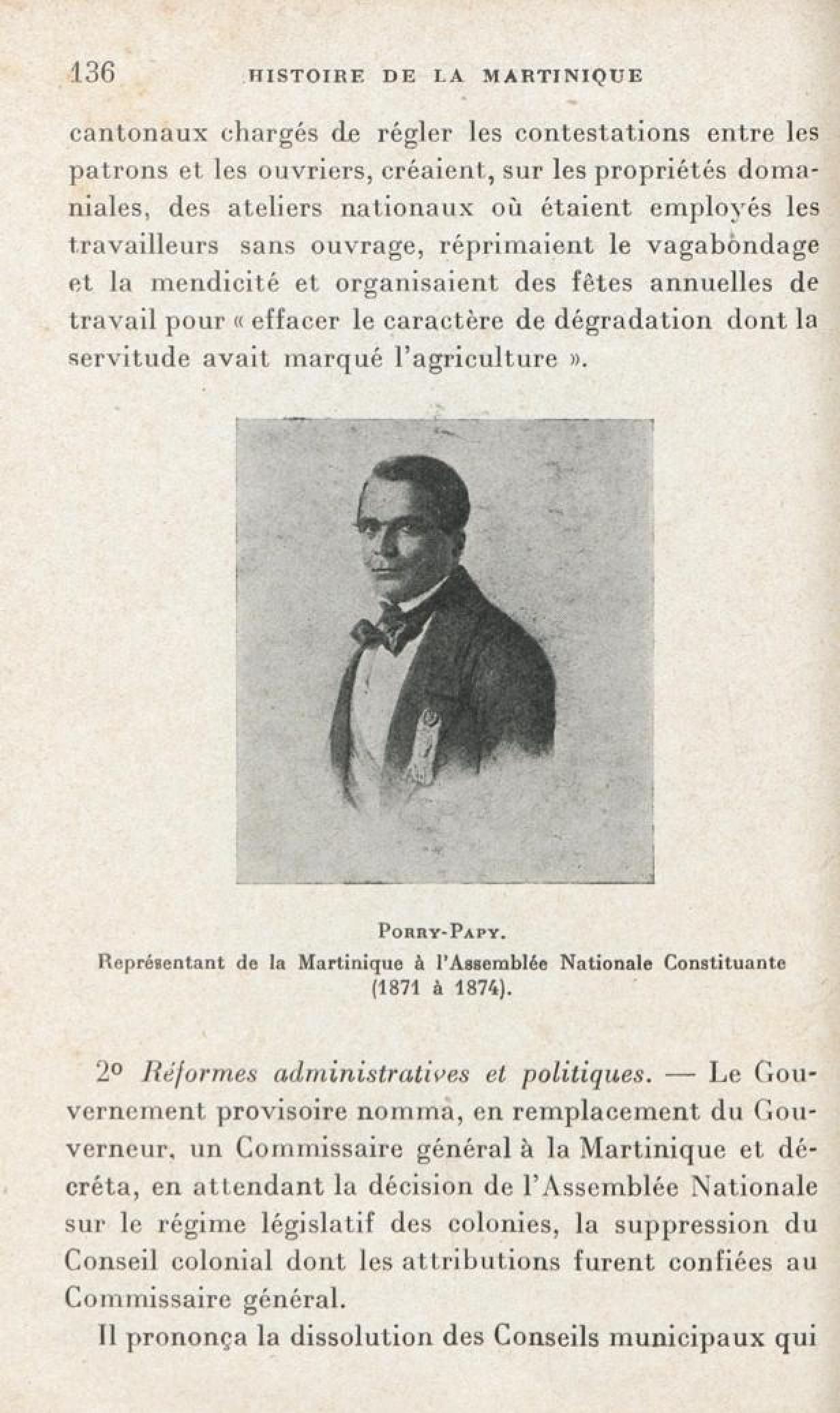 [Porry-Papy. Représentant de la Martinique à l'Assemblée Natuionale Constituante ( 1871-1874 )]