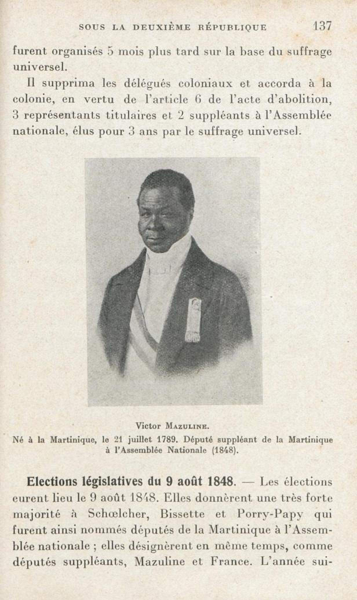 [Victor Mazuline. Né à la Martinique, le 21 juillet 1789. Député suppléant de la Martinique à l'Assemblée Natuionale Constituante ( 1848 )]