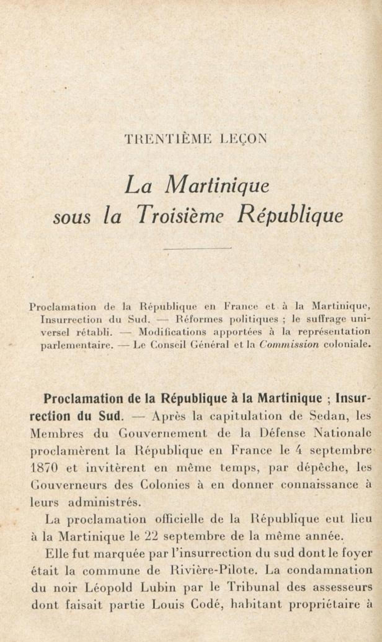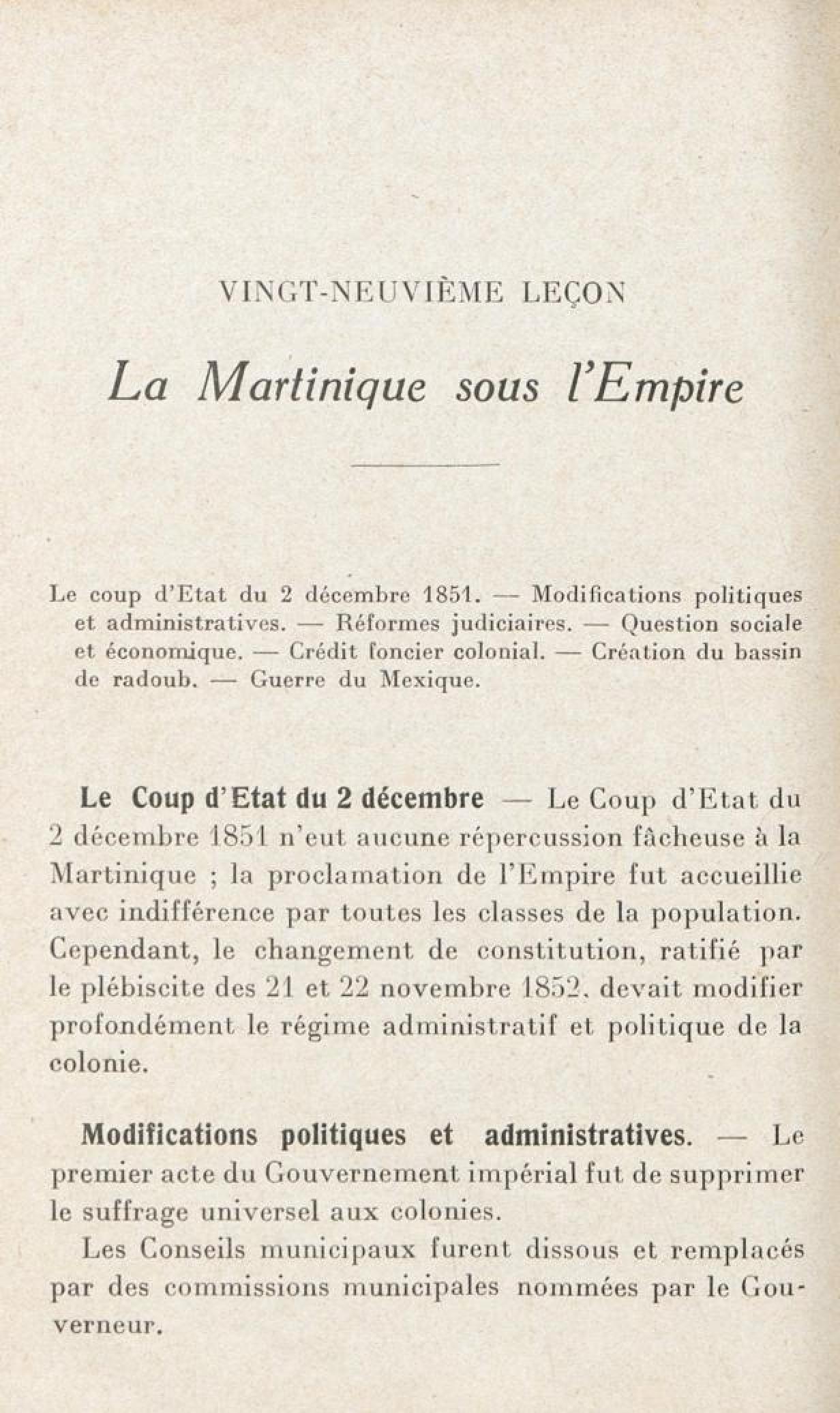 Contenus avec " Extrait de : Histoire de la Martinique : à l'usage des cours supérieur et complémentaire des écoles primaires "