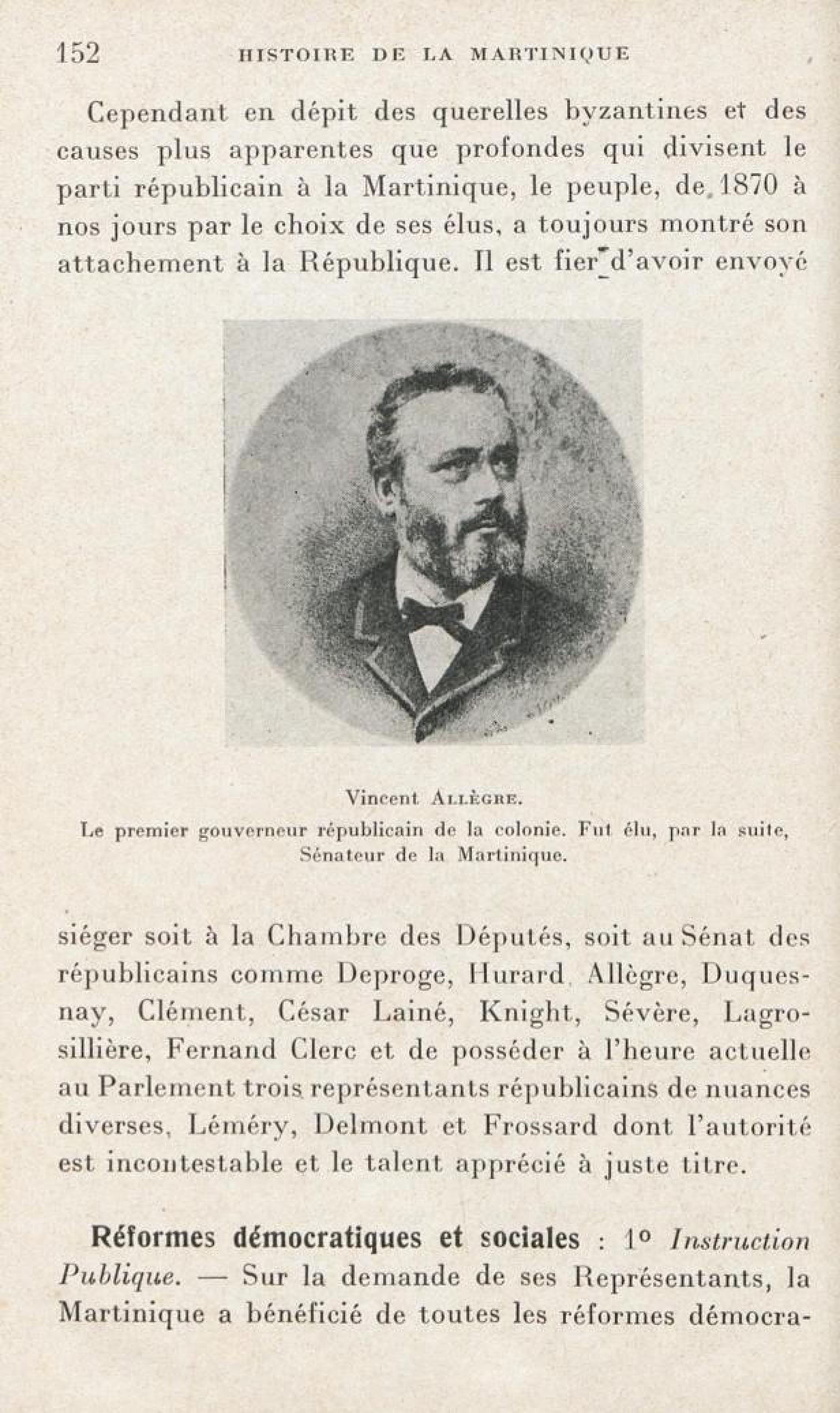 [Vincent Allègre. Le premier gouverneur républicain de la colonie. Fut élu, par la suite, Sénateur de la Martinique]