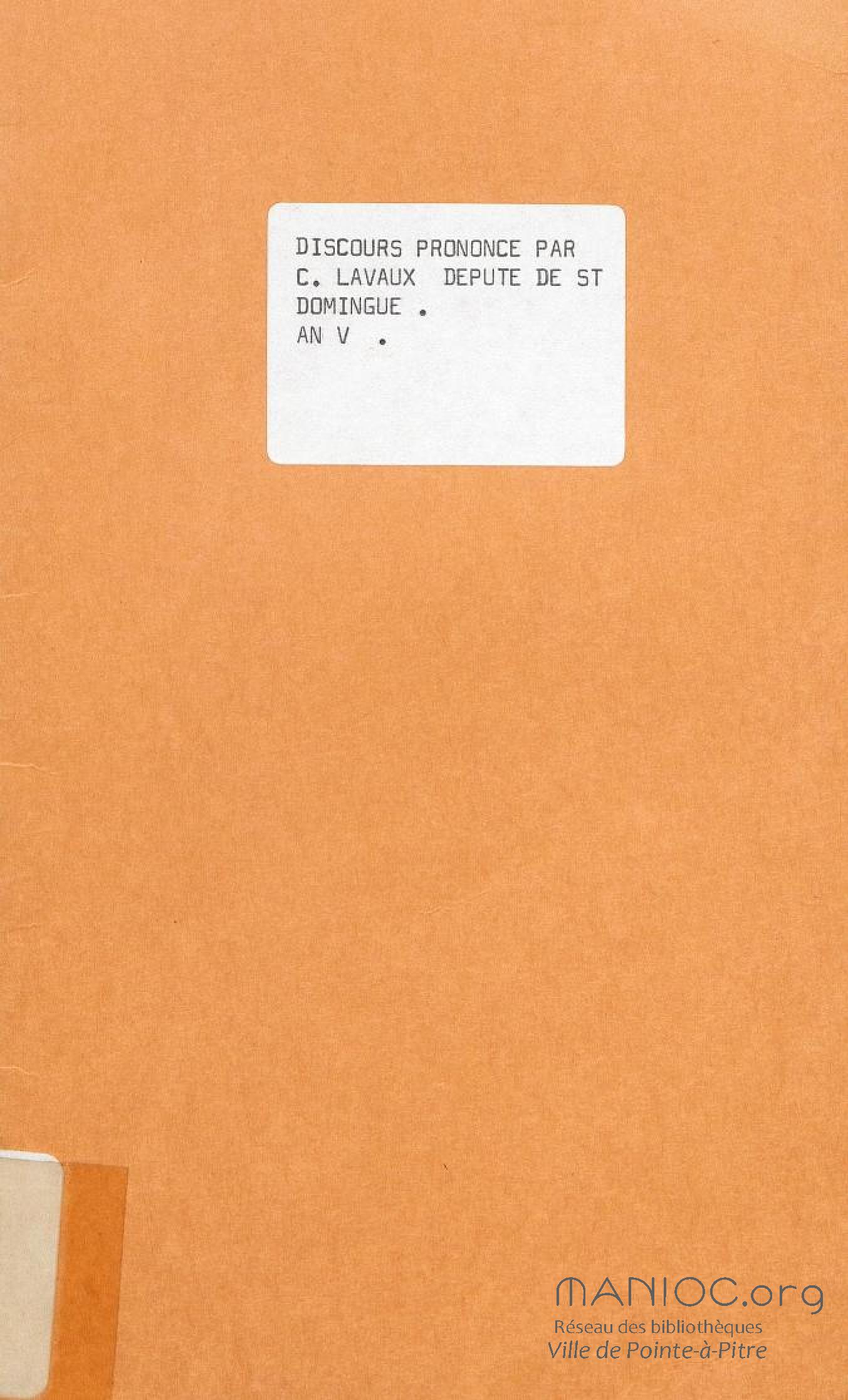 Discours prononcé par C. Lavaux [sic.], député de Saint-Domingue, le troisième jour complémentaire, an V