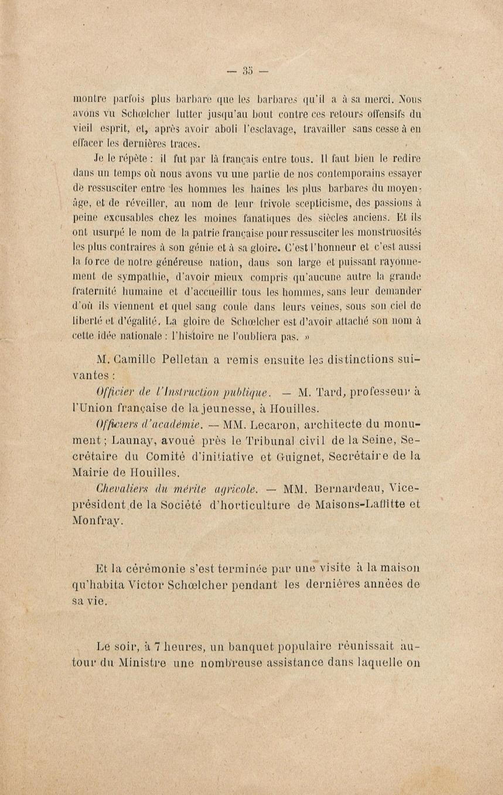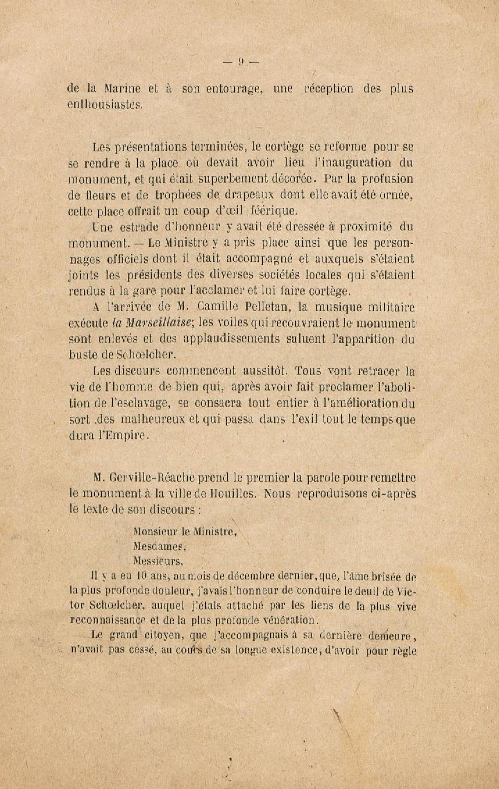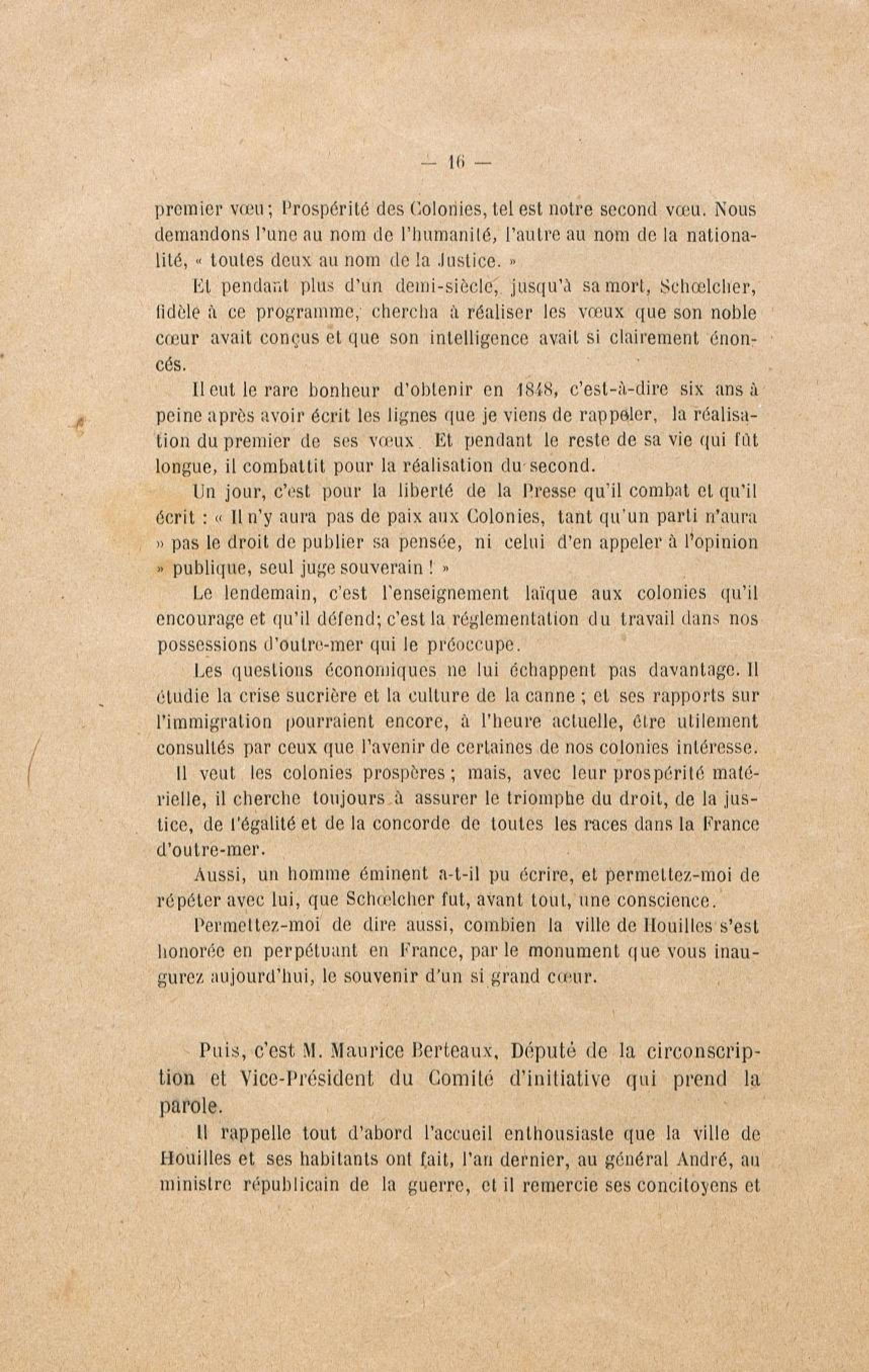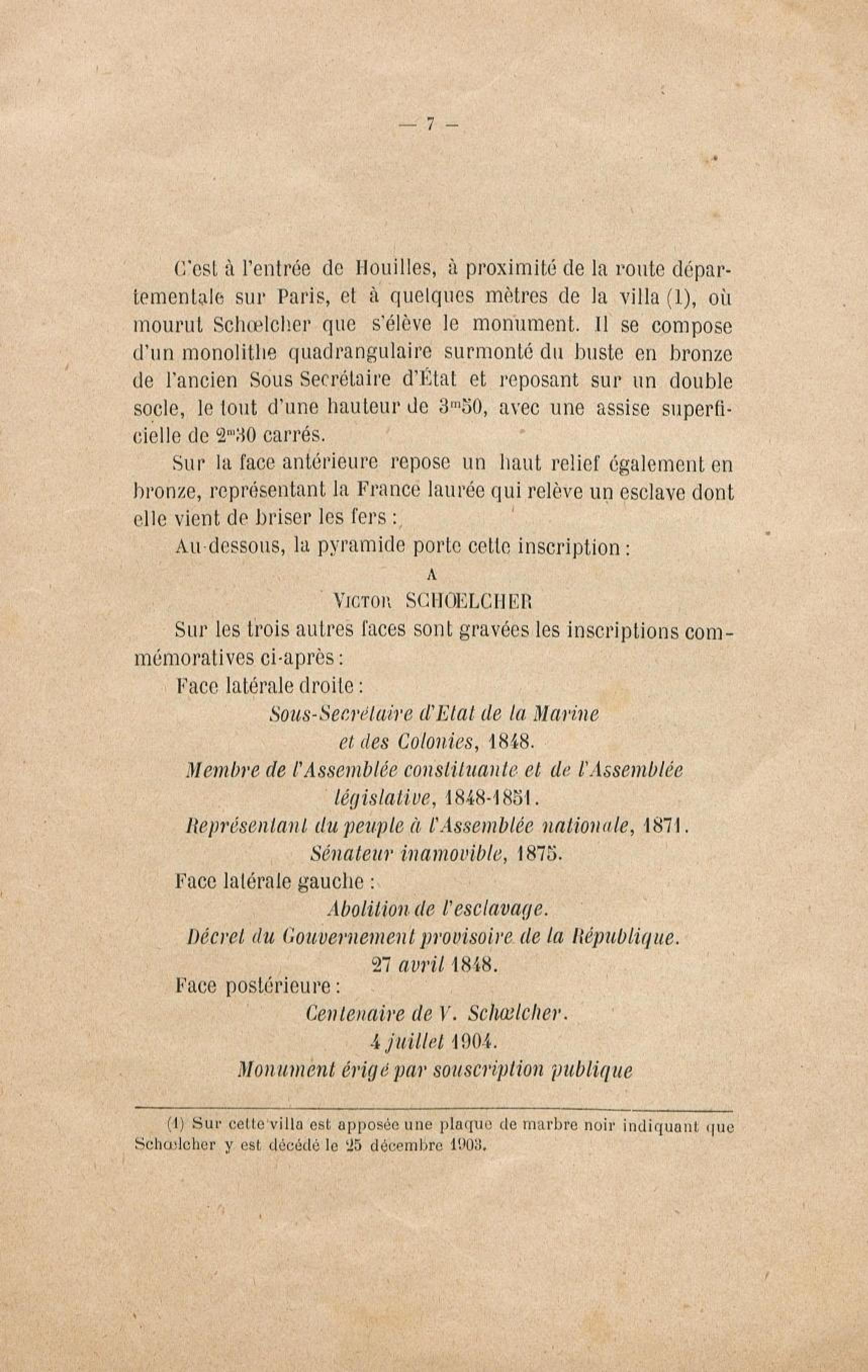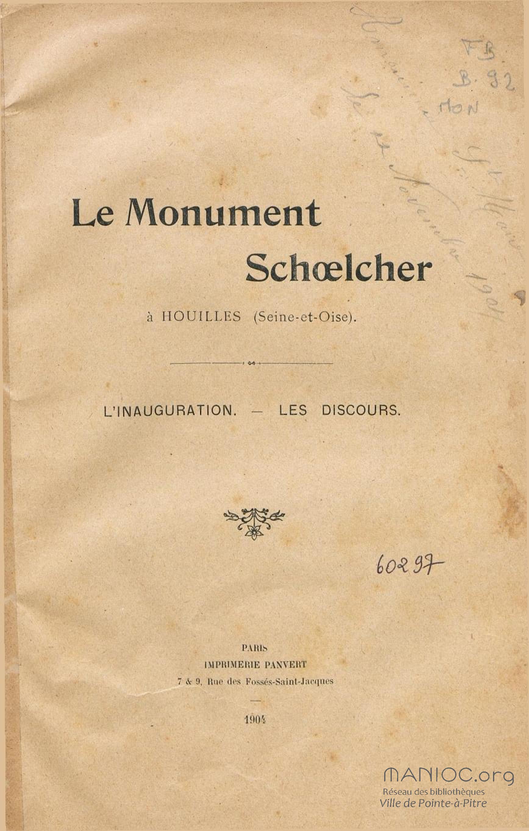 - Le monument Schoelcher à Houilles (Seine-et-Oise) : l'inauguration, les discours
