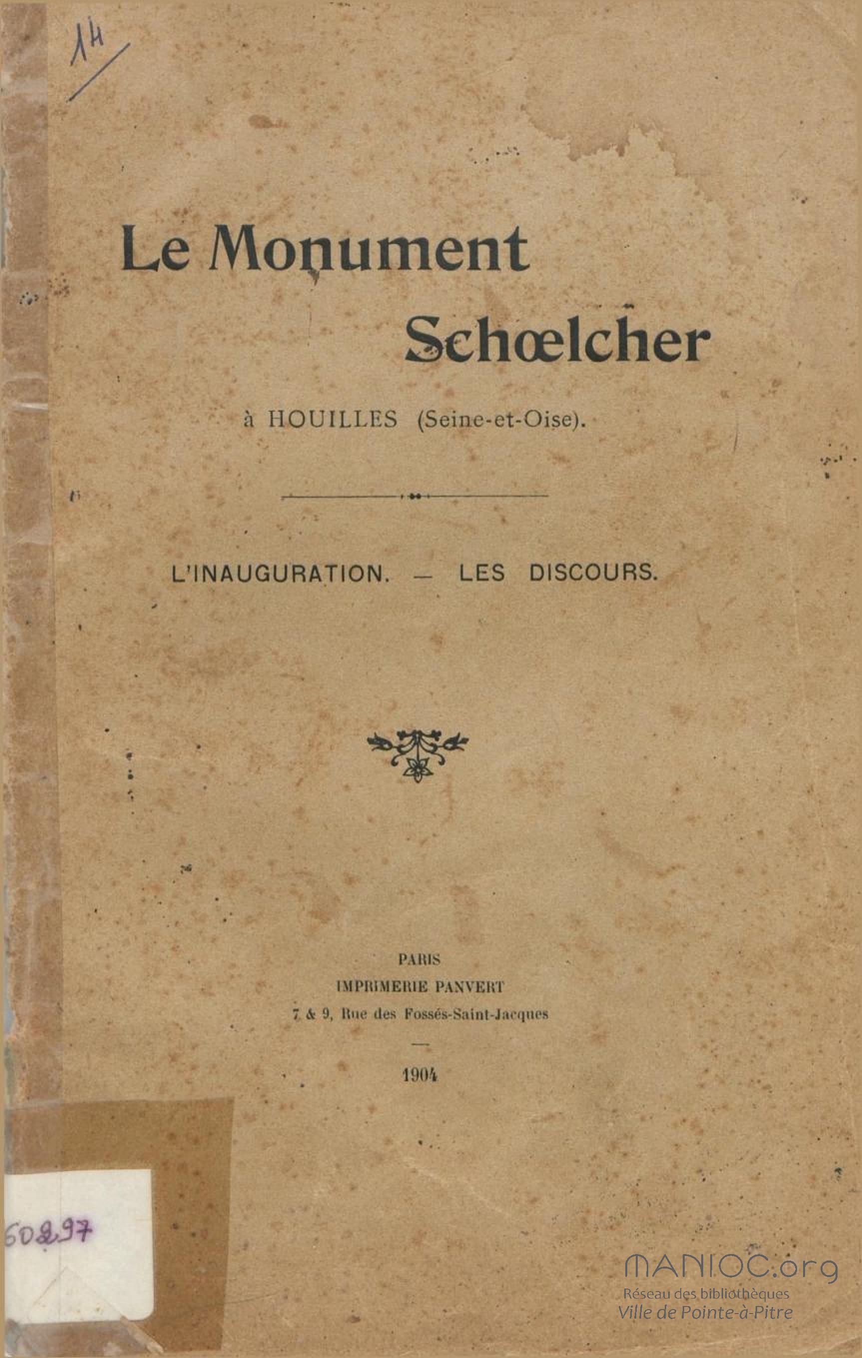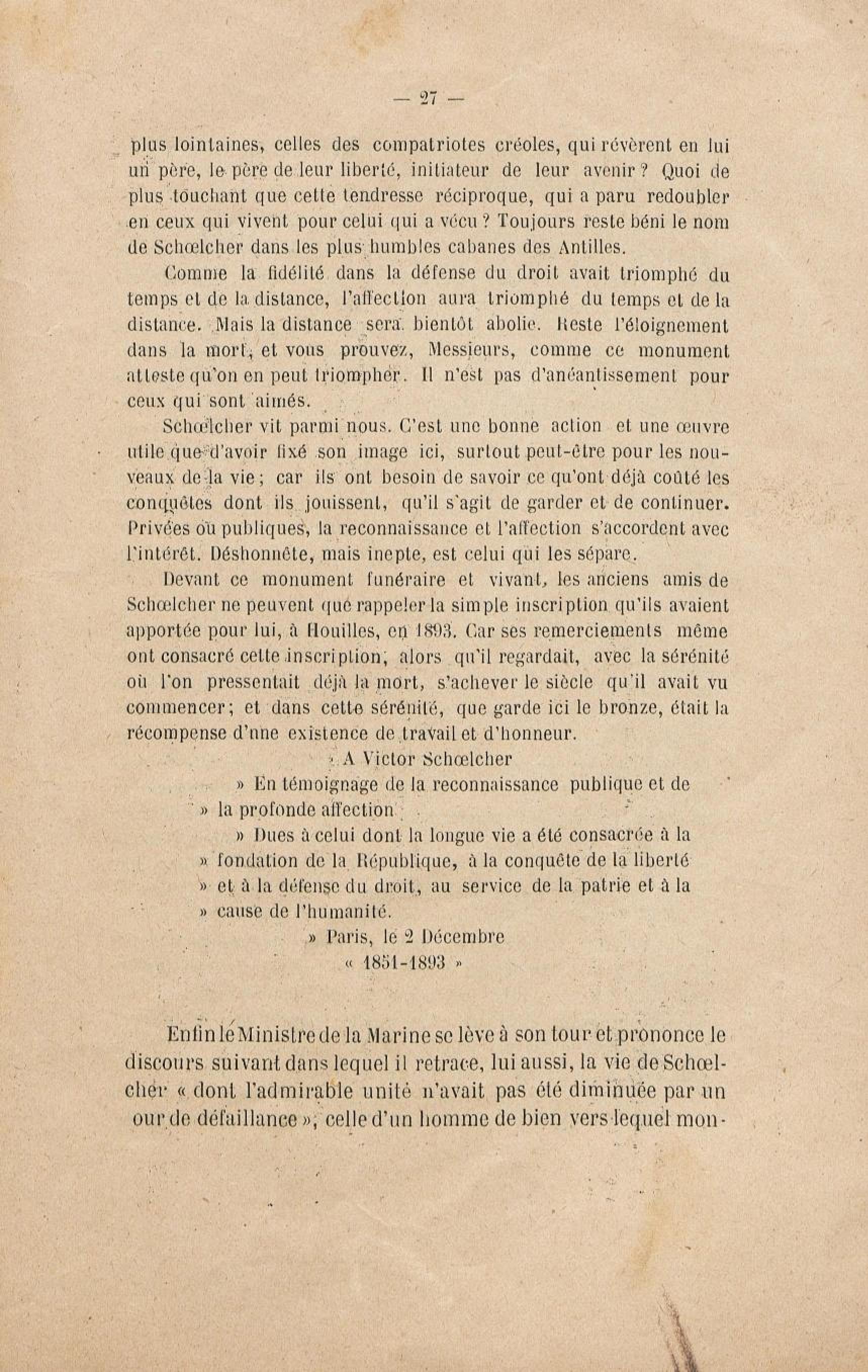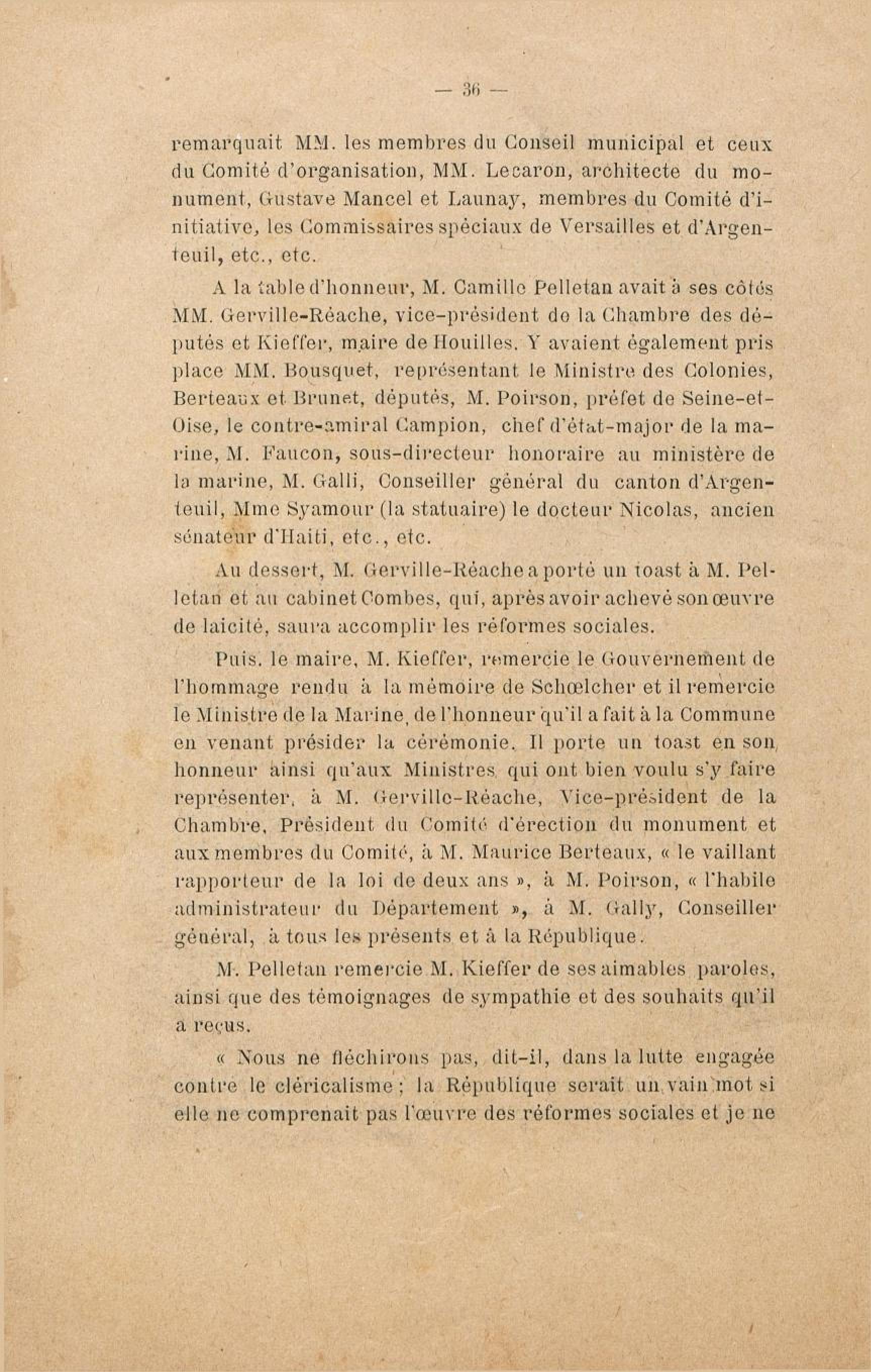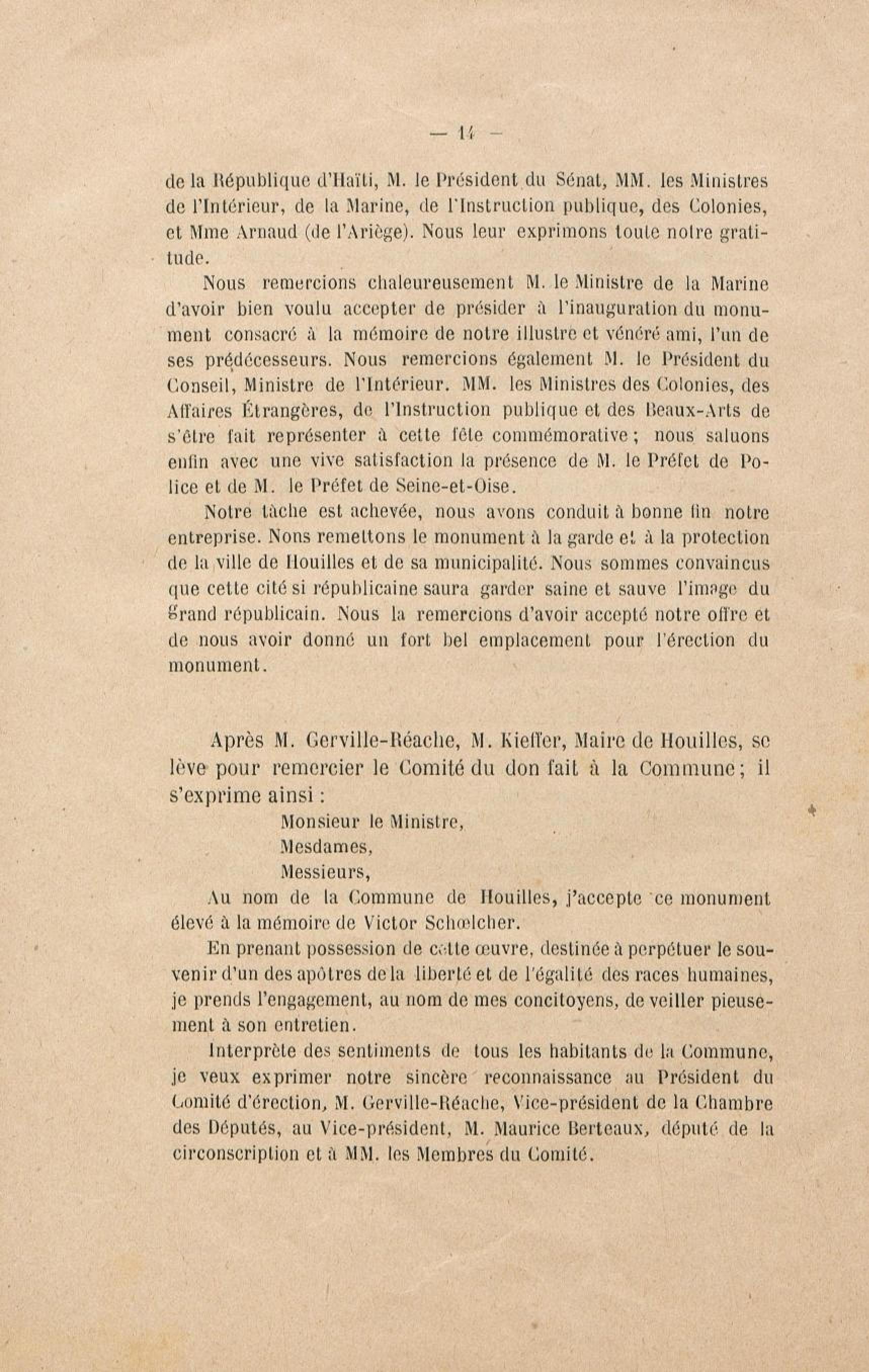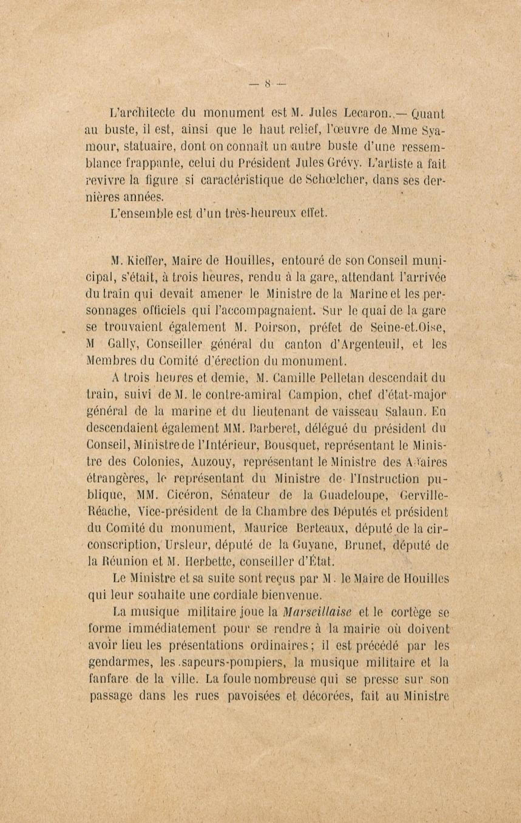 - Le monument Schoelcher à Houilles (Seine-et-Oise) : l'inauguration, les discours