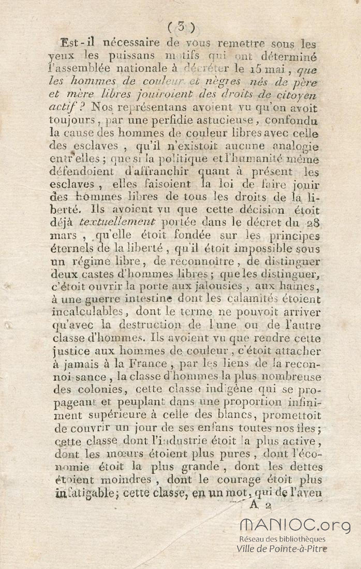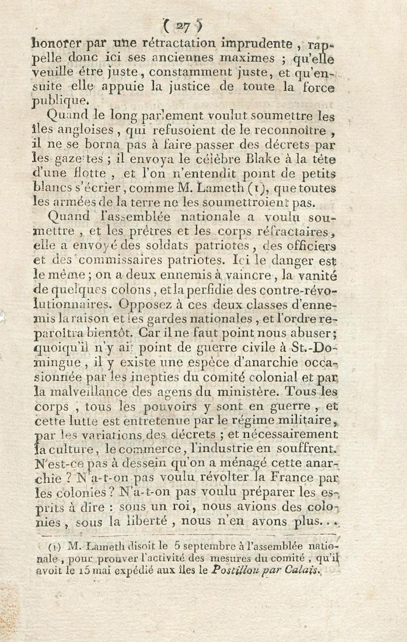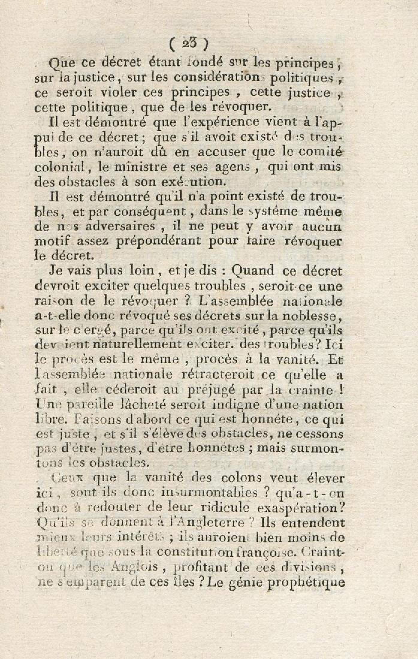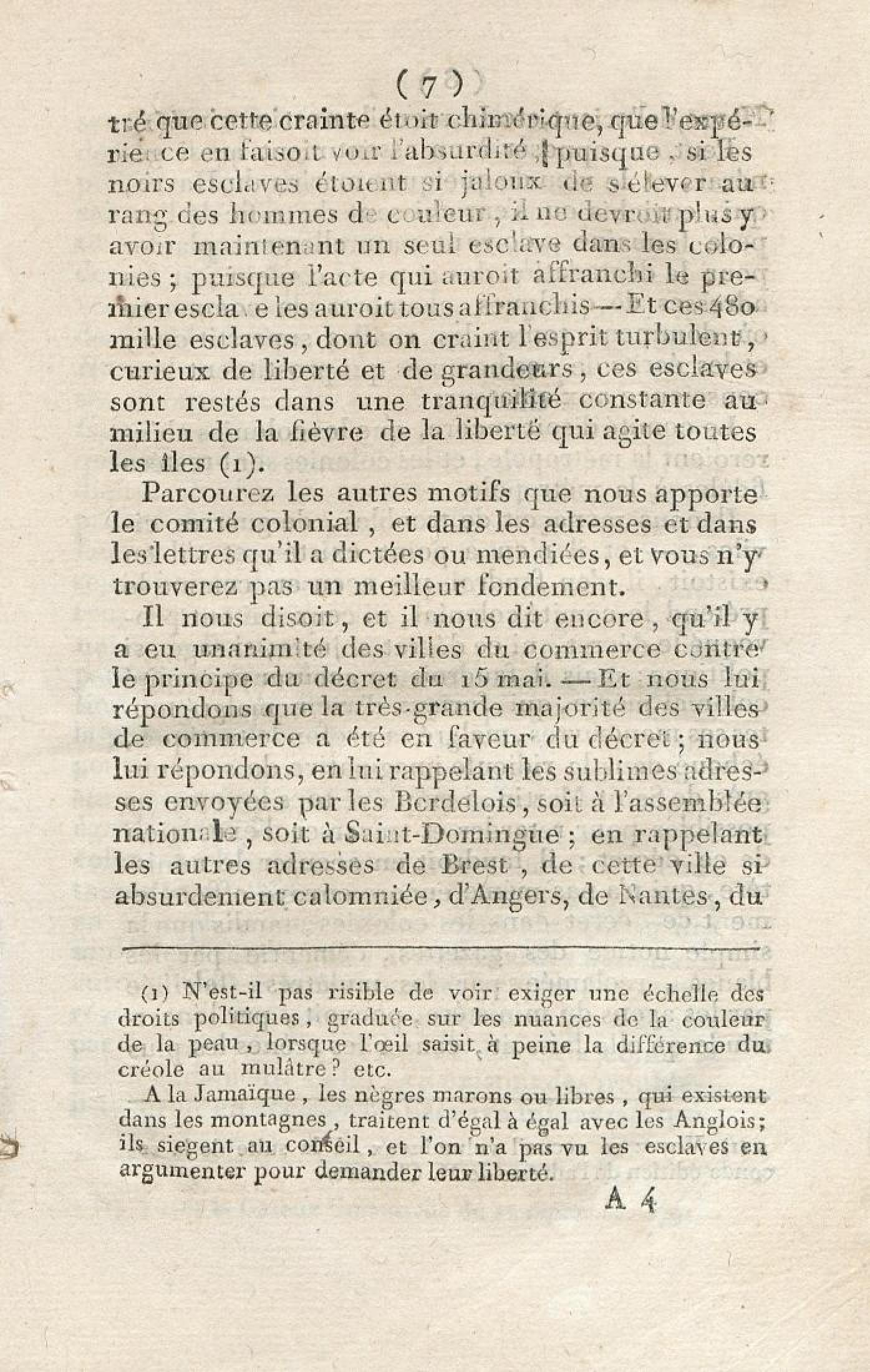 Discours sur la nécessité de maintenir le décret rendu le 13 mai 1791, en faveur des hommes de couleur libres, prononcé le 12 septembre 1791, à la séance de la Société des Amis de la Constitution, séante aux Jacobins