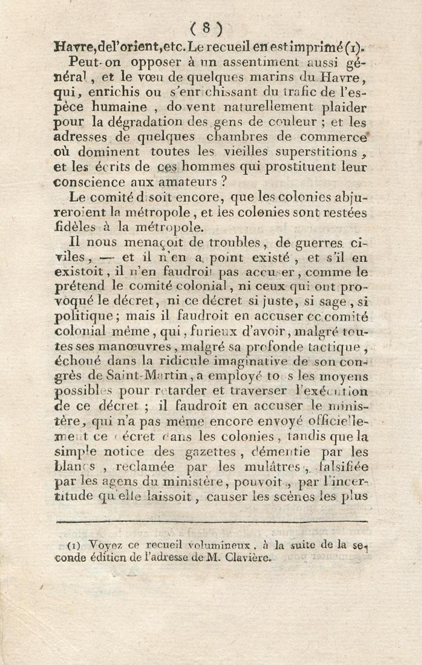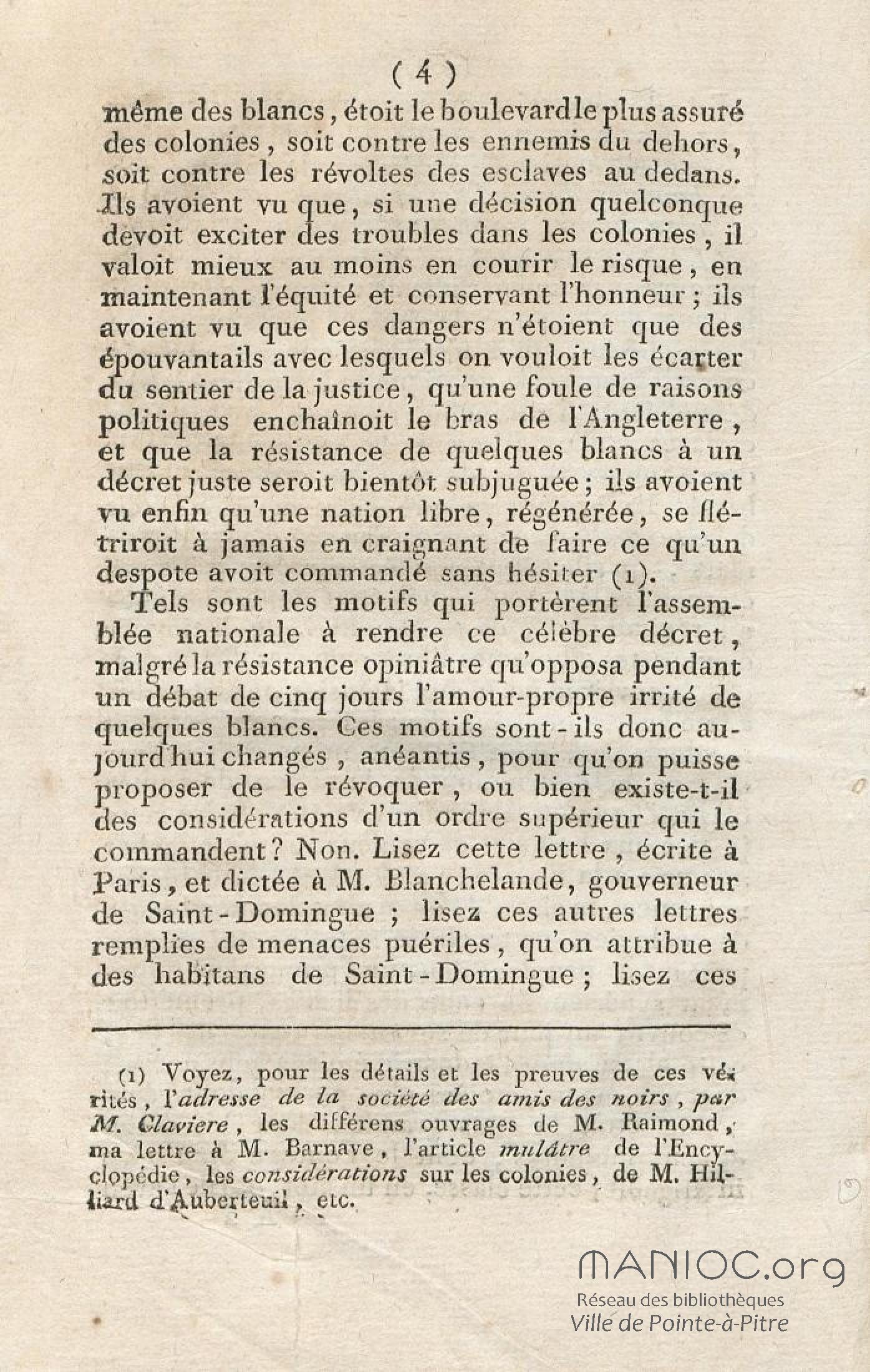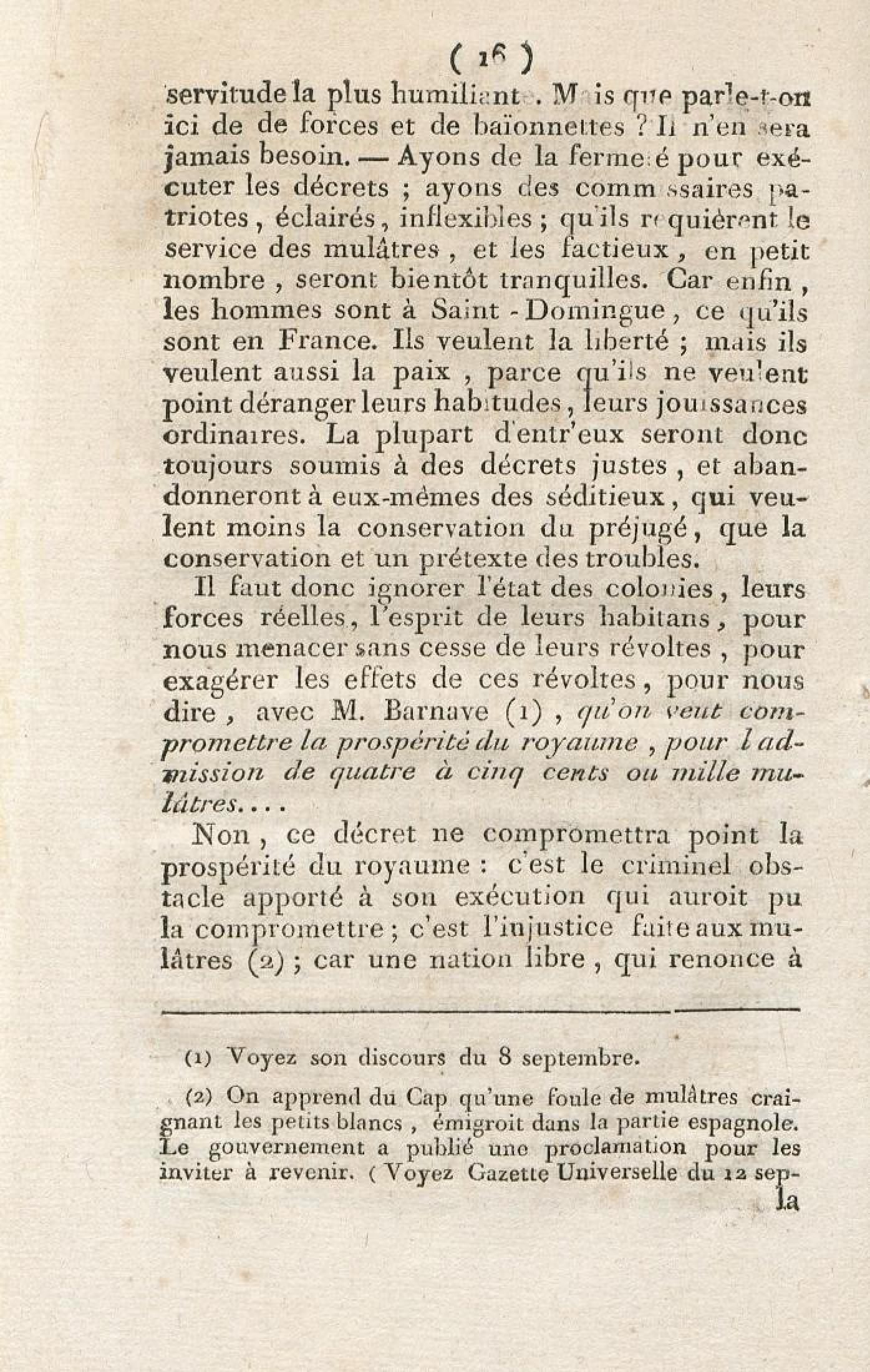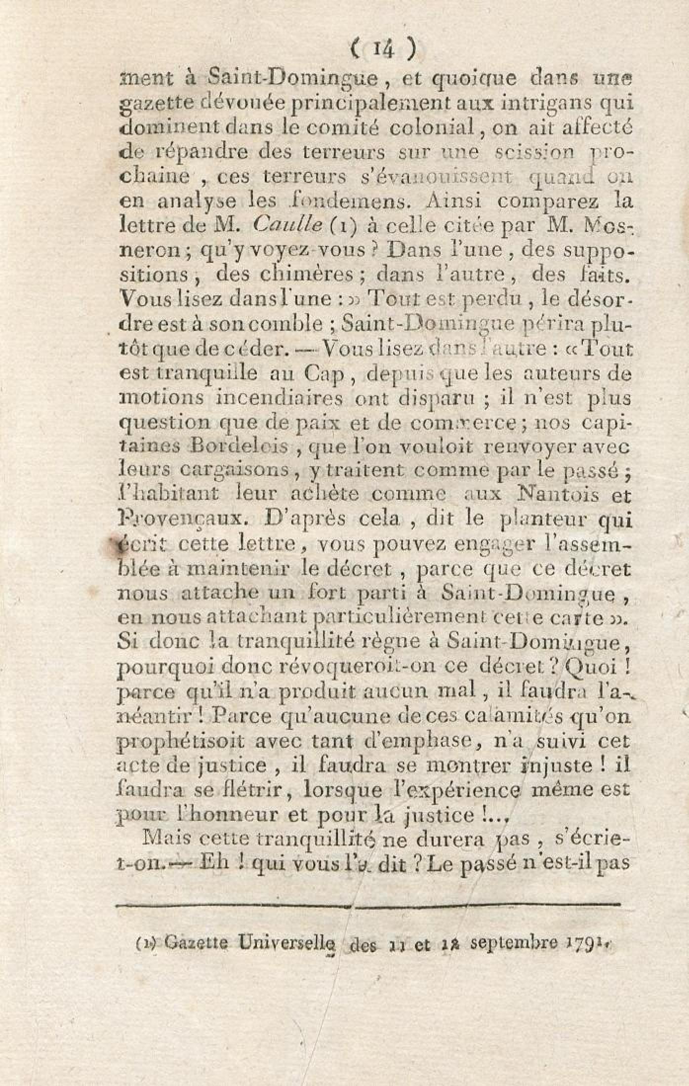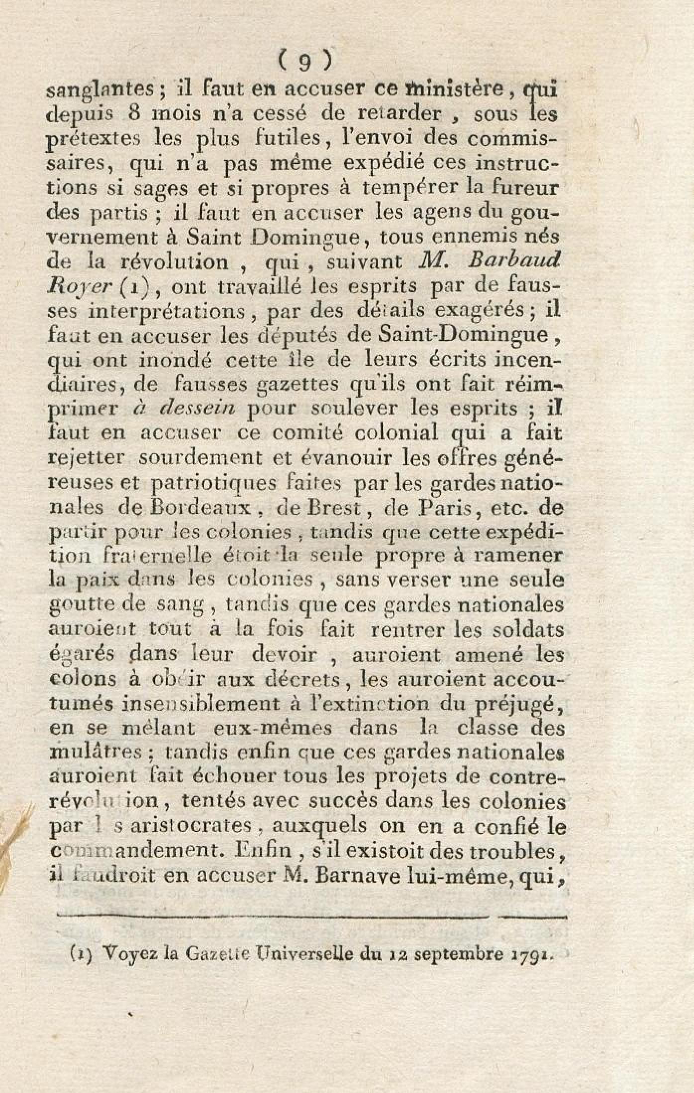 Discours sur la nécessité de maintenir le décret rendu le 13 mai 1791, en faveur des hommes de couleur libres, prononcé le 12 septembre 1791, à la séance de la Société des Amis de la Constitution, séante aux Jacobins