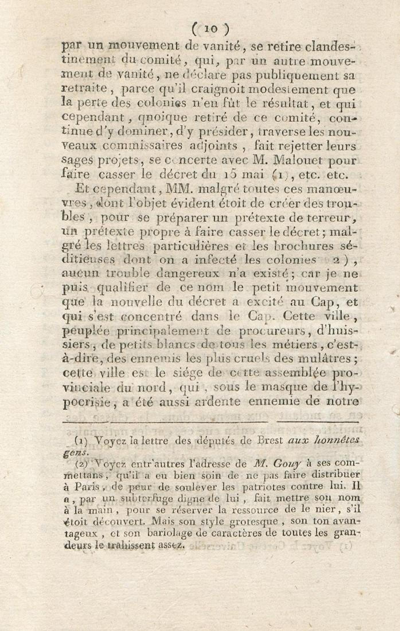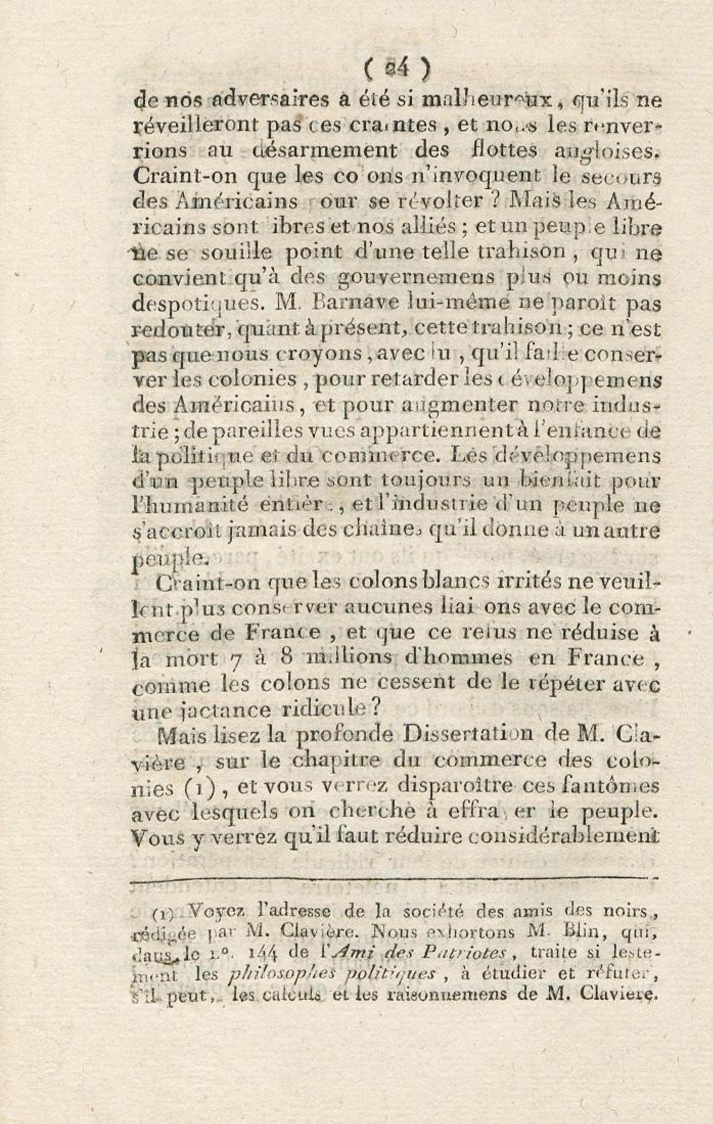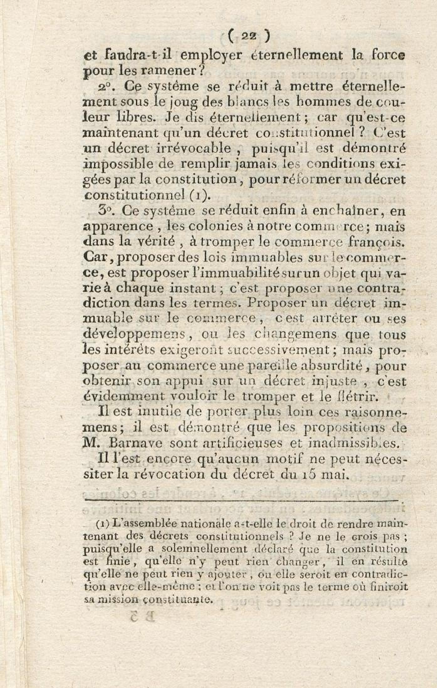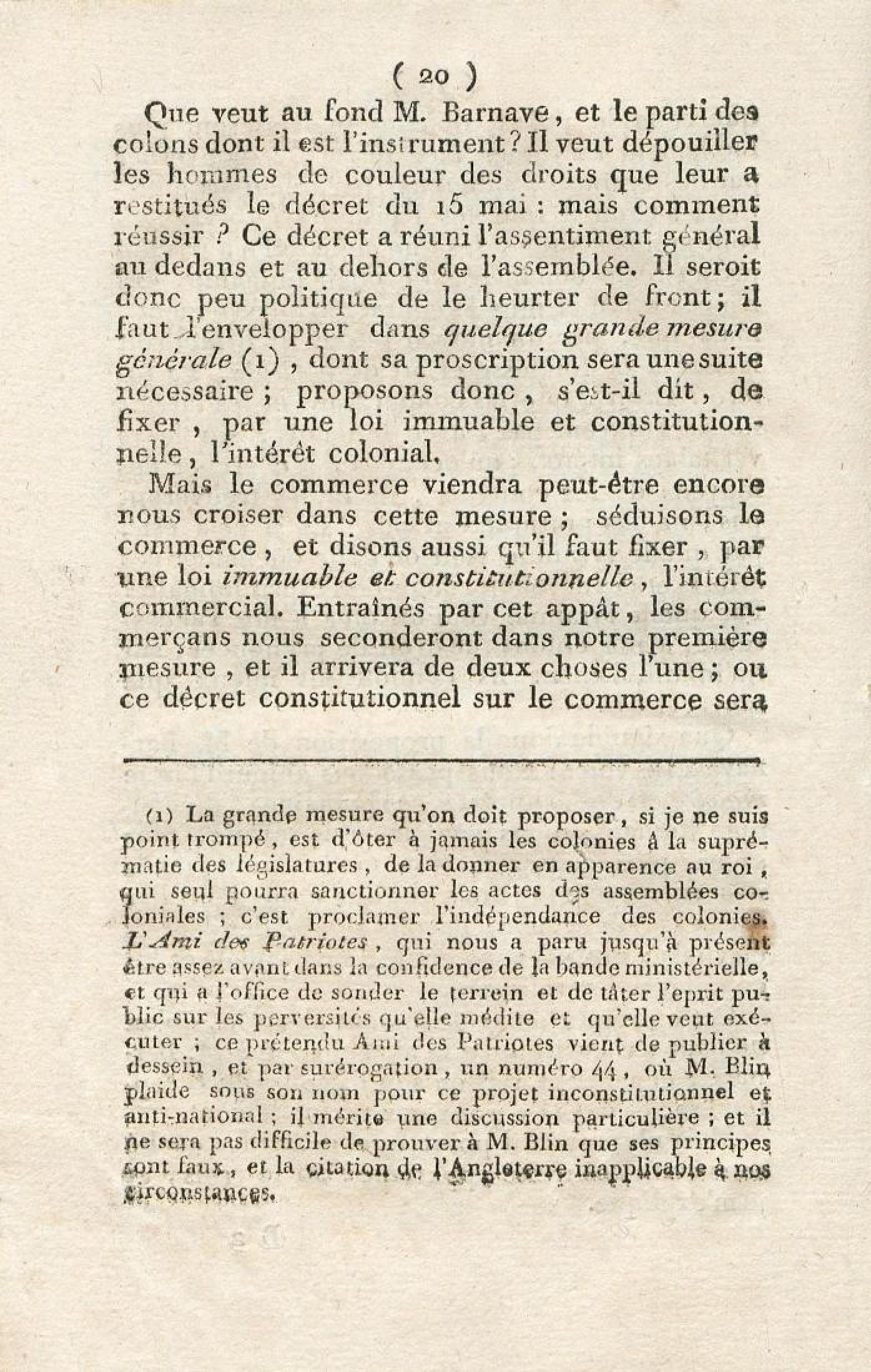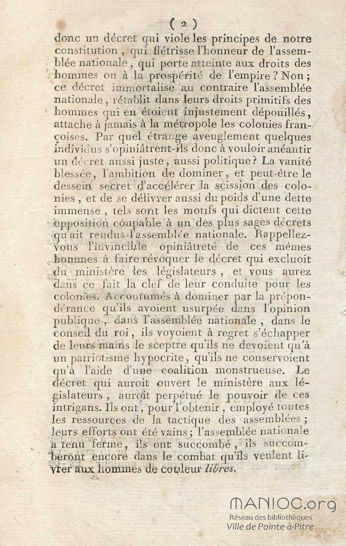 Discours sur la nécessité de maintenir le décret rendu le 13 mai 1791, en faveur des hommes de couleur libres, prononcé le 12 septembre 1791, à la séance de la Société des Amis de la Constitution, séante aux Jacobins