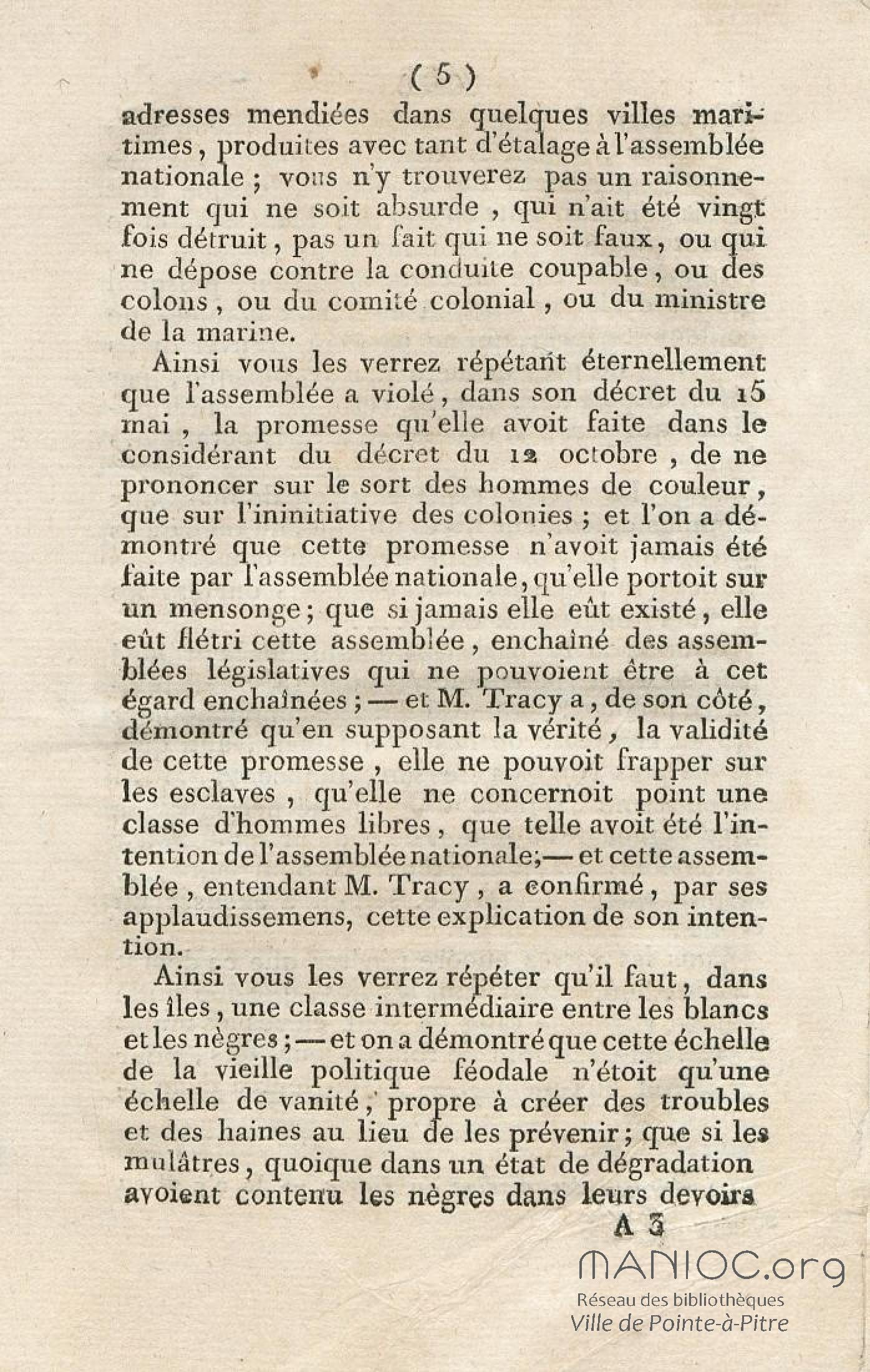 Imprimé par ordre de l'Assemblée Nationale
