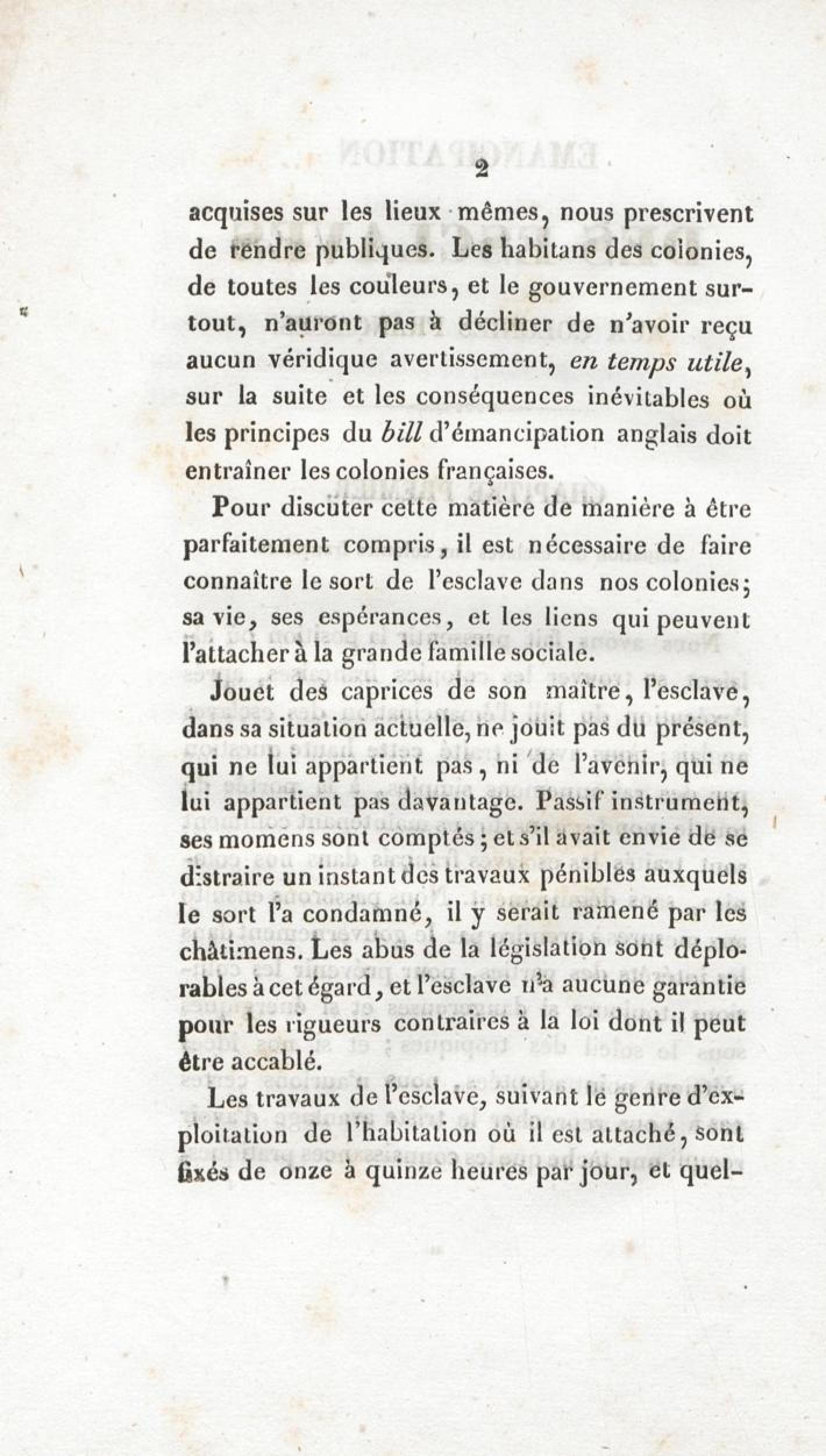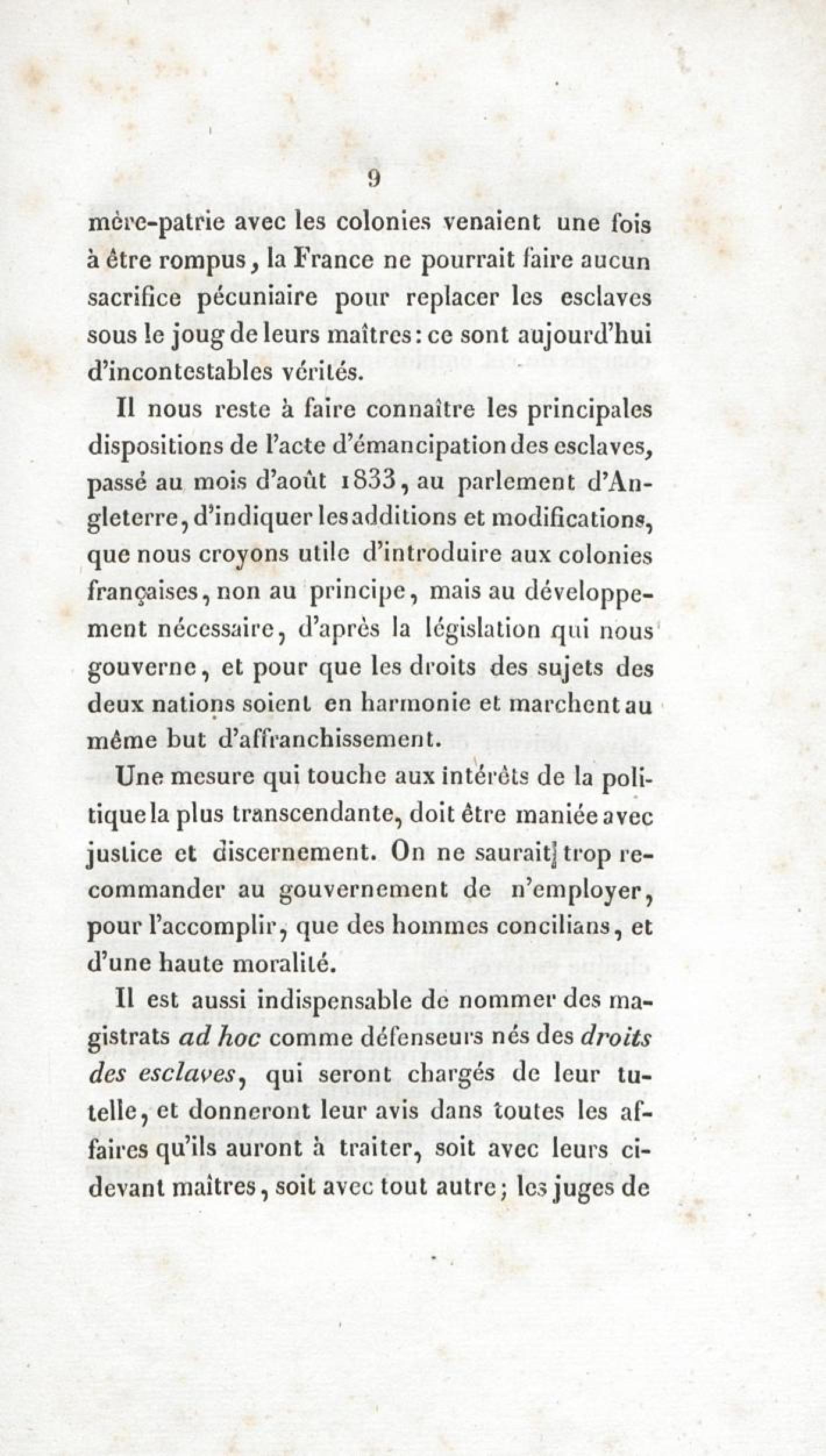 Emancipation des esclaves aux colonies françaises : mémoire présenté au gouvernement