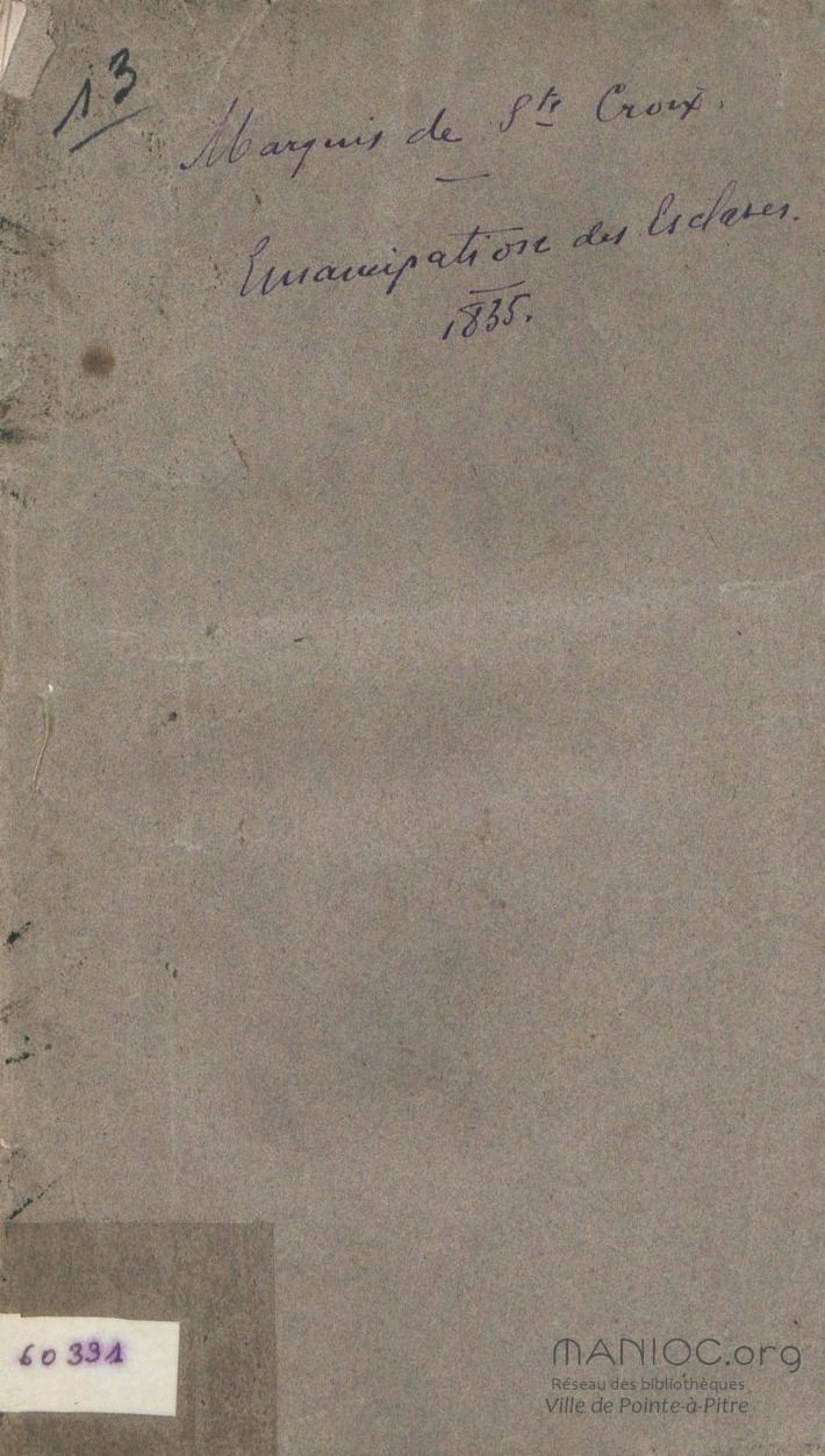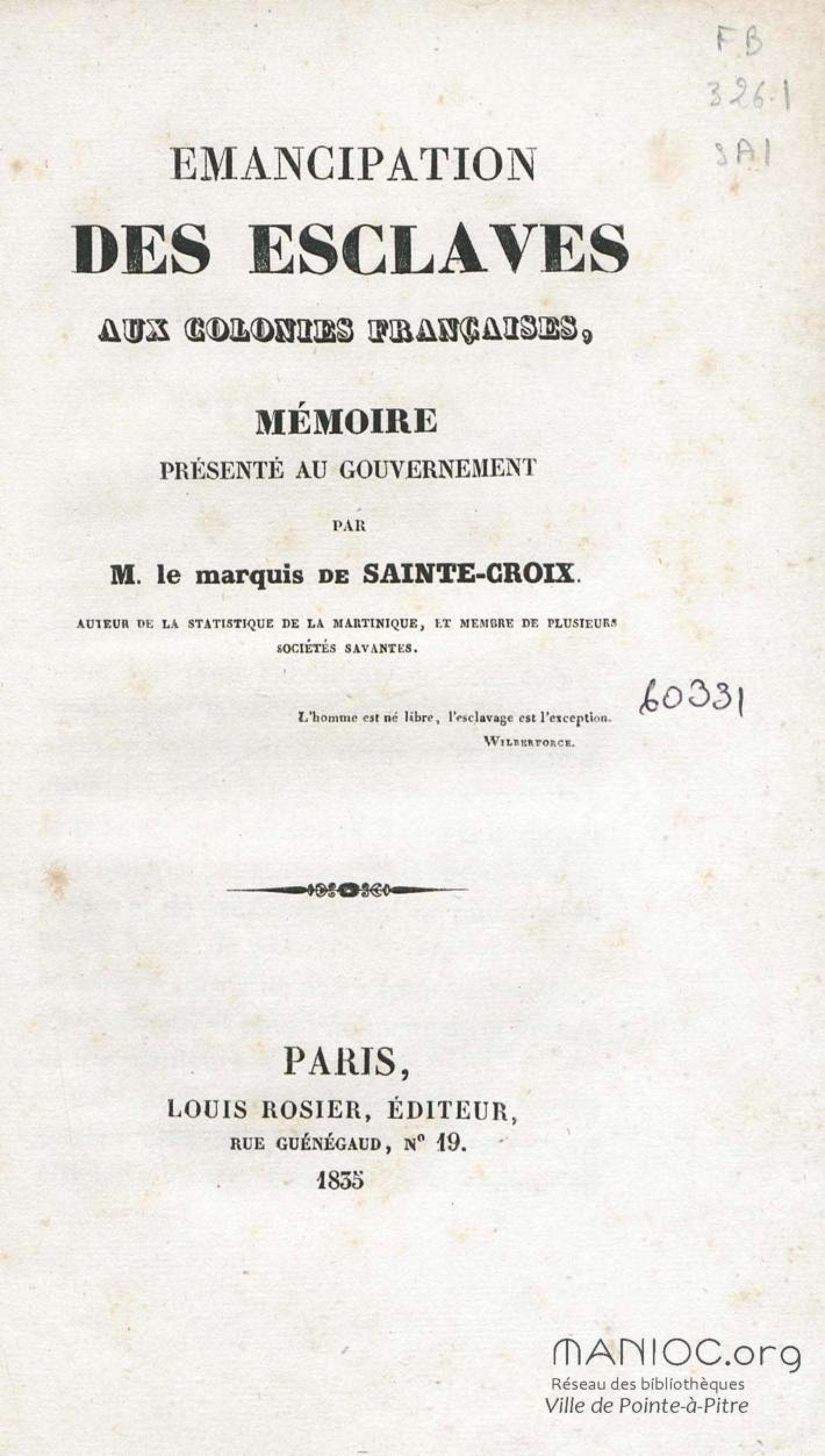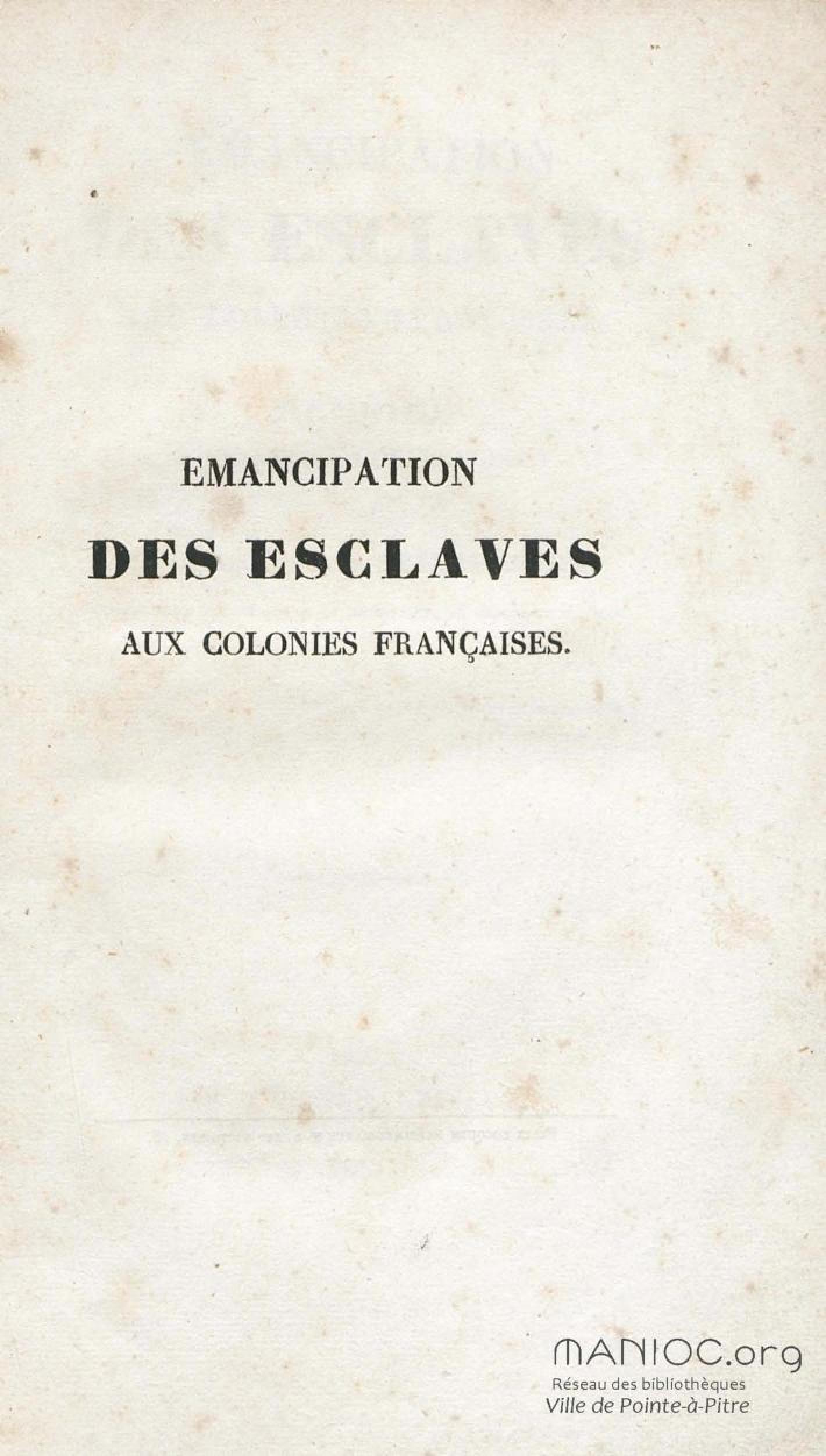 - Emancipation des esclaves aux colonies françaises : mémoire présenté au gouvernement