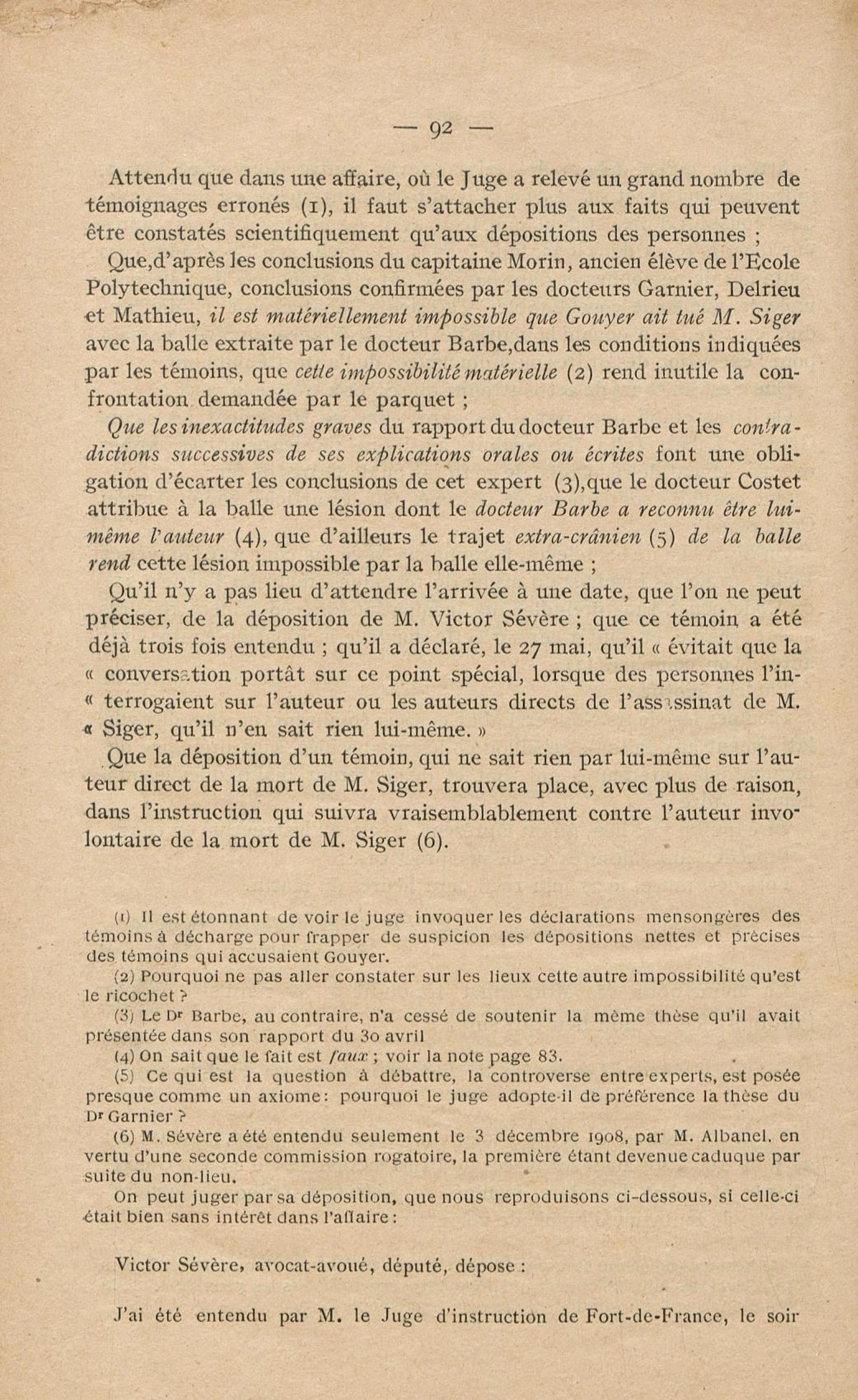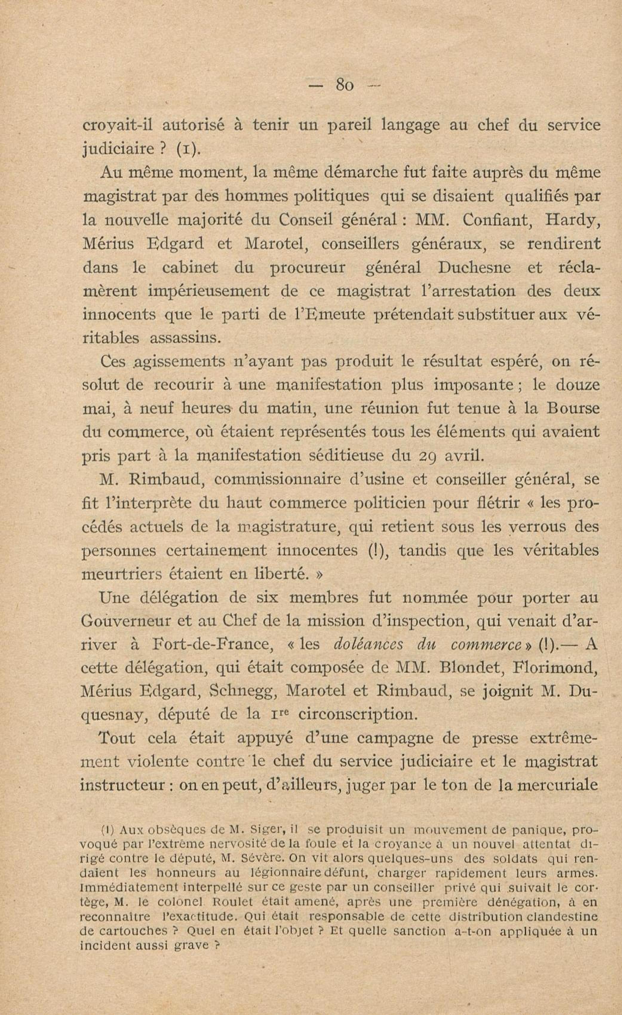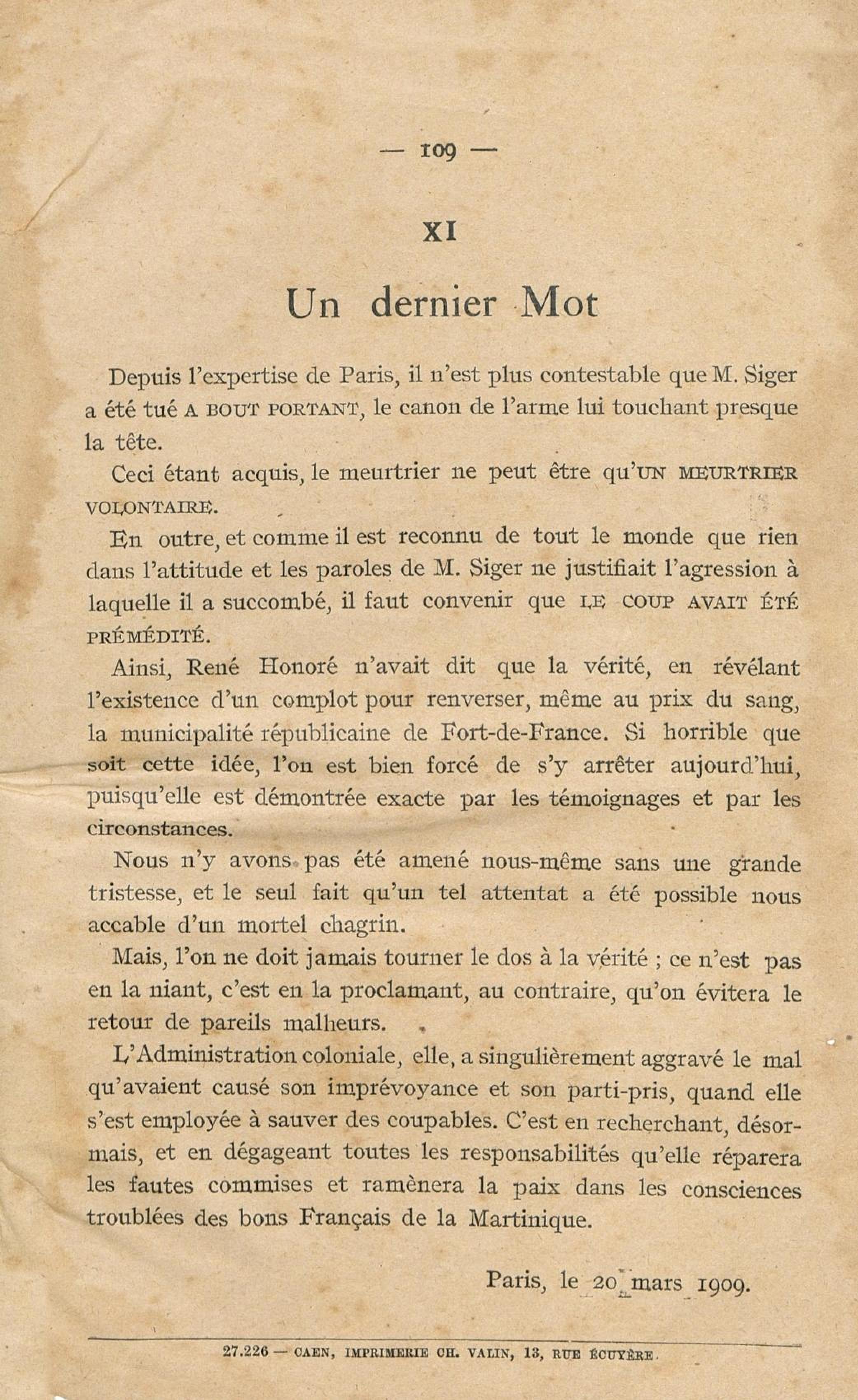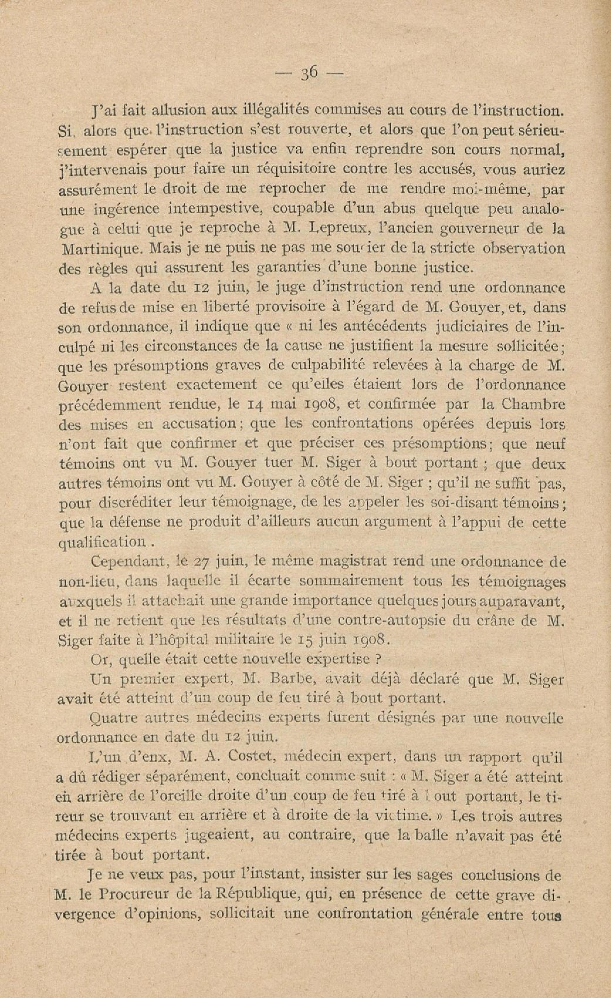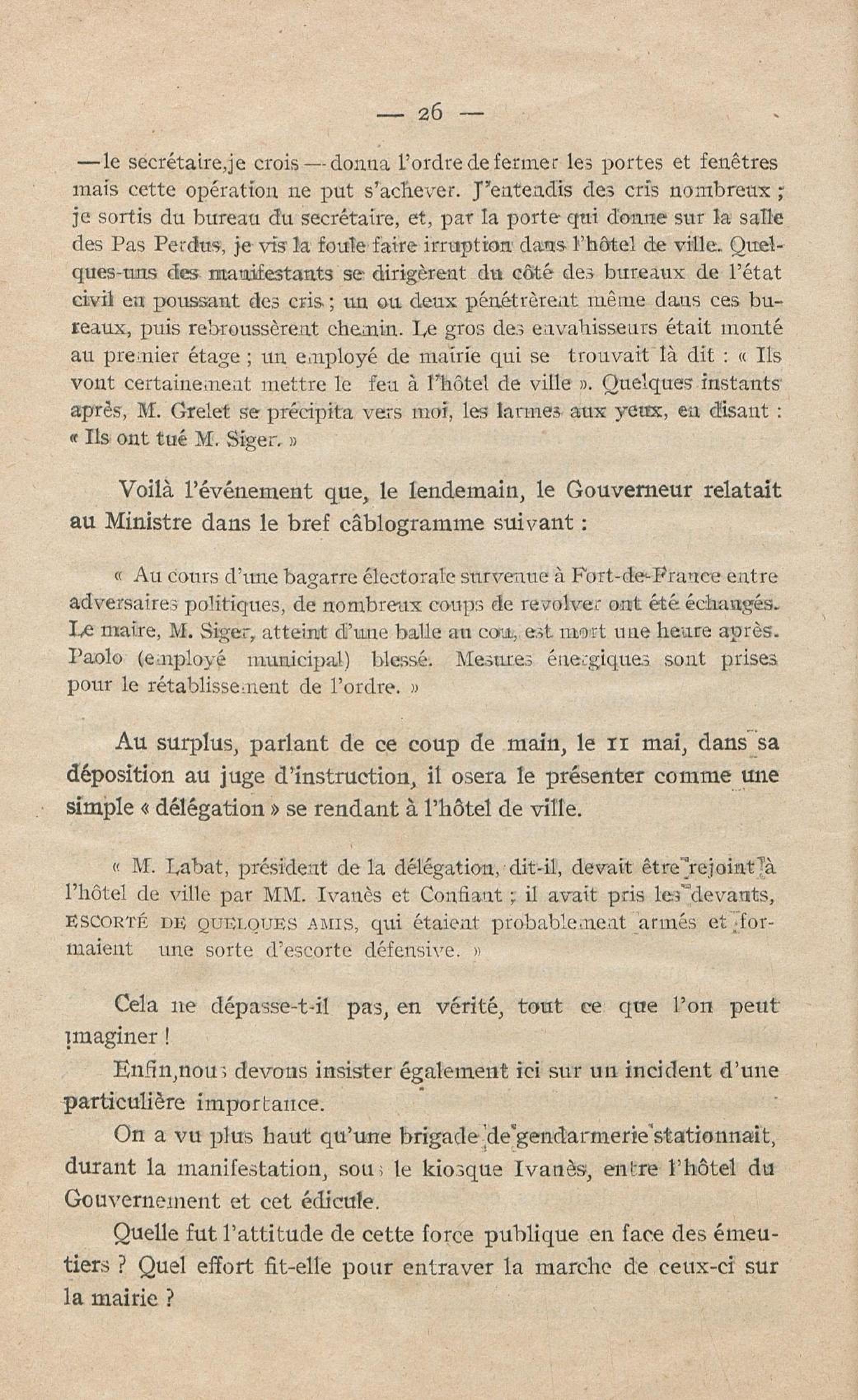 Conditions dans lesquelles s'est faite l'instruction du meurtre de M. Siger, Maire de Fort-de-France