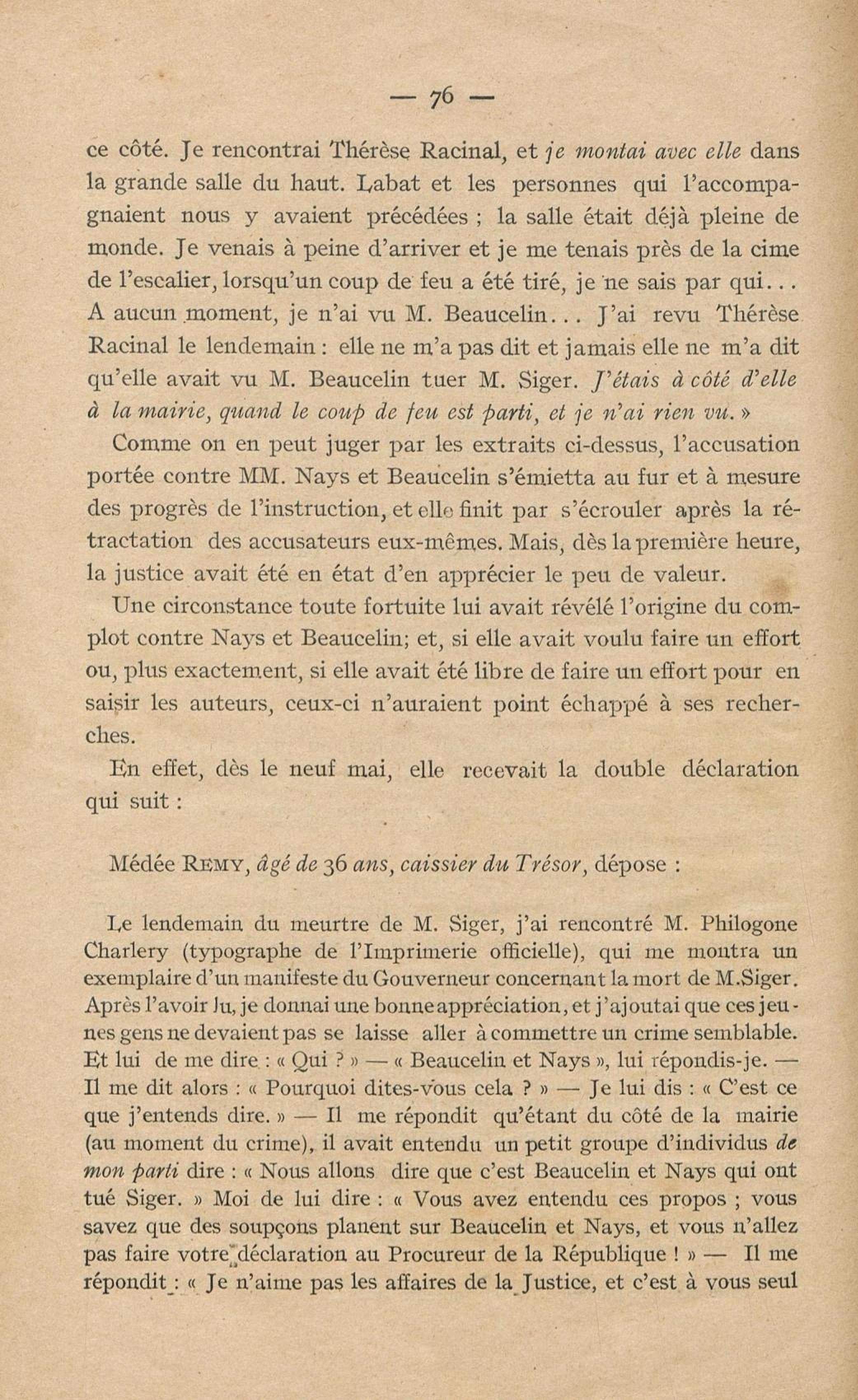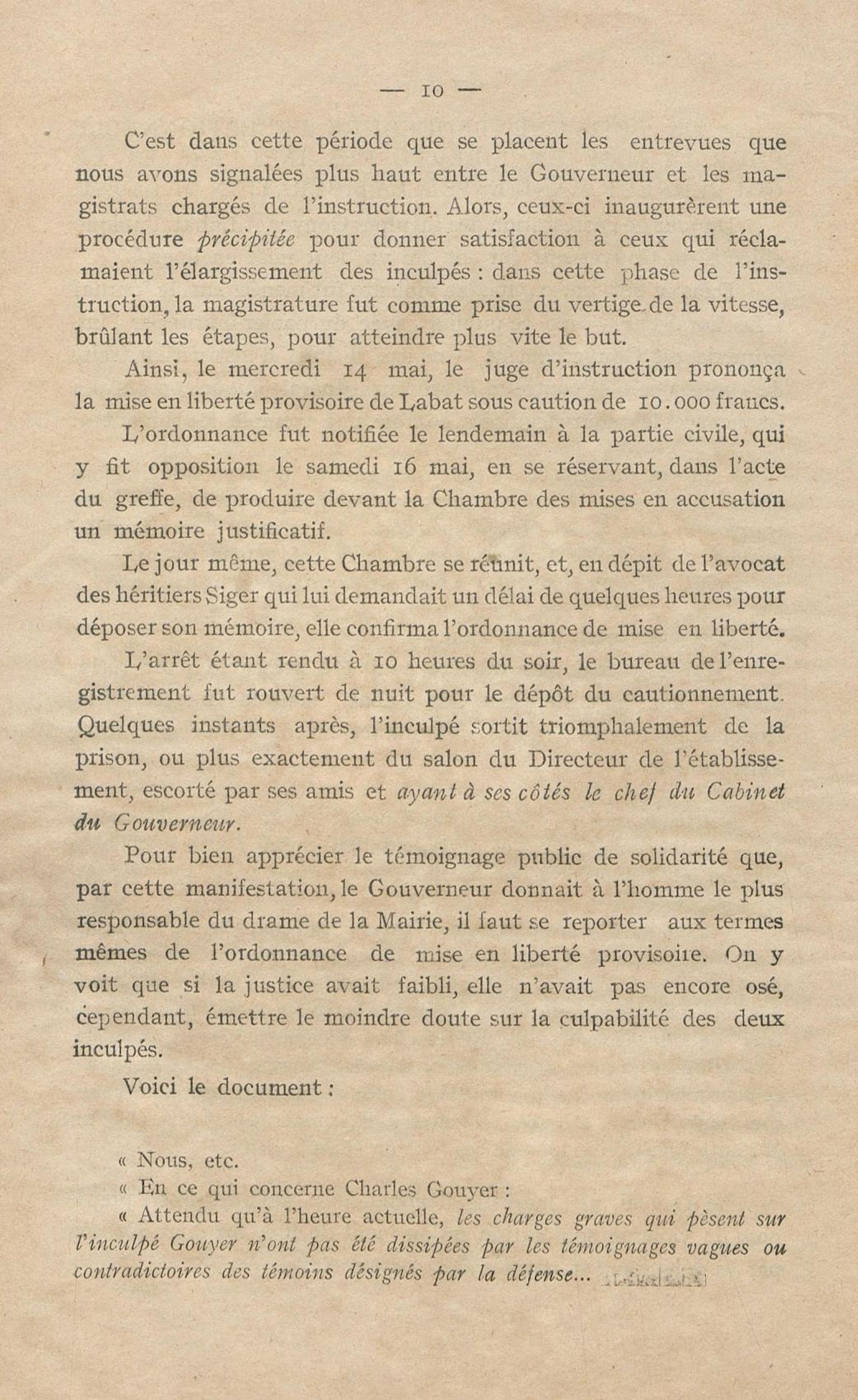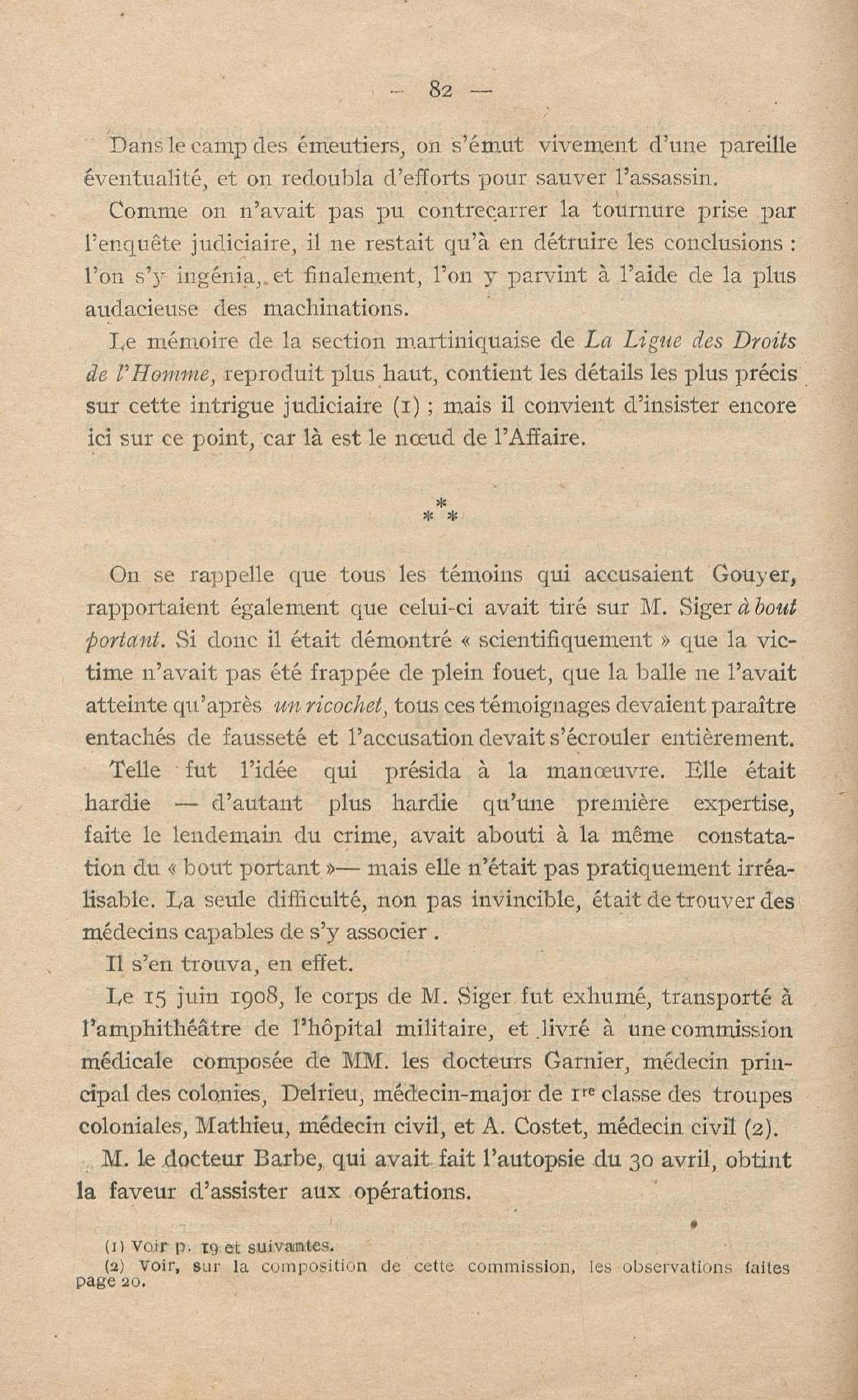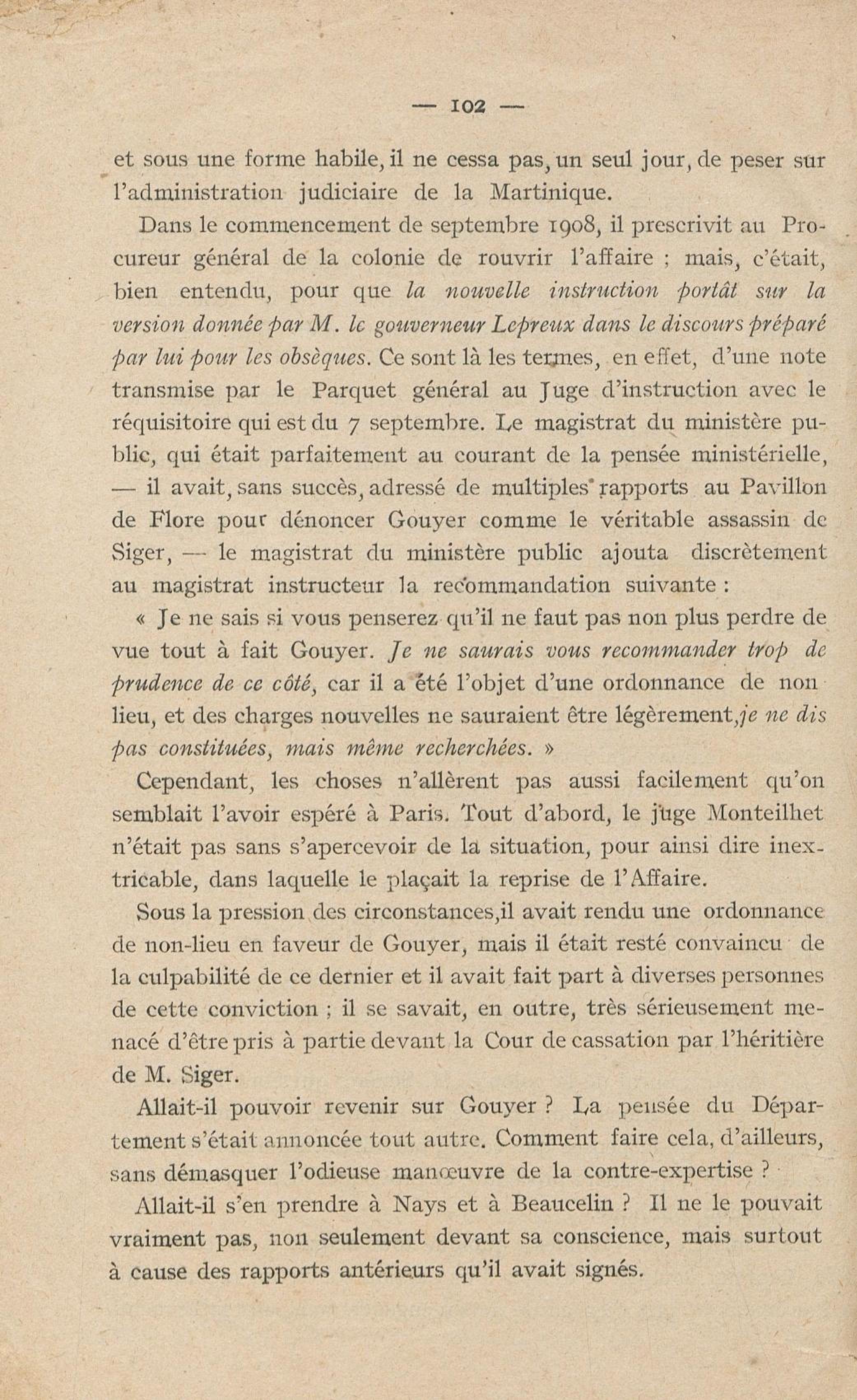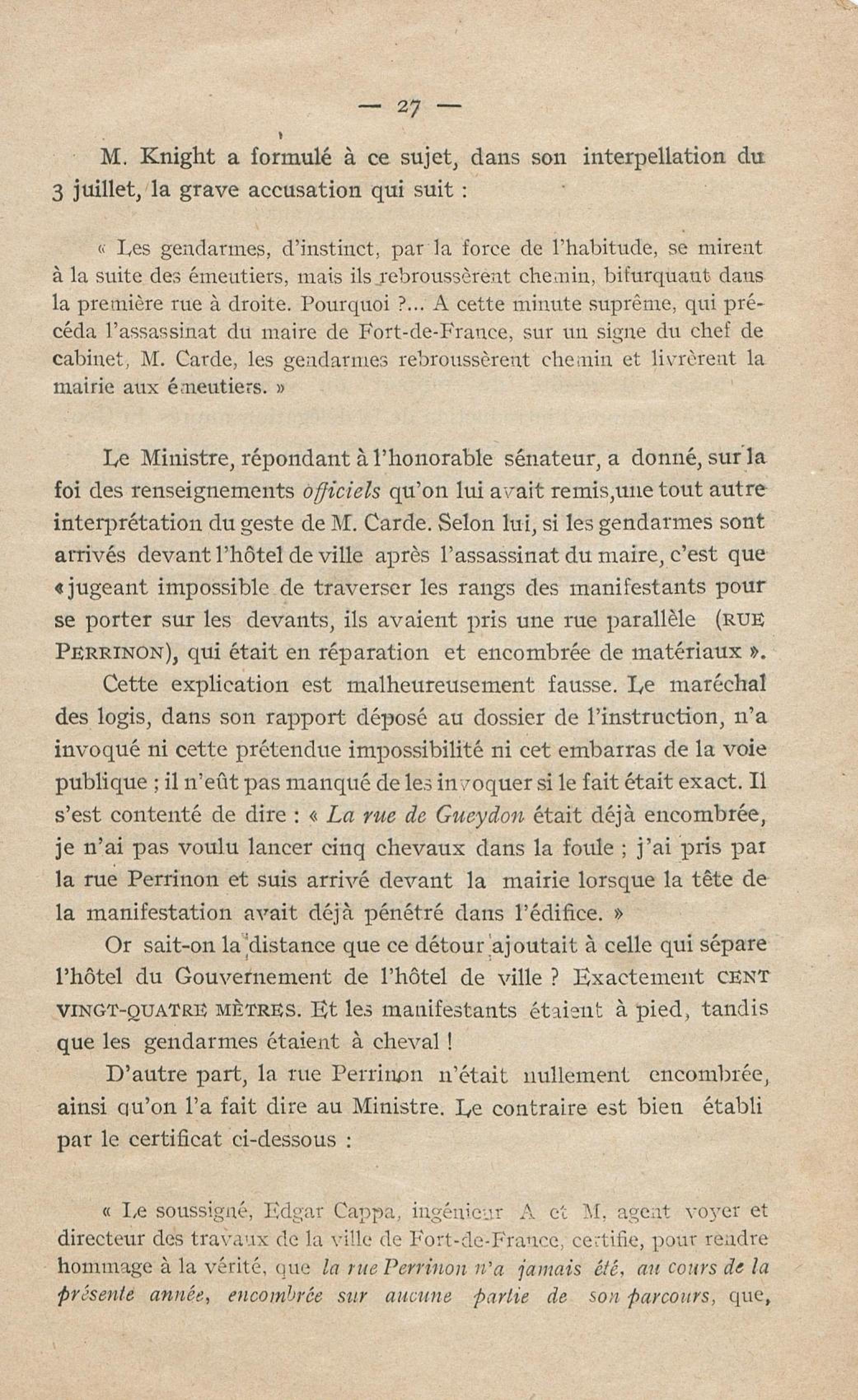 Conditions dans lesquelles s'est faite l'instruction du meurtre de M. Siger, Maire de Fort-de-France