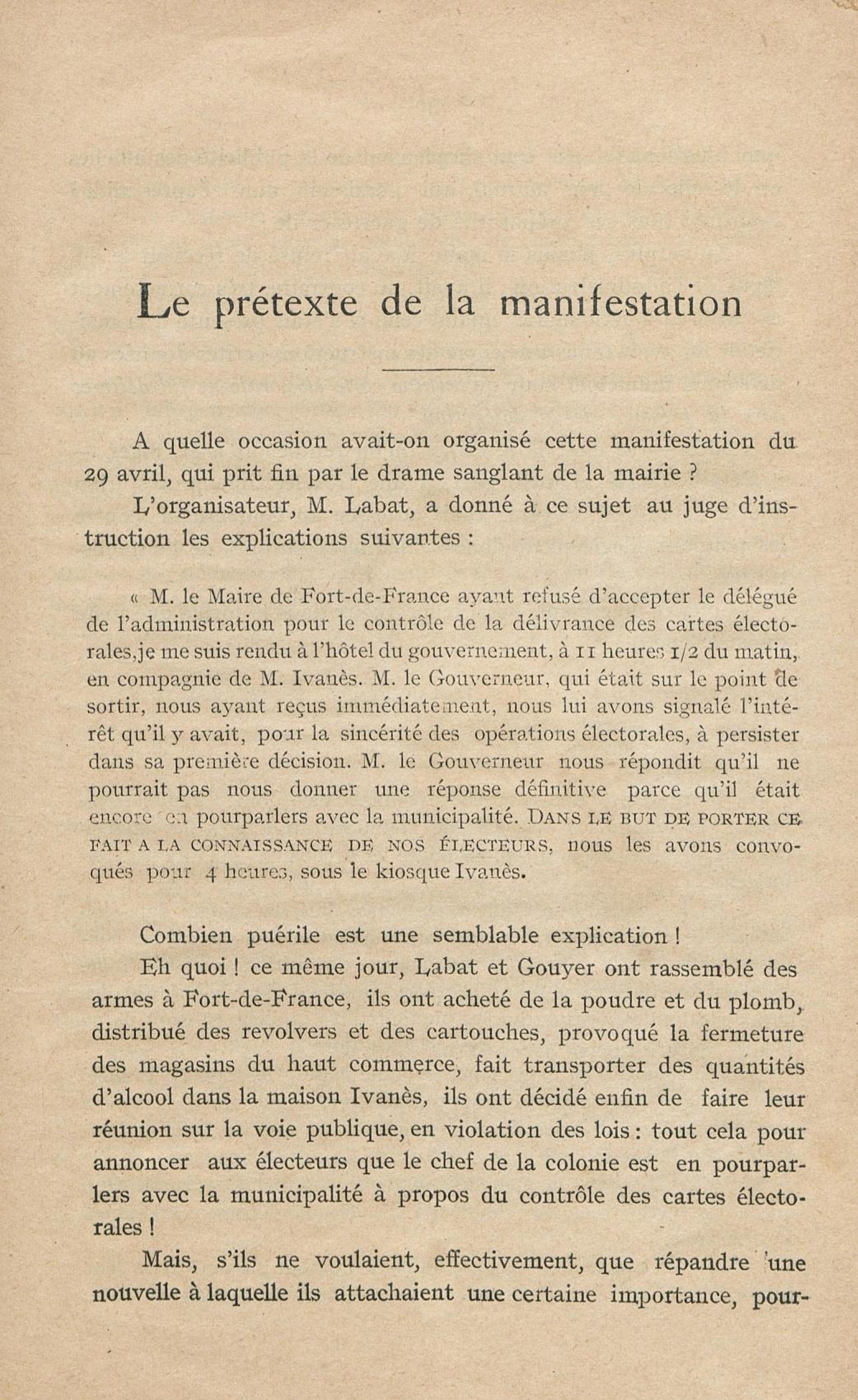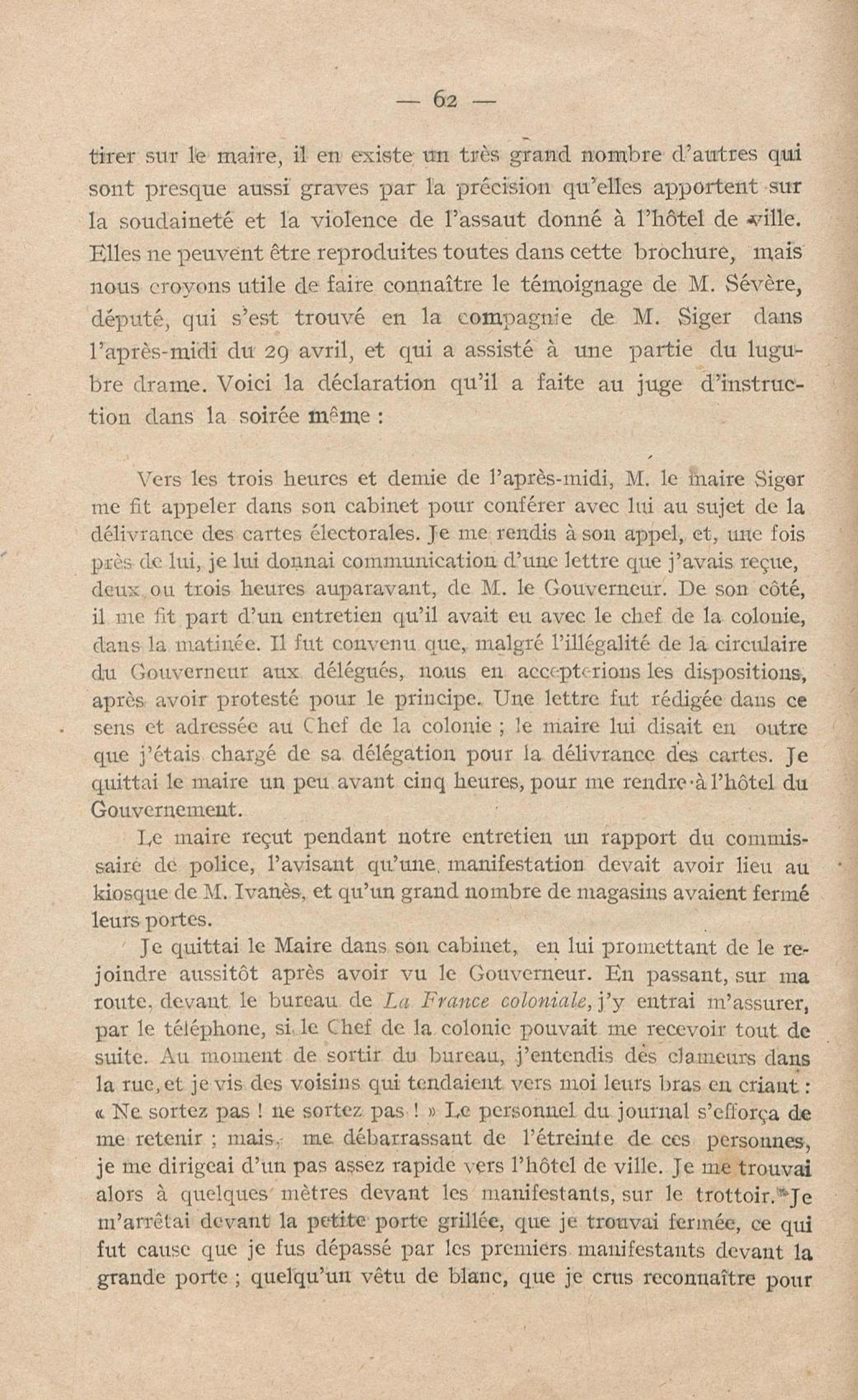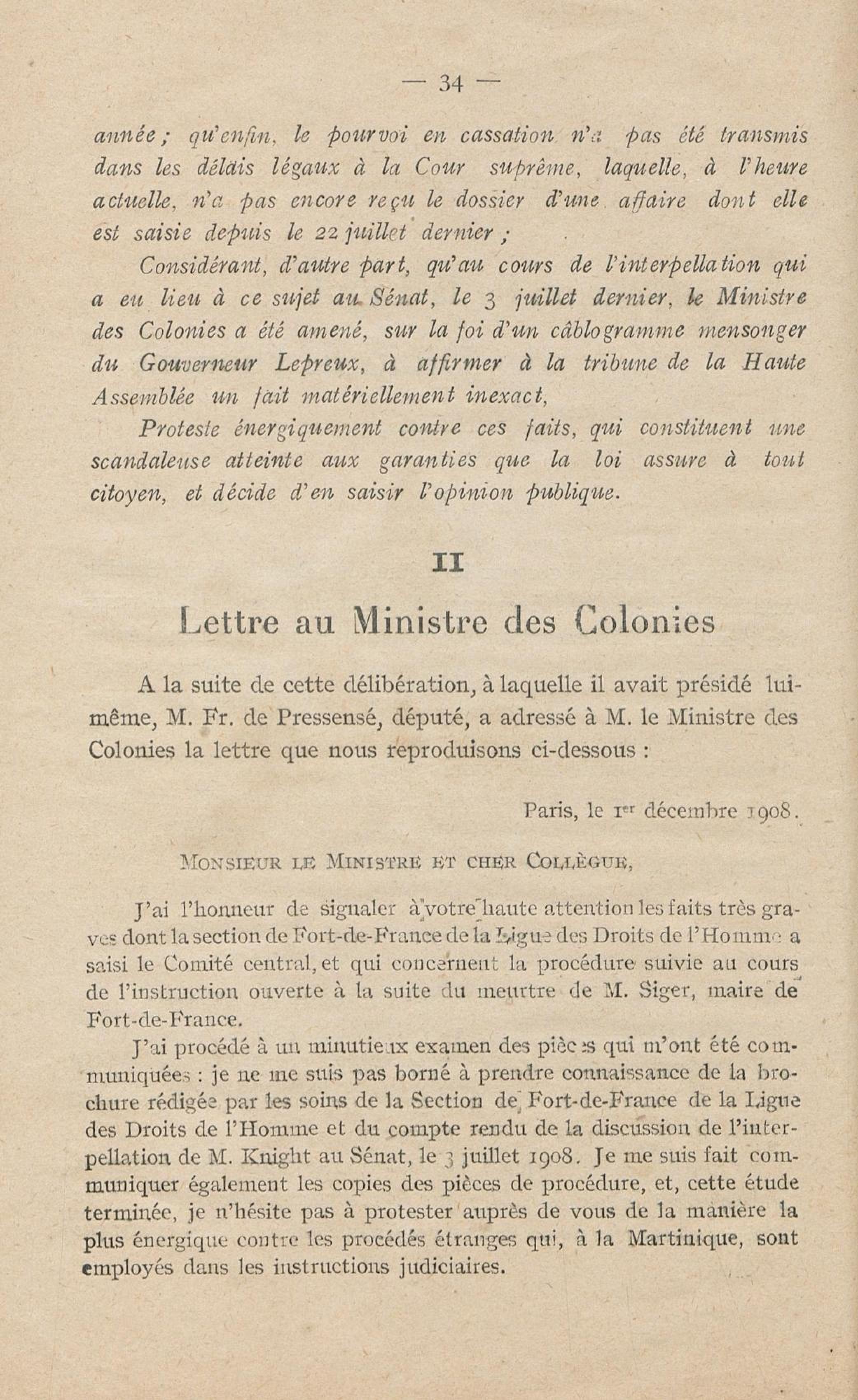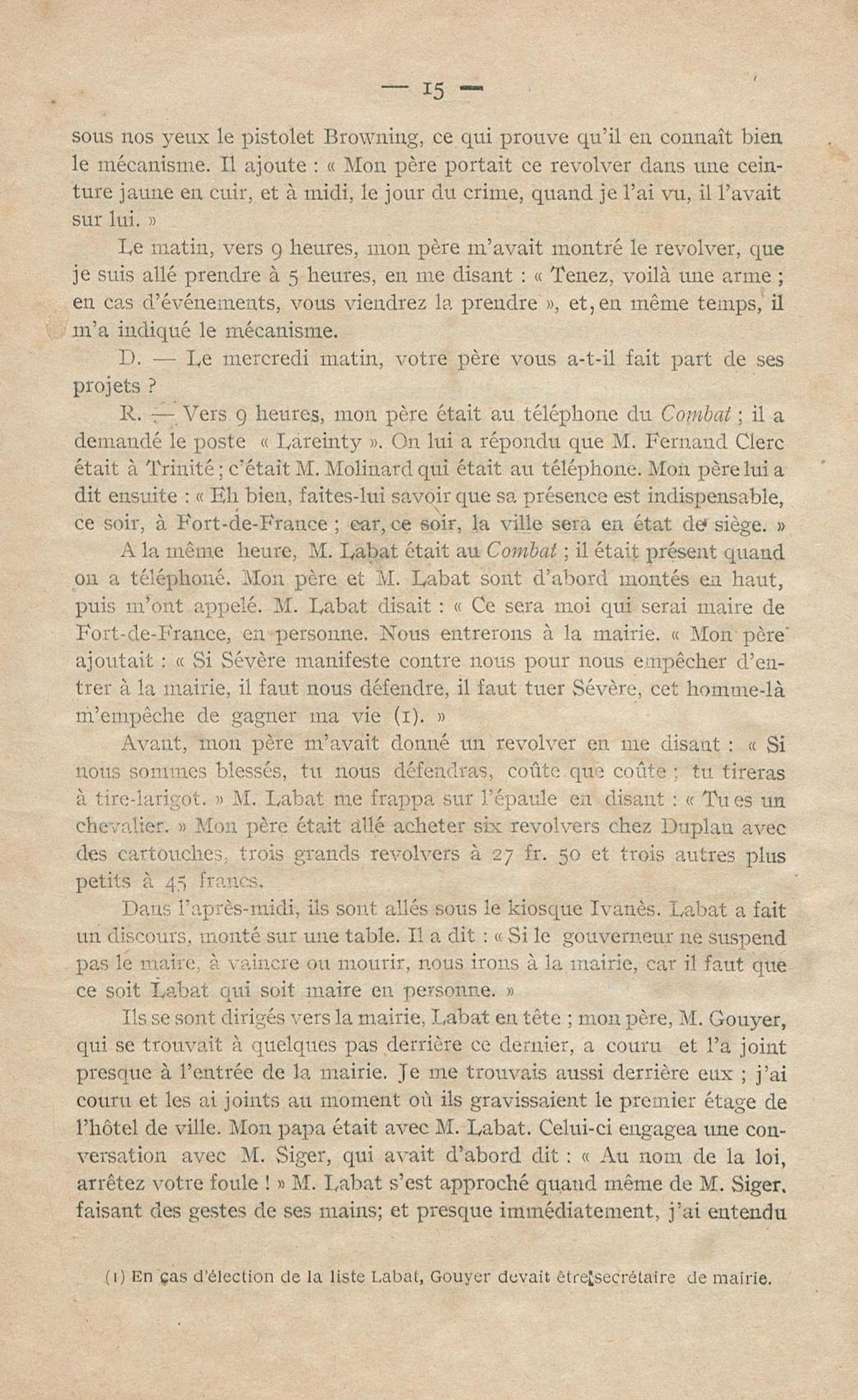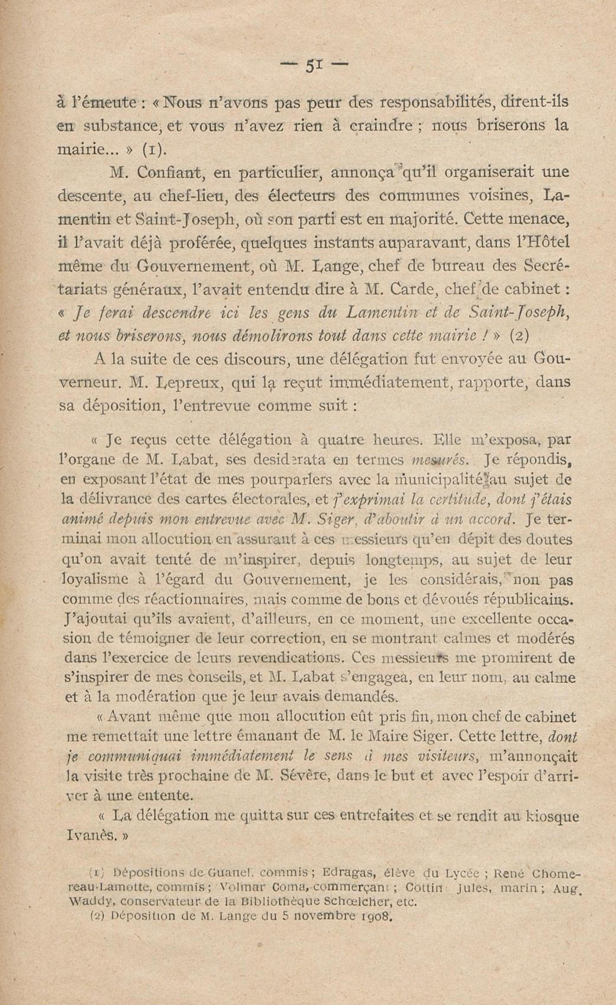 Conditions dans lesquelles s'est faite l'instruction du meurtre de M. Siger, Maire de Fort-de-France