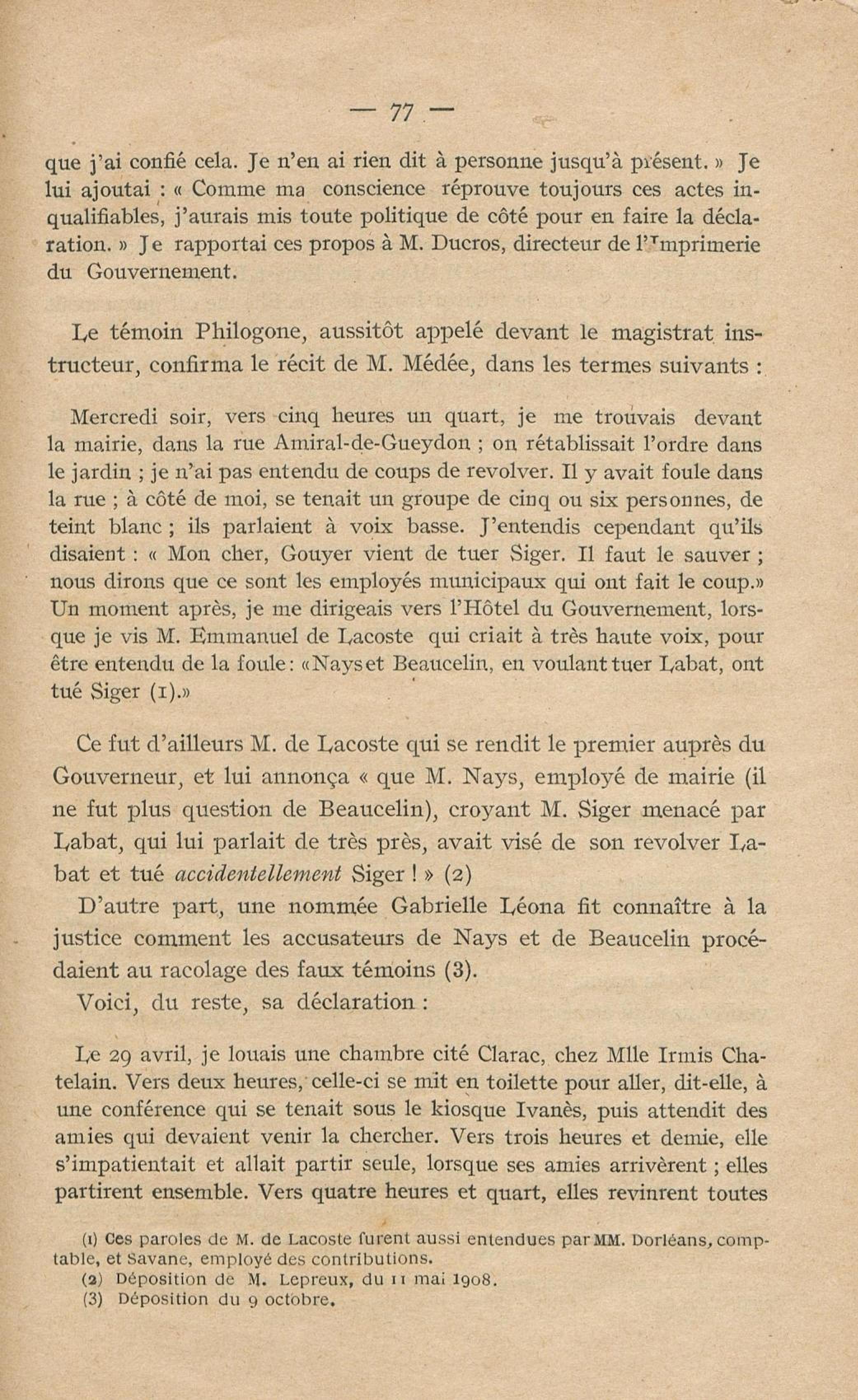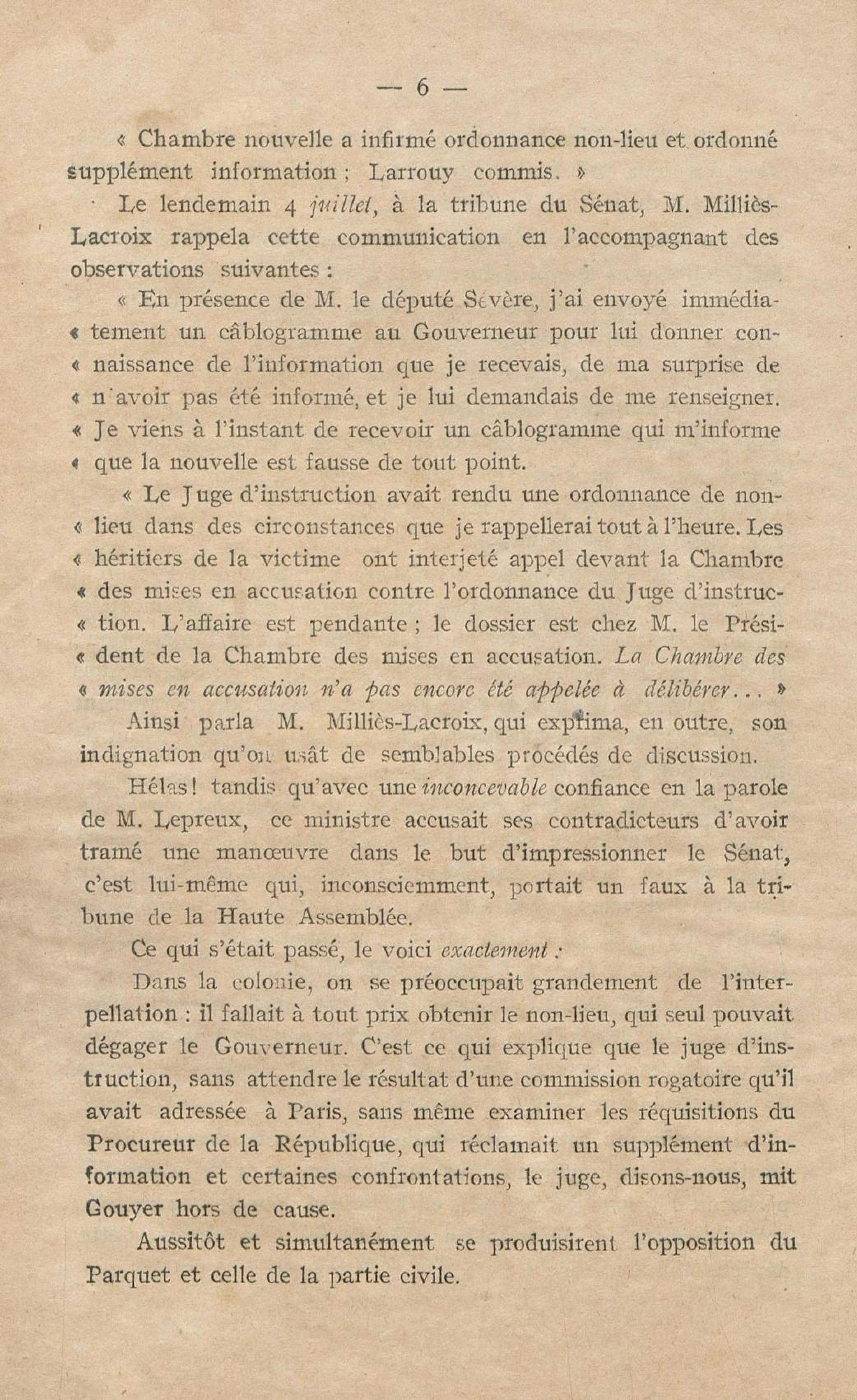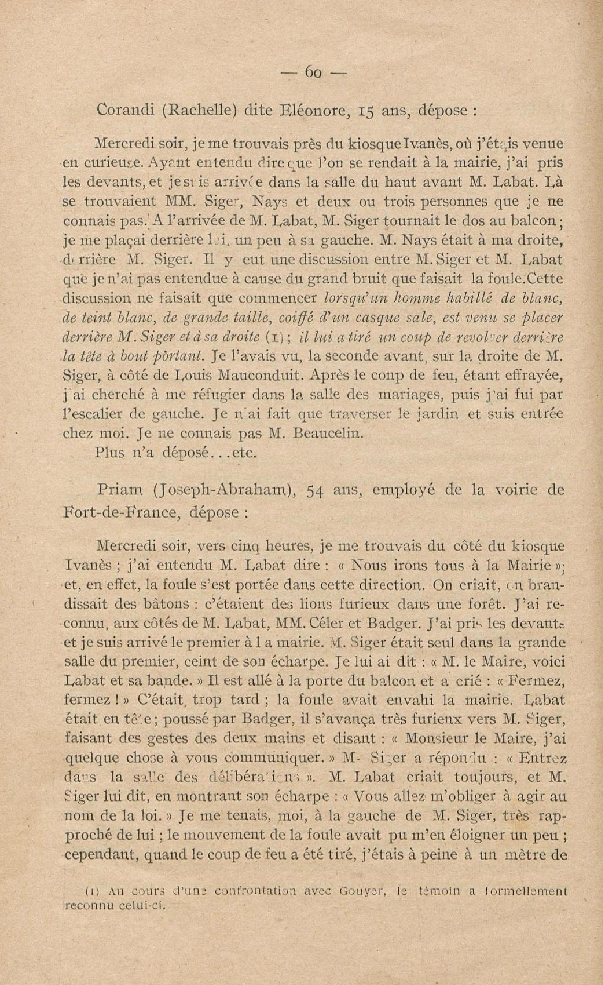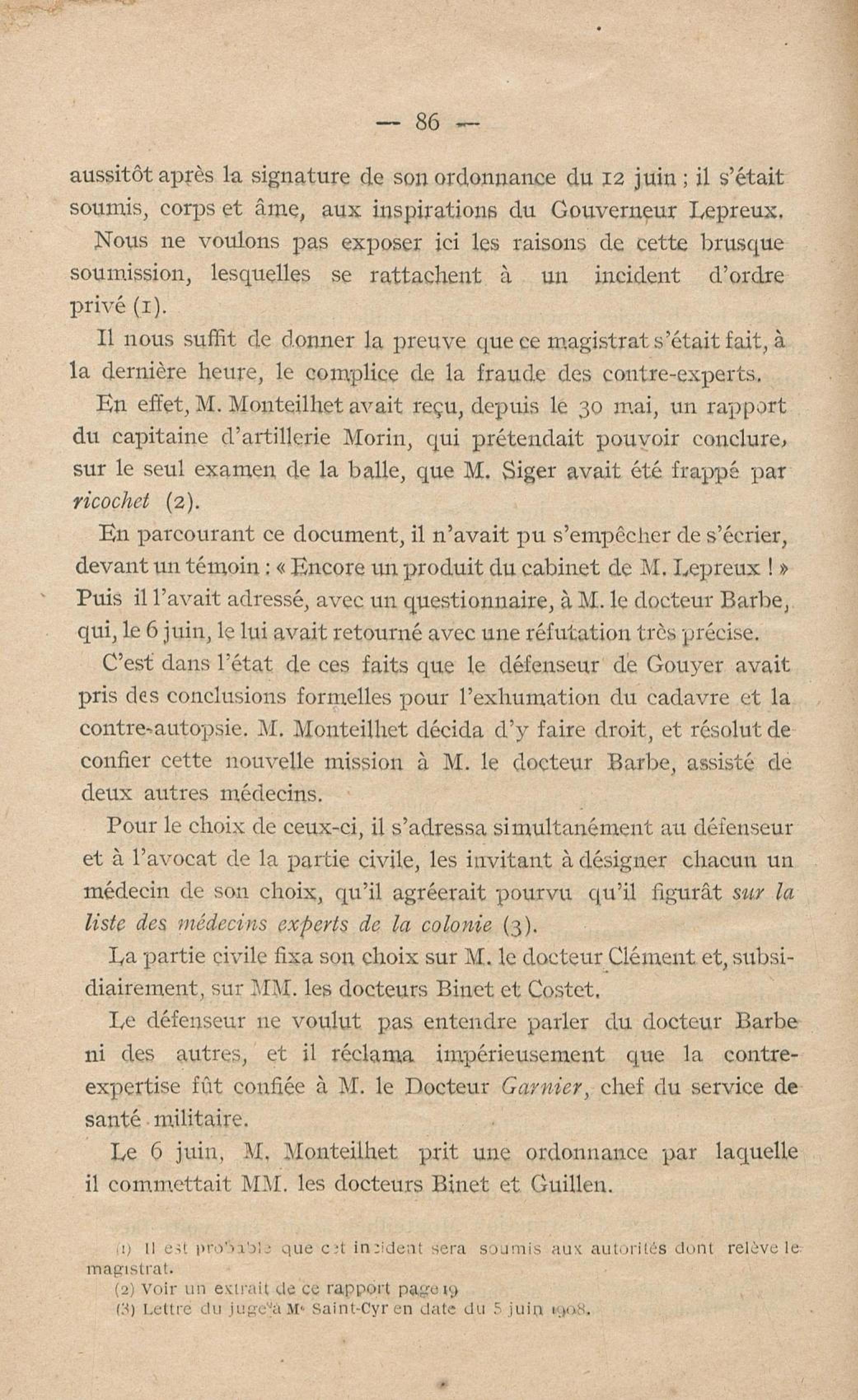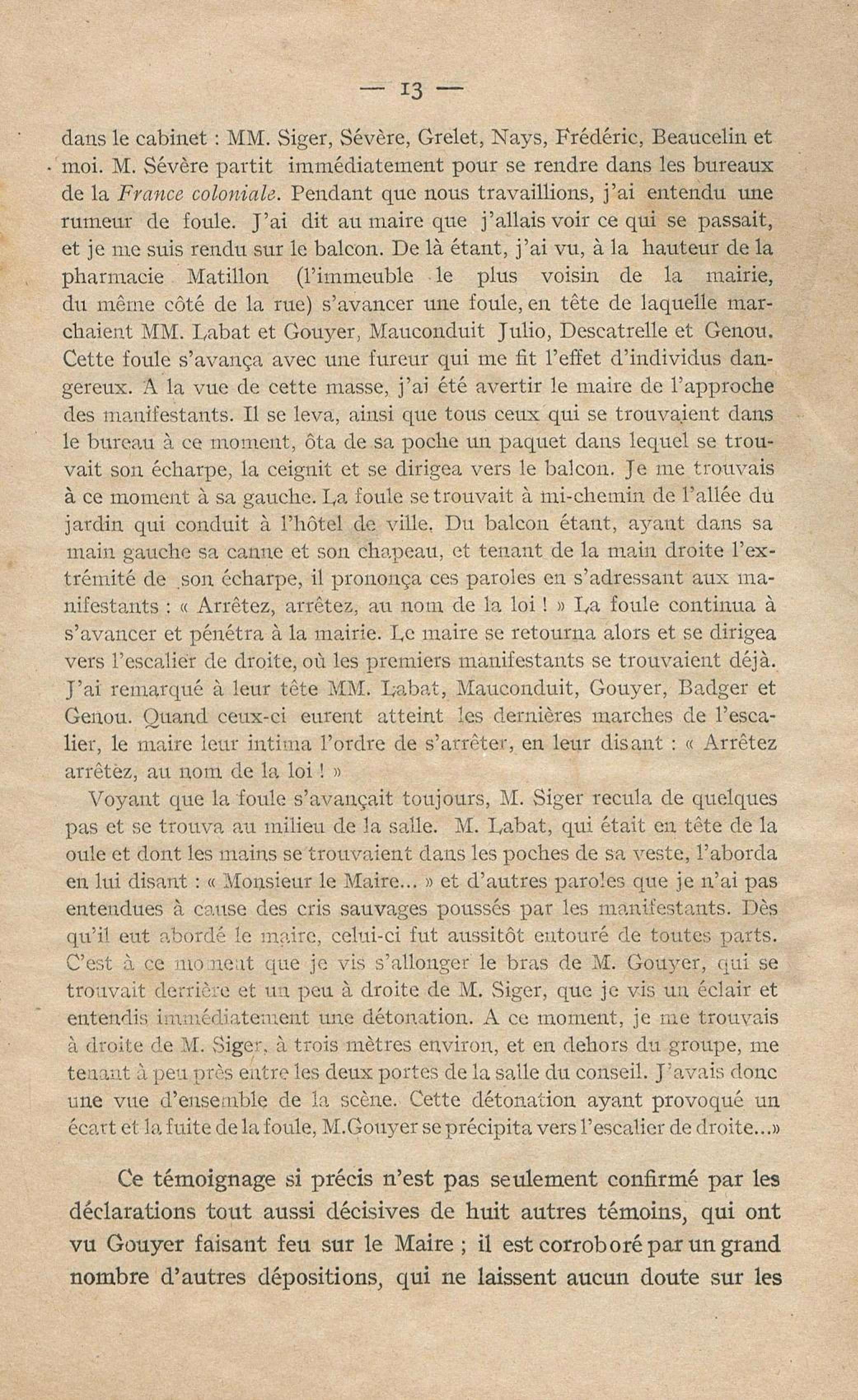 Conditions dans lesquelles s'est faite l'instruction du meurtre de M. Siger, Maire de Fort-de-France
