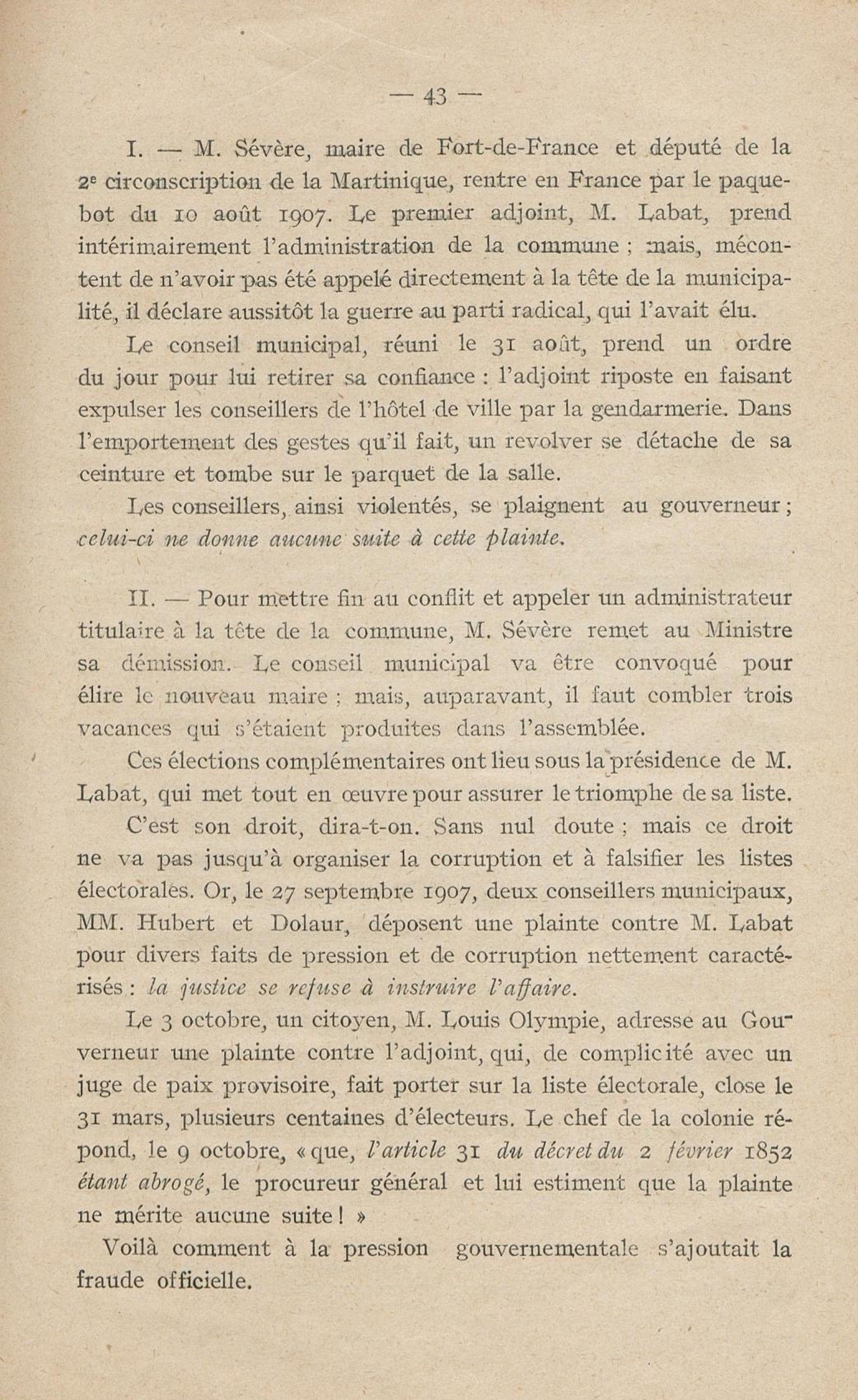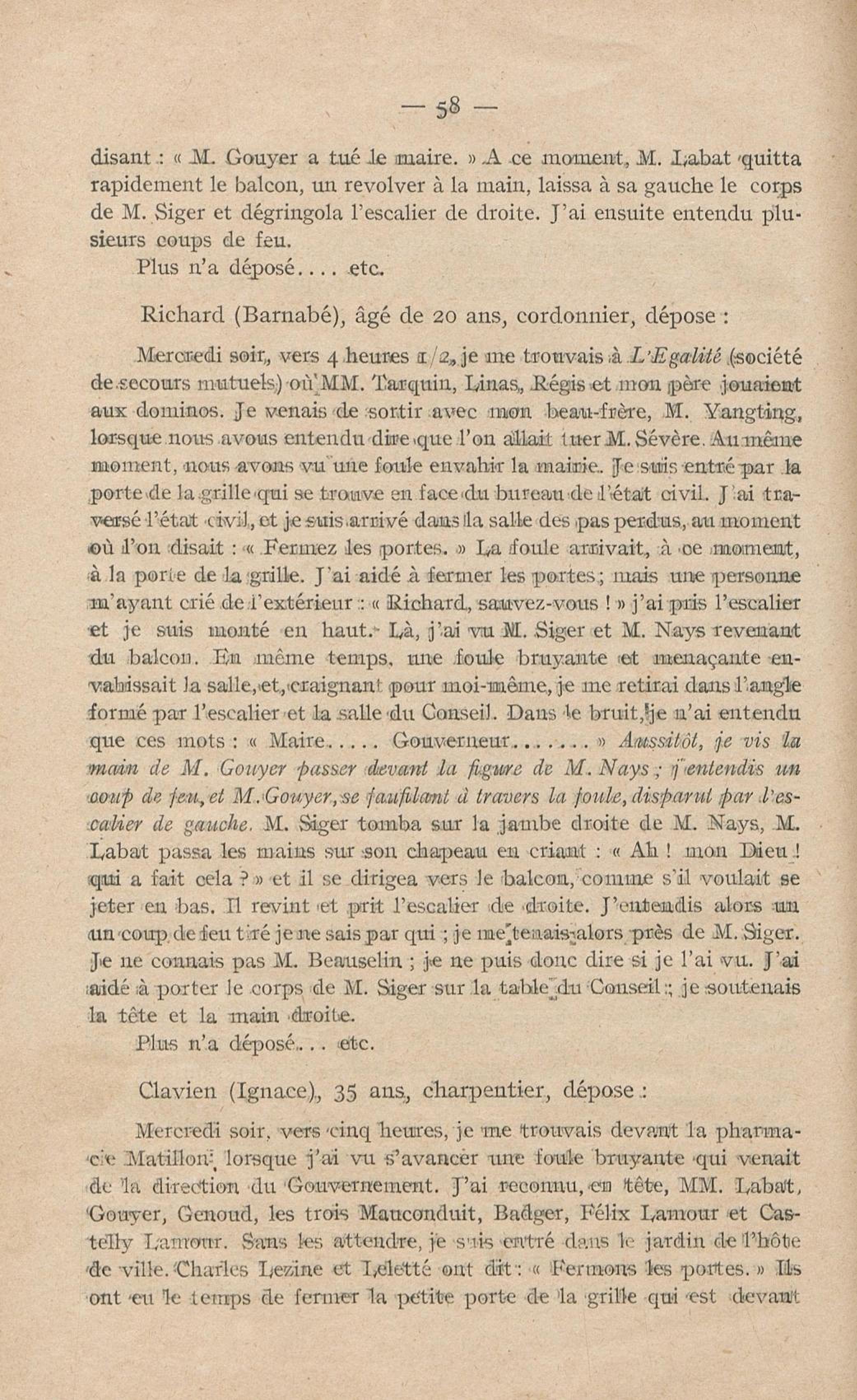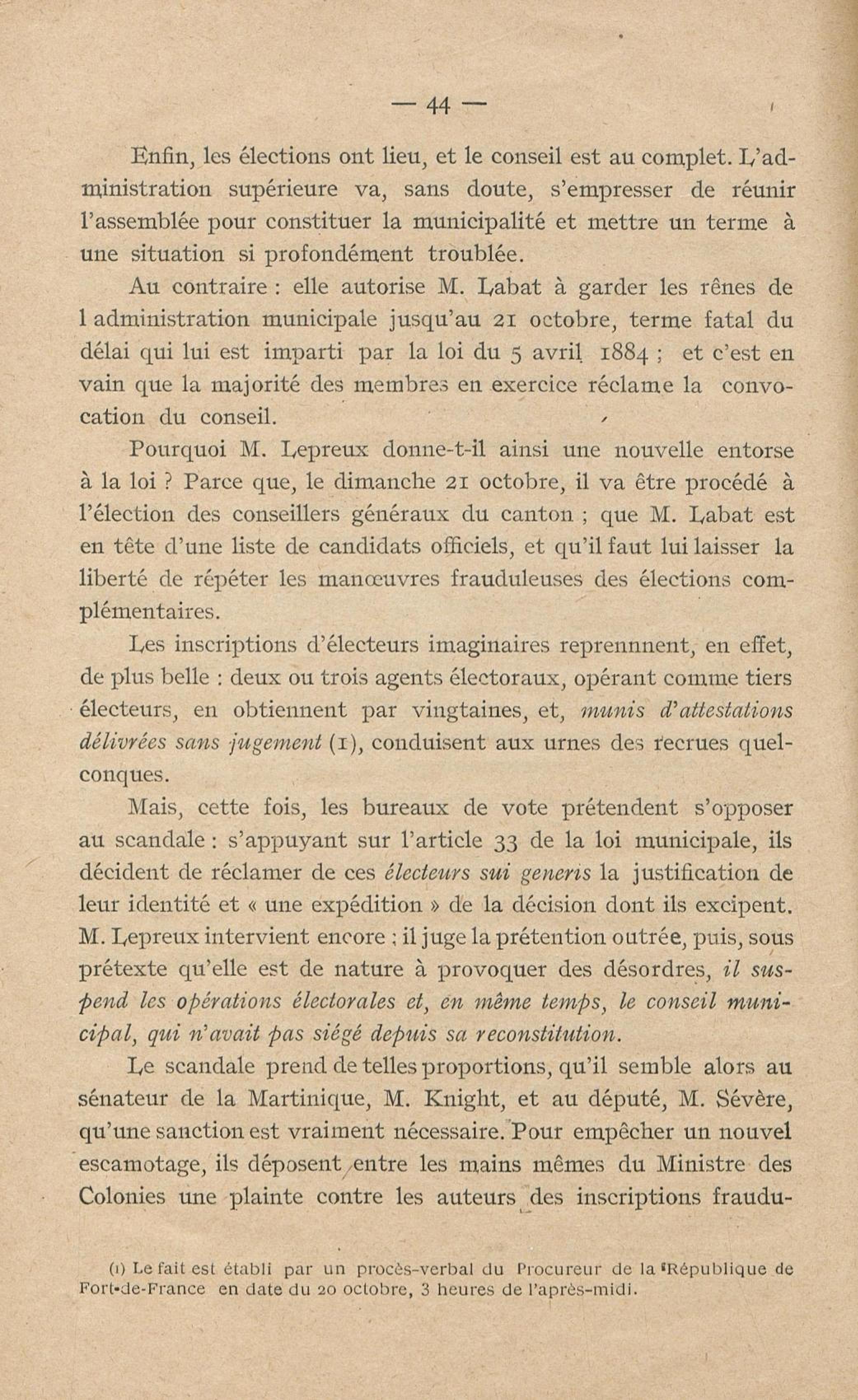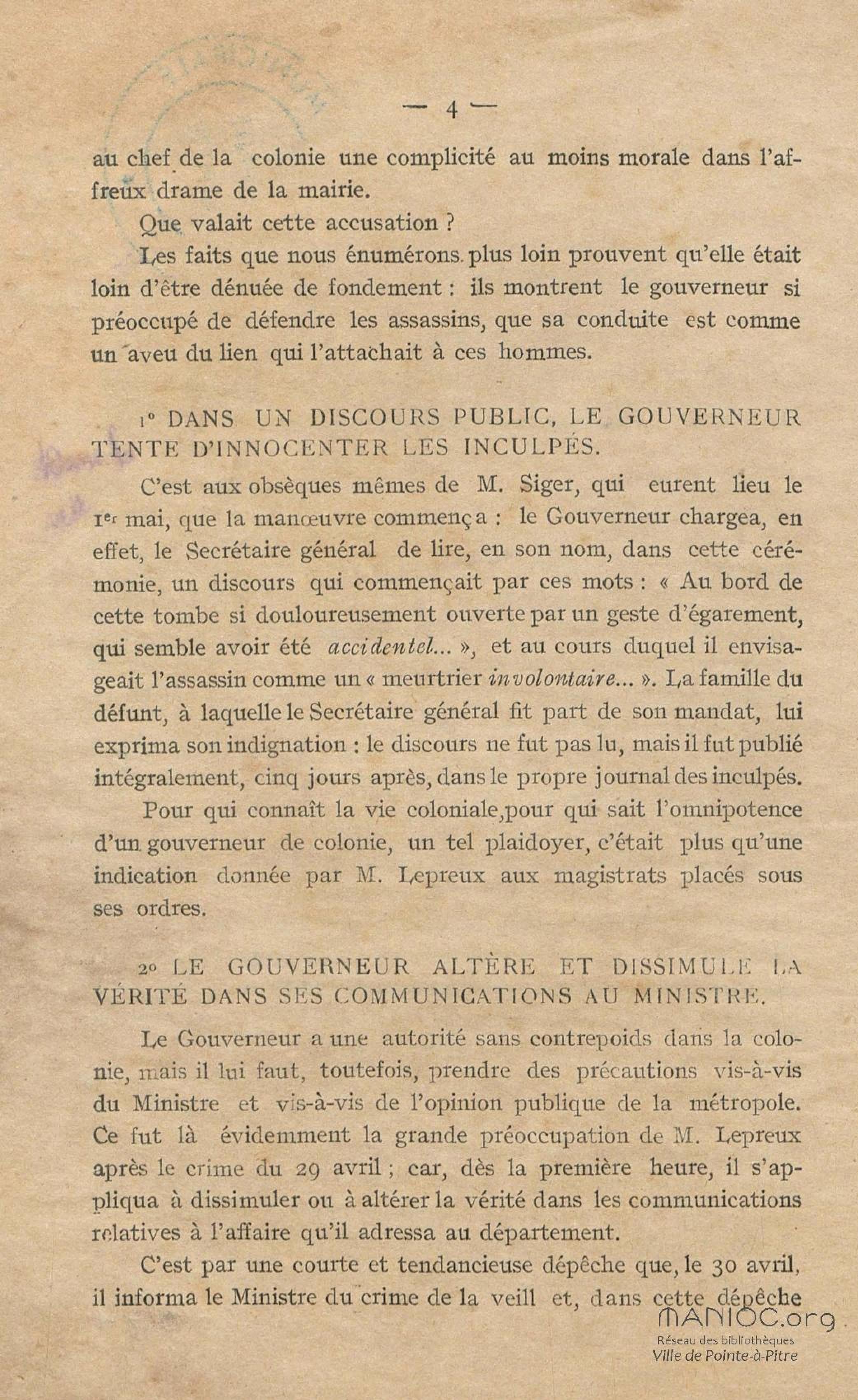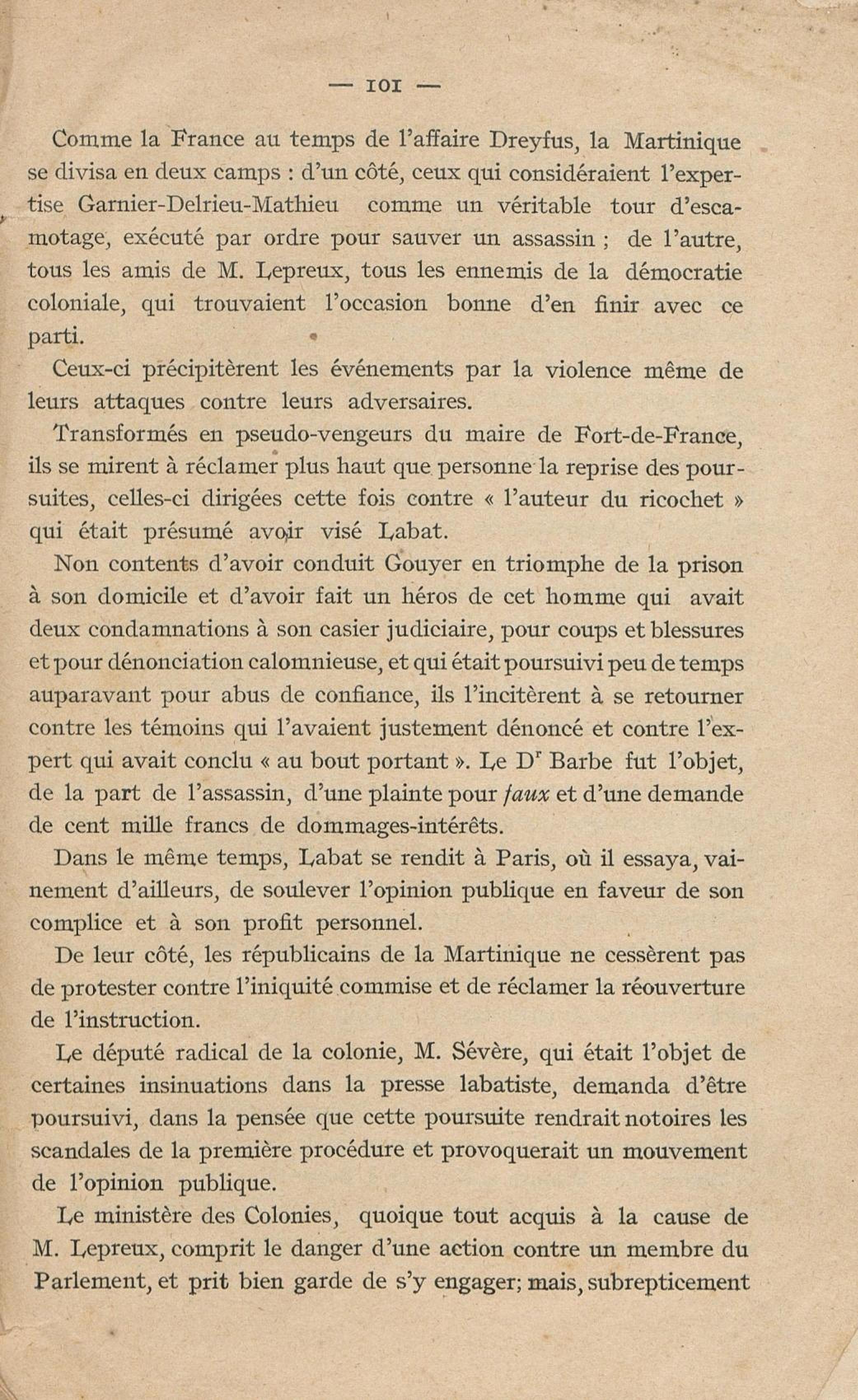 Conditions dans lesquelles s'est faite l'instruction du meurtre de M. Siger, Maire de Fort-de-France